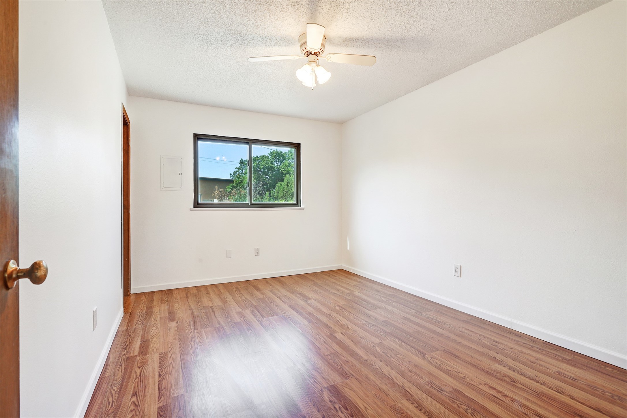 Welcome to this bright and cheerful home, ready for you to make it your own! Freshly painted with tile and laminate flooring throughout, this home is both low-maintenance and full of charm. A sun-filled brick-floor sunroom invites relaxation, while the spacious, fully fenced backyard offers endless possibilities--gardens, outdoor fun, or peaceful retreats. The kitchen features generous storage and comes complete with all appliances. Enjoy energy efficiency with owned solar panels, newer windows, and a durable PVC membrane roof. The oversized garage includes space for storage or hobbies, plus exterior access. Ideally located near parks, schools, and shopping, this home offers comfort & convenience.