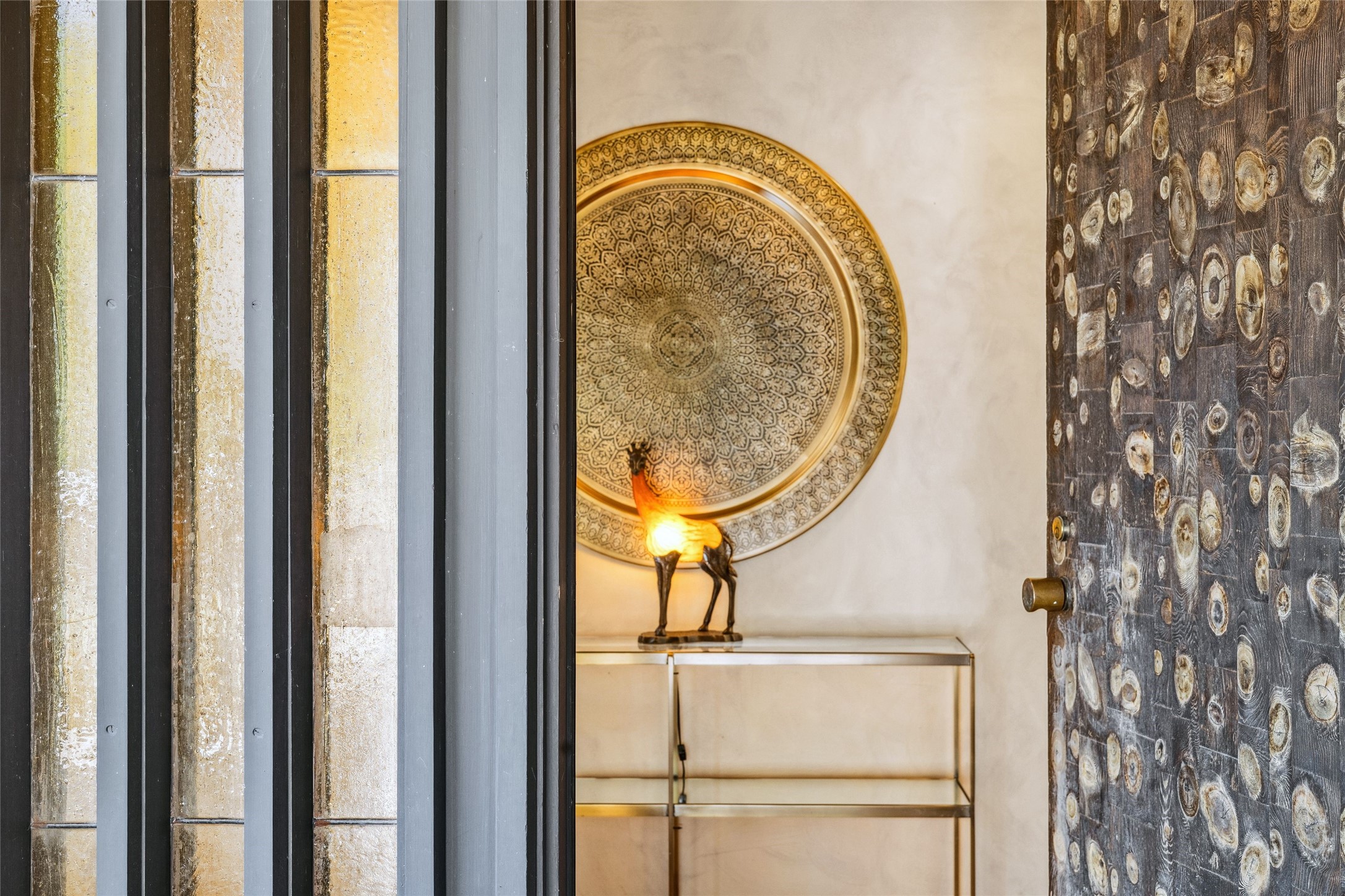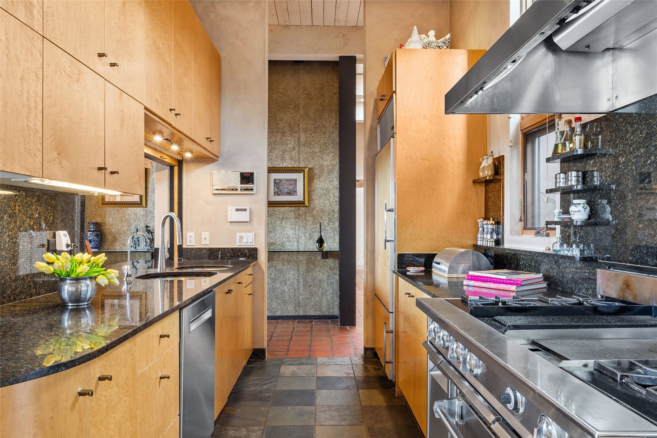Contemporary Serenity with Panoramic Mountain Views in Vista Redonda: This gated sanctuary sits on 5.08 acres in the sought-after Vista Redonda neighborhood which is perched high on its own mesa. 54 Paseo Encantado offers awe-inspiring vistas of both the rugged Sangre de Cristo range to the east and the dramatic Jemez Mountains to the west--from sunrise to sunset, the views are nothing short of breathtaking.This architect designed 4-bedroom, 3-bath home spans 3,489 square feet and reflects a timeless contemporary design that complements its natural surroundings. With only three owners since its construction in 1973, it retains much of its original character and charm and was carefully maintained and thoughtfully preserved for over 21 years by the current owners. The layout is both functional and inviting. The main level features grand living and dining spaces that flow naturally to multiple outdoor living areas, including a deep covered portal ideal for al fresco dining. Just a few steps above the main floor is the spacious primary suite which includes a second living room with kiva fireplace and bar--perfect for quiet evenings or morning coffee with a view. Below the main level are three guest bedrooms and two baths, creating separation and privacy for family or visitors.The property includes a winding gravel drive, a two-car garage connected to the covered portal, mature native landscaping and ample flat buildable space should one wish to add a casita, guest house, or studio.A large solar array, installed in 2019, brings an added layer of energy efficiency to the property. Located just minutes from the Santa Fe National Forest, Four Seasons Resort Rancho Encantado, the Santa Fe Opera, Tesuque Village Market and approximately 15 minutes to all the cultural amenities of downtown Santa Fe, this rare offering in Vista Redonda is a private retreat with enduring style and soul.