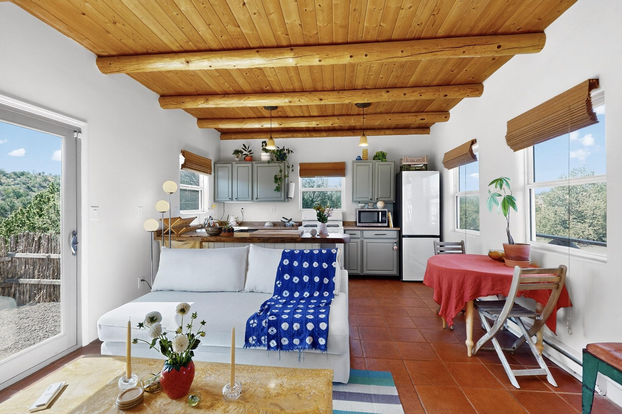 This charming Casita sits on 5 acres with stunning views! You'll enjoy miles of hiking trails in the Eldorado Community Preserve, as well as easy access to the National Forest. Bring your horses and chickens; you're allowed to have both. No HOA. Fenced backyard with garden. There are also two storage sheds included. The Solar System is owned. There is an Artesian well that is shared with two neighbors. You are only 10 minutes from Restaurants, a Grocery, and a Hardware store. Come out and enjoy this beautiful, peaceful home and its lovely property. Make this your forever home or live in it while you build, and have the Casita for family or as an income property.