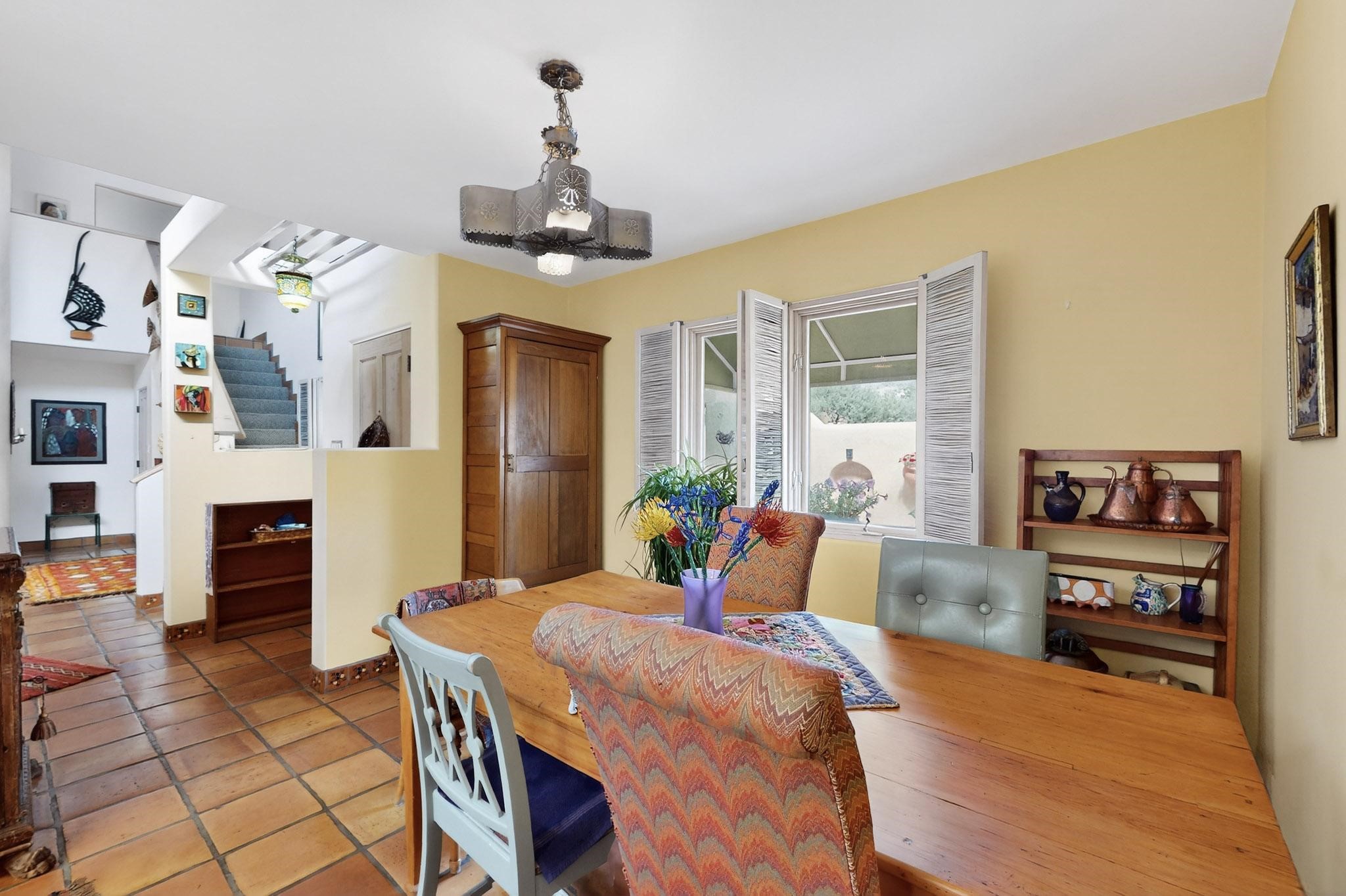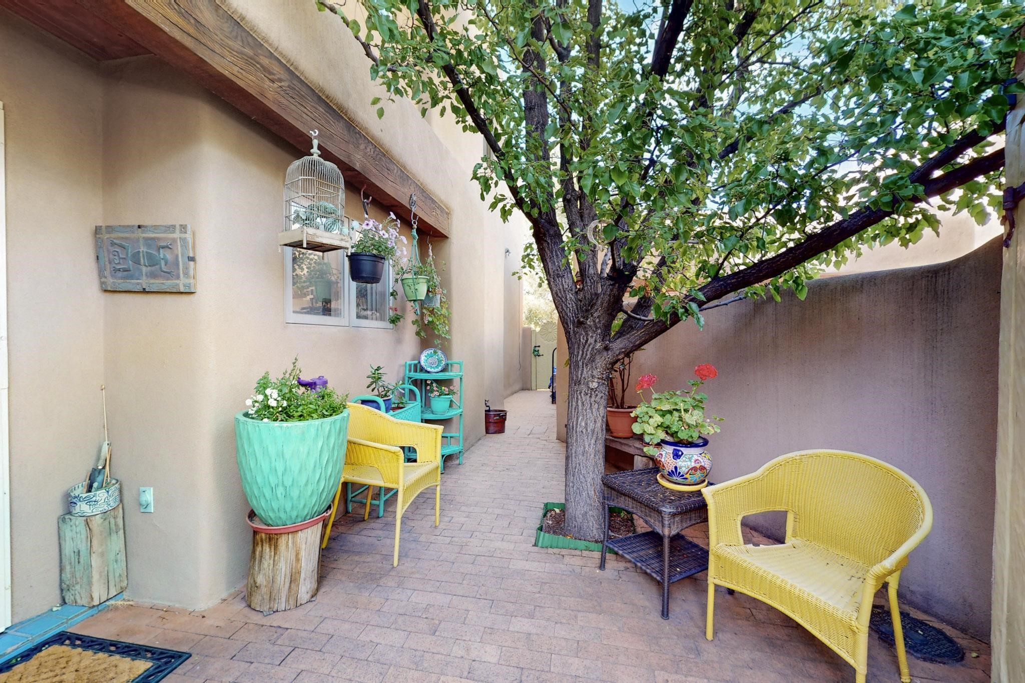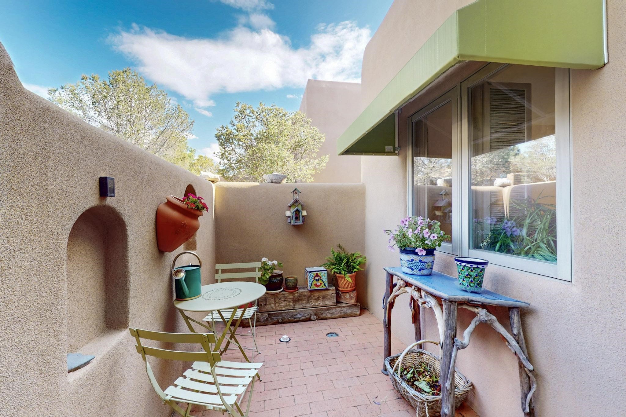 Discover a truly special home that perfectly blends classic Santa Fe character with modern appeal. This home presents a rare opportunity to own in one of Santa Fe's best-kept secret neighborhoods--a true hidden gem.Step inside to soaring ceilings adorned with classic vigas, beautiful Saltillo tile flooring throughout, and an inviting kiva fireplace that creates a warm, welcoming atmosphere. Natural light pours in, enhancing the open and airy feel of the living spaces.Enjoy effortless indoor-outdoor living with low-maintenance, beautifully designed outdoor areas--perfect for entertaining or relaxing under the Santa Fe sky. Create your own outdoor paradise! Don't miss this chance to own a one-of-a-kind home that blends comfort, exceptional style, and location.