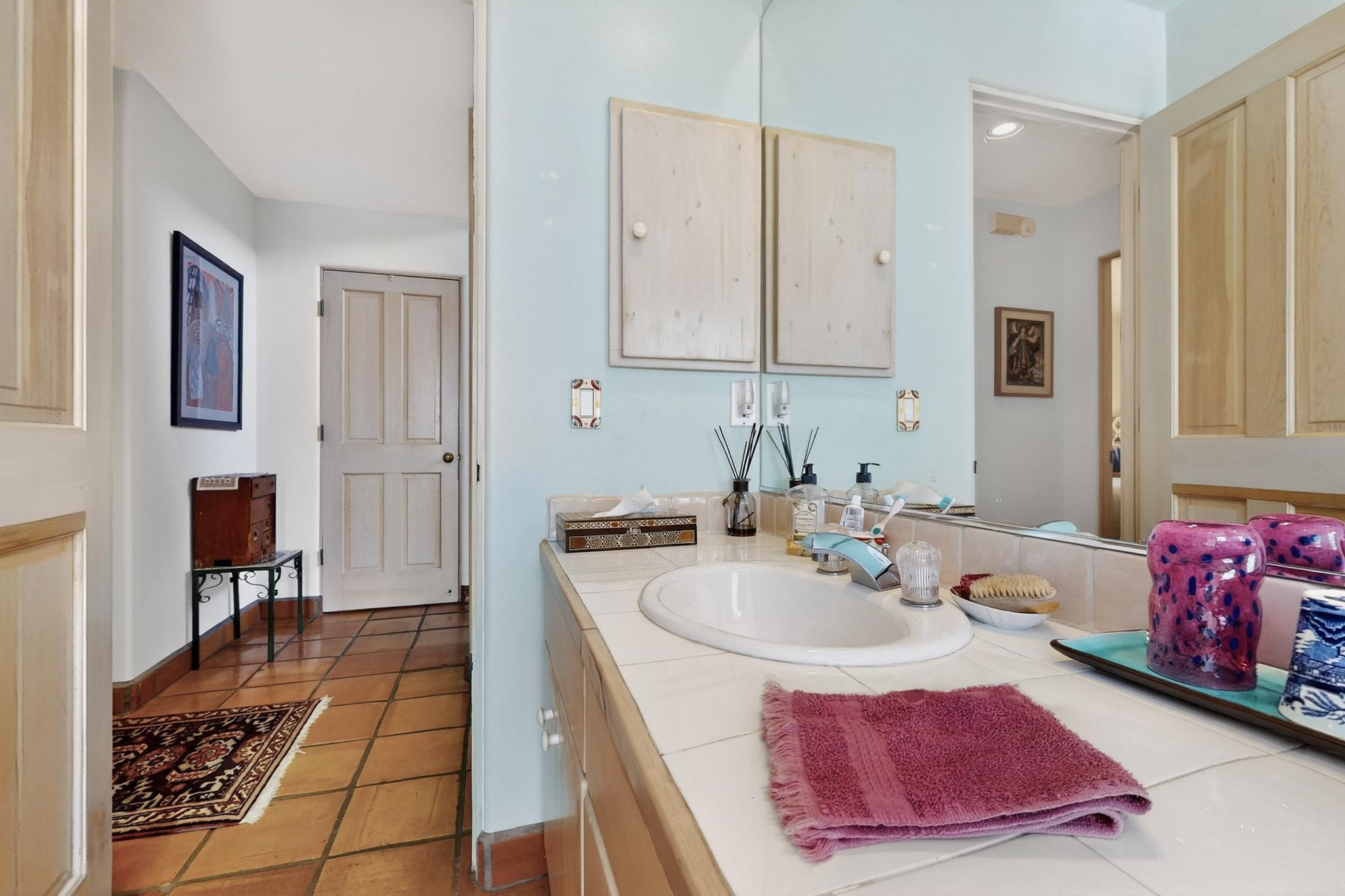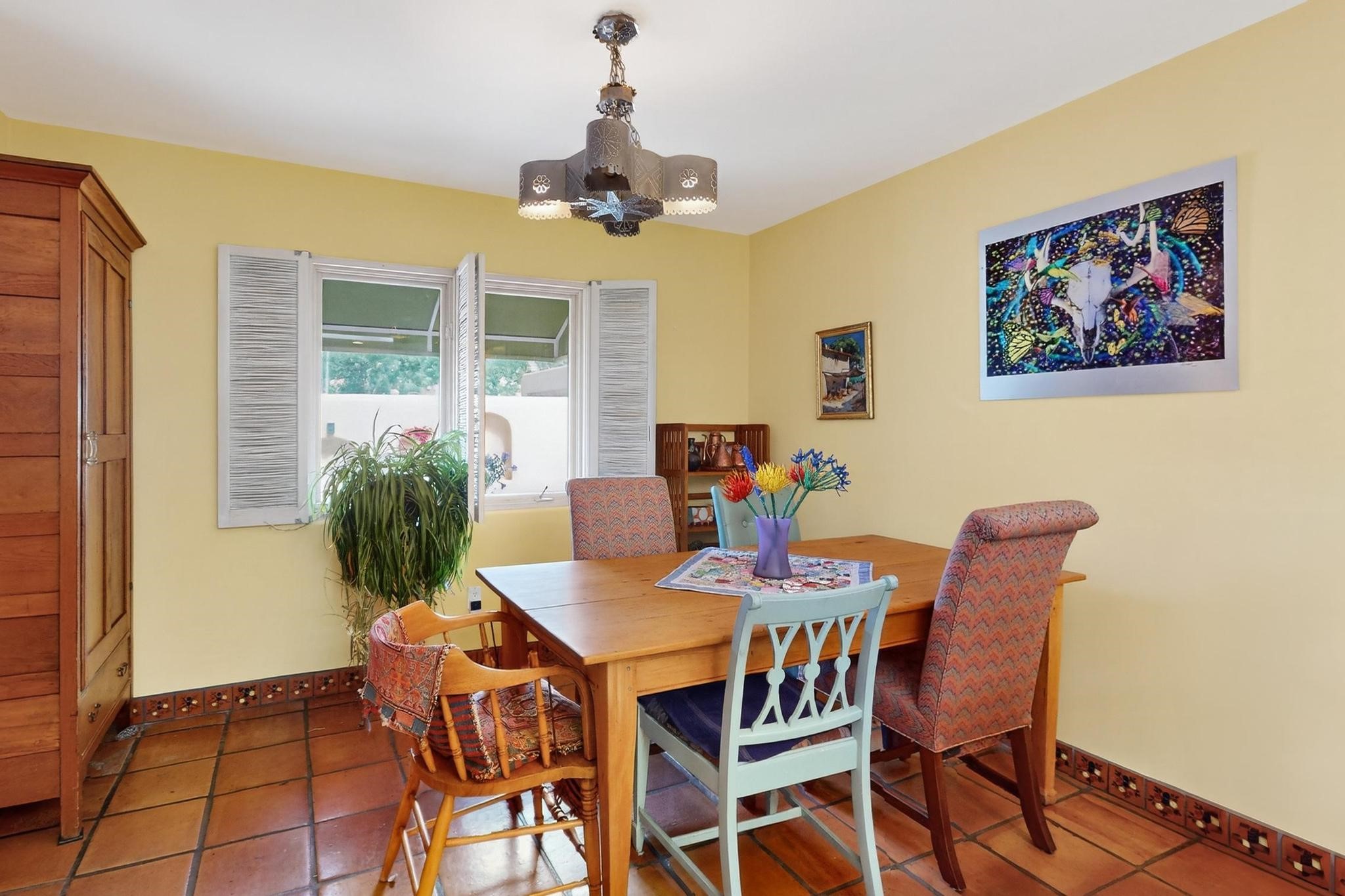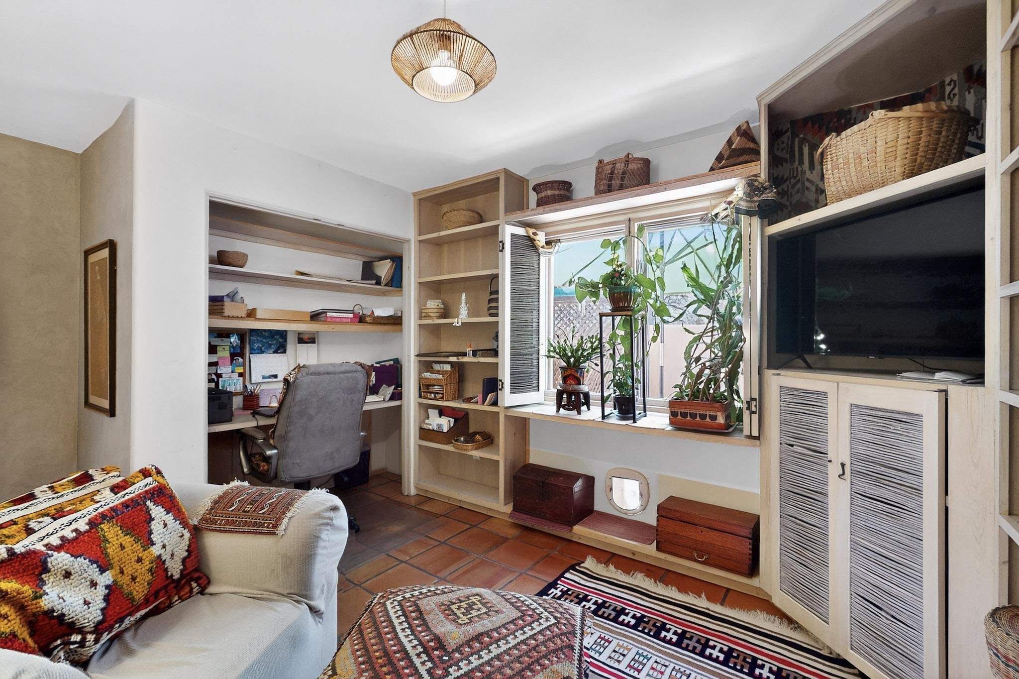 Discover a truly special home that perfectly blends classic Santa Fe character with modern appeal. This home presents a rare opportunity to own in one of Santa Fe's best-kept secret neighborhoods--a true hidden gem.Step inside to soaring ceilings adorned with classic vigas, beautiful Saltillo tile flooring throughout, and an inviting kiva fireplace that creates a warm, welcoming atmosphere. Natural light pours in, enhancing the open and airy feel of the living spaces.Enjoy effortless indoor-outdoor living with low-maintenance, beautifully designed outdoor areas--perfect for entertaining or relaxing under the Santa Fe sky. Create your own outdoor paradise! Don't miss this chance to own a one-of-a-kind home that blends comfort, exceptional style, and location.