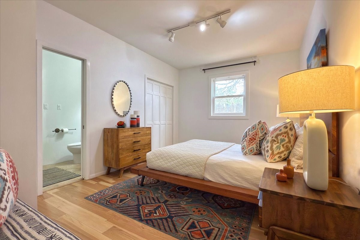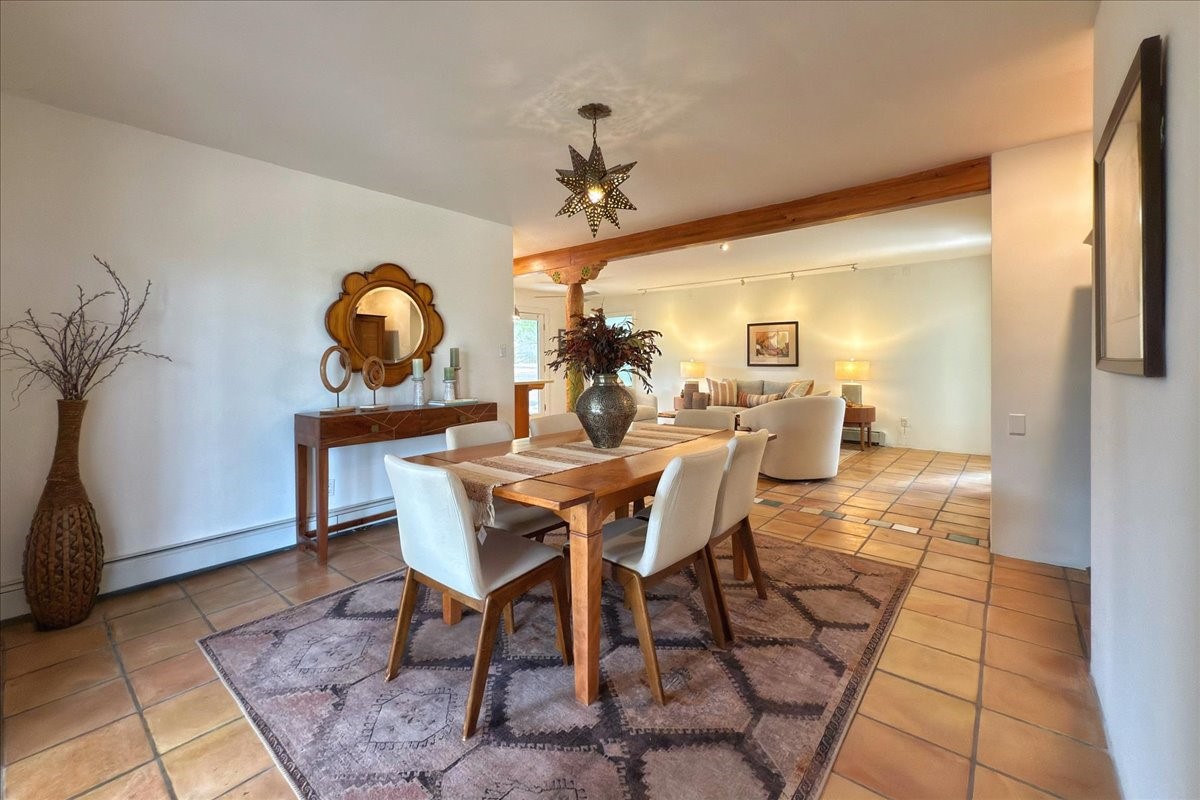 Tucked away in the highly sought-after Sol Y Lomas neighborhood, this peaceful property with mature landscaping on over an acre of land with a fenced-in backyard offers flexible living, exceptional privacy, and a sense of serenity--minutes from the Plaza, restaurants, and I-25.The 3 bed / 2.5 bath main house features a spacious living room with a fireplace and an excellent view of old-growth trees in your fenced-in backyard, an additional sitting room or lounge off the kitchen, and a generous primary suite with a large walk-in closet, soaking tub, and private patio. Nearly every window offers beautiful views of mature trees, giving the home a tranquil, retreat-like feel.Ideal for multigenerational living, rental income, or a home office, the 1 bed / 1 bath casita, with a separate entrance, includes its own washer and dryer, kitchenette, and sits adjacent to a charming courtyard framed by aspens. There is also a separate studio/flex space/arts and crafts room in the back of the main home with its own entrance. And a storage shed! Entertain with ease both indoors and out--whether you're gathering in the inviting living spaces or unwinding in one of the many outdoor areas perfect for gardening, dining, or soaking in the natural beauty. Additional features include a newer all-in-one on-demand hot water heater and boiler(c. 2023), new lighting in the kitchen and primary bedroom walk-in closet. An unbeatable location on a dead-end street just off Old Pecos Trail with quick access to all that Santa Fe has to offer such as Canyon Road, the Historic Plaza, Fine Dining, World-Class Galleries, Museum Hill, and so much more.