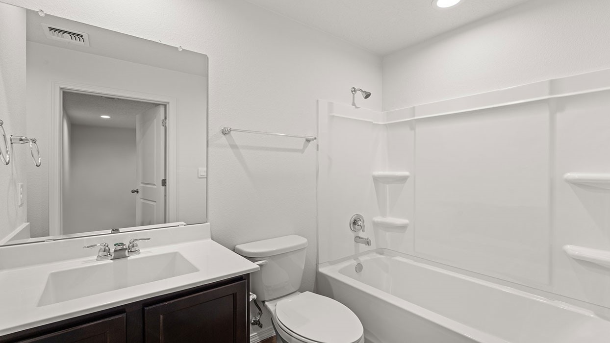 MOVE IN READY!!! ASK ABOUT OUR INCENTIVES. This spacious 2-story home offers 2,642 sq ft of well-designed living space, featuring five bedrooms and 4 bathrooms, making it ideal for families seeking both comfort and privacy. The main floor is thoughtfully laid out, with the owner's suite conveniently located downstairs for easy access. The owner's retreat includes a large walk-in closet and an en-suite bathroom. A guest room on the main level offers flexibility, along with a full bathroom nearby, making it perfect for visitors or a home office. Upstairs, you'll find two additional bedrooms and a shared full bathroom, providing ample space and privacy for family members. The open concept living area on the main floor seamlessly connects the living, dining, and kitchen spaces, creating a bright and inviting atmosphere ideal for entertaining. The attached two-car garage provides secure parking and additional storage. This home offers a perfect combination of style, function, and privacy, making it the ideal choice for modern living.