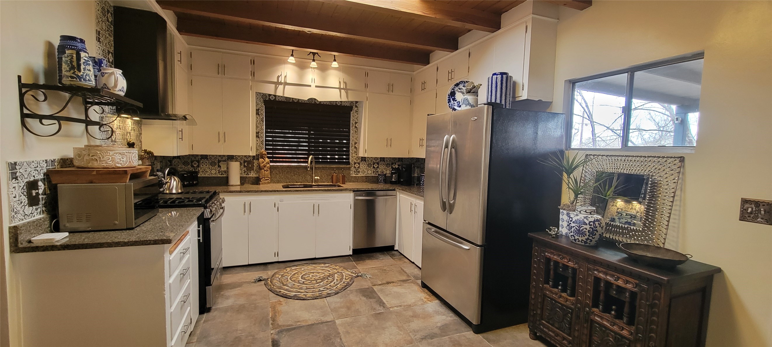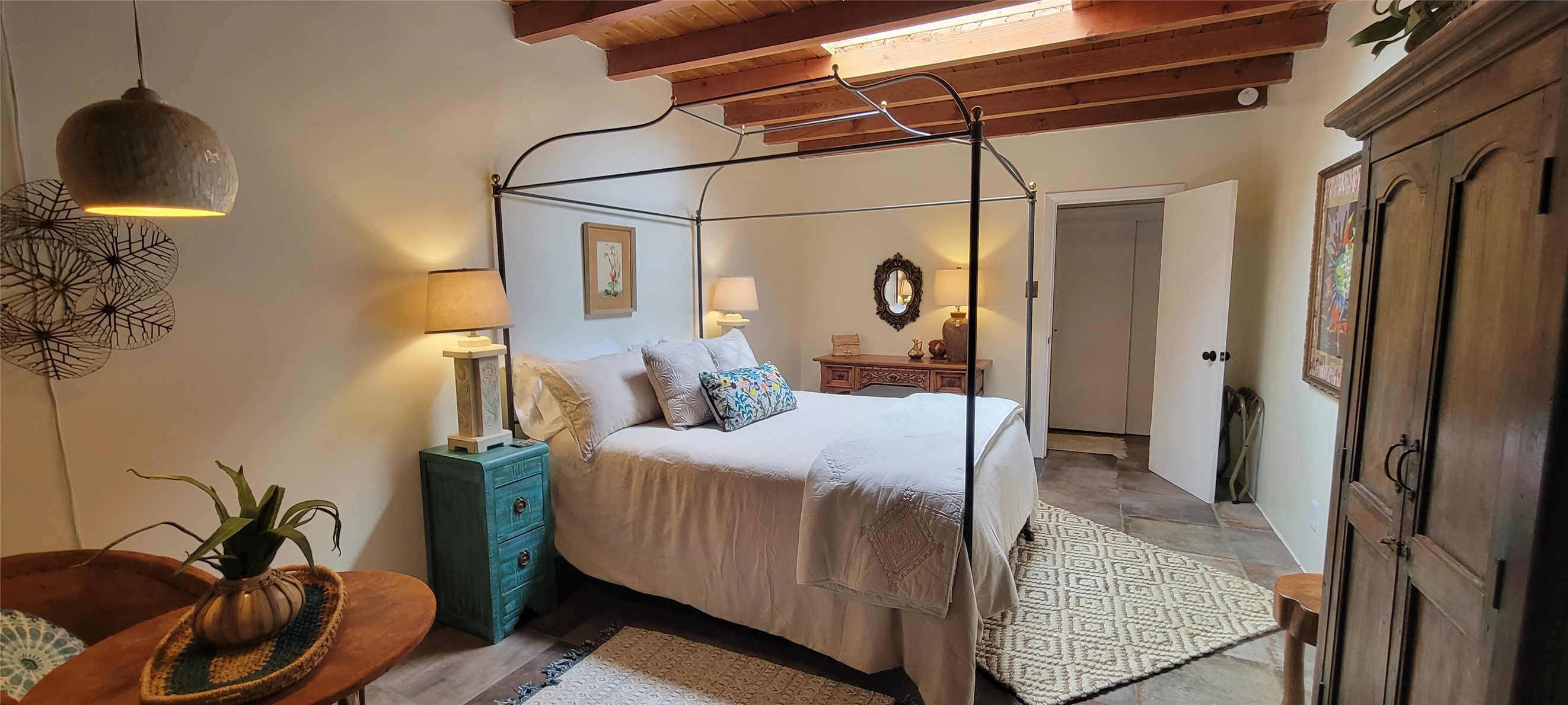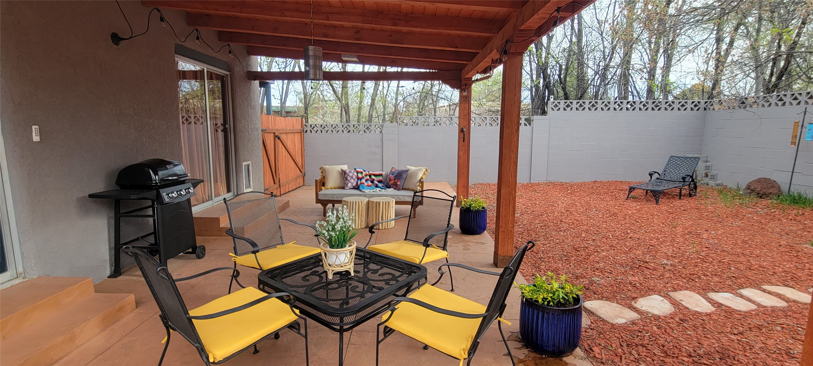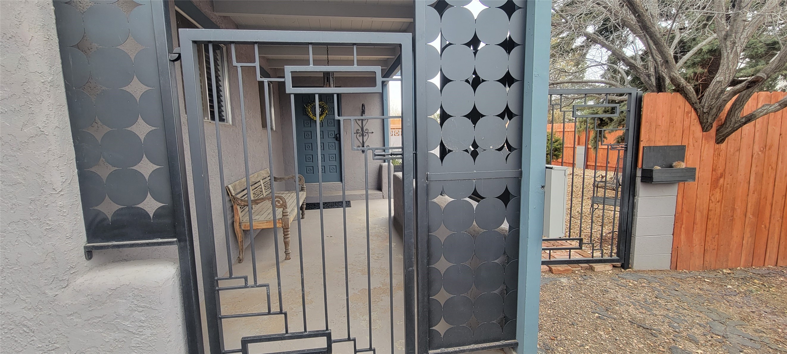 Santa Fe Style adorable classic pueblo! Bright airy sunny living room, original working kiva fireplace, amazing viga ceilings throughout provide warm, rustic ambiance. Well insulated quiet bedrooms w/ fabulous skylights. Owner's suite has private bath, tiled shower, walk-in closet. Gorgeous kitchen, stunning tile, granite counters, gas range, newer dishwasher & disposal. DR flows from Kitchen to LR for carefree entertaining. Charming hand-painted stenciled walls, unique lighting, Central HVAC system, new sinks/fixtures in both BAs. Murphy bed in 3rd BR, ideal as a multi-use flex room. Front & back courtyards ready for great conversation, morning coffee, or relax in the hot tub. Lots of extras: Wrought iron custom gates/fencing for front courtyard. Awesome covered back porch, attached carport for two cars, driveway space for two more cars, large insulated storage building has built in shelving & electricity. Hot tub, one year old cover. Beautiful apricot trees front & back, mature landscaping. Built in 1968 by Santa Fe builder Allen Stamm, Stamm's classic pueblo structures are synonymous with solid, well-built homes and are considered icons of the Santa Fe style in the Santa Fe market. Say you own a Stamm home, and you receive nods of approval from the locals. Lovingly named Casa de Flora, close to Frenchy's Park, only 2.8 miles from the Plaza, convenient to everything old & new in Santa Fe with a perfect location. Discover Santa Fe's culture, rich heritage & deep history through architecture, art, festivals, cuisine, performing arts and museums. The City Different feels like no other city in the World. A fascinating blend of Native American and Spanish cultures, all of it could be right on your doorstep! 2005 UNESCO Creative City Designation, 3rd largest art market in US, 250+ art galleries, 18 performing arts venues. Santa Fe is surrounded by 1.6 million acres of public land perfect for hiking, biking, camping, sightseeing. 300 sunny days a year! Owner GA Licensee.
