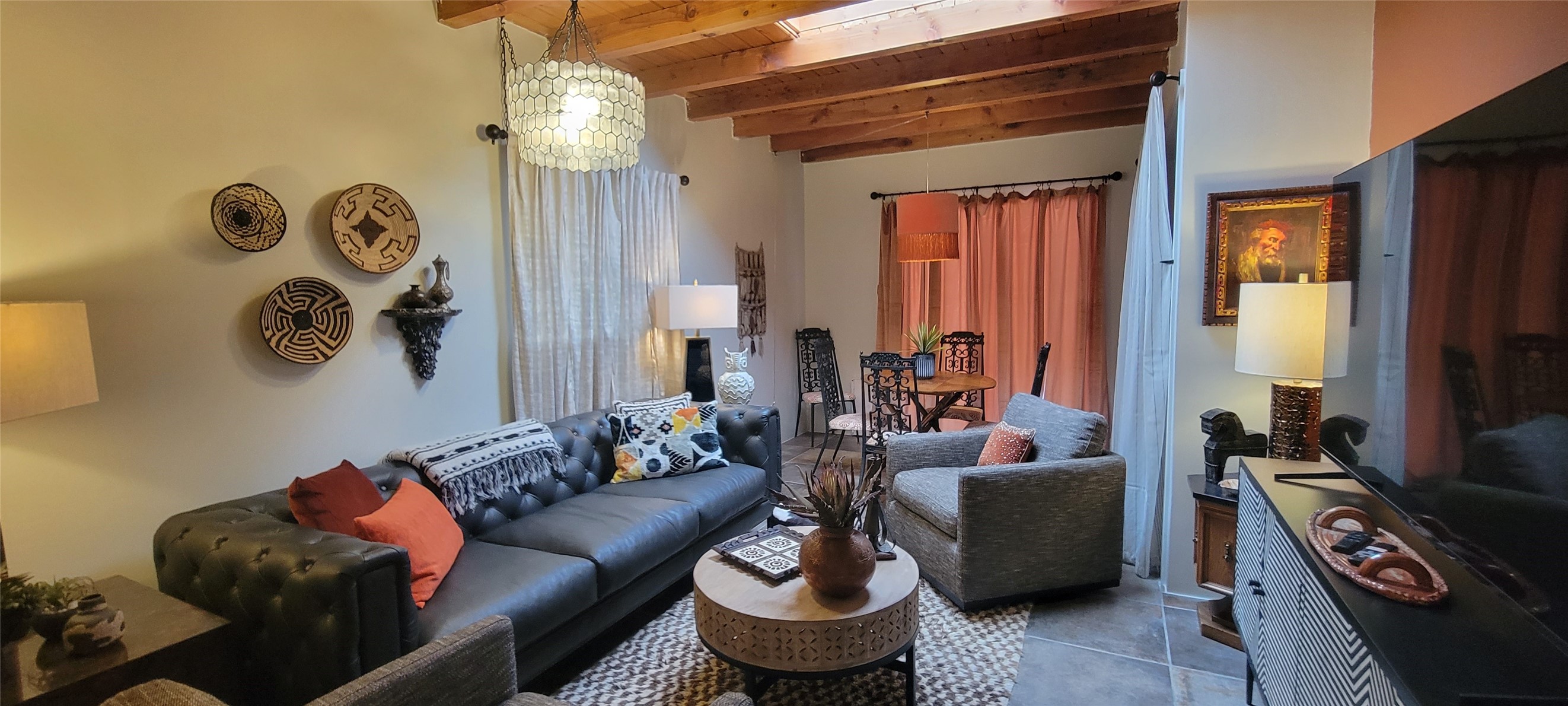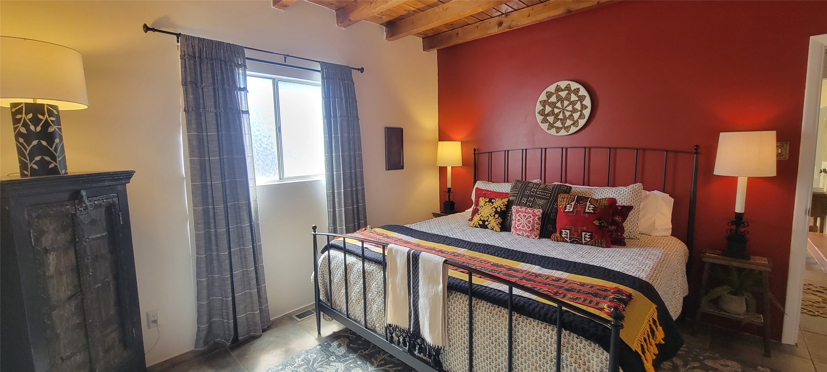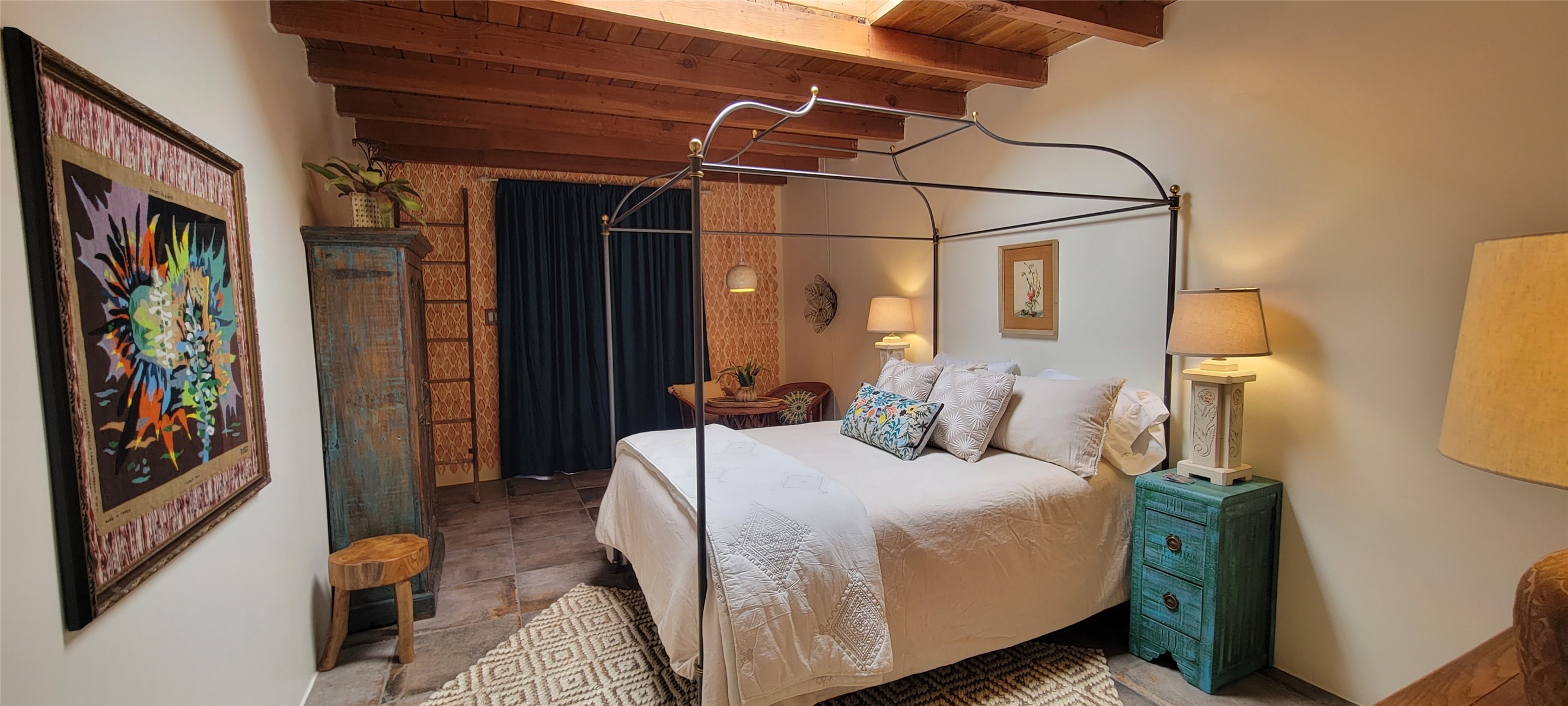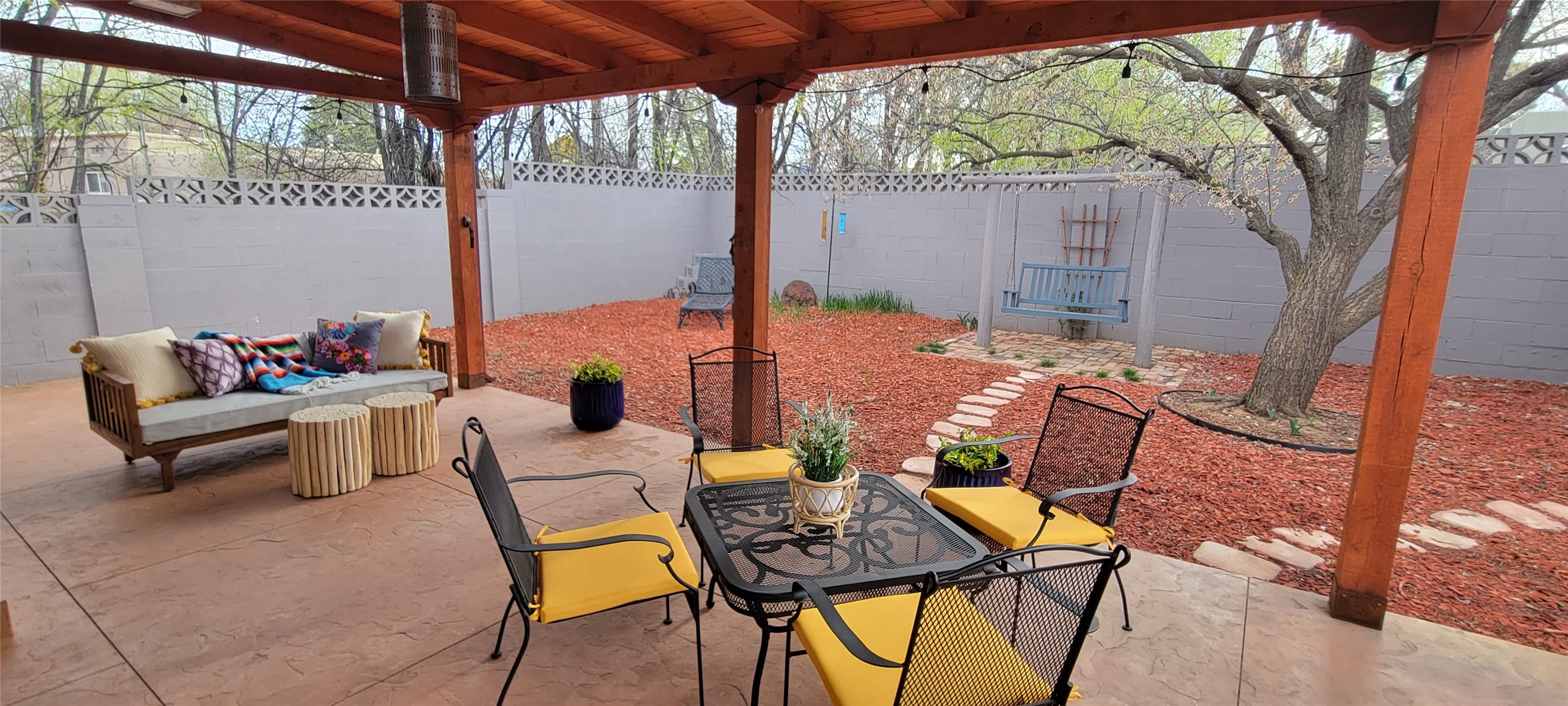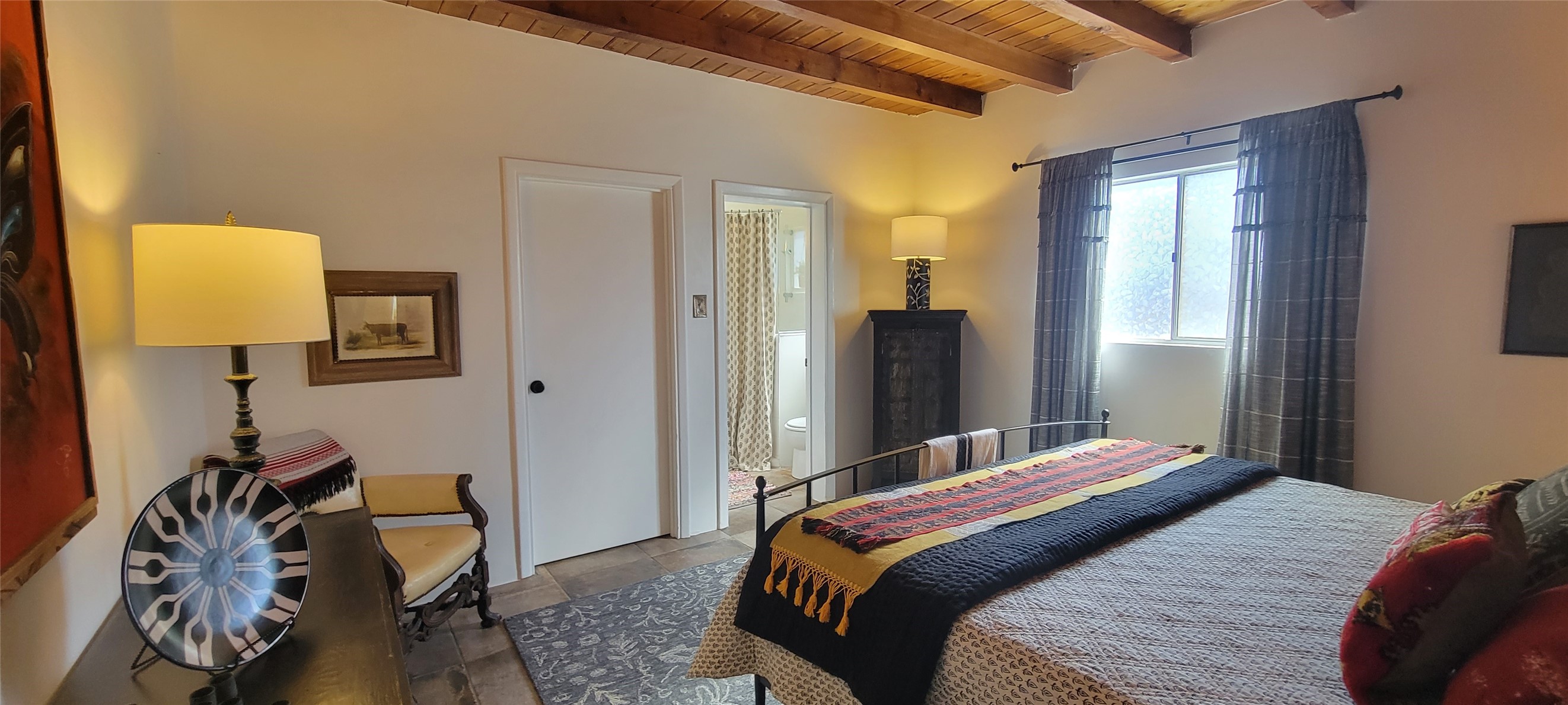 Santa Fe Style adorable classic pueblo! Bright airy sunny living room, original working kiva fireplace, amazing viga ceilings throughout provide warm, rustic ambiance. Well insulated quiet bedrooms w/ fabulous skylights. Owner's suite has private bath, tiled shower, walk-in closet. Gorgeous kitchen, stunning tile, granite counters, gas range, newer dishwasher & disposal. DR flows from Kitchen to LR for carefree entertaining. Charming hand-painted stenciled walls, unique lighting, Central HVAC system, new sinks/fixtures in both BAs. Murphy bed in 3rd BR, ideal as a multi-use flex room. Front & back courtyards ready for great conversation, morning coffee, or relax in the hot tub. Lots of extras: Wrought iron custom gates/fencing for front courtyard. Awesome covered back porch, attached carport for two cars, driveway space for two more cars, large insulated storage building has built in shelving & electricity. Hot tub, one year old cover. Beautiful apricot trees front & back, mature landscaping. Built in 1968 by Santa Fe builder Allen Stamm, Stamm's classic pueblo structures are synonymous with solid, well-built homes and are considered icons of the Santa Fe style in the Santa Fe market. Say you own a Stamm home, and you receive nods of approval from the locals. Lovingly named Casa de Flora, close to Frenchy's Park, only 2.8 miles from the Plaza, convenient to everything old & new in Santa Fe with a perfect location. Discover Santa Fe's culture, rich heritage & deep history through architecture, art, festivals, cuisine, performing arts and museums. The City Different feels like no other city in the World. A fascinating blend of Native American and Spanish cultures, all of it could be right on your doorstep! 2005 UNESCO Creative City Designation, 3rd largest art market in US, 250+ art galleries, 18 performing arts venues. Santa Fe is surrounded by 1.6 million acres of public land perfect for hiking, biking, camping, sightseeing. 300 sunny days a year! Owner GA Licensee.