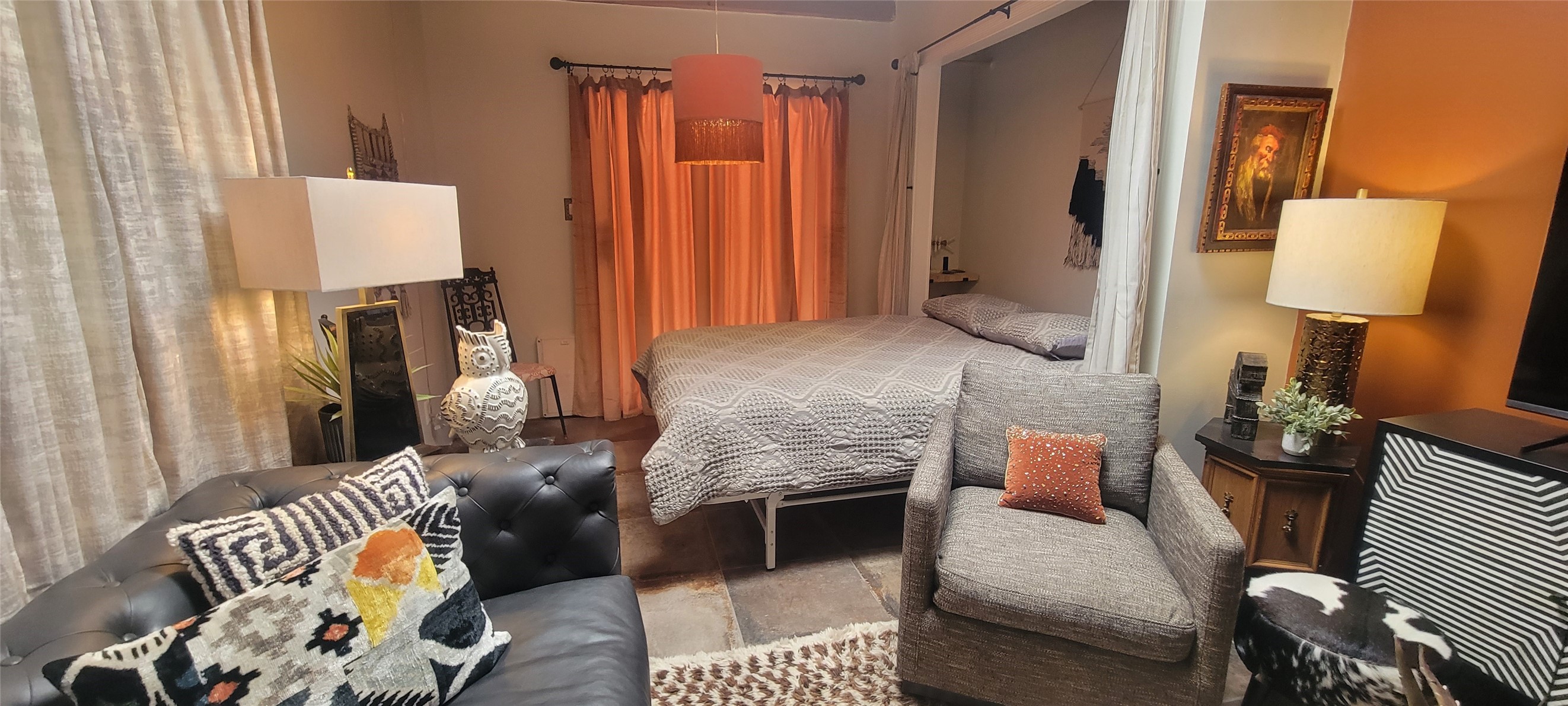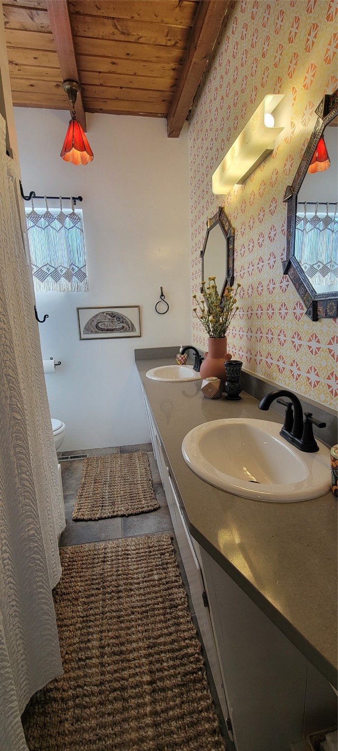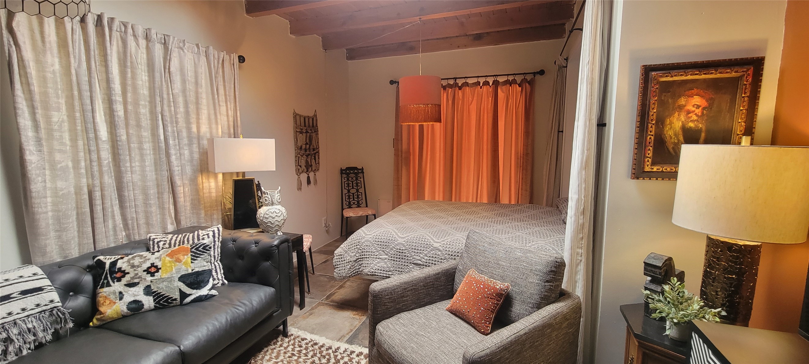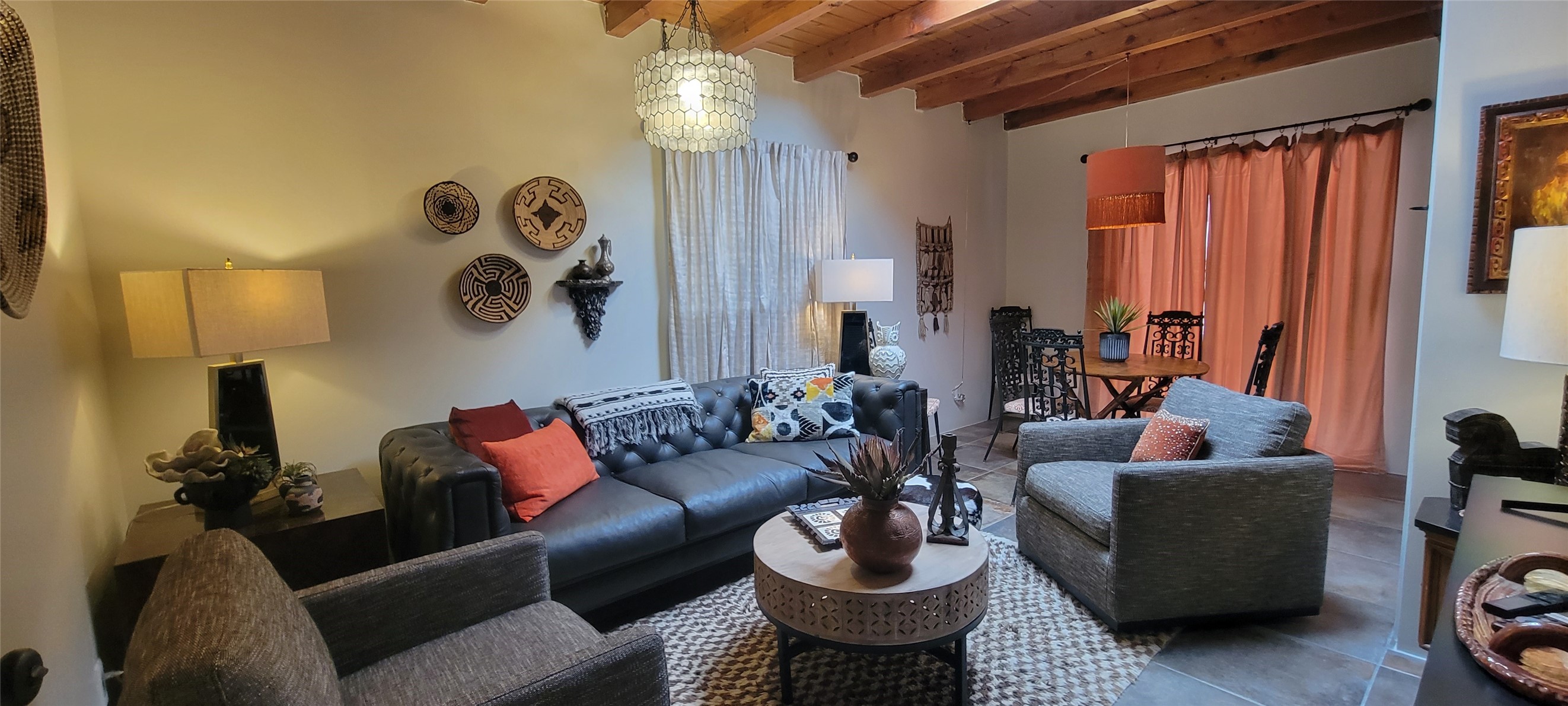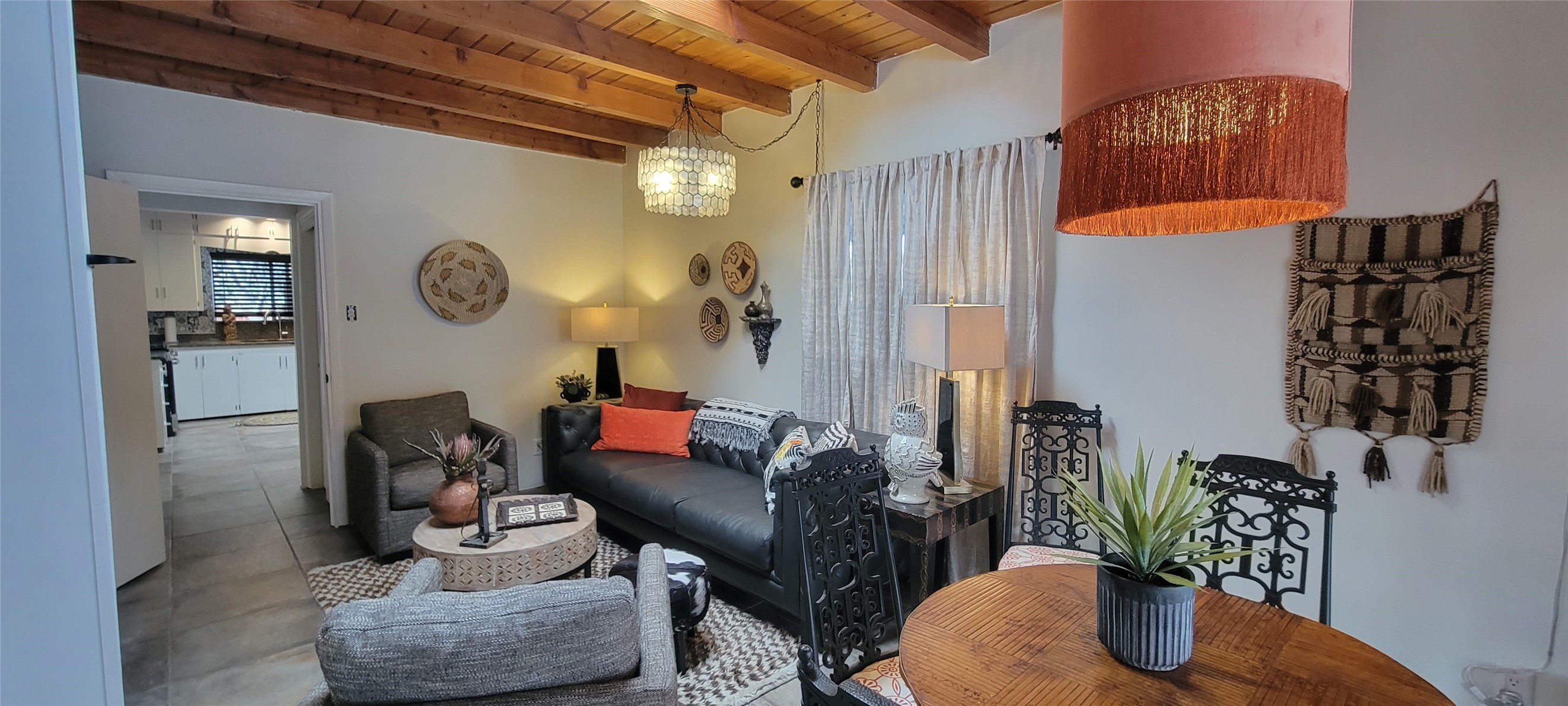 Santa Fe Style adorable classic pueblo! Bright airy sunny living room, original working kiva fireplace, amazing viga ceilings throughout provide warm, rustic ambiance. Well insulated quiet bedrooms w/ fabulous skylights. Owner's suite has private bath, tiled shower, walk-in closet. Gorgeous kitchen, stunning tile, granite counters, gas range, newer dishwasher & disposal. DR flows from Kitchen to LR for carefree entertaining. Charming hand-painted stenciled walls, unique lighting, Central HVAC system, new sinks/fixtures in both BAs. Murphy bed in 3rd BR, ideal as a multi-use flex room. Front & back courtyards ready for great conversation, morning coffee, or relax in the hot tub. Lots of extras: Wrought iron custom gates/fencing for front courtyard. Awesome covered back porch, attached carport for two cars, driveway space for two more cars, large insulated storage building has built in shelving & electricity. Hot tub, one year old cover. Beautiful apricot trees front & back, mature landscaping. Built in 1968 by Santa Fe builder Allen Stamm, Stamm's classic pueblo structures are synonymous with solid, well-built homes and are considered icons of the Santa Fe style in the Santa Fe market. Say you own a Stamm home, and you receive nods of approval from the locals. Lovingly named Casa de Flora, close to Frenchy's Park, only 2.8 miles from the Plaza, convenient to everything old & new in Santa Fe with a perfect location. Discover Santa Fe's culture, rich heritage & deep history through architecture, art, festivals, cuisine, performing arts and museums. The City Different feels like no other city in the World. A fascinating blend of Native American and Spanish cultures, all of it could be right on your doorstep! 2005 UNESCO Creative City Designation, 3rd largest art market in US, 250+ art galleries, 18 performing arts venues. Santa Fe is surrounded by 1.6 million acres of public land perfect for hiking, biking, camping, sightseeing. 300 sunny days a year! Owner GA Licensee.