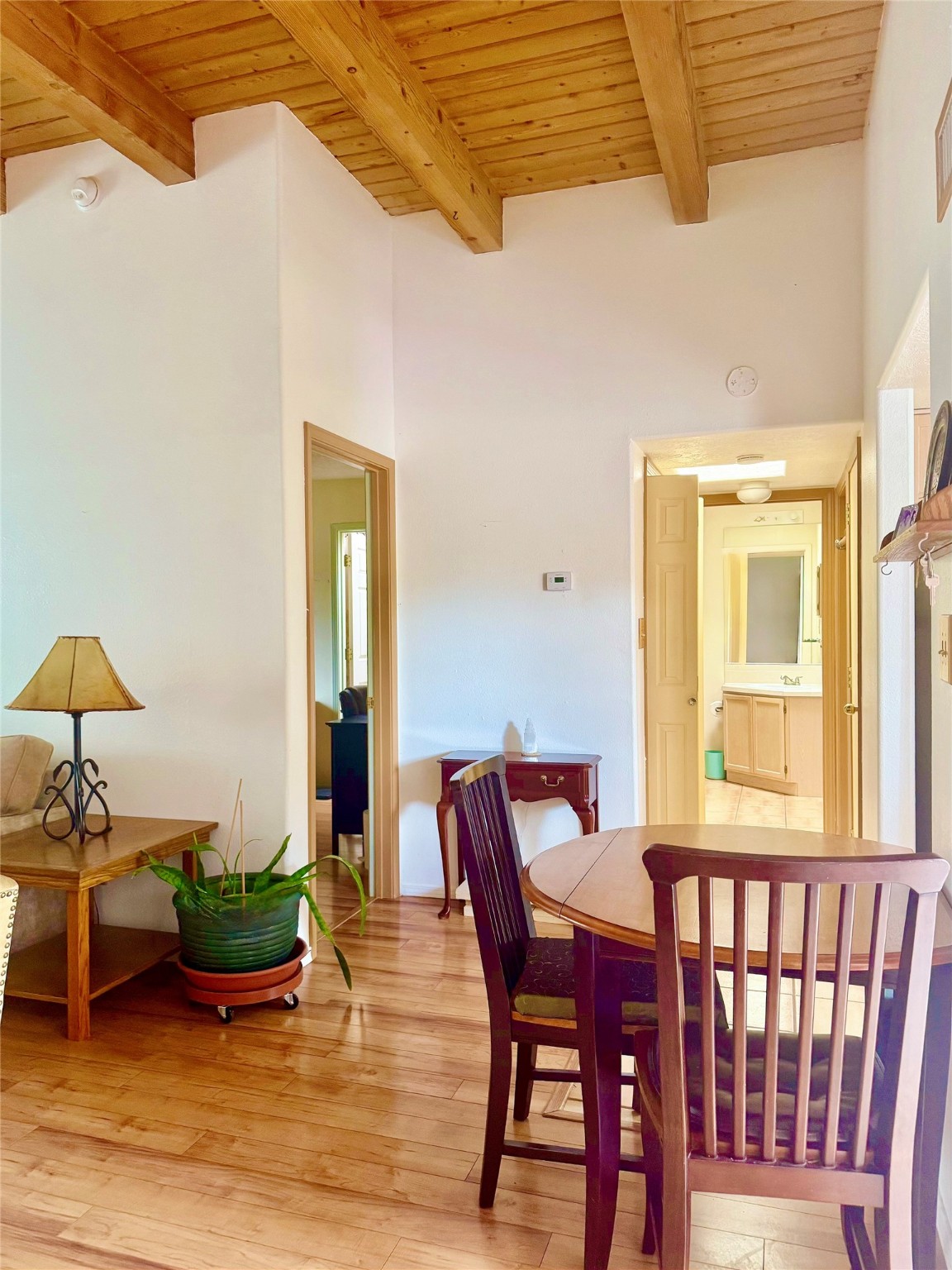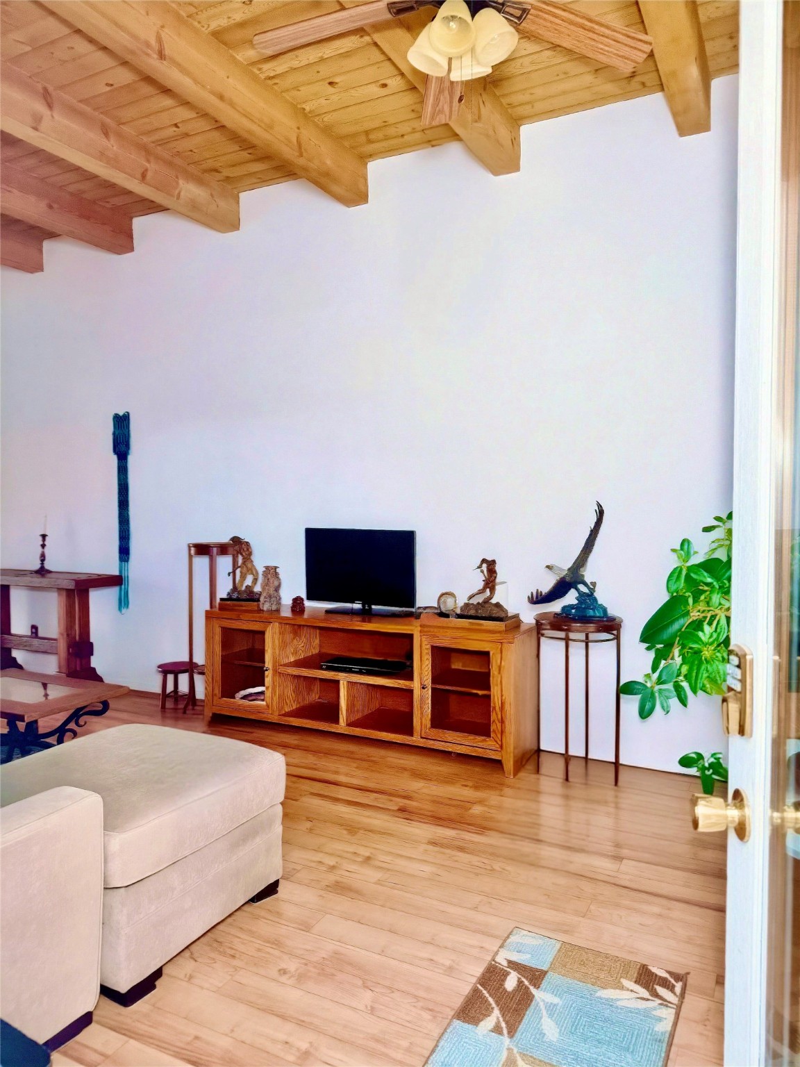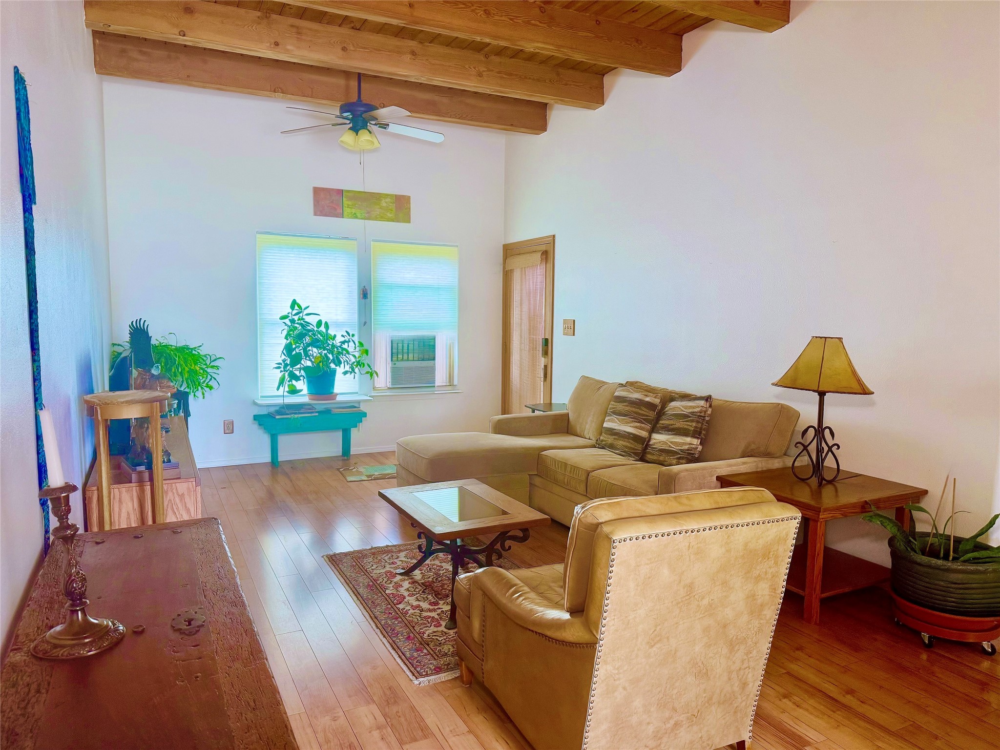 Welcome to 1084 Avenida Linda--a charming 2-bedroom, 2-bathroom residence offering comfort, character, and convenience. Step inside to a living room with soaring ceilings accented by beautiful vigas, creating an open and airy Southwestern feel. The primary suite offers a private bath, access to the fenced backyard, and plenty of natural light. The backyard backs directly to Las Acequias Park, giving you both privacy and easy access to walking trails and a tranquil open space. Located in a convenient Santa Fe neighborhood, this home is close to parks, schools, and shopping, with quick access to Airport Rd, Cerrillos Rd, Rufina St., and Agua Fria St. Whether you're looking for your first home, downsizing, or seeking a Santa Fe retreat, this inviting property has so much to offer. Schedule a showing today!
