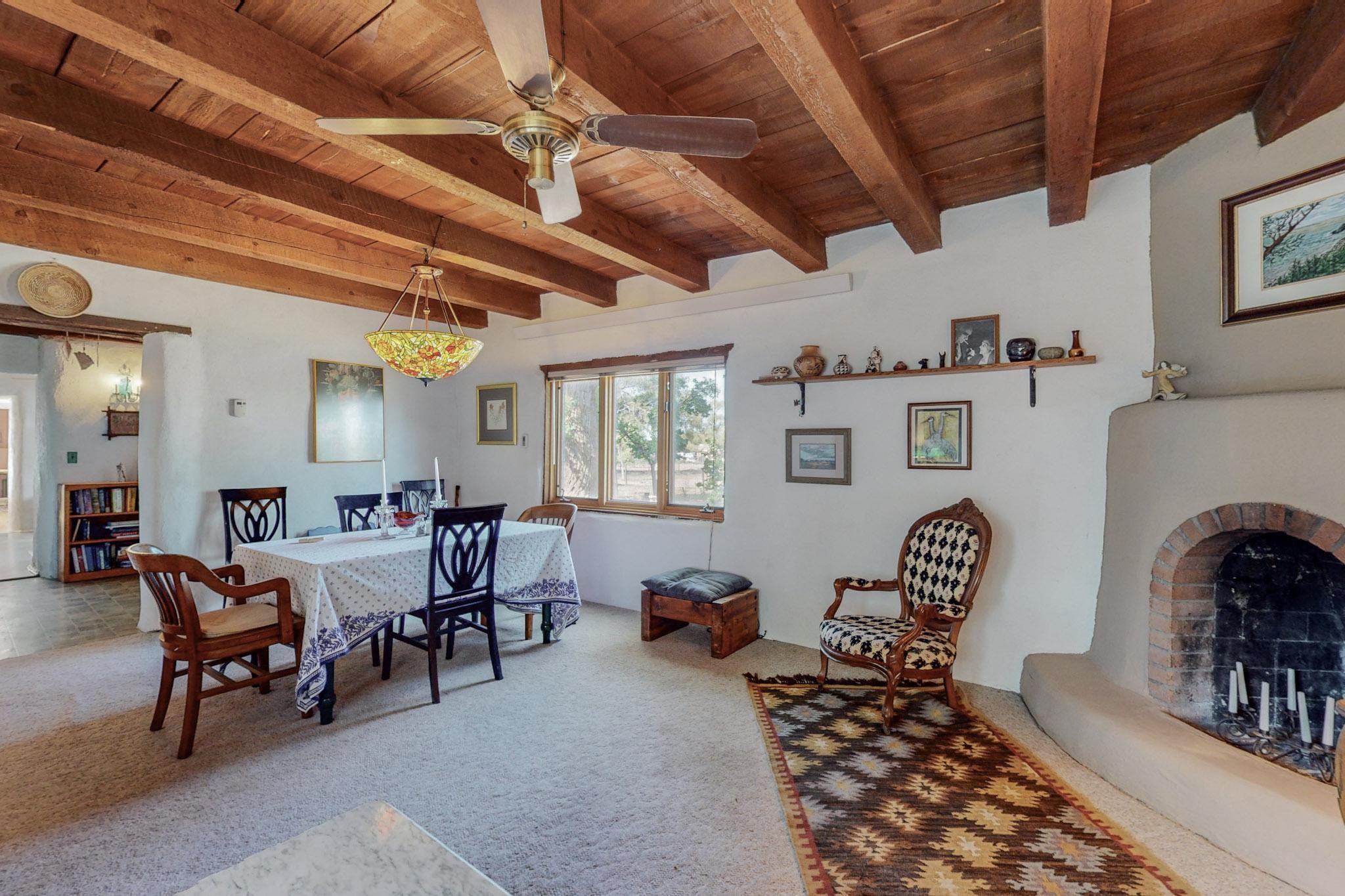 See this well-maintained 200-year-old Santa Fe-style adobe home! This historic gem comes with a new septic tank, a clean well inspection, and a one-year home warranty for added peace of mind. The home features 3-foot thick adobe walls that naturally regulate temperature, offering comfort in every season. Additions were made in the 1950s and 1990s. With its rustic charm and rich history, this property is a rare find. The expansive outdoor space includes a full workshop, carport, horse barn, & multiple private patio areas, perfect for serene mornings and starlit evenings. Most of the house is wheelchair accessible. With 2 separate .75-acre lots totaling 1.5 acres, there's potential to build on the second lot & room to accommodate animals. Don't miss your chance to own a piece of NM History.