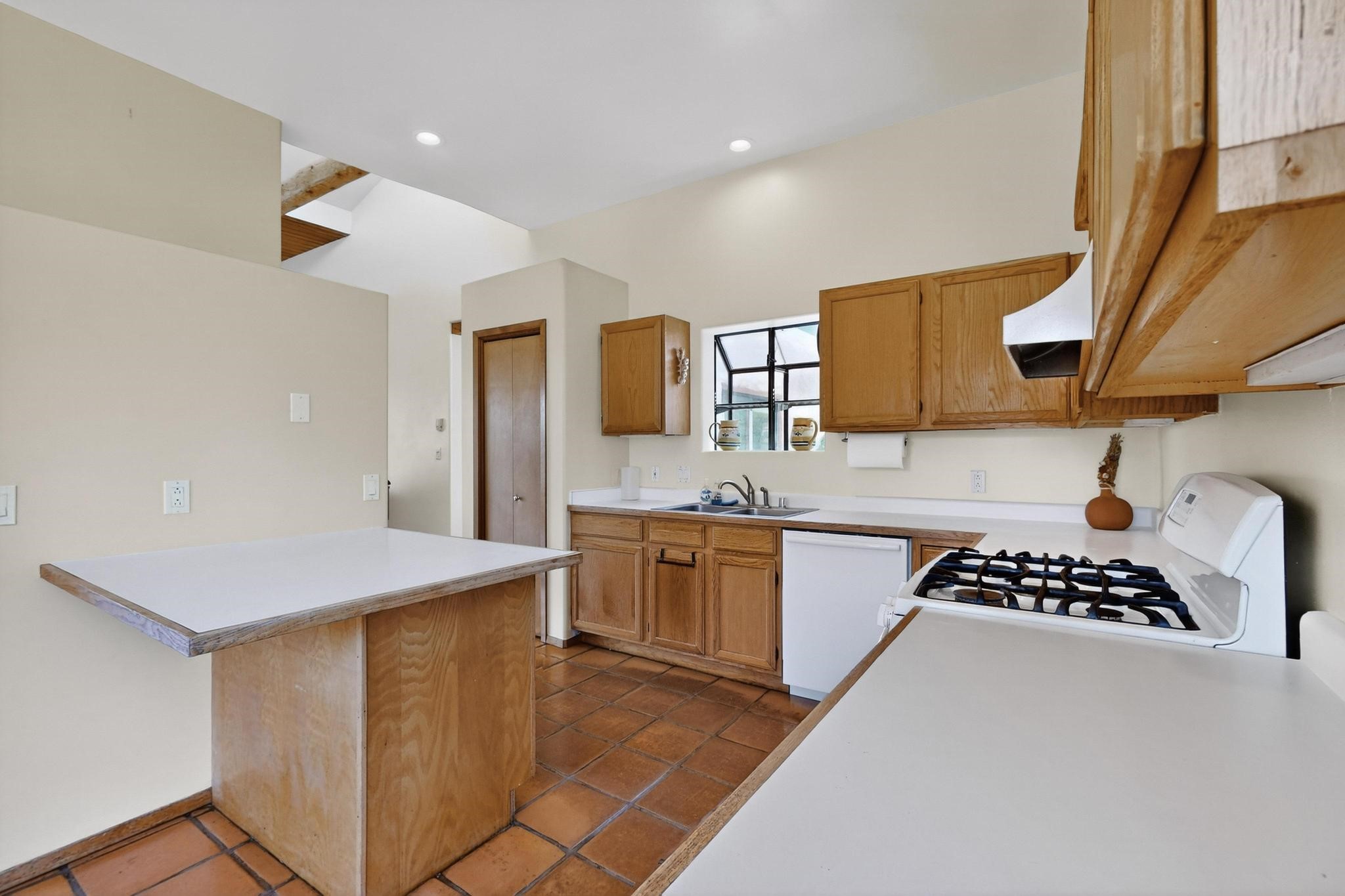 Offering absolutely stunning views of the Southern Rocky Mountains, this home and 5 acre property offers tranquil country living and is only ~15 minutes to the vibrant heart of downtown Santa Fe. This pueblo style two bedroom 2 bath home features exposed vigas, a stunning kiva fireplace, talavera tile accents, clearstory windows , and wonderful outdoor flagstone patio's. Other notable features include a newer TPO roof with transferable warranty, private well, radiant in floor heating, new water heater, and a couple of sheds for your storage needs. This amazing 5 acre property is very usable and can accommodate further development if desired.