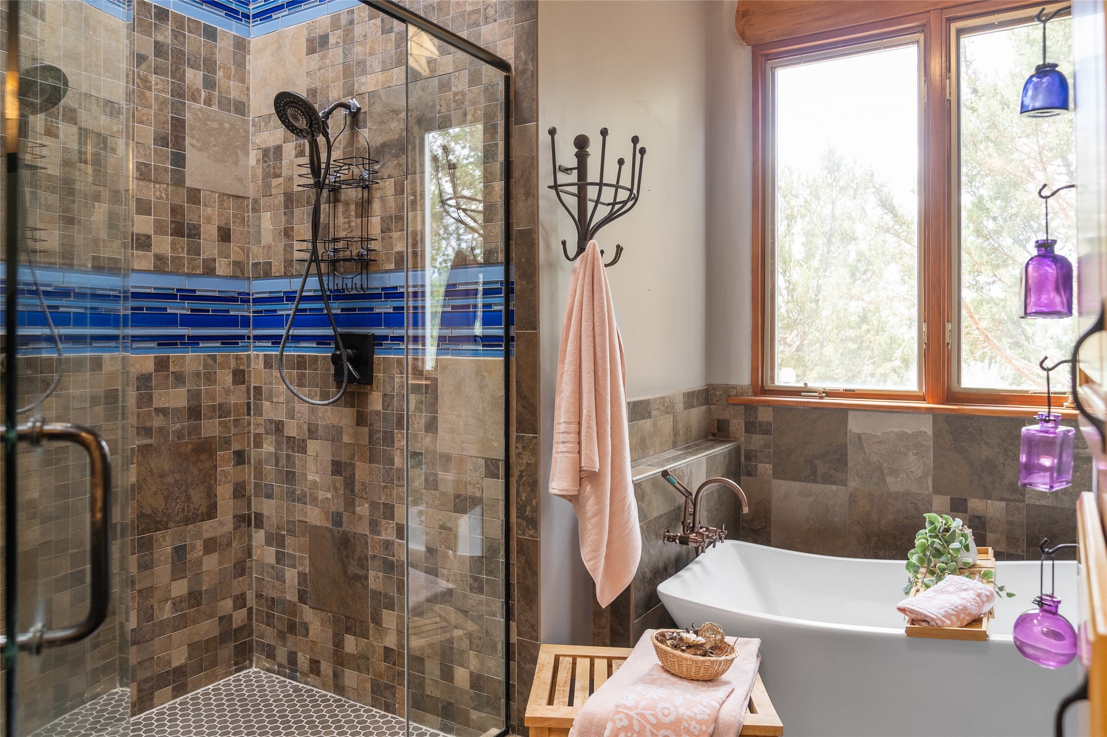Just 10 minutes from downtown Santa Fe, this 3,255 sq. ft. 4-bedroom, 2.5-bath home on 2.5 acres offers the perfect blend of country living and city convenience. With a private well, a 3-car garage plus storage area, and rich Southwestern character, this one-of-a-kind property is a peaceful retreat with personality and presence. Step inside to soaring spaces and abundant natural light. The open-concept living, kitchen, and dining areas are unified yet distinct, each defined by vaulted ceilings and architectural detail. The main living room--anchored by a striking fireplace--features 14-foot viga ceilings and generous windows that fill the space with natural light. The formal dining room, with its vaulted ceiling of vigas and latillas, is illuminated by dramatic clerestory windows. A raised kiva fireplace creates a warm connection between the dining room and kitchen. The kitchen is both vibrant and functional, featuring a vaulted, beamed ceiling, extensive countertops, a central cooking island with bar seating, and a colorful half-circle stained glass window that echoes the kitchen's playful palette. A connected breakfast nook offers the perfect spot for casual dining. The spacious primary suite is a private sanctuary with soaring ceilings, a floor-to-ceiling kiva fireplace, and a 650 sq. ft. private deck with a cozy gazebo for relaxing outdoors. The ensuite bath features high ceilings, vivid blue tile, and a dramatic walk-in shower that feels like a personal spa. The guest wing offers three additional bedrooms--one currently serving as a game room with a pool table--and a beautifully updated full bathroom.With privacy, style, and unmistakable Southwestern charm, this exceptional property is a rare opportunity just minutes from the heart of Santa Fe.
