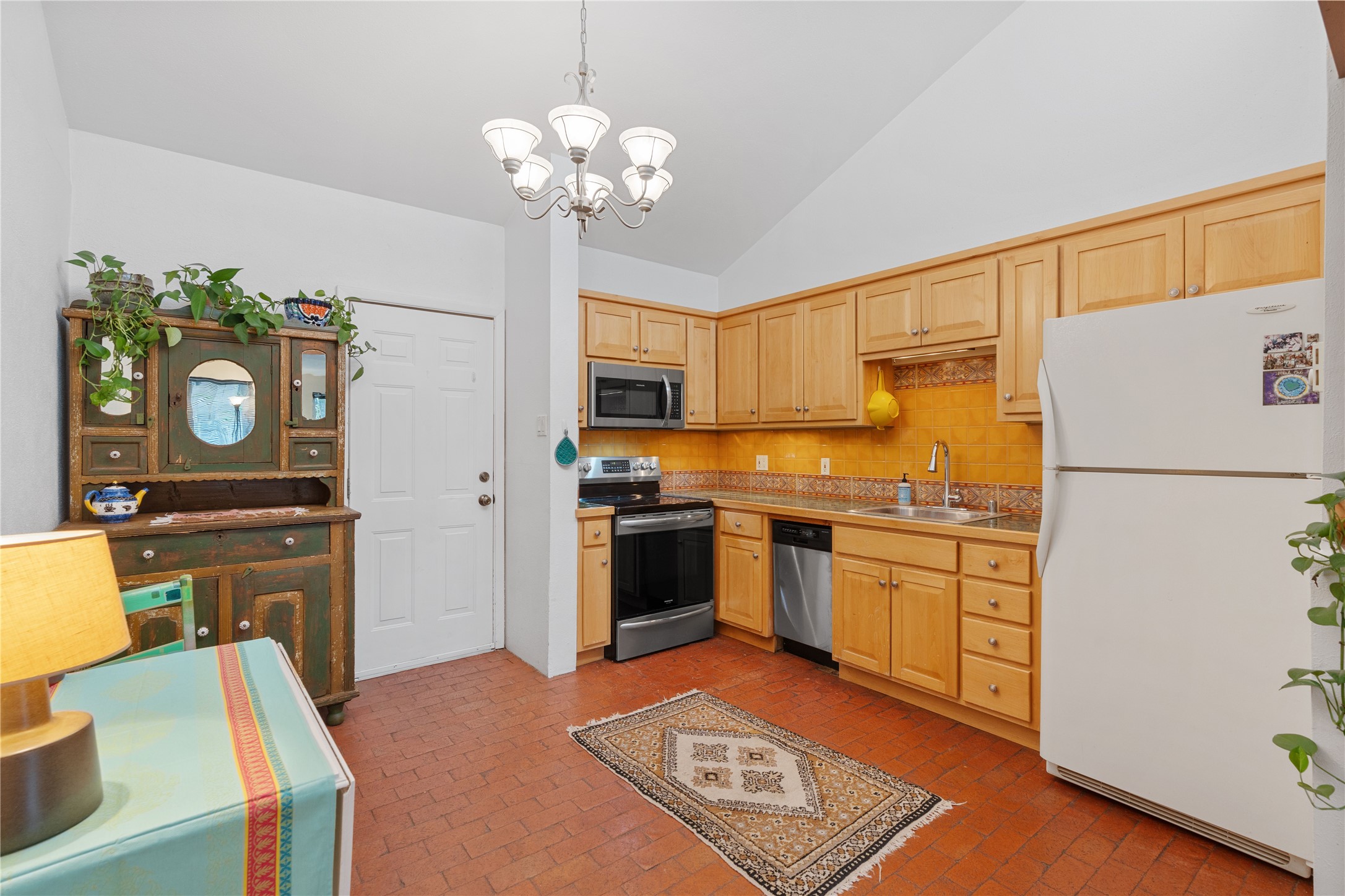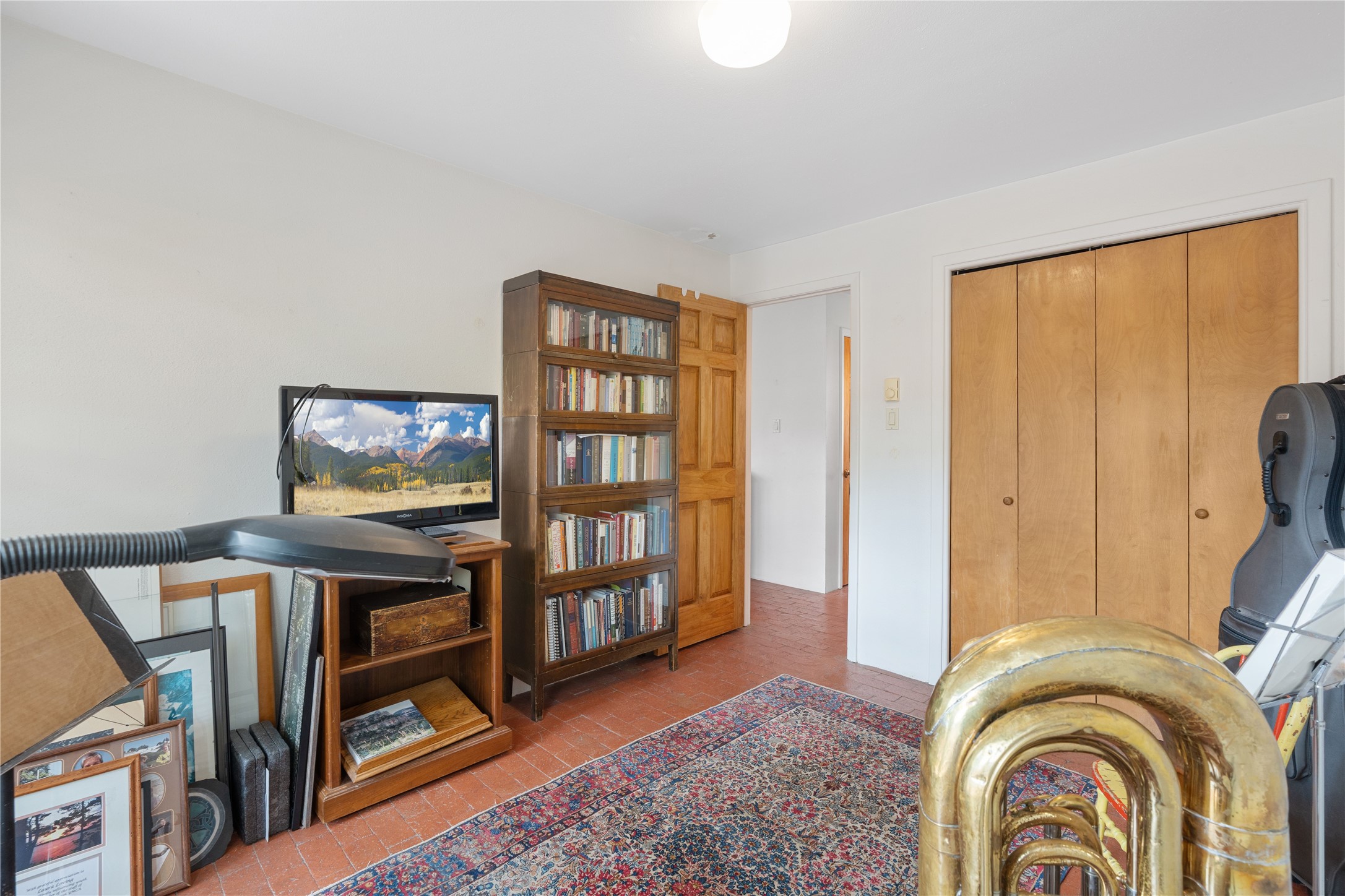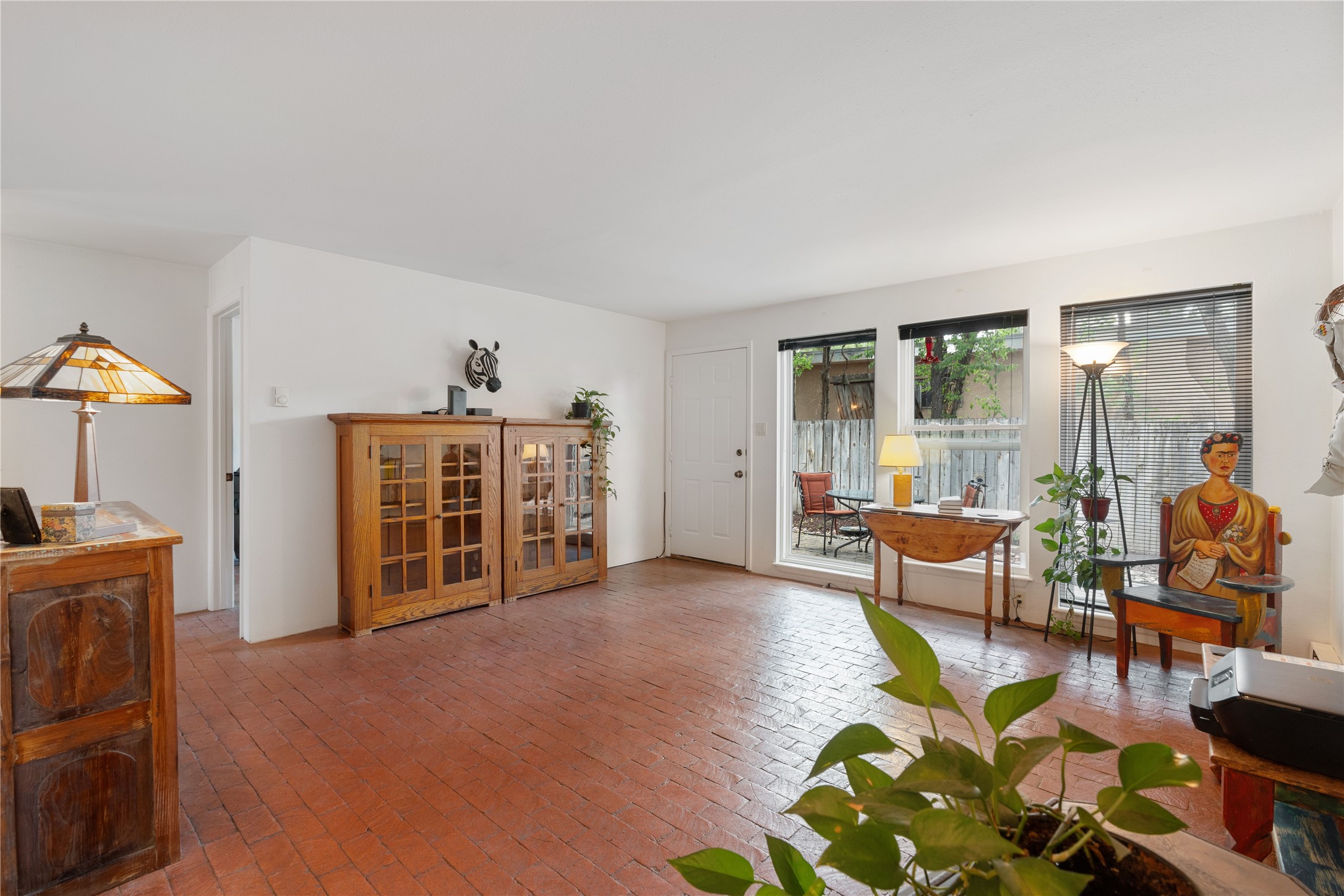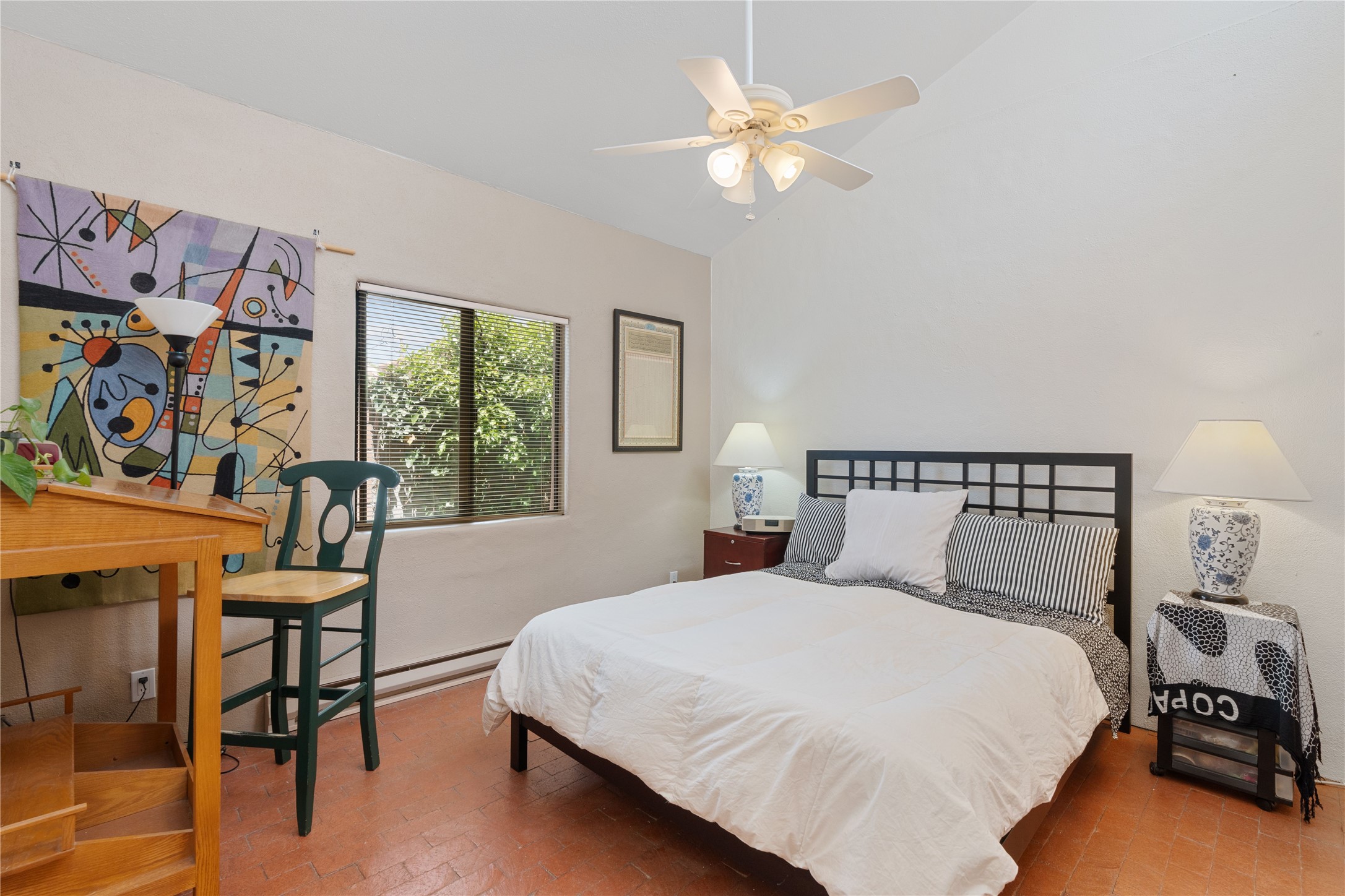 Tucked away on a quiet, tree-lined street, this two-bedroom, one-bath condo offers the perfect blend of privacy and convenience. Located just a short stroll from the vibrant downtown plaza, farmer's market, local galleries, restaurants, and boutique shopping, you'll enjoy the best of in-town living in a serene setting. One of only four units in a peaceful complex, this home features low HOA fees that include insurance and refuse service. Step inside to a warm, open concept living space with brick floors, passive solar design, and a cozy woodburning stove. The new double-pane windows provide natural light while ensuring year-round comfort. Recent upgrades include a new water heater, walk-in shower with safety bars, and a Eurepean-style washer/dryer combo. No steps. Two private patios shaded by mature trees offer ideal outdoor spaces for relaxing or entertaining. Additional perks include two dedicated off-street parking spots. Note: Enter the condo on Ambrosio Street and look for the Sotheby's sign. Please park on the street.
