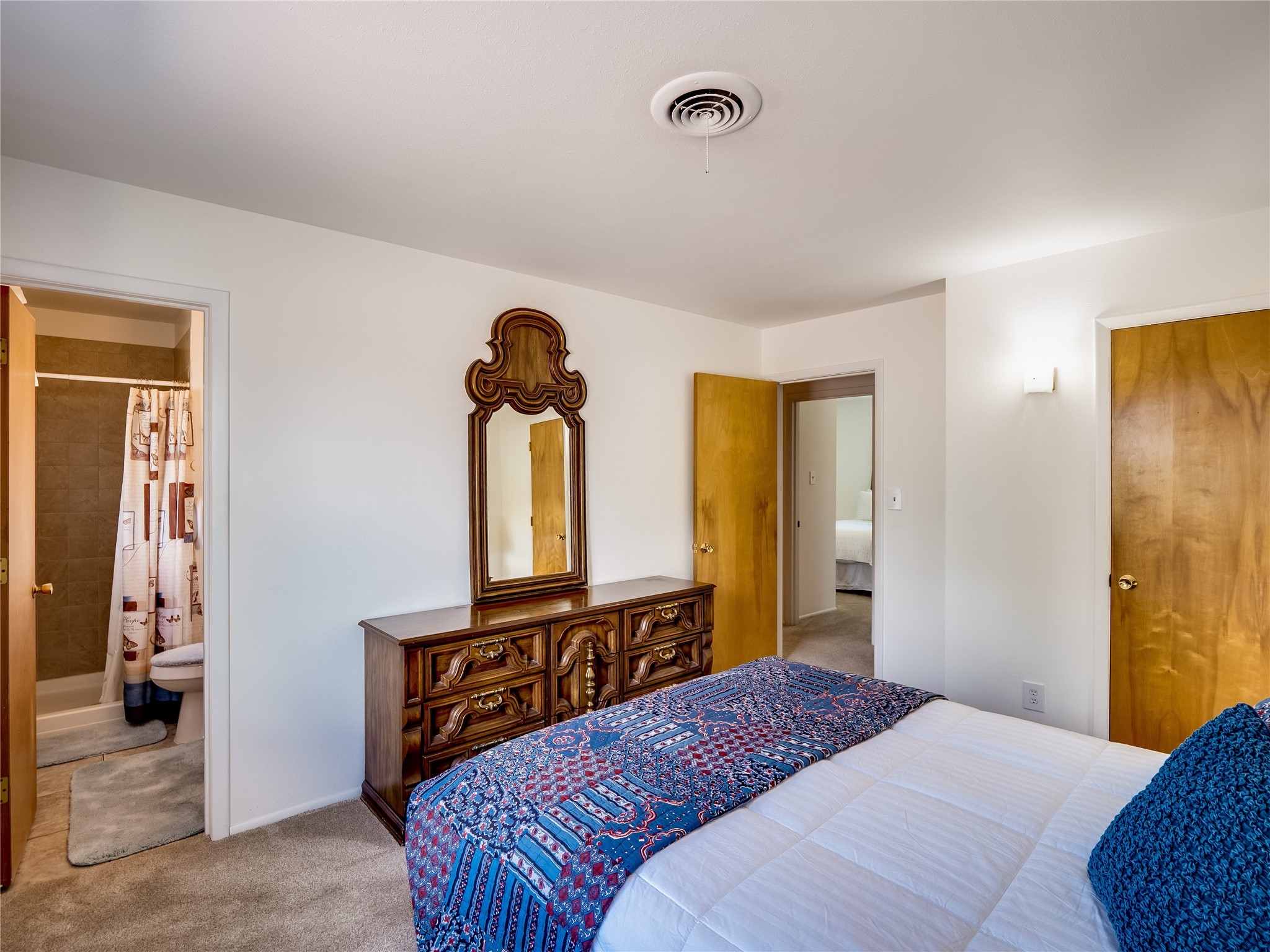 Welcome to this sensational ranch-style home in White Rock with beautiful curb appeal. A lush, green lawn and mature shade trees frame the front of the property, complemented by colorful flower beds that create a warm and inviting entrance. Step inside to find plush carpet flooring that runs throughout, adding comfort and continuity. Just off the entryway to the left is a versatile bonus room or den--ideal for a home office, study, or creative space--framed by elegant pillars that give the area a sense of separation and style. Continue forward into the cozy living room featuring a wood-burning fireplace, perfect for chilly evenings and relaxing with loved ones. The adjacent galley-style kitchen includes wood cabinets with chrome hardware and offers ample prep space, as well as a designated dining area for casual meals A 260 sq. ft. bonus room with access to backyard can be a kids play room, exercise room, a room for arts and crafts, a fifth bedroom or a great man cave! Nearby is access to the two-car garage and a convenient laundry space, providing everyday functionality. Step down into the formal dining room, filled with natural light from the surrounding windows and glass sliders that lead directly to the back patio and yard. Connected to this space is a large family room, offering another access point to the backyard, a perfect setting for gatherings, movie nights, or game days. A beautifully renovated modern guest bathroom with a white single sink vanity and a fully tiled shower/tub combo. At the end of the hall, the spacious primary en-suite overlooks the peaceful backyard and includes a walk-in closet and a private bathroom with a tiled walk-in shower and single sink vanity. The expansive backyard is a true oasis, with a lush green lawn, vibrant flower gardens, and irrigated vegetable planters--perfect for any green thumb. There's also side-yard access to park a vehicle or RV. A large patio area is ideal for outdoor dining and entertaining under the open sky.