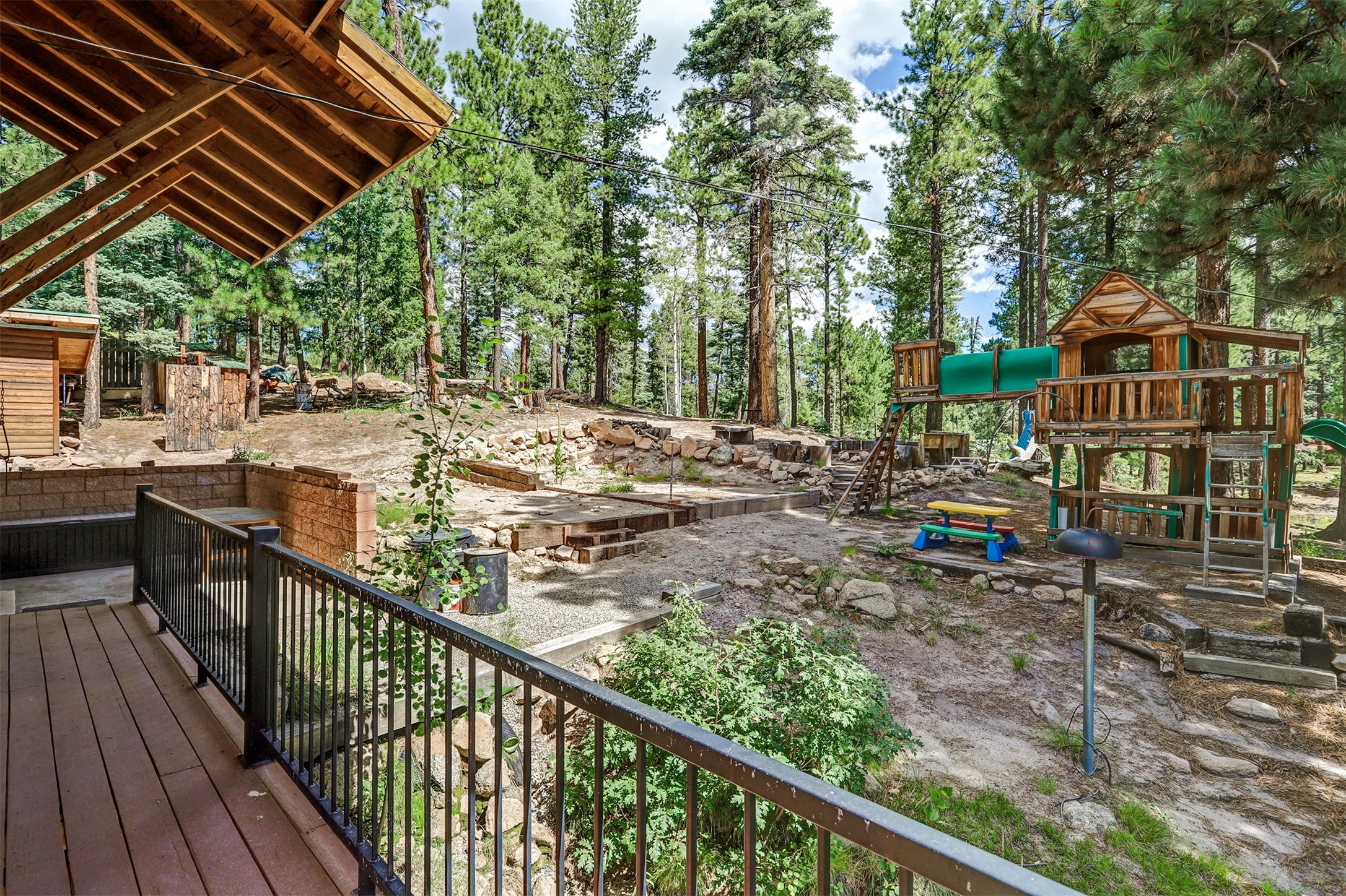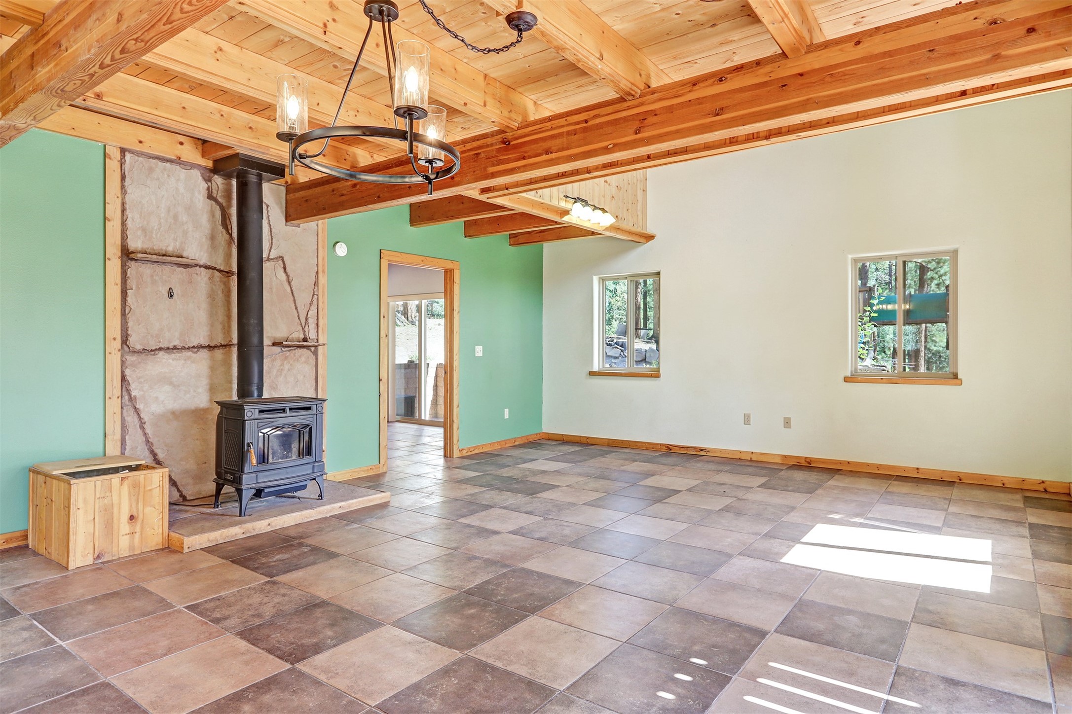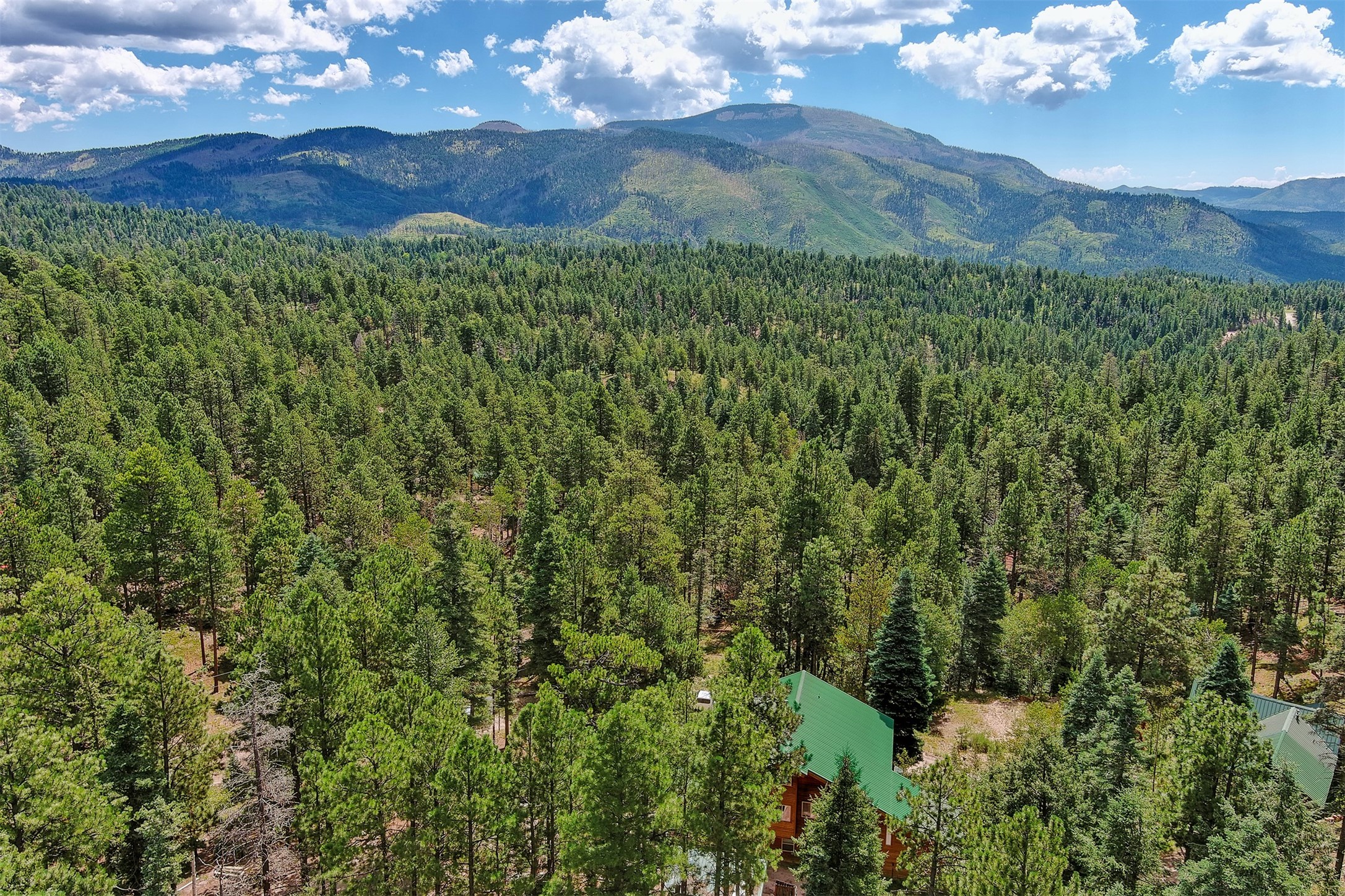 Looking for a mountain home with LOTS of space? This is it! Located on 2 lots in desirable Thompson Ridge Estates, this 3 BR/2 bath home has almost 2800 sf of living space, plus 600 SF loft to boot! Custom built log sided home has plenty of storage, plus an oversized 2 car heated garage/workshop/storage area. Kitchen opens up to the large living area with vaulted tongue and groove ceiling above. Radiant floor heat keeps it warm throughout, plus a centrally located wood stove. Just a short trip to the Valles Caldera and a 45 minute commute to Los Alamos. Enjoy views of Redonda Peak off the upper balcony, take a hike to San Antonio hot springs, cruise on the ATV, fish the area waters and put the city behind! Room for the family and everything else. Come up to the mountains!
