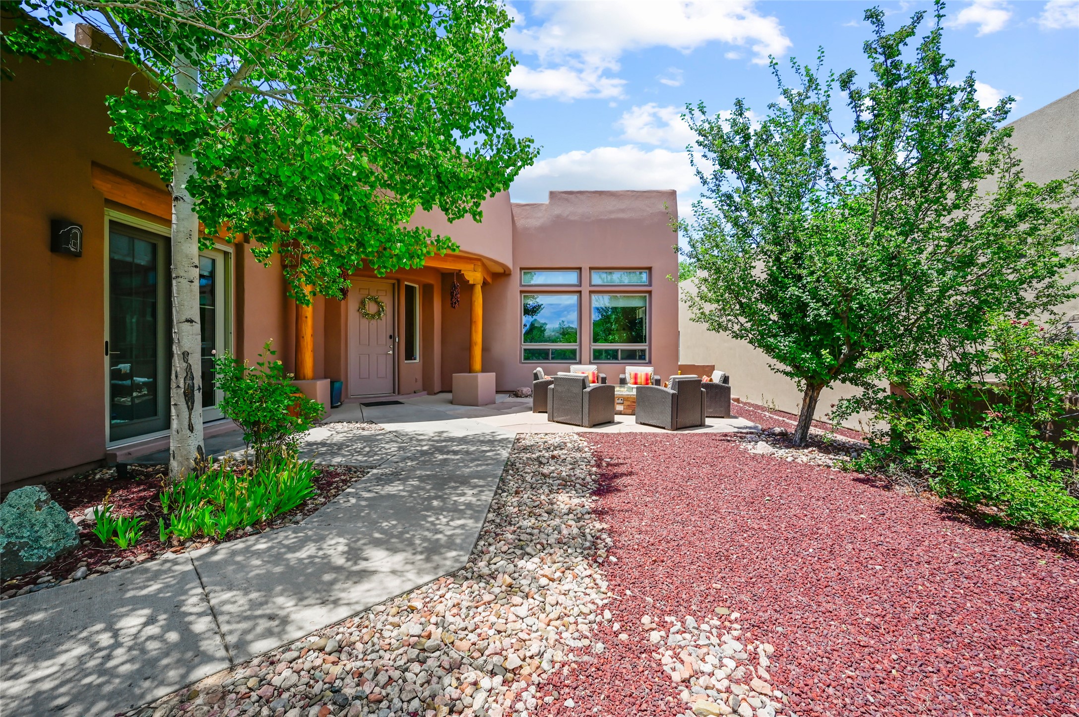 Nestled in the sought-after Windmill Ridge neighborhood of Rancho Viejo, this meticulously maintained 3-BR, 2 BA home offers 1,648 sqft of living space on a partial view lot. Adjacent to green space, walking/riding trails, and nearby parks, the location is ideal for nature lovers and outdoor enthusiasts.Recent updates add modern comfort and style, including stunning wood-look tile flooring in the bedrooms, granite countertops in the kitchen, and all-new energy-efficient appliances. Additional upgrades include a brand new water heater, tankless furnace, water softener, a new foam roof with warranty, new garage door, new windows/blinds, Refrigerated AC w/ Nest Thermostats, California Closet in Master BR, and Simplisafe Security System. Whether you're looking for a turn-key home or a serene retreat within 15 minutes to all of Santa Fe's amenities, this property is a perfect blend of quality, location, and lifestyle in Rancho Viejo.