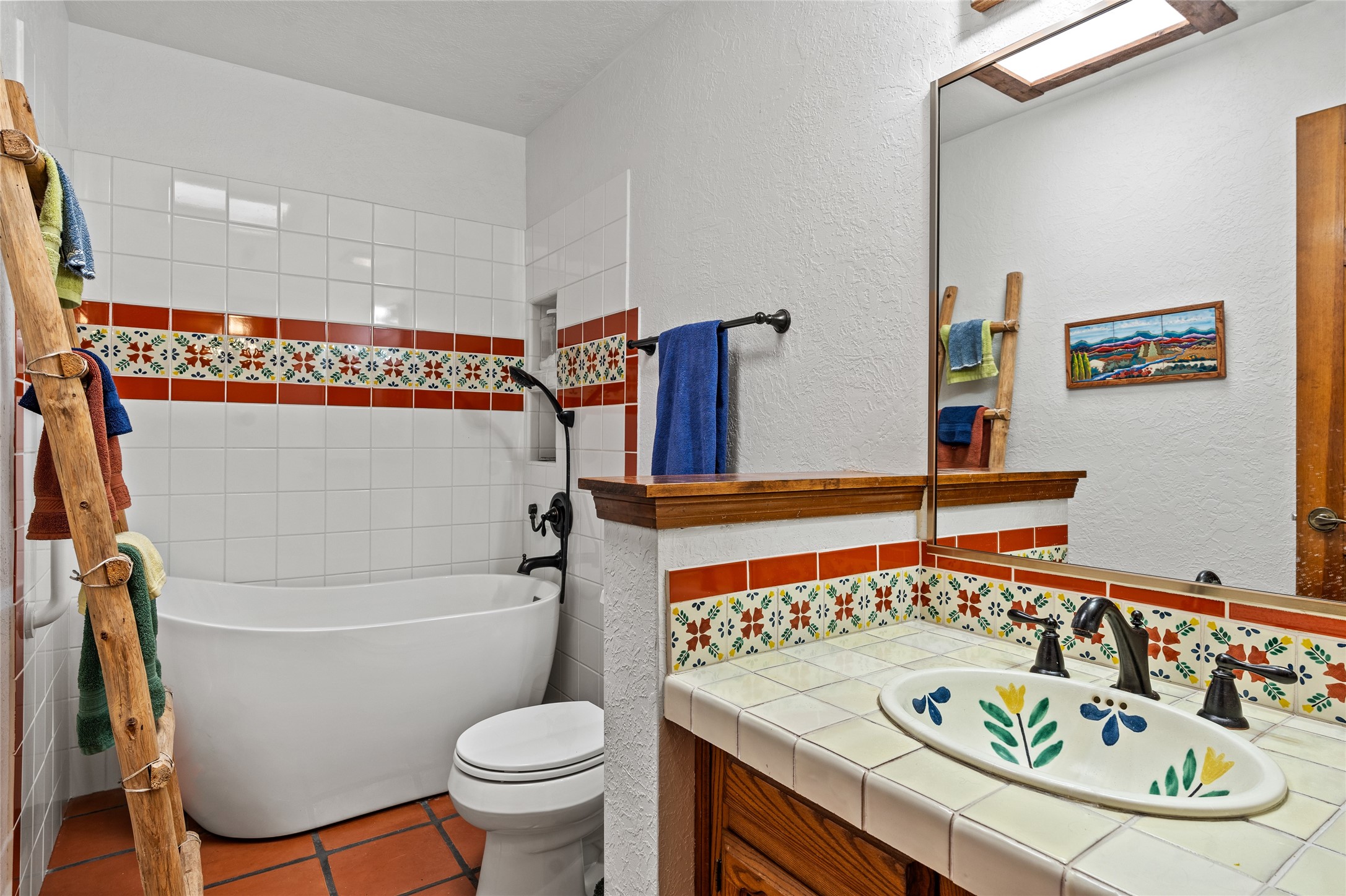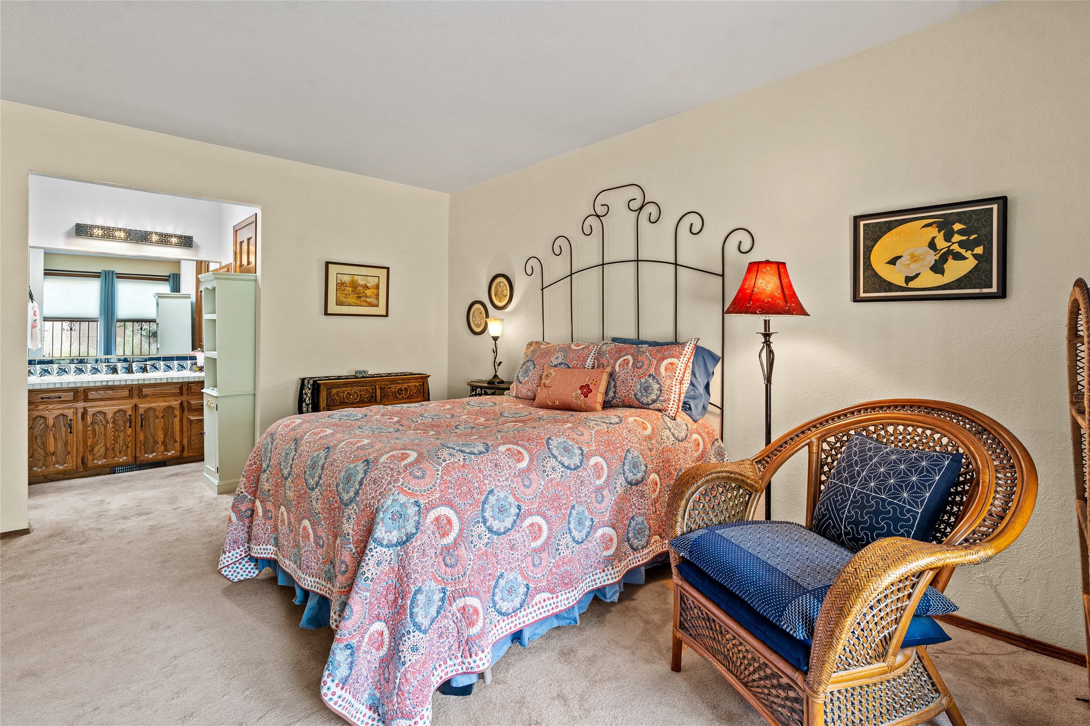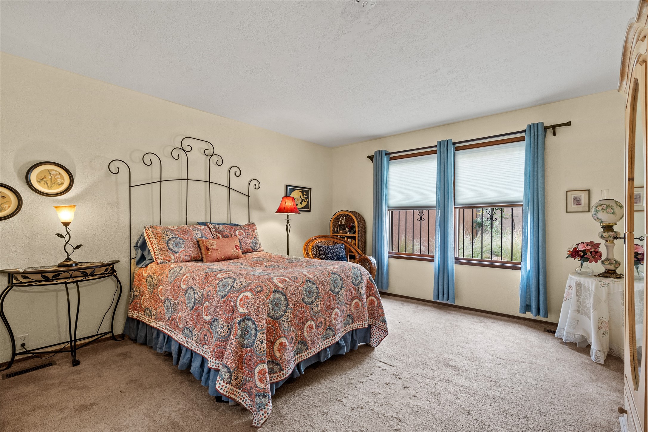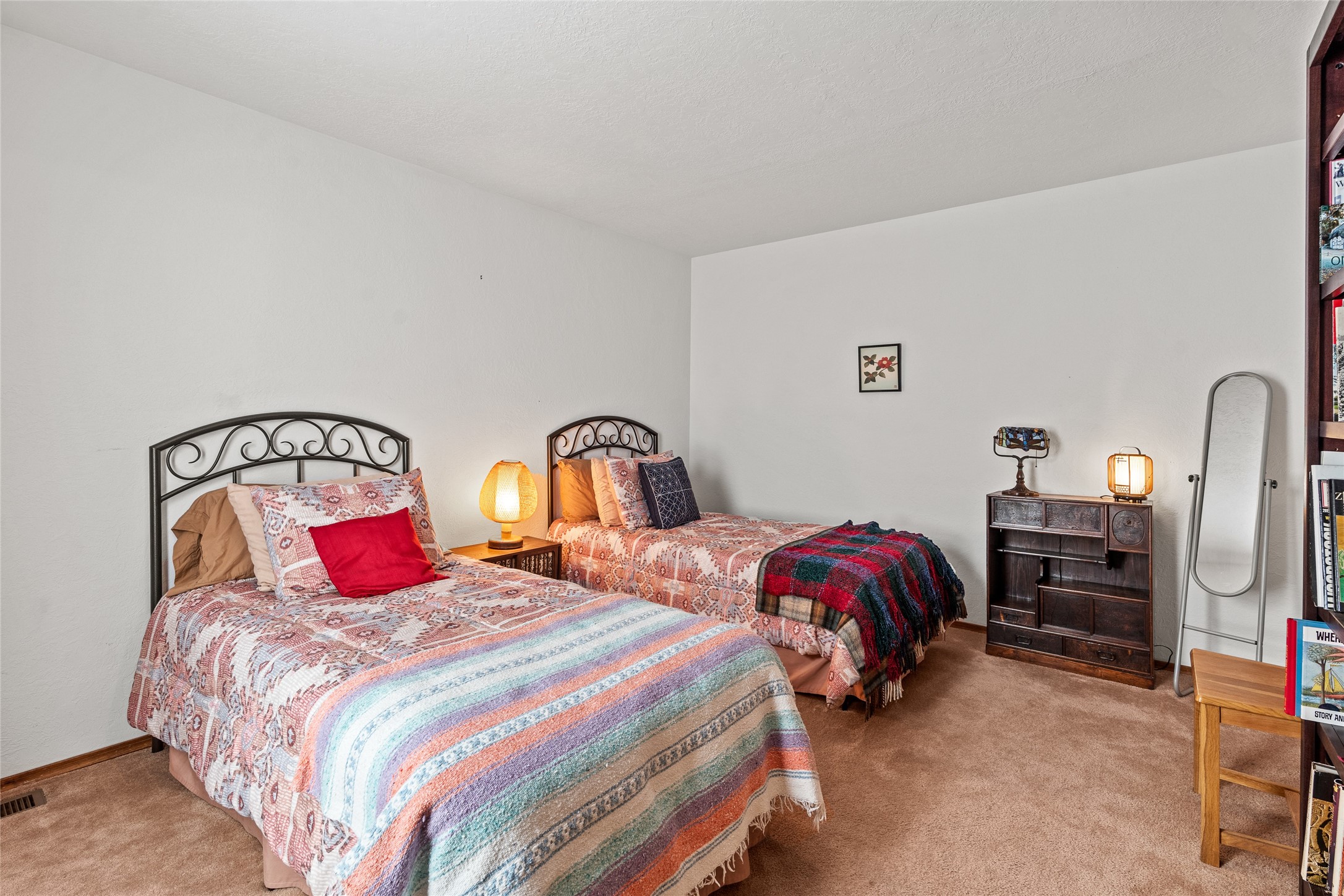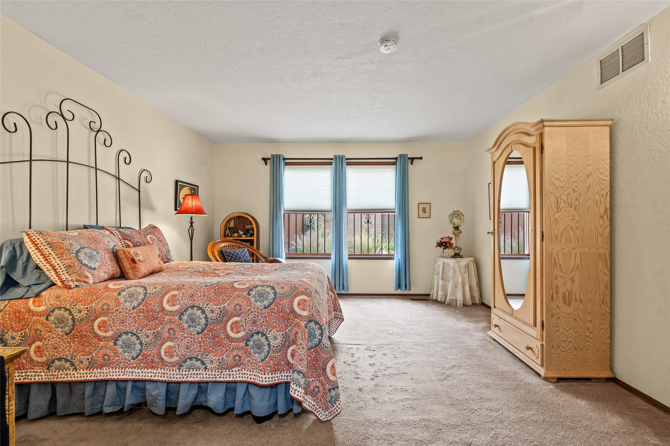 Located just minutes from downtown Santa Fe, the DeVargas Center, restaurants, and shopping, this beautiful 1,505 sqft townhouse offers comfort, style, and convenience. Featuring 2 bedrooms, 2 baths, and a 2 car garage this home includes a spacious primary ensuite with a walk-in closet, the guest bedroom also includes a walk-in closet and the guest bathroom has a soaking tub--perfect for relaxing after a long day. The living room welcomes you with tall ceilings, striking vigas, tongue-and-groove details, and a cozy fireplace, ideal for warm and inviting evenings. The bright, cheerful kitchen opens directly to the landscaped backyard, where you'll find a charming spiral staircase leading to the rooftop deck--offering sweeping views that make this home perfect for entertaining or enjoying a peaceful Santa Fe sunset. The front and back yards are landscaped and the back is enclosed with classic coyote fencing, providing privacy and a touch of Southwestern charm. Don't miss this opportunity to own a unique and inviting home in a prime location.