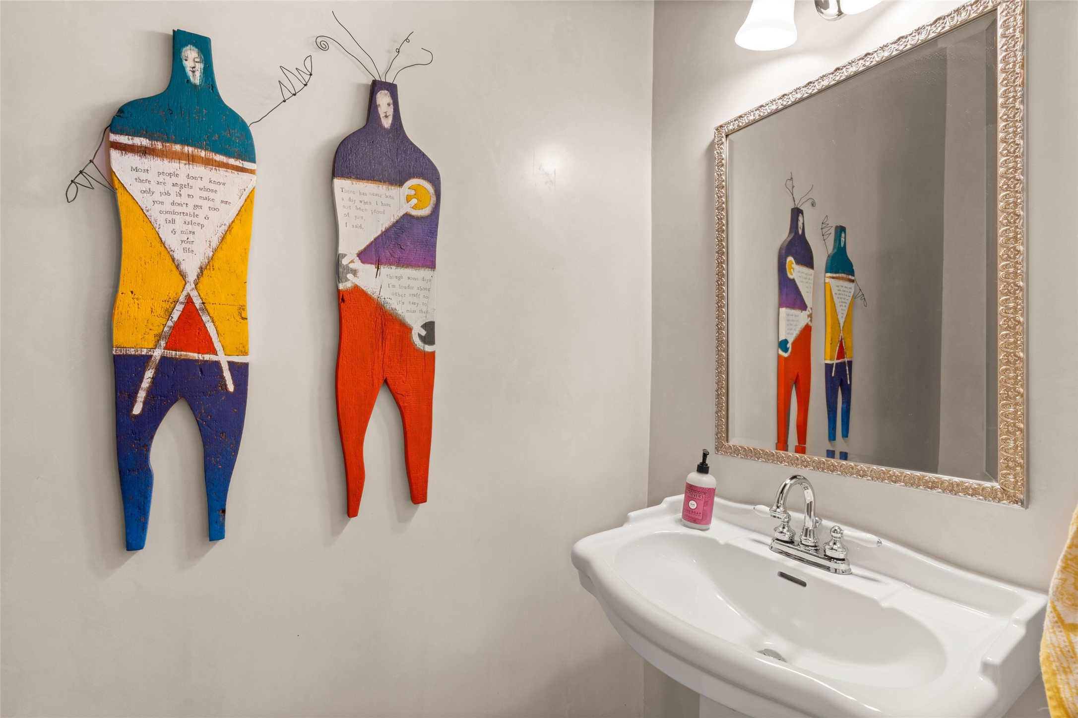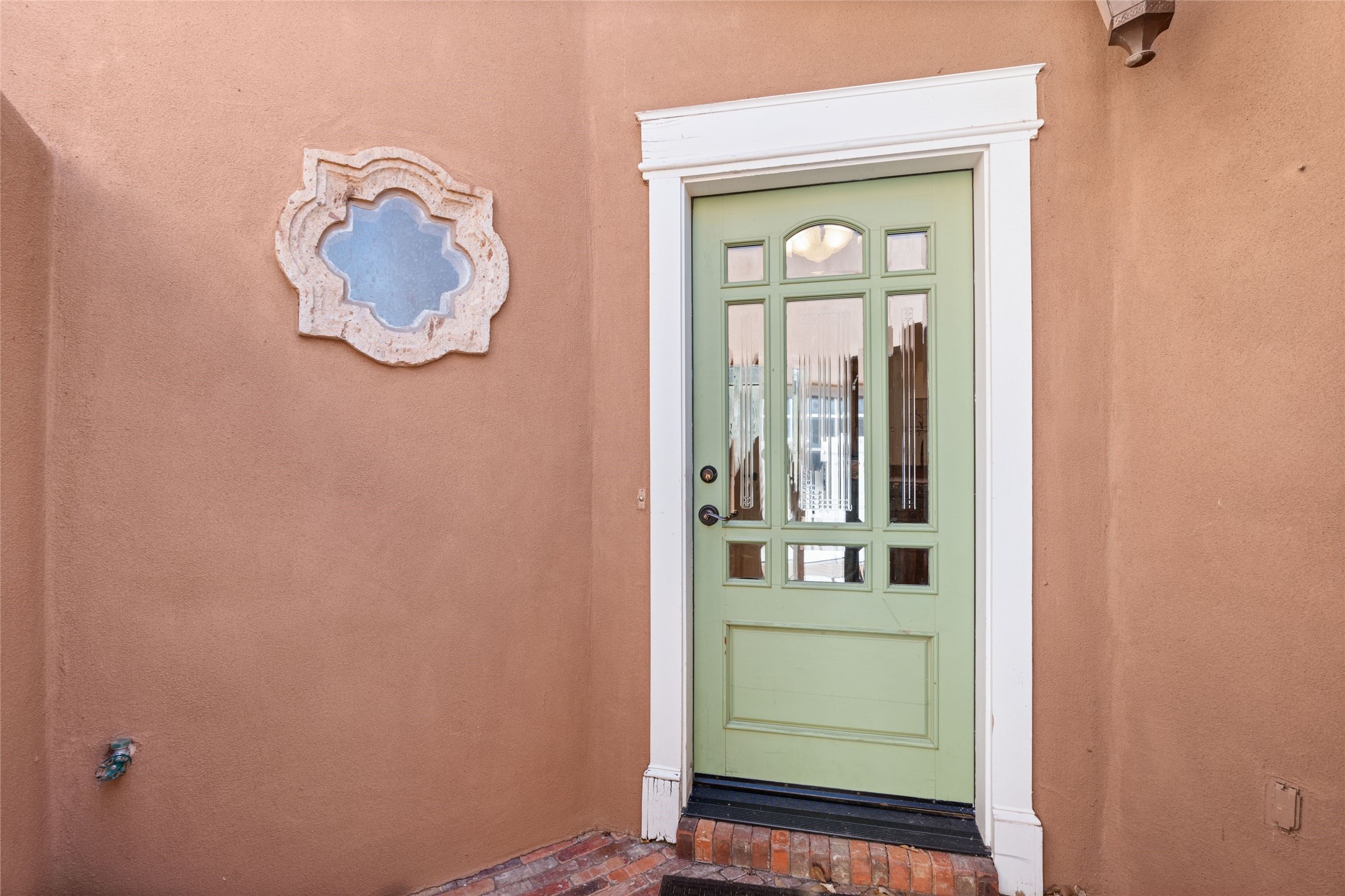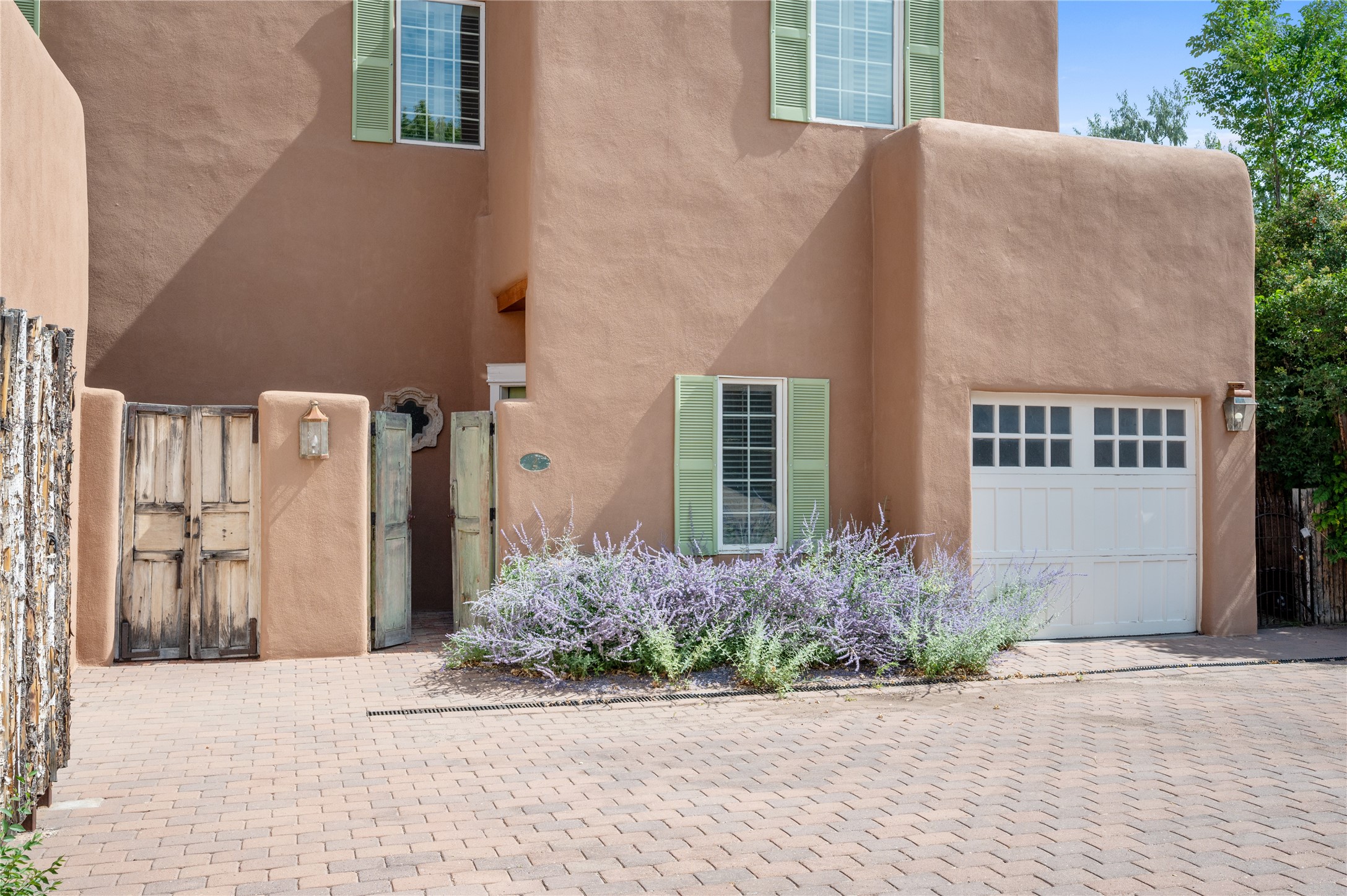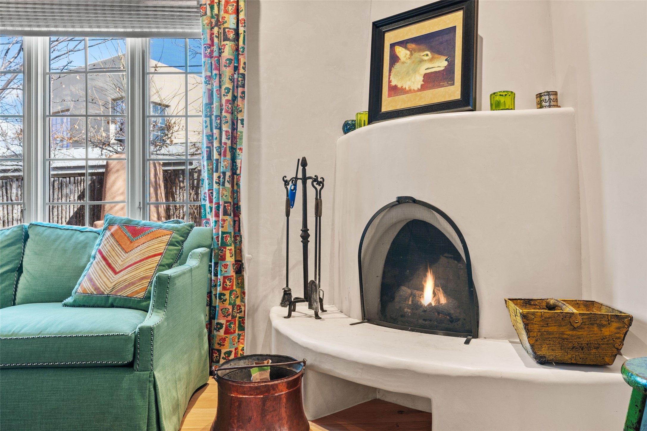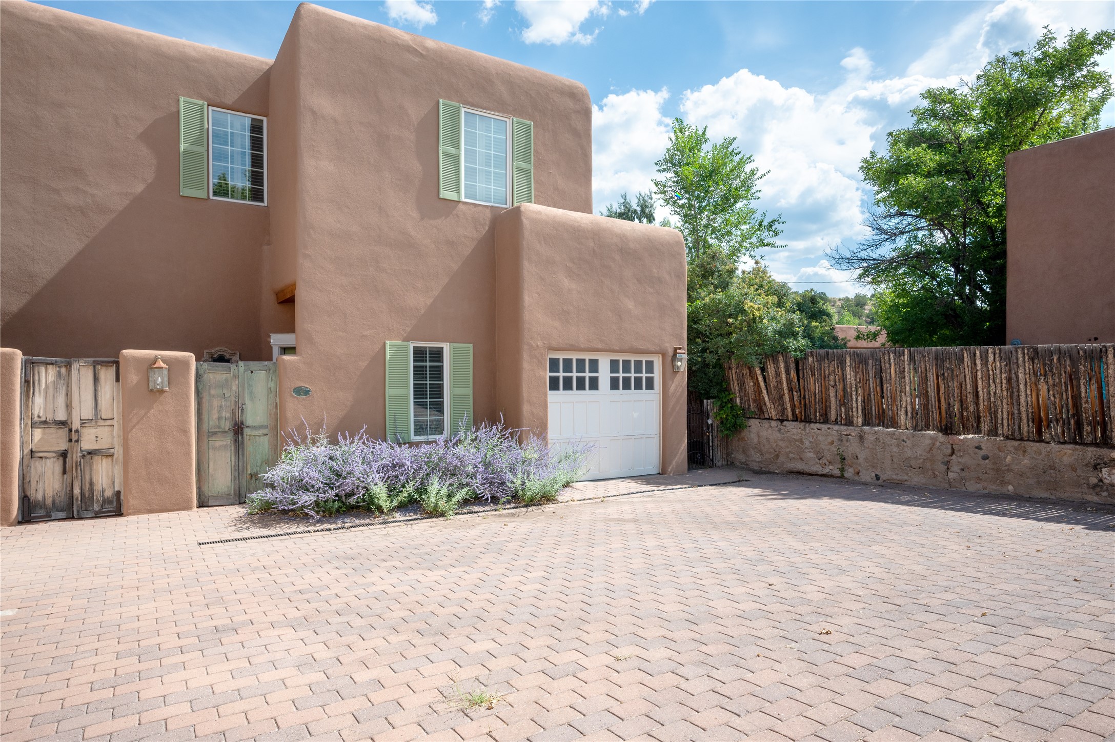 Nestled in a prime location just moments from Fort Marcy Park and the historic Santa Fe Plaza, this charming two-story home blends Southwestern character with modern comfort. Featuring 2 bedrooms and 3 bathrooms, this beautifully designed residence boasts stunning beam ceilings and rich wood floors throughout, creating a warm and inviting atmosphere.The open-concept layout seamlessly connects the kitchen, dining area, and living room, with a patio door leading to a private back patio complete with a kiva fireplace, perfect for outdoor relaxation. Upstairs, the primary suite offers a cozy fireplace, large shutters for customized light control, and a private balcony showcasing slight mountain views and overlooking the patio below. The guest bedroom, also located upstairs, features an en-suite bathroom for added privacy.Additional highlights include a one-car garage plus off-street parking, tile floors in the bathrooms, and a fantastic location within walking distance of restaurants, shopping, galleries, and entertainment. Outdoor enthusiasts will appreciate being less than 15 miles from Ski Santa Fe, making this home an ideal retreat year-round.