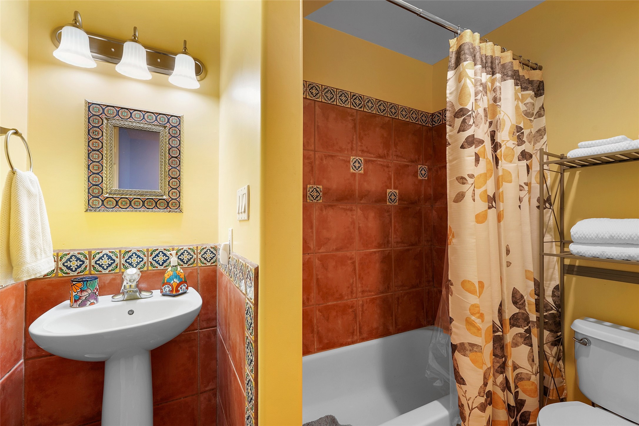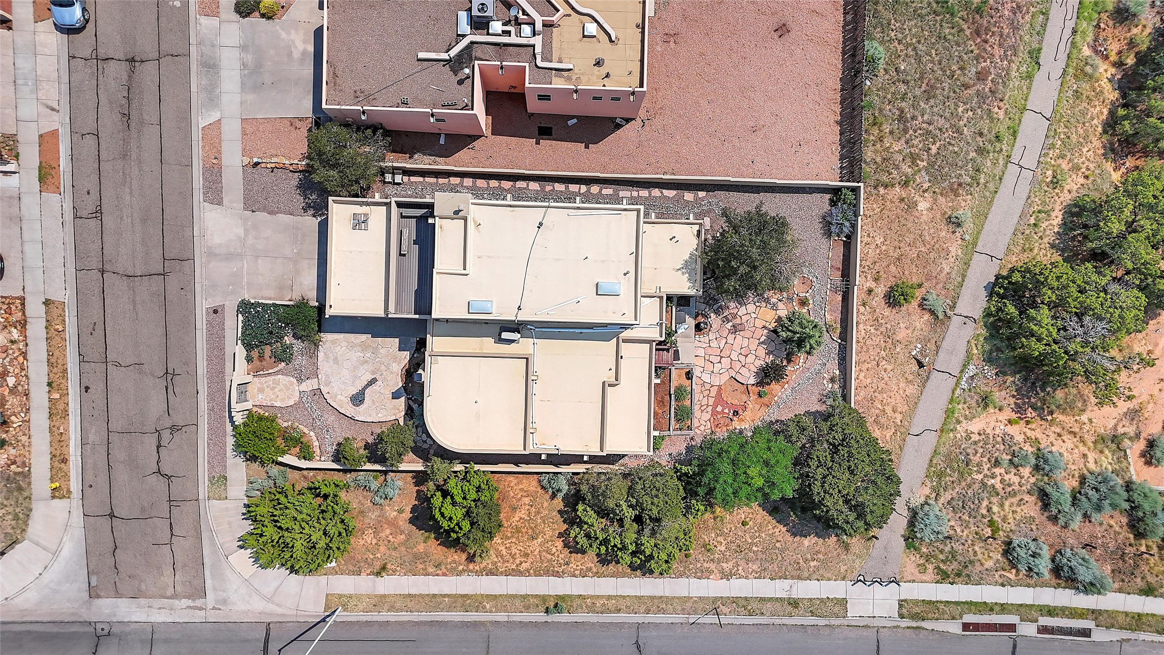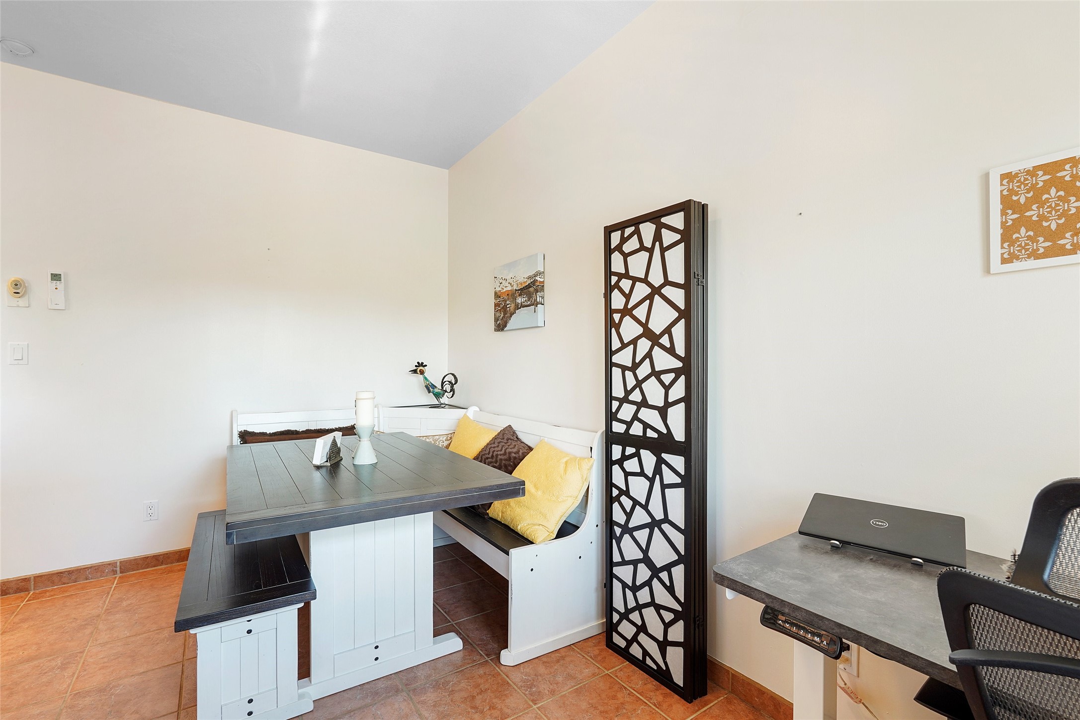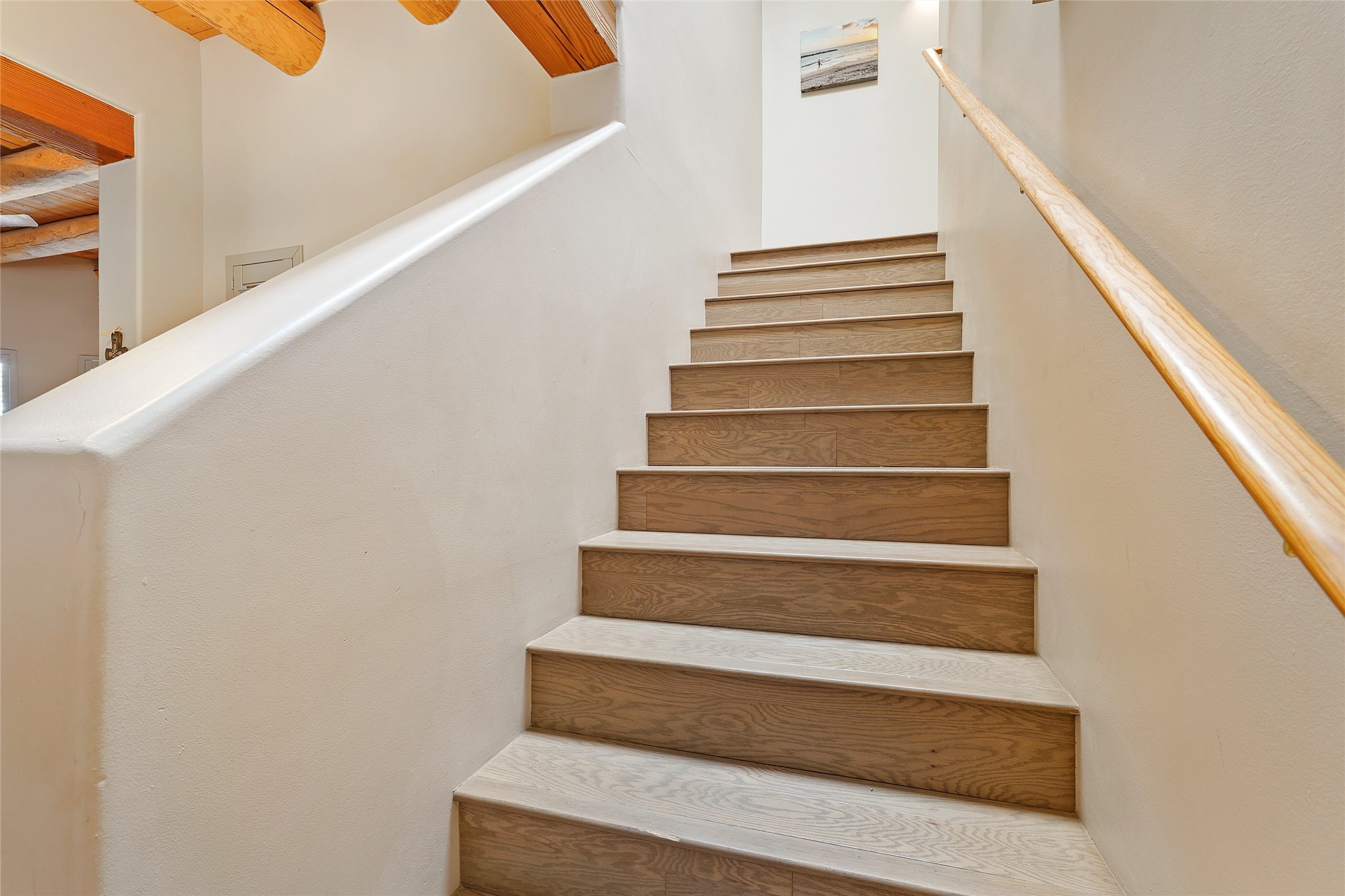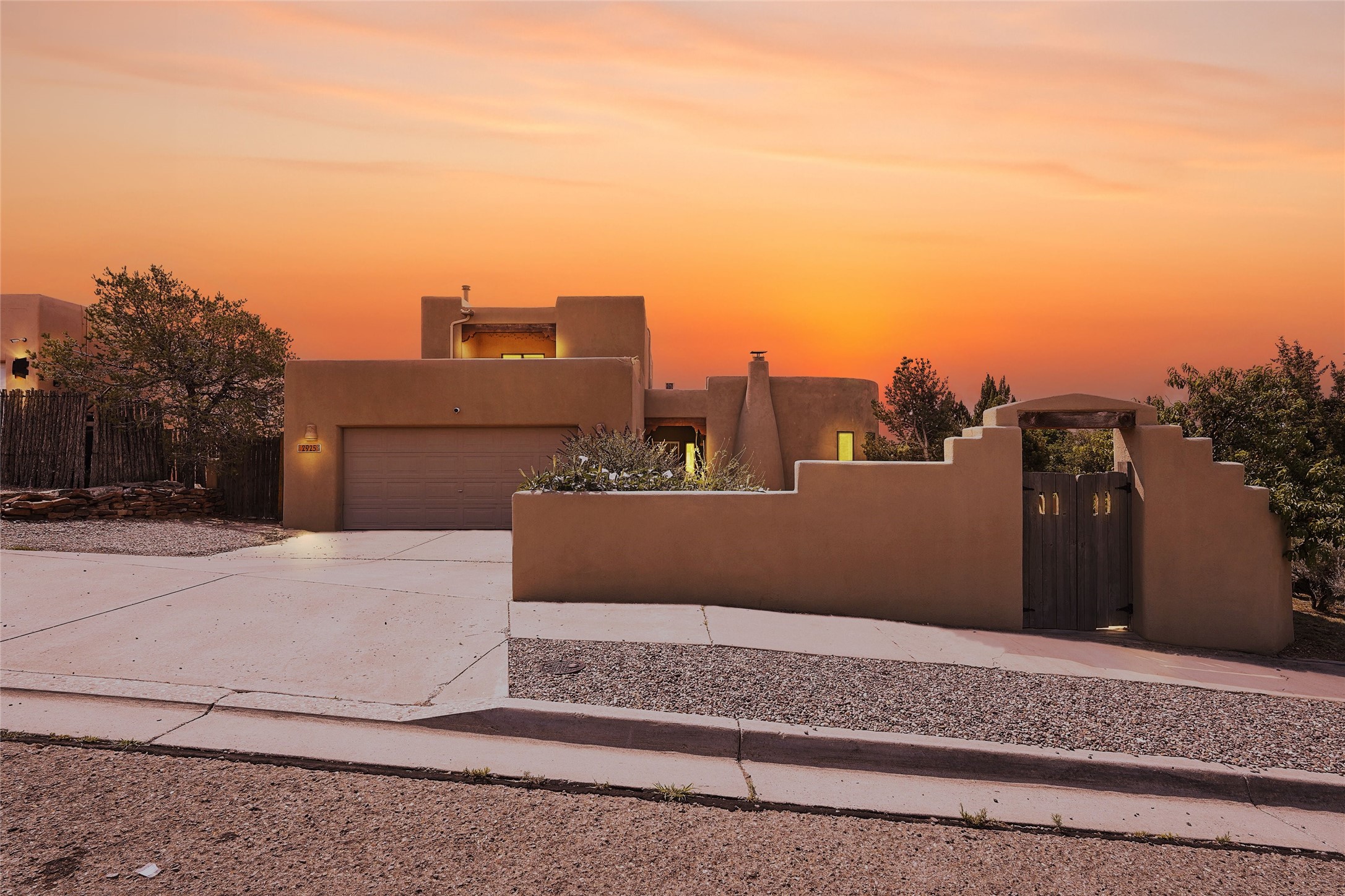 Welcome to this beautifully maintained home in the sought-after Pueblos de Sol subdivision, offering comfortable living and sweeping views. Recent upgrades include a modern kitchen with stainless steel appliances, granite countertops, and a spa-like primary bathroom with a standalone tub and custom stone tile. The primary suite also features a private deck with durable Trex decking. A TPO roof was installed in 2022. Enjoy year-round comfort with 5 mini-splits and radiant heating. Outdoor living shines with multiple decks, a charming courtyard, mature trees, and drip irrigation. A separate-entry studio/guesthouse with full bath offers rental or creative flexibility. Don't miss this Santa Fe gem! Trails and parks nearby!