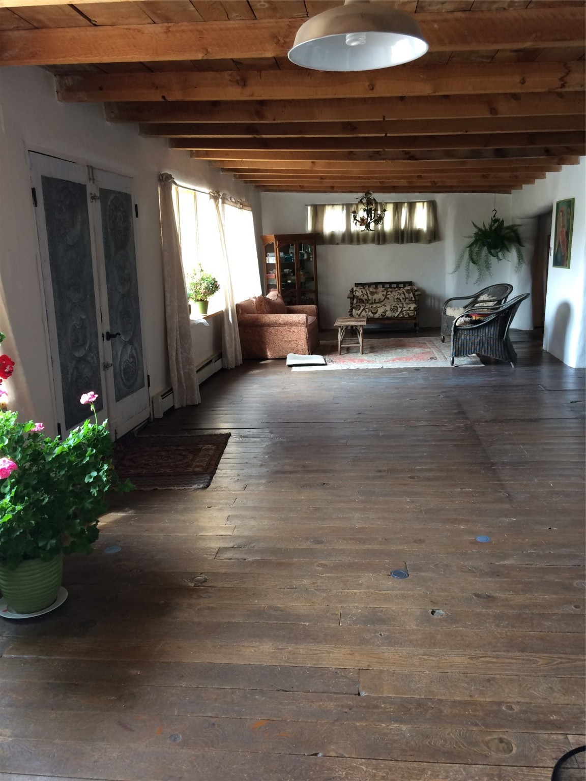 Charming, Historic, Quintessential Northern New Mexico territorial Adobe home with a garden paradise. This 122-year-old home is known as the old Martinez home. It started life as a General Mercantile store. Since then, it has been a few artist galleries, and a ceramic studio. This magical property has the original wood flooring in most of the house. Vigas and arched doorways throughout. Base board heating, a wood stove, and radiant floor heating in the wonderfully updated master bath to keep your toes toasty in the morning. There is so much space to do anything you can dream up, inside this home. The back yard is a gardener's paradise, boasting over 65 different rose bushes, grass, Flower beds, decorative trees and fruit trees. The property has water rights to keep the yard magical. The adobe barn was updated with cement floors, power and radiant floor heating, used to be a ceramics studio and as tons of potential per your liking. The tool shed is large enough to hold your tools and be a small workshop. There is abundant space in the back yard to plant a vegetable garden. The separate portal is tucked into the garden and creates an outdoor sanctuary perfect for gatherings with family and friends or a quiet evening of solitude.