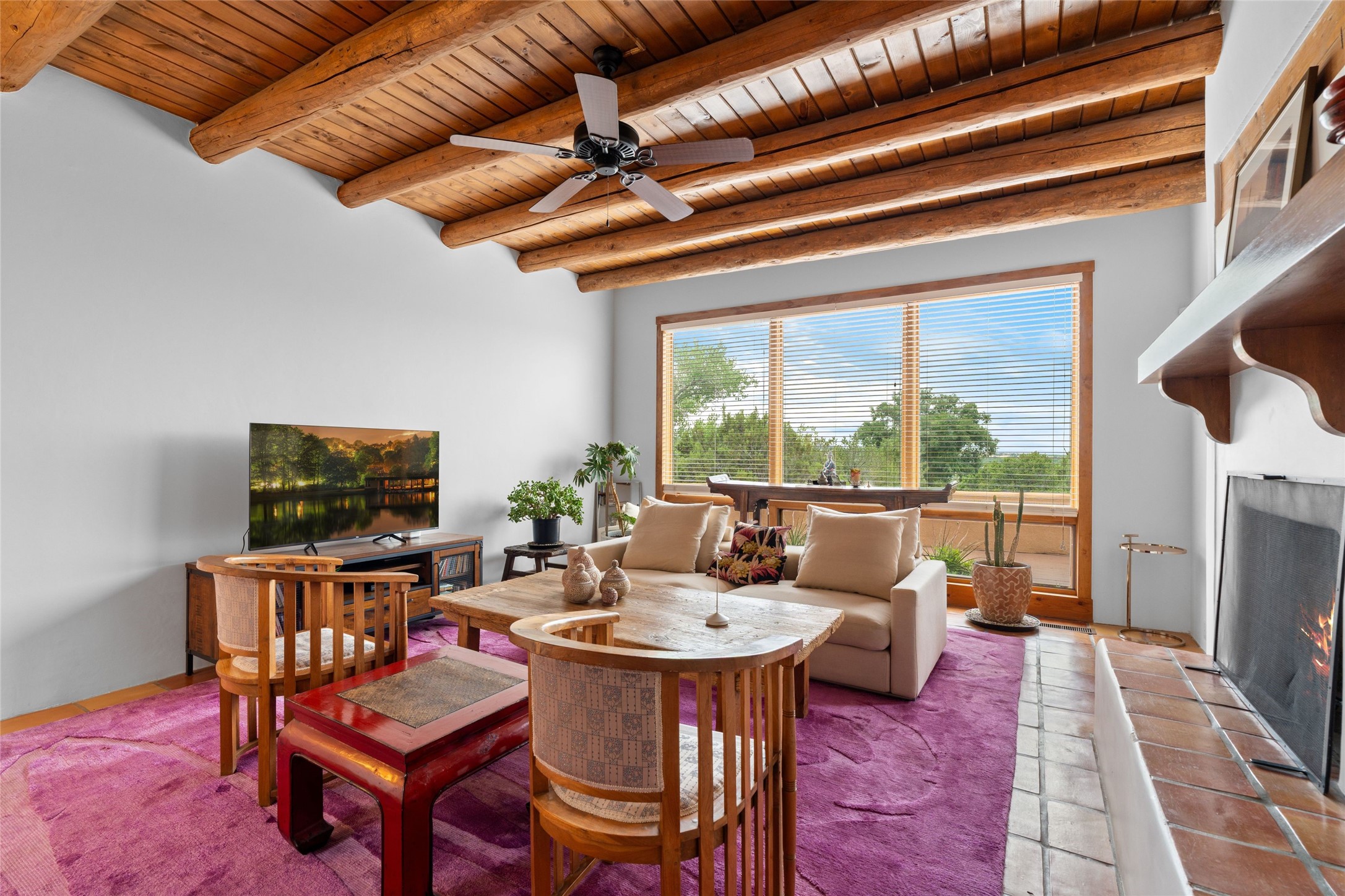 This lovely single-level residence with City lights and Sangre de Cristo views has a large walled-in deck and beautifully landscaped fenced areas offering very pleasant outdoor living. The current owners have made numerous improvements to the home including lighting, resurfacing all interior walls, extensive landscaping all around the home, and rodent exclusion. The kitchen and bathrooms have been remodeled and upgraded. The home is light and bright with a cozy comfortable feeling and conveniently located in the upper Casa Solana neighborhood.