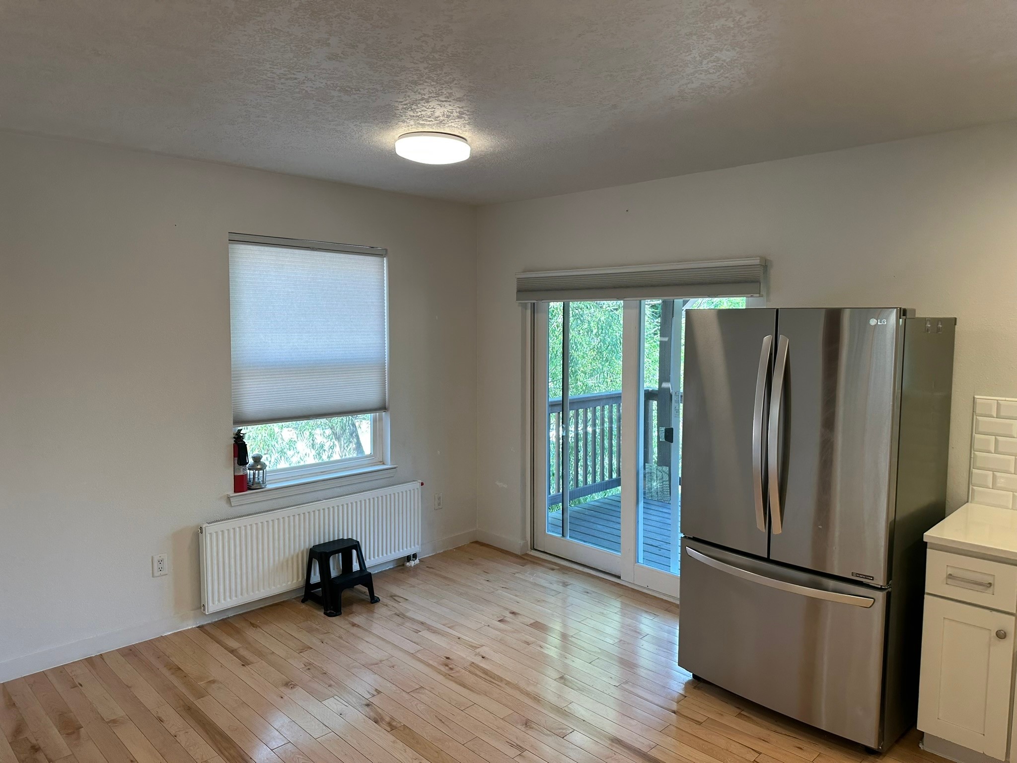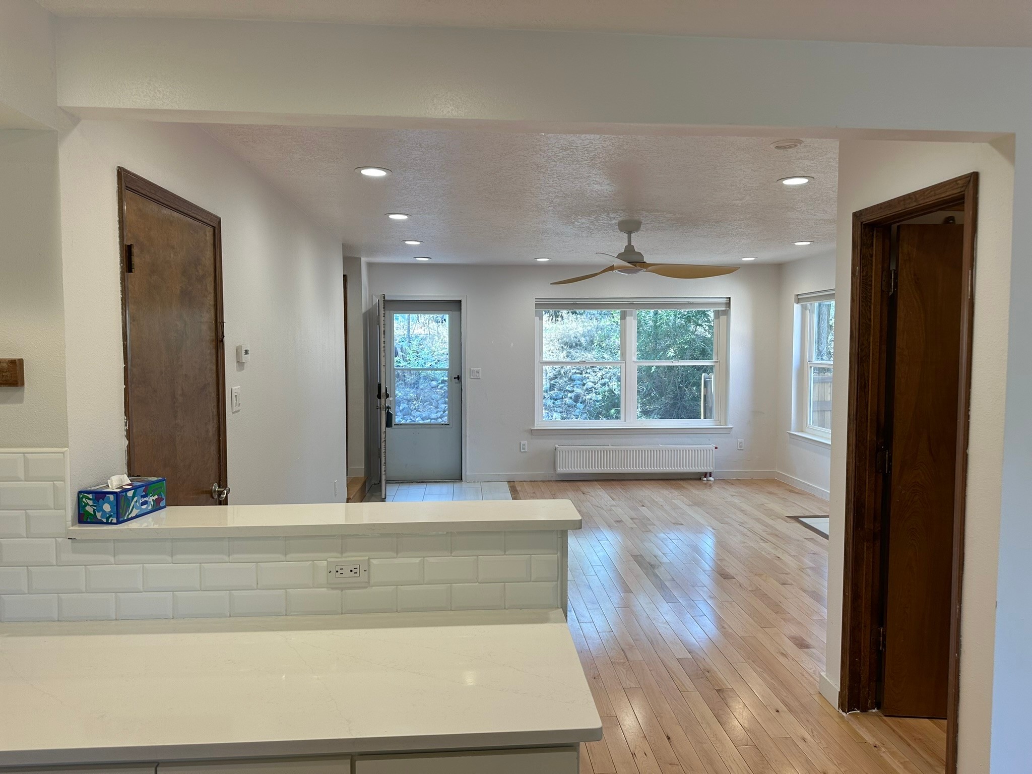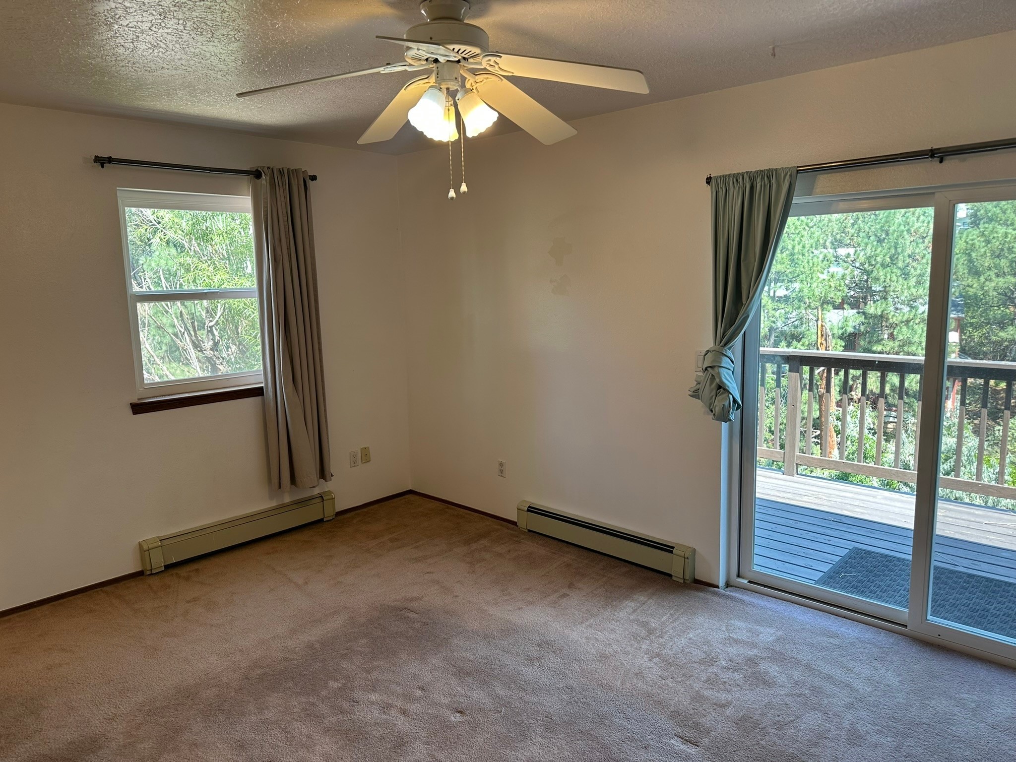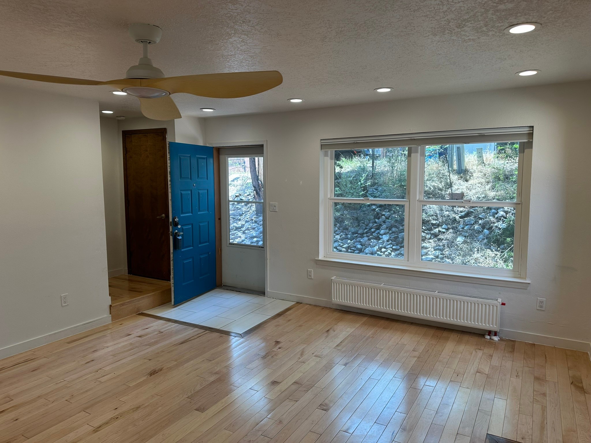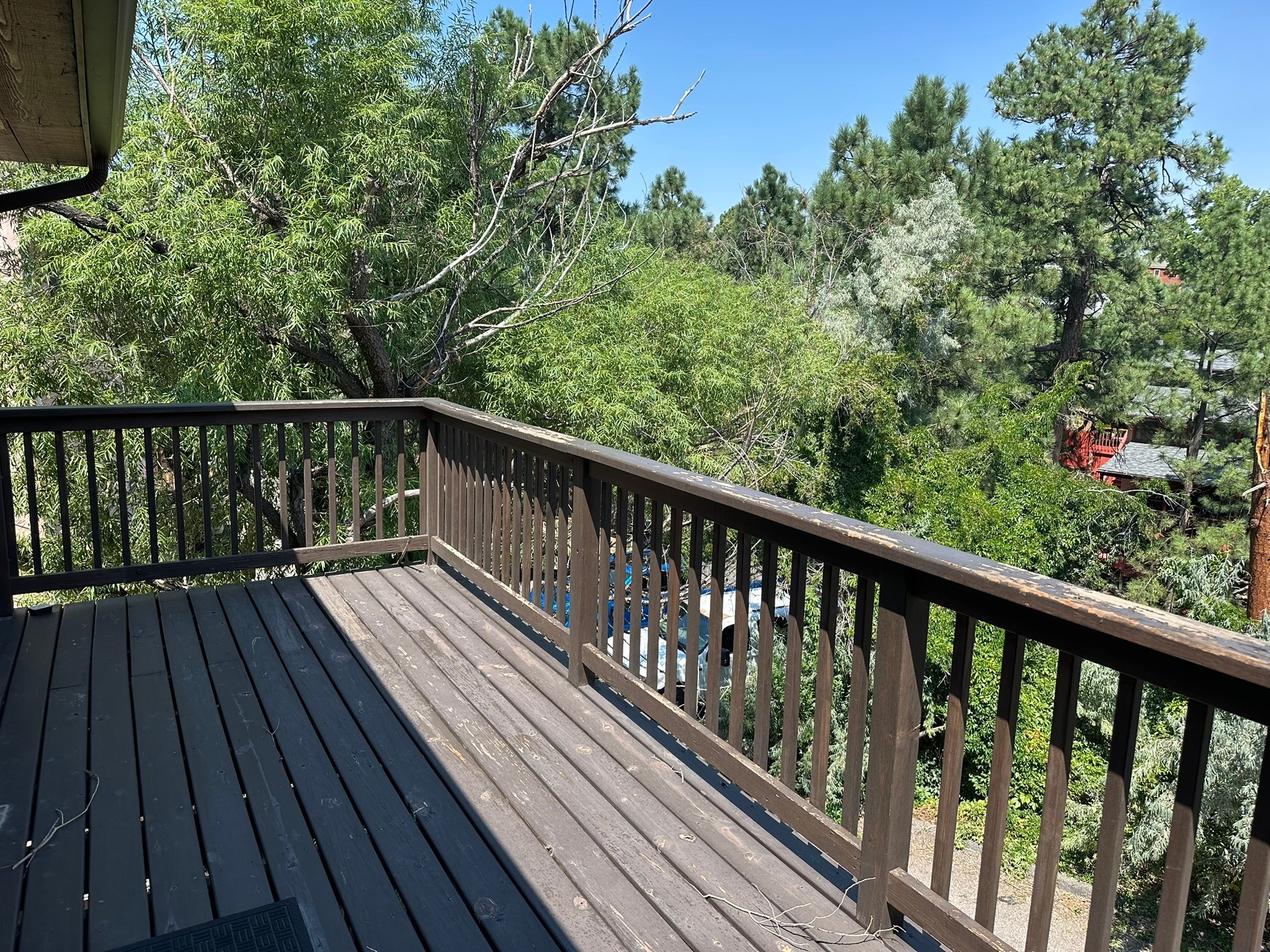 Tucked into a quiet pocket of ponderosa pines, this sweet end-unit townhome is full of personality and thoughtful updates. Inside, sunshine fills the main level, highlighting the beautiful maple hardwood floors! The kitchen is the star of the show, featuring quartz countertops, custom cabinets, a farmhouse-style sink, solid wood pantry, subway tile backsplash, sleek Bosch appliances and a modern, powerful new vent hood, the kitchen is built for functionality.. You'll also find a cozy fireplace with a tile border (freshly cleaned), plus stylish European-style Bosch-Buderus radiators for comfy heat. The main level includes a high-efficiency boiler, water heater and fresh paint throughout. The second level has one inviting bedroom along with a primary bedroom with en suite. Both bedrooms offer soft carpeting, generous closets, and great natural light. A full bathroom services the guest bedroom on this floor. The third level has another bedroom that could be used as an office, craft room, or additional storage. The lowest level offers a handy mudroom right off the two-car garage--complete with a utility sink, extra lighting, and direct access to the backyard. Step outside and enjoy the terraced yard--complete with sandstone patio. It's a lovely spot for a morning coffee, perfect for a little gardening, playing, or just enjoying nature. The exterior is in great shape too, with a newer roof, updated decks, aluminum gutters, and insulated glass doors and windows to keep things cozy year-round. With plenty of storage, and a great layout, this cheerful townhome offers an easygoing lifestyle in a lovely natural setting.