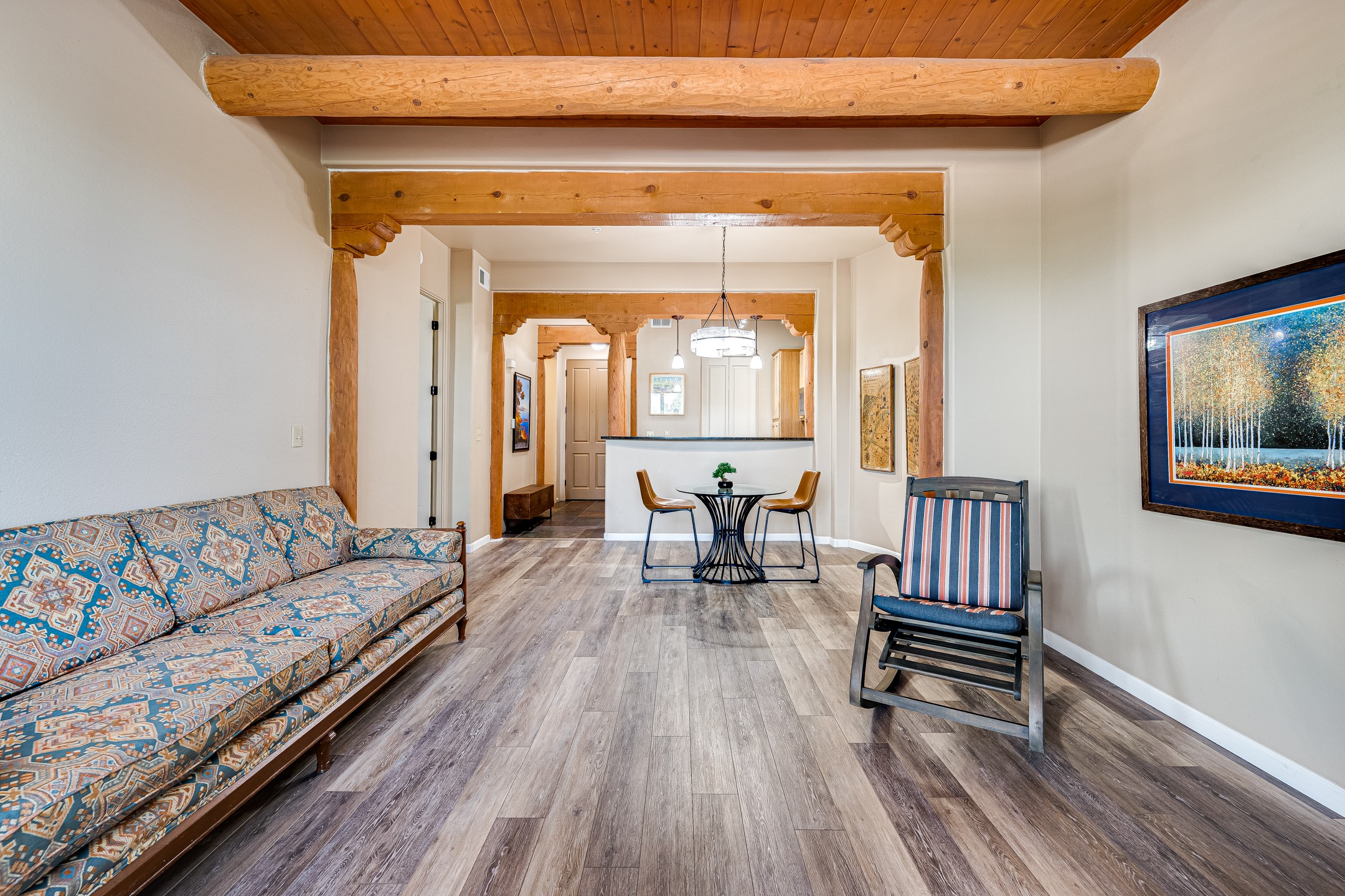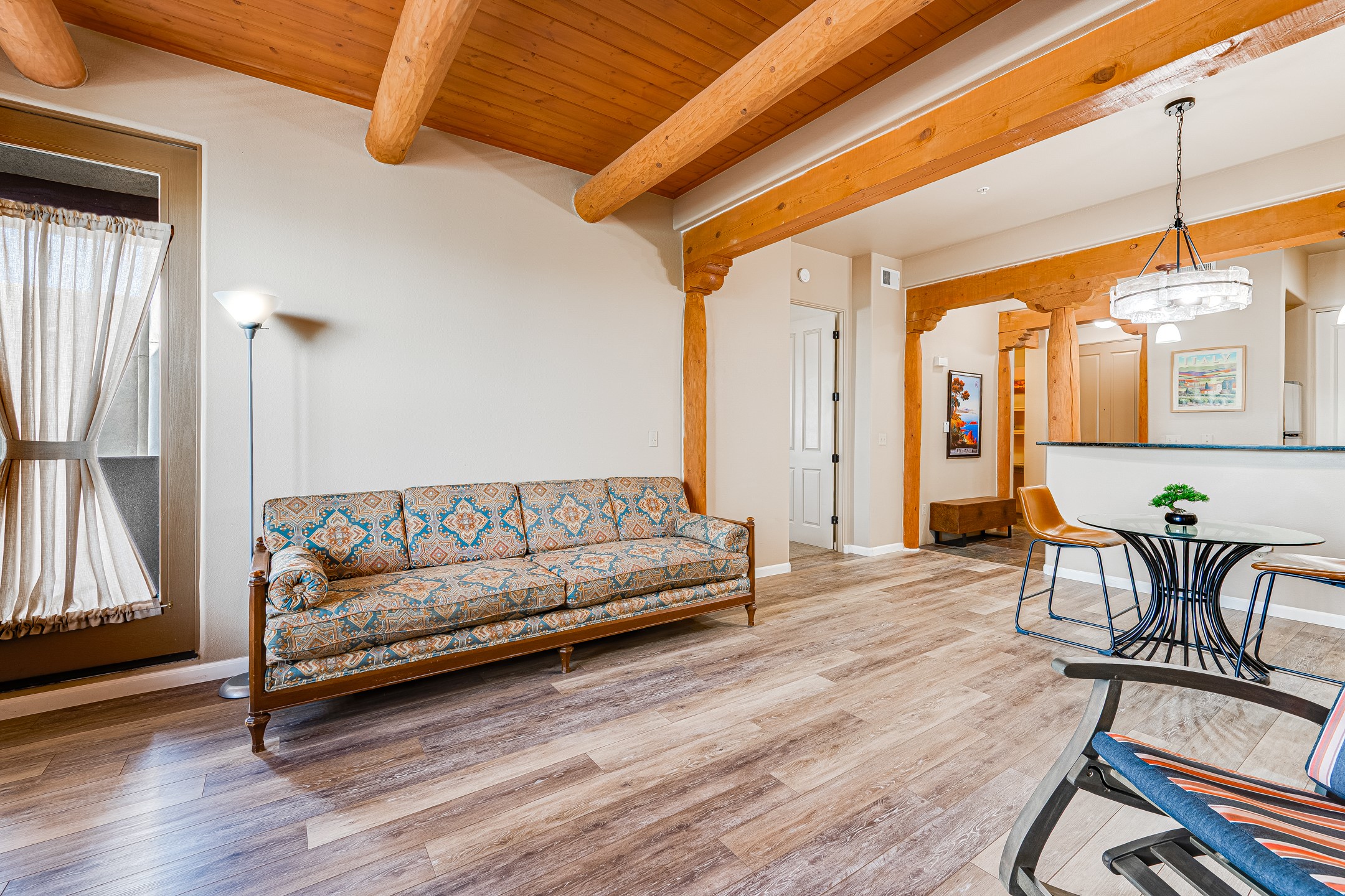 Welcome to Unit 205 at 1405 Vegas Verdes Drive, a beautifully maintained 1-bedroom, 1 1/2-bathroom condo in the desirable Alameda Condominiums. This second-floor turn key unit is being sold fully furnished, making it a perfect move-in-ready residence or investment opportunity. Enjoy an open-concept living space with high ceilings, abundant natural light, and quality finishes throughout. The kitchen features granite countertops and stainless steel appliances, and the private balcony offers a peaceful outdoor retreat. A rare bonus for this unit is its own private large storage unit, providing extra space for seasonal items or gear. The Alameda offers secure, elevator-access buildings, landscaped courtyards, a fitness center, pool, and a clubhouse for residents. Conveniently located near shopping, restaurants, and just minutes to downtown Santa Fe, this furnished unit with storage offers comfort, convenience, and value in one of Santa Fe's most sought-after communities.