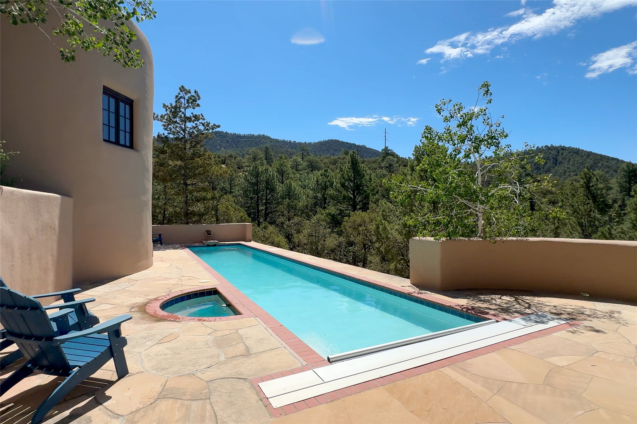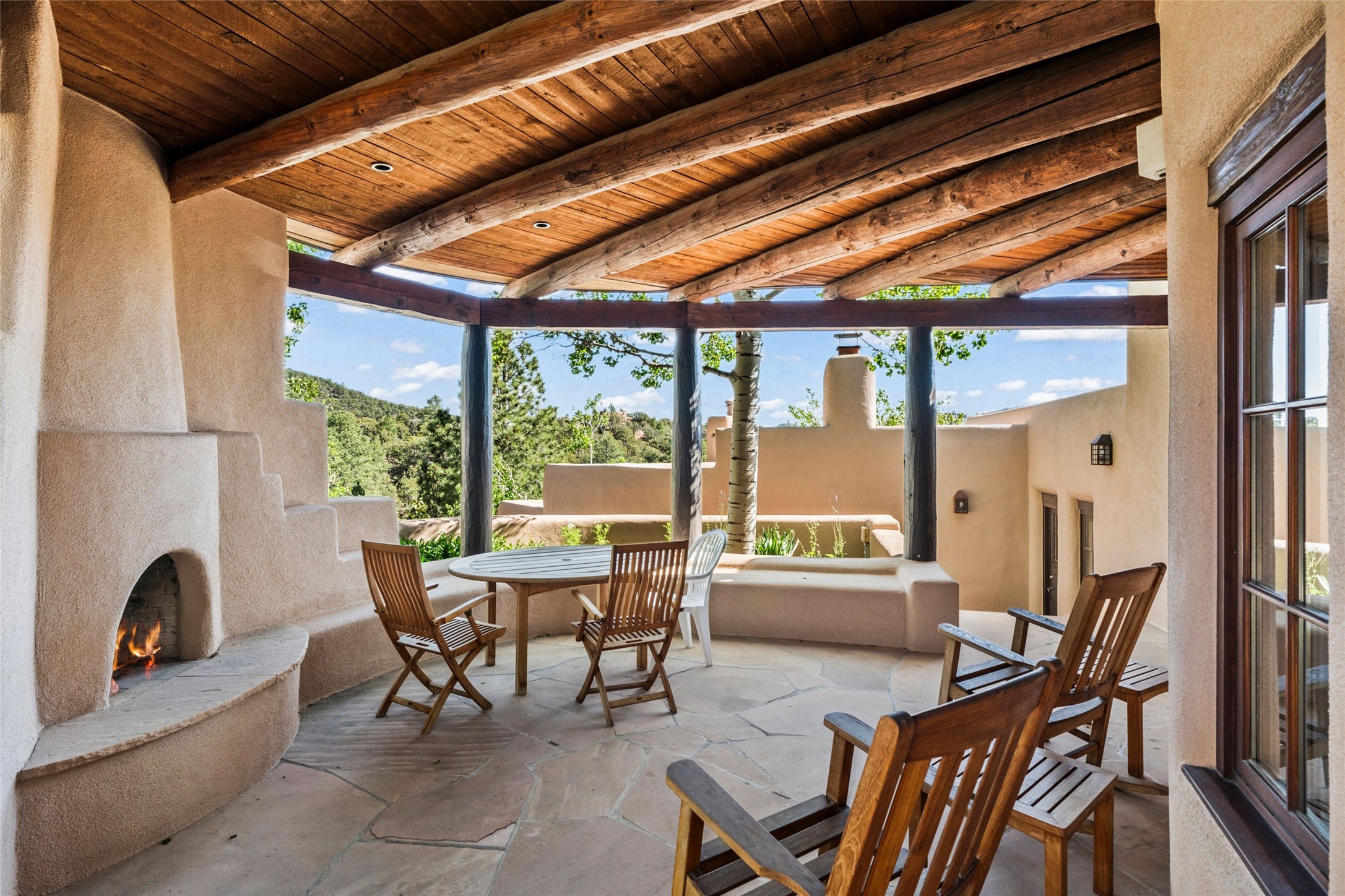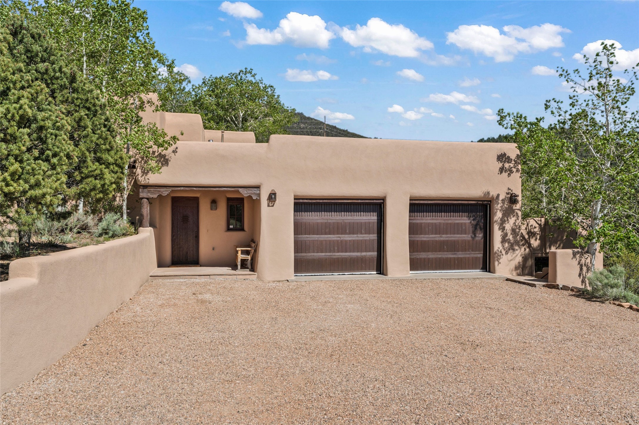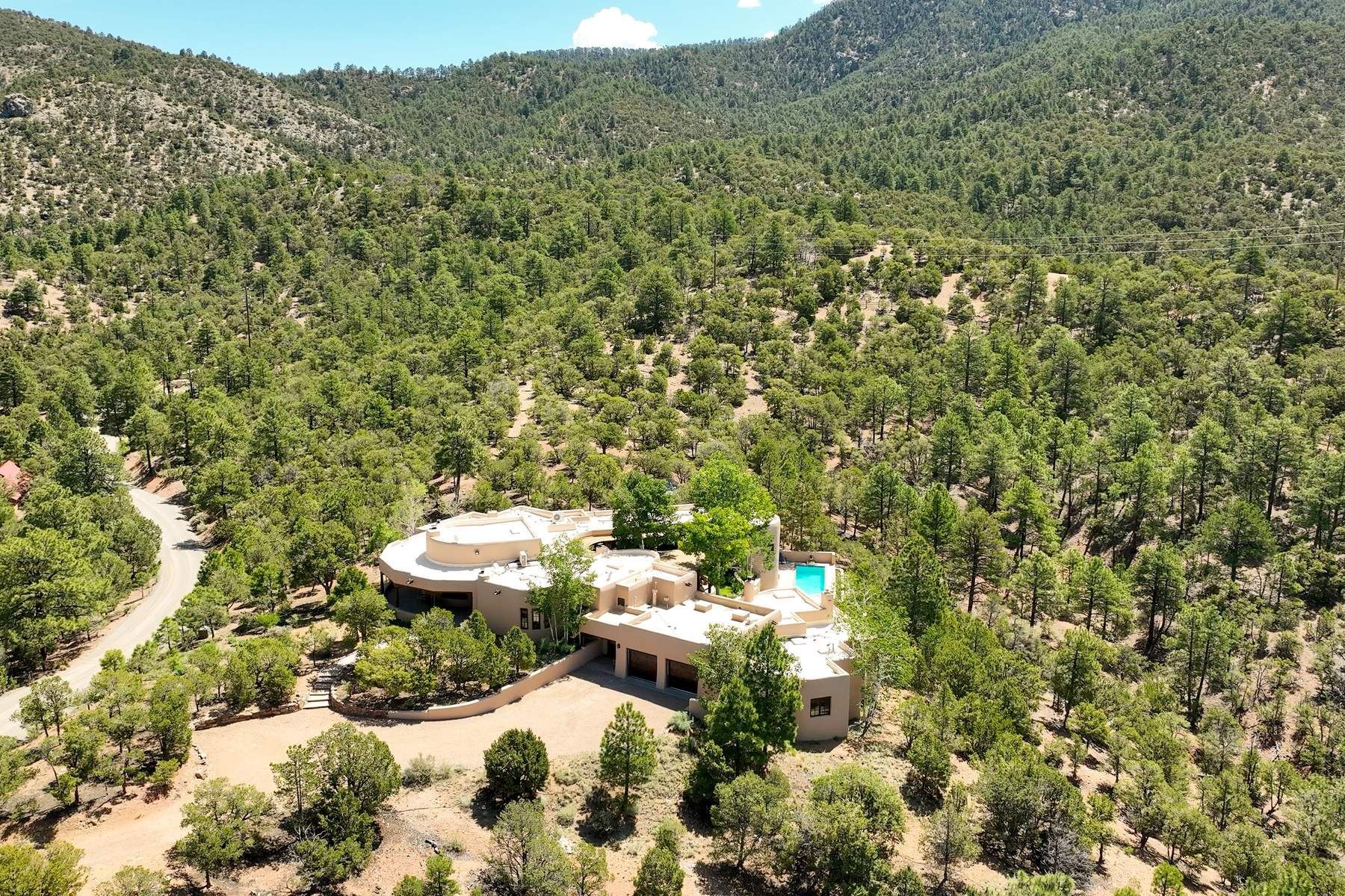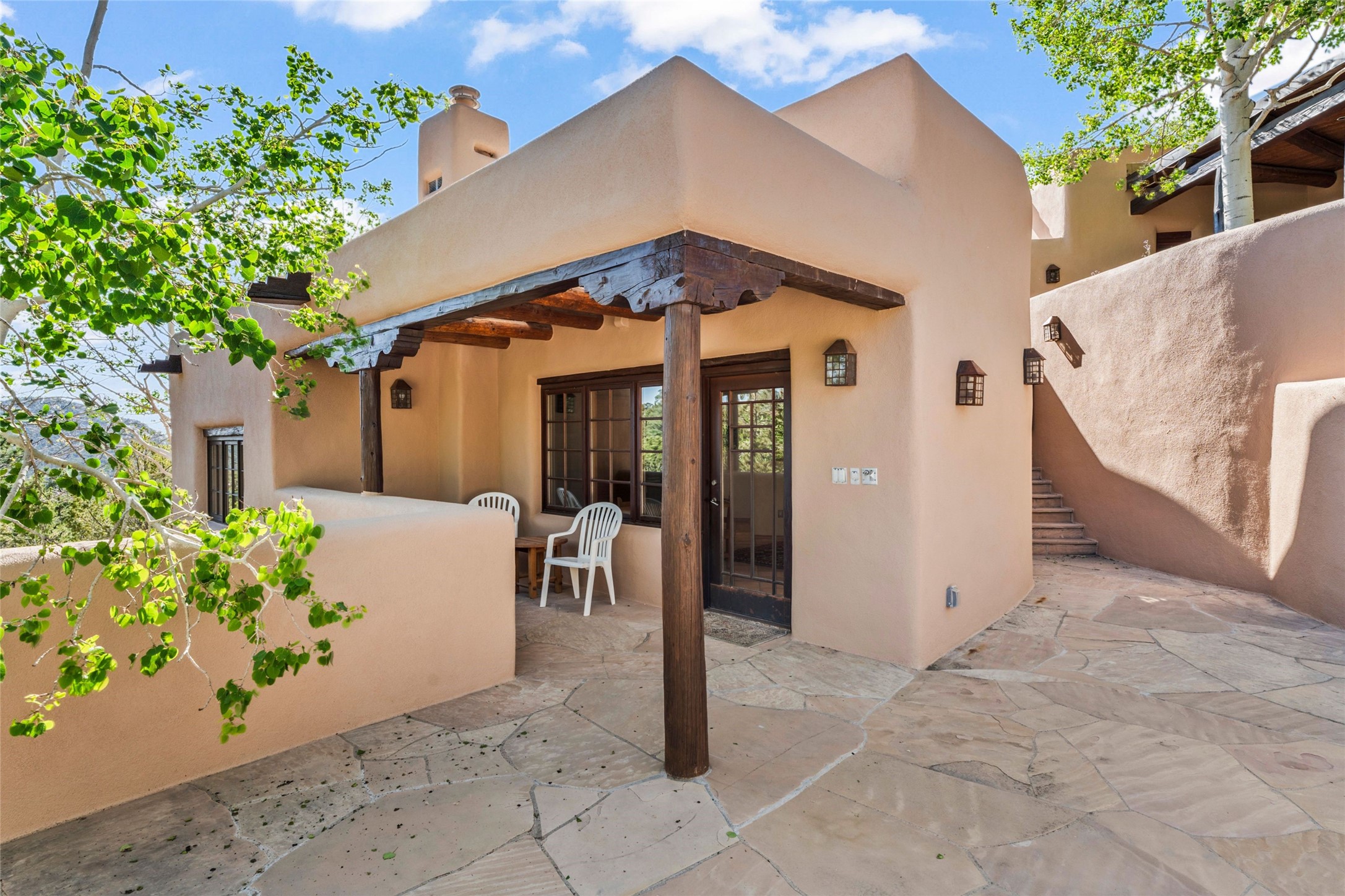 On the edge of the historic eastside, above St. John's College, within the gated and desirable Ponderosa Ridge community, 1863 Camino de Cruz Blanca is a rare and exceptional property. Carrying a Michael Bauer-designed and a Doug McDowell-built pedigree, this prize provides a substantial 3-bedroom main house, a 2-bedroom casita, a studio, and pool on over 4-acres bordering public lands. The main house sits high above town with views to the west towards Jemez Mountains and Los Alamos, and the backyard and pool look east up at Atalaya Mountain looming above. The 4,960 sq. ft. main house and 1,172 sq. ft. casita are rich in craftsmanship and integrity, built of double adobe with classic puebloan features - large vigas, carved wood doors, flagstone, antique pine and saltillo tile floors - while having the scale to accommodate modern living. In addition, the property has a separate 275 sq. ft. room that could serve as an exercise room or artist studio. The outdoor spaces are a secluded extension of the open space beyond and achieve the balance between maximizing views and privacy. The lot provides direct access to the Atalaya and St. John's hiking/biking trails. Still owned by the original owner, the property exudes pride of ownership. Recent improvements, completed in 2024 and 2025, include a new TPO roof, newly wrapped exterior stucco, and new heat pump minisplit heating and cooling. Two adjacent, separately deeded, buildable lots are also available for purchase separately, increasing the offering to 13 total acres. 1863 Camino de Cruz Blanca is an incredible property of great substance and character, set in a "goldilocks" location that perfectly strikes close proximity to downtown with direct connectivity to our unbounded natural setting.
