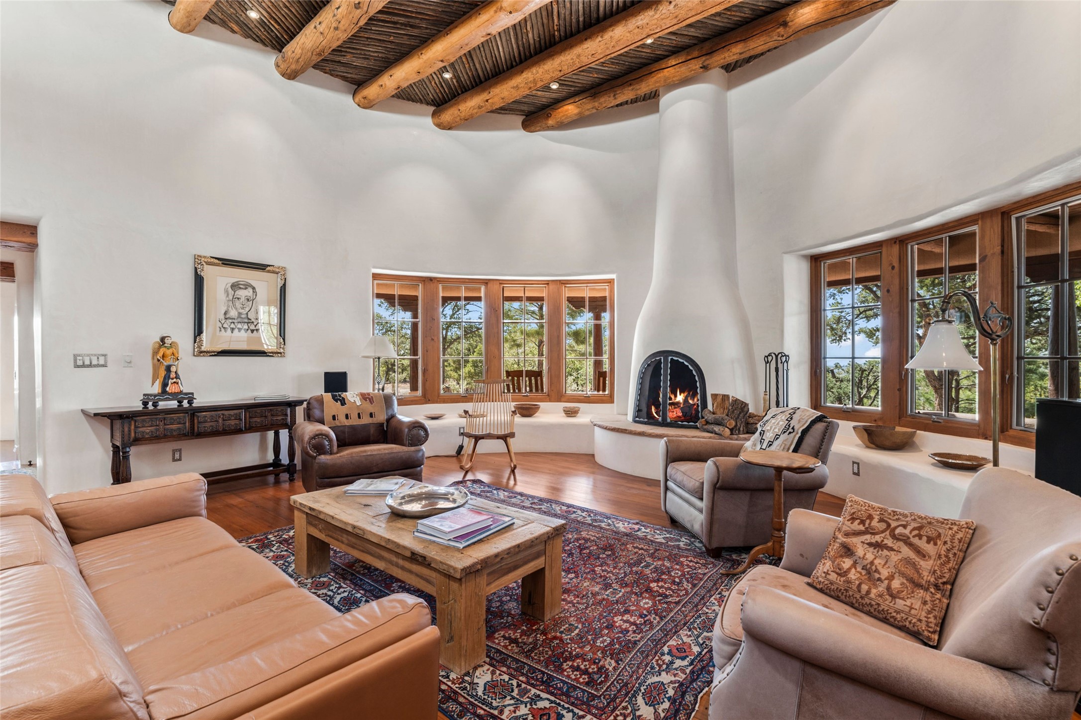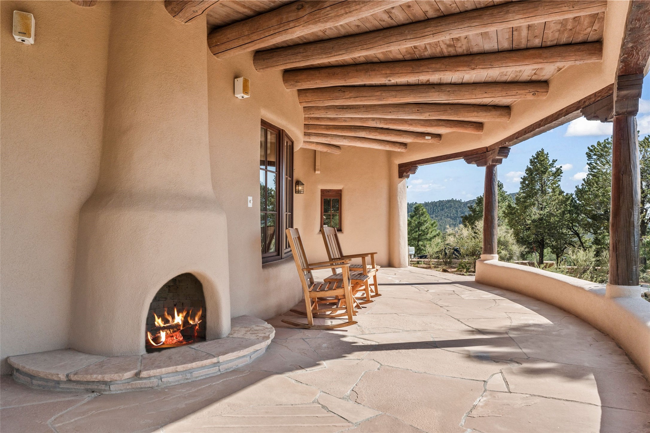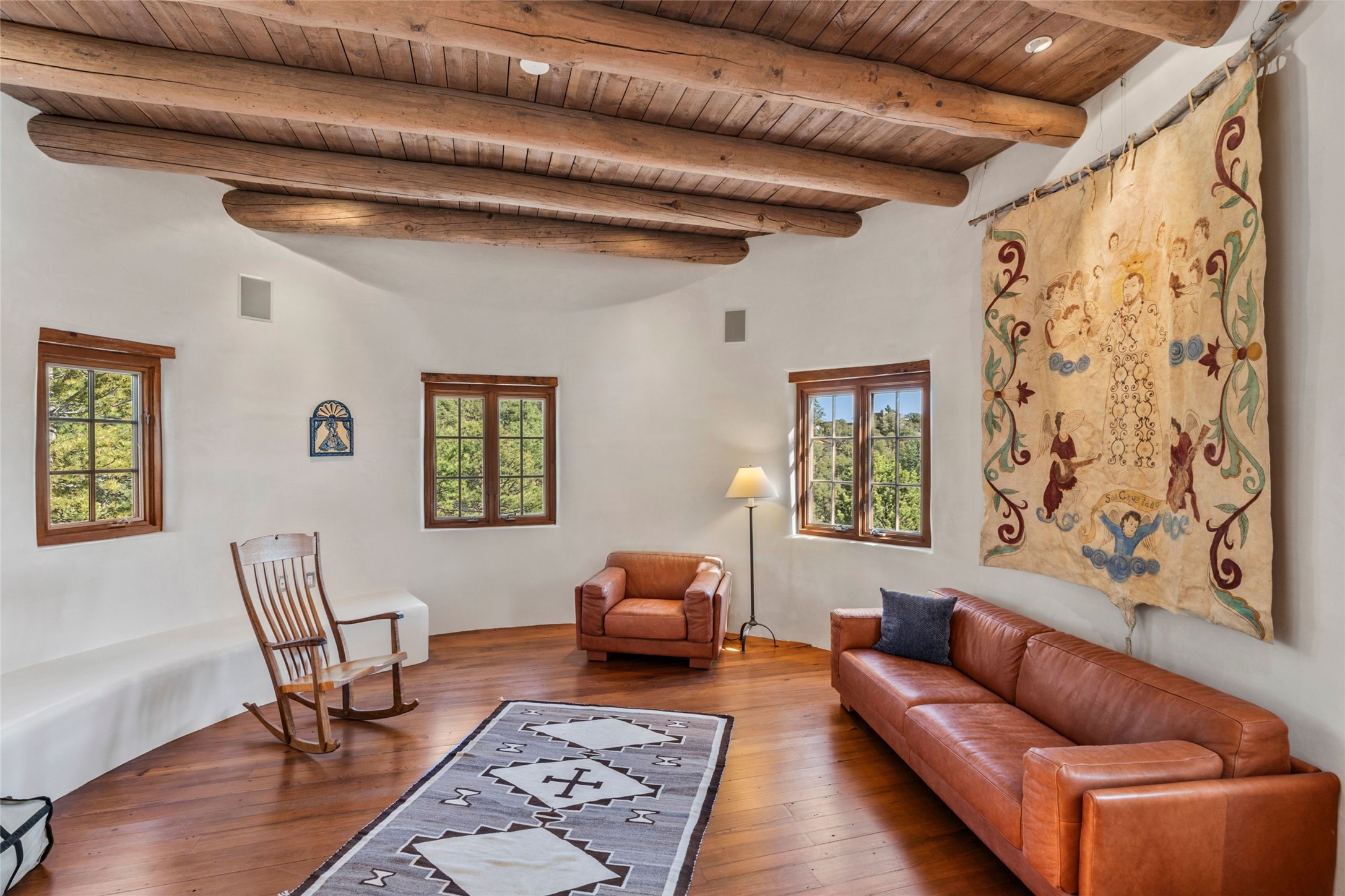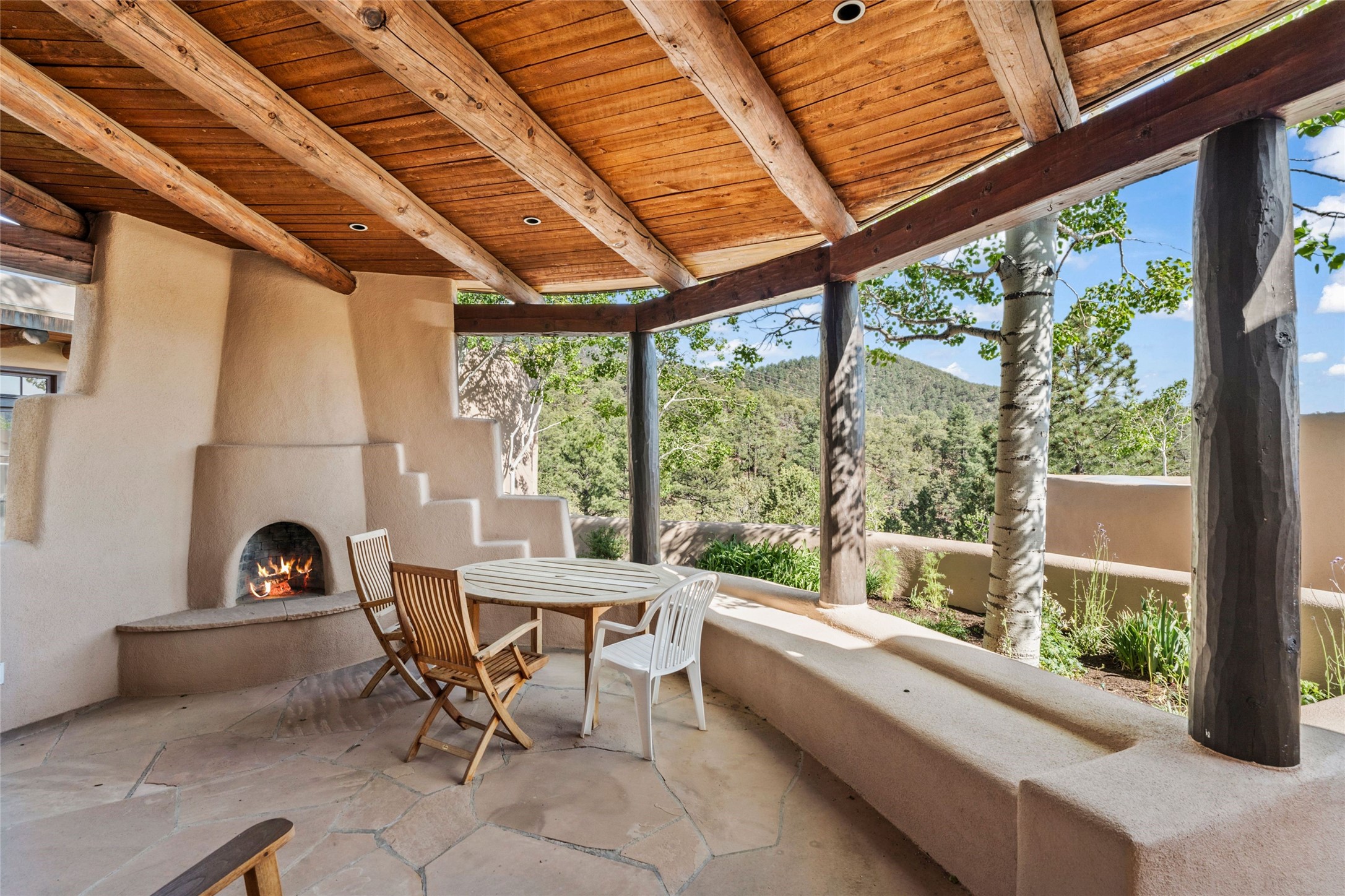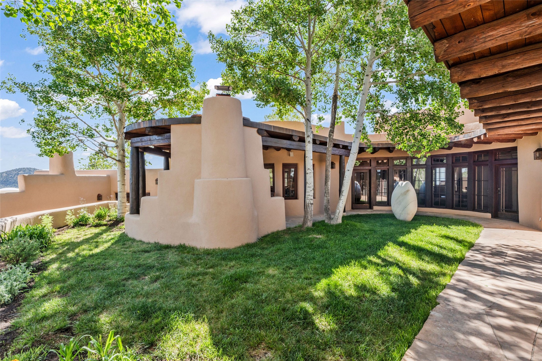 On the edge of the historic eastside, above St. John's College, within the gated and desirable Ponderosa Ridge community, 1863 Camino de Cruz Blanca is a rare and exceptional property. Carrying a Michael Bauer-designed and a Doug McDowell-built pedigree, this prize provides a substantial 3-bedroom main house, a 2-bedroom casita, a studio, and pool on over 4-acres bordering public lands. The main house sits high above town with views to the west towards Jemez Mountains and Los Alamos, and the backyard and pool look east up at Atalaya Mountain looming above. The 4,960 sq. ft. main house and 1,172 sq. ft. casita are rich in craftsmanship and integrity, built of double adobe with classic puebloan features - large vigas, carved wood doors, flagstone, antique pine and saltillo tile floors - while having the scale to accommodate modern living. In addition, the property has a separate 275 sq. ft. room that could serve as an exercise room or artist studio. The outdoor spaces are a secluded extension of the open space beyond and achieve the balance between maximizing views and privacy. The lot provides direct access to the Atalaya and St. John's hiking/biking trails. Still owned by the original owner, the property exudes pride of ownership. Recent improvements, completed in 2024 and 2025, include a new TPO roof, newly wrapped exterior stucco, and new heat pump minisplit heating and cooling. Two adjacent, separately deeded, buildable lots are also available for purchase separately, increasing the offering to 13 total acres. 1863 Camino de Cruz Blanca is an incredible property of great substance and character, set in a "goldilocks" location that perfectly strikes close proximity to downtown with direct connectivity to our unbounded natural setting.