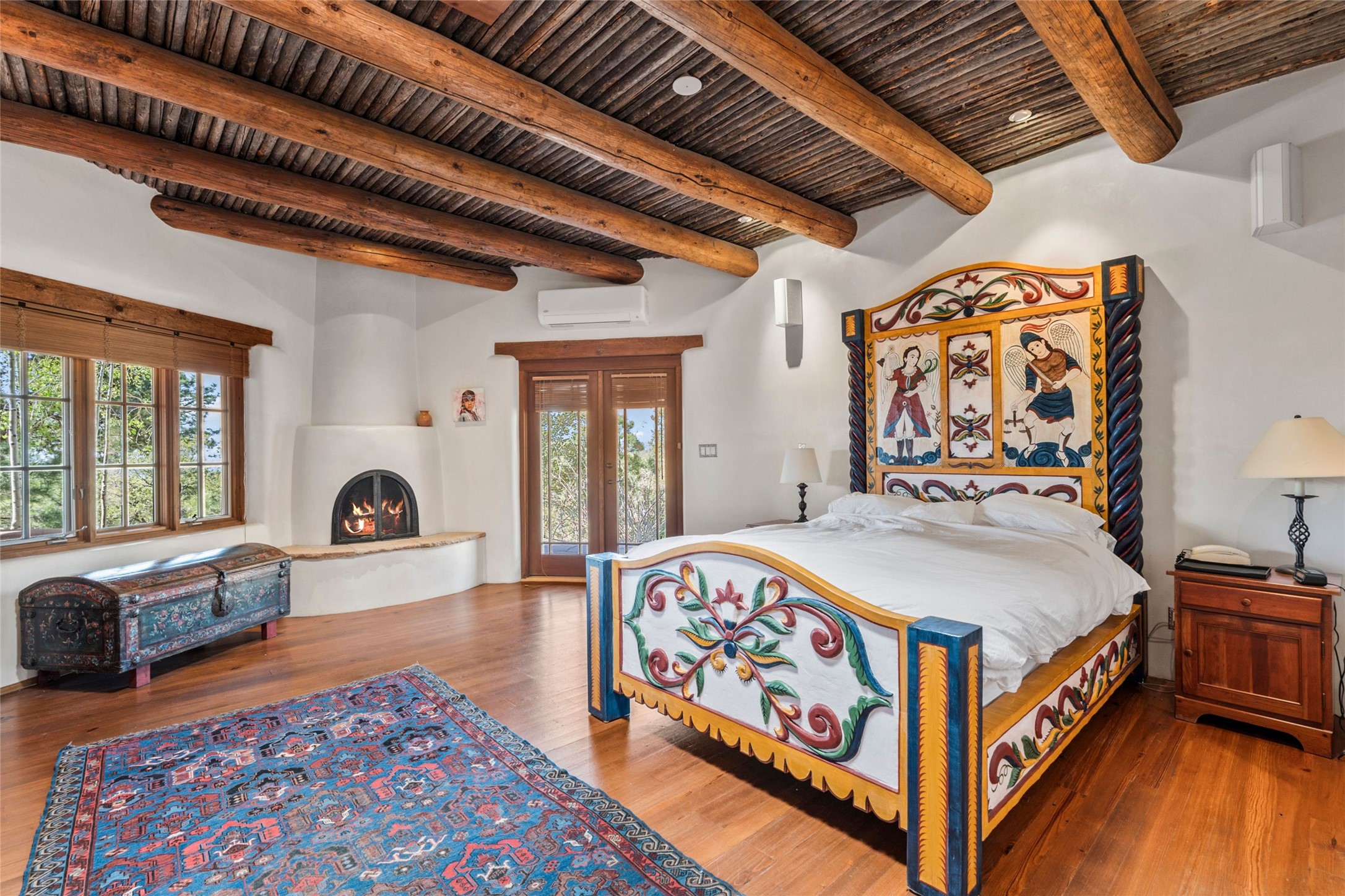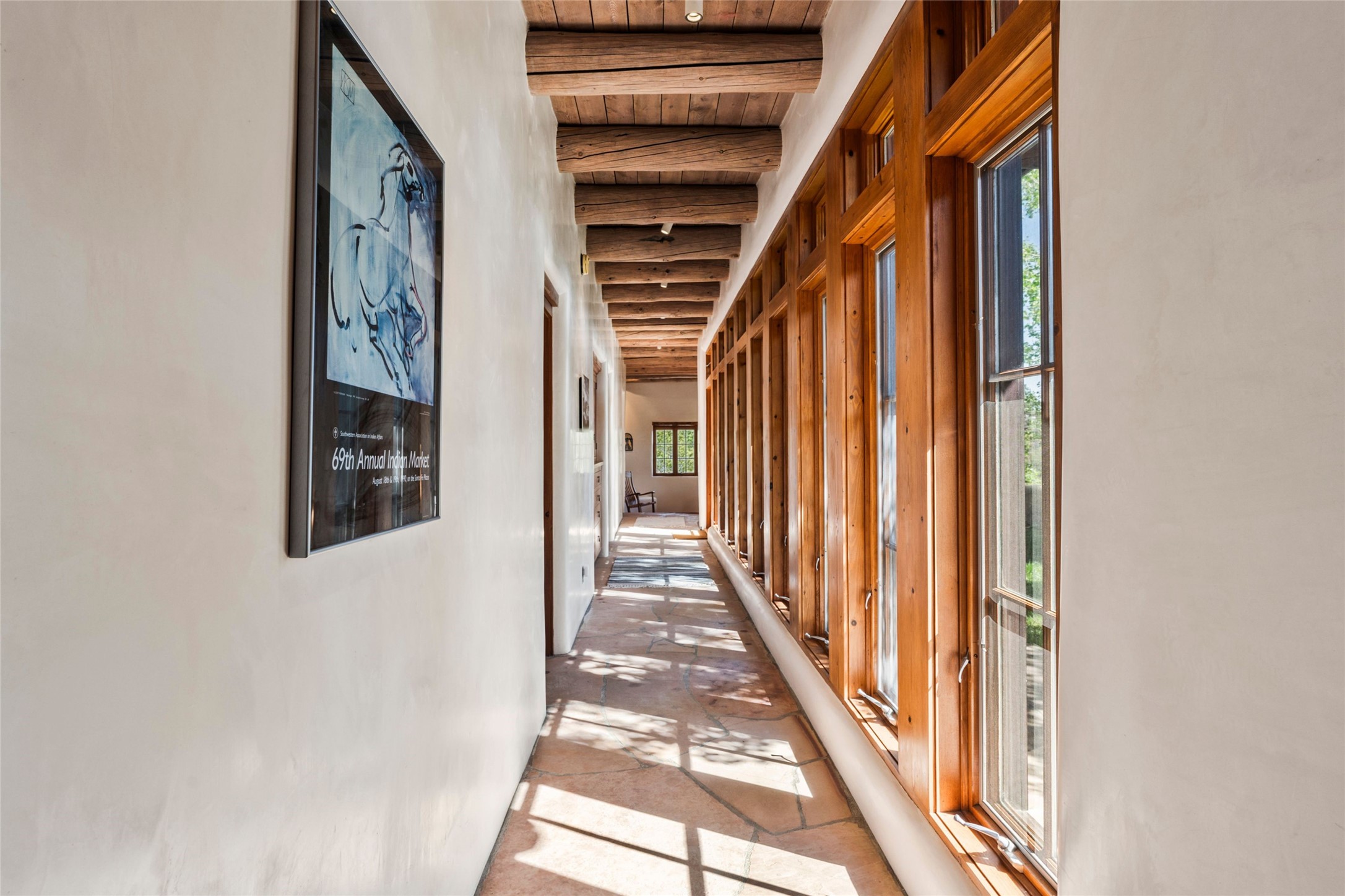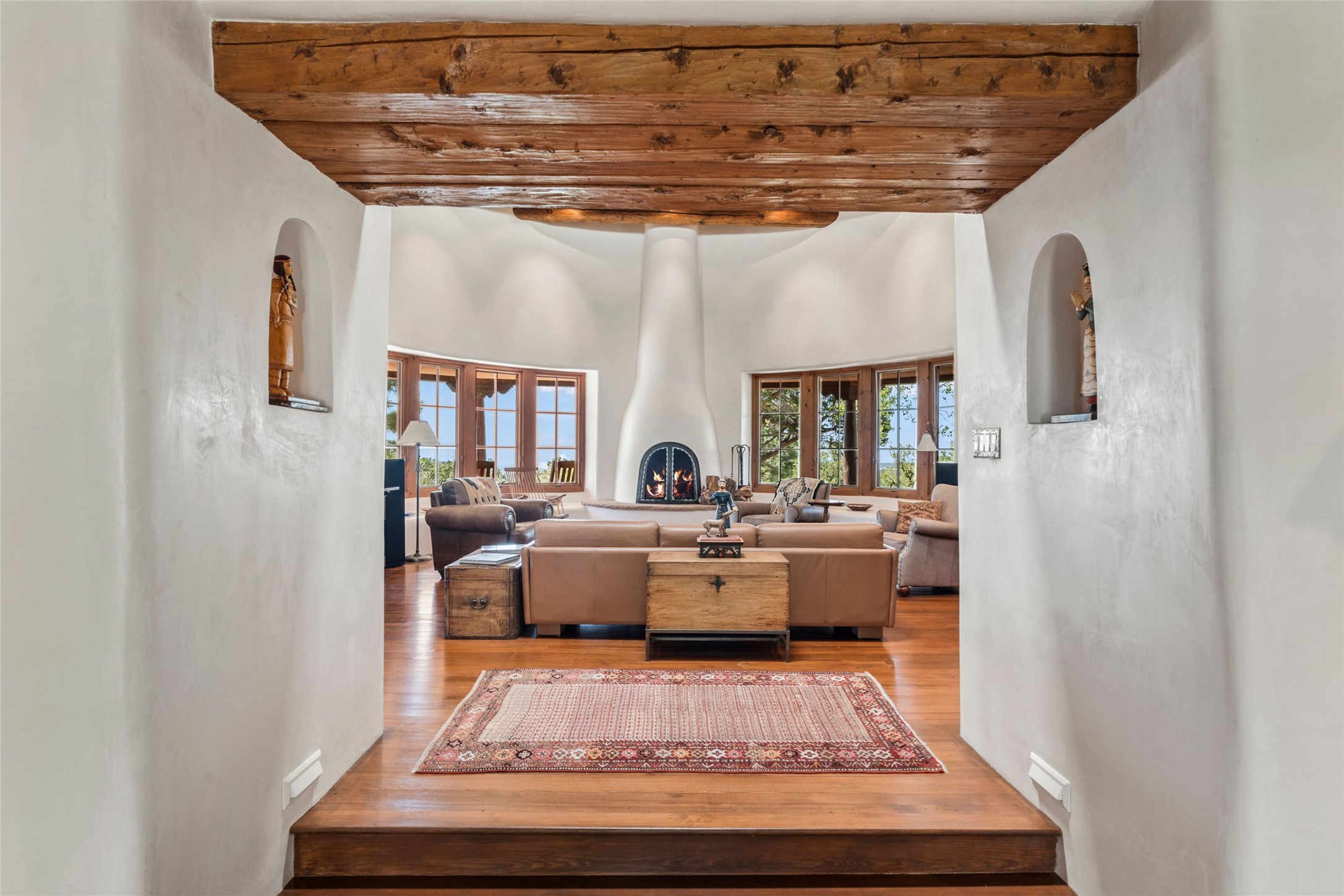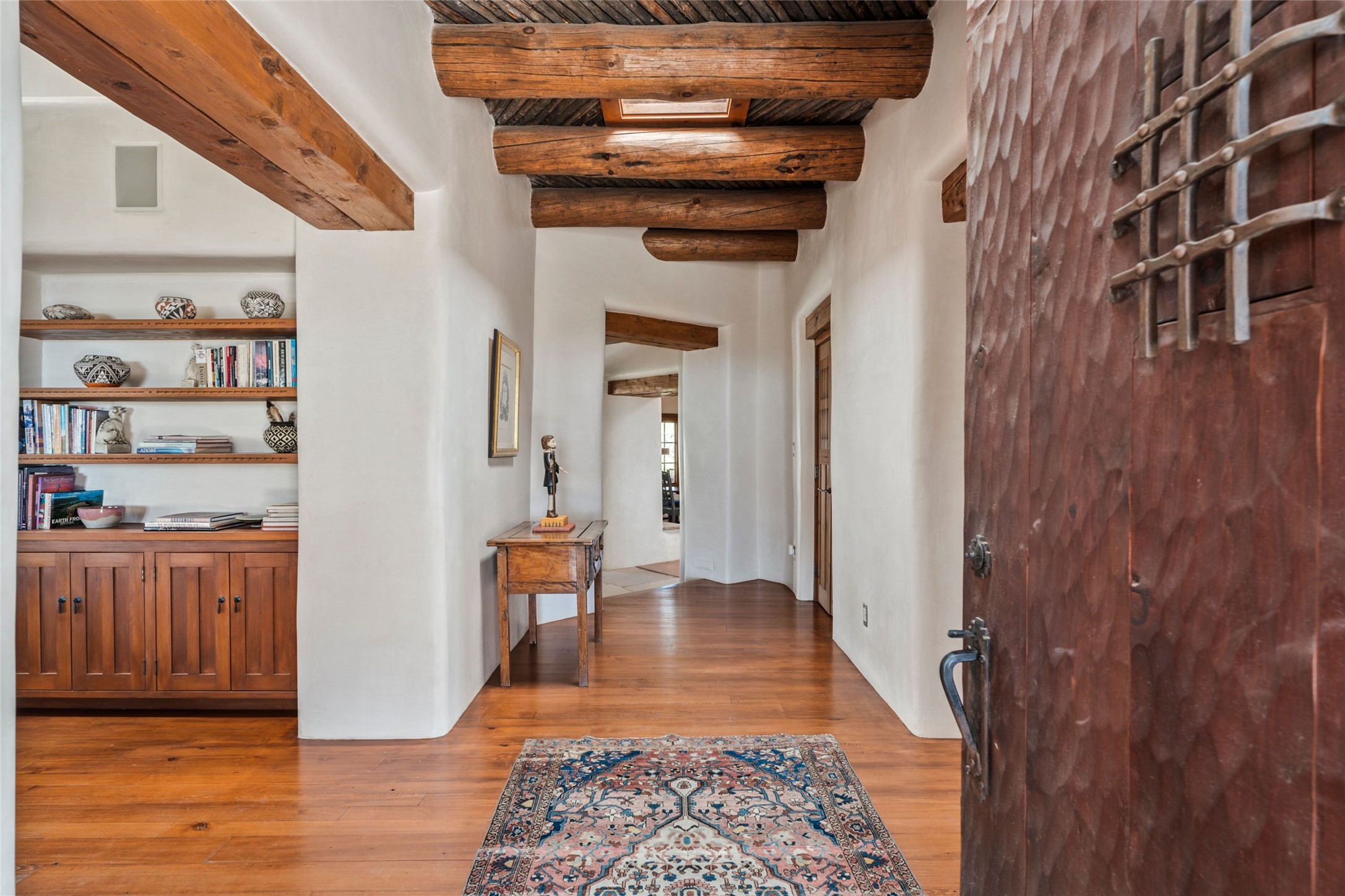 On the edge of the historic eastside, above St. John's College, within the gated and desirable Ponderosa Ridge community, 1863 Camino de Cruz Blanca is a rare and exceptional property. Carrying a Michael Bauer-designed and a Doug McDowell-built pedigree, this prize provides a substantial 3-bedroom main house, a 2-bedroom casita, a studio, and pool on over 4-acres bordering public lands. The main house sits high above town with views to the west towards Jemez Mountains and Los Alamos, and the backyard and pool look east up at Atalaya Mountain looming above. The 4,960 sq. ft. main house and 1,172 sq. ft. casita are rich in craftsmanship and integrity, built of double adobe with classic puebloan features - large vigas, carved wood doors, flagstone, antique pine and saltillo tile floors - while having the scale to accommodate modern living. In addition, the property has a separate 275 sq. ft. room that could serve as an exercise room or artist studio. The outdoor spaces are a secluded extension of the open space beyond and achieve the balance between maximizing views and privacy. The lot provides direct access to the Atalaya and St. John's hiking/biking trails. Still owned by the original owner, the property exudes pride of ownership. Recent improvements, completed in 2024 and 2025, include a new TPO roof, newly wrapped exterior stucco, and new heat pump minisplit heating and cooling. Two adjacent, separately deeded, buildable lots are also available for purchase separately, increasing the offering to 13 total acres. 1863 Camino de Cruz Blanca is an incredible property of great substance and character, set in a "goldilocks" location that perfectly strikes close proximity to downtown with direct connectivity to our unbounded natural setting.