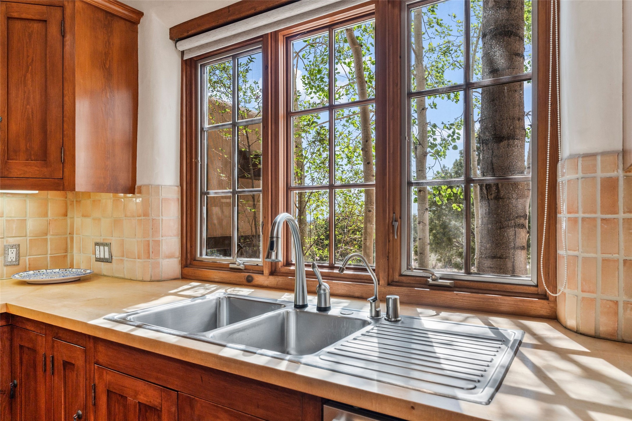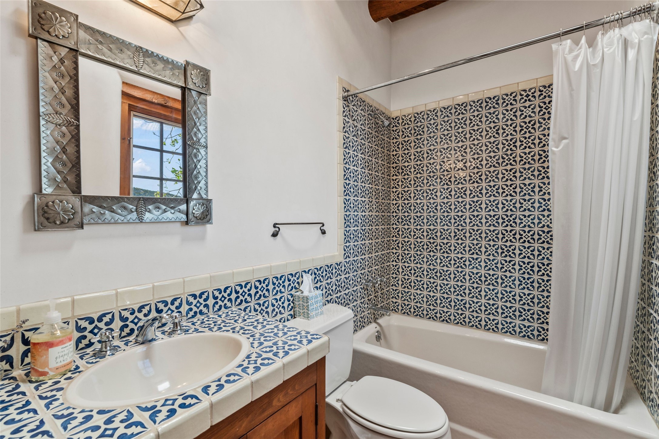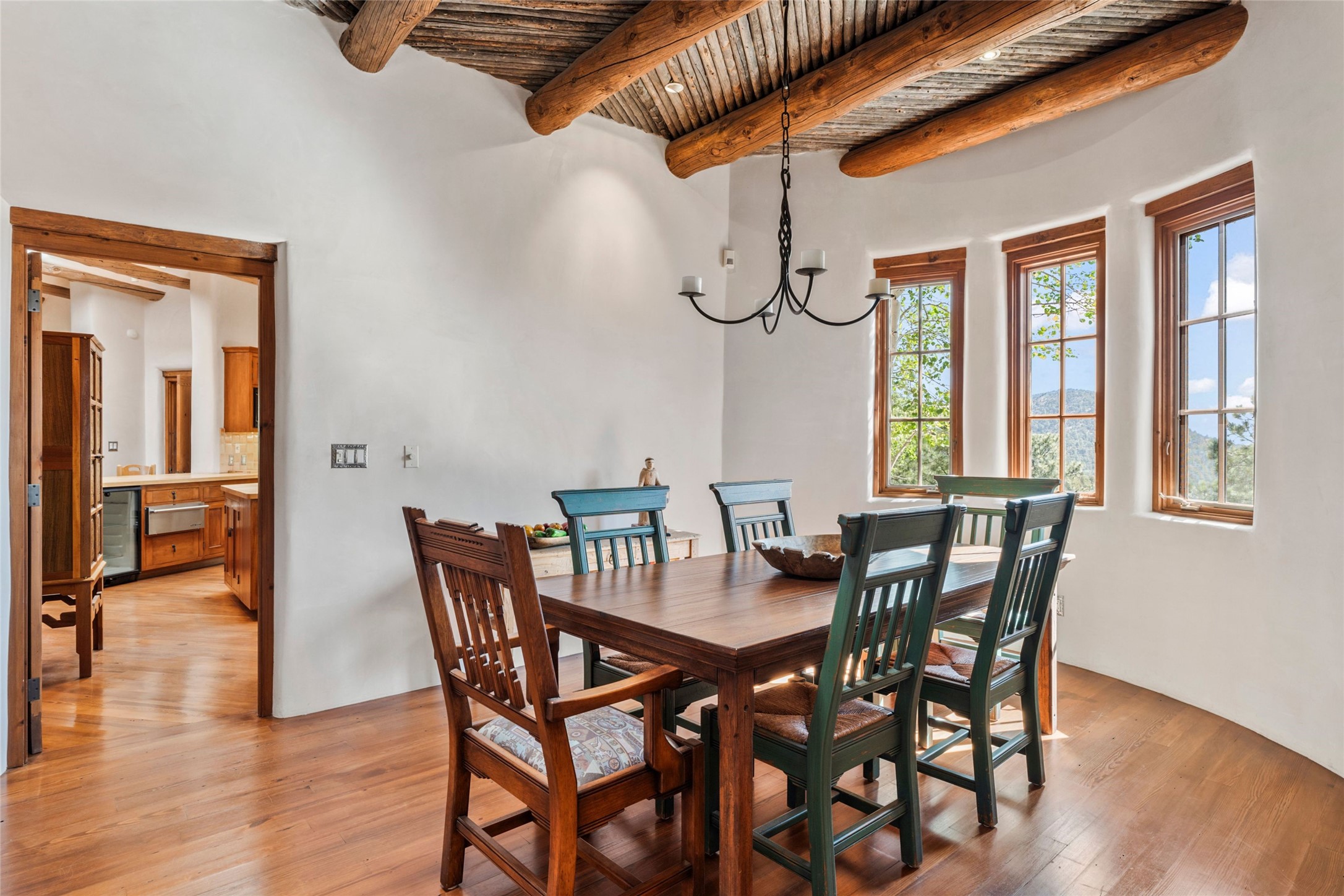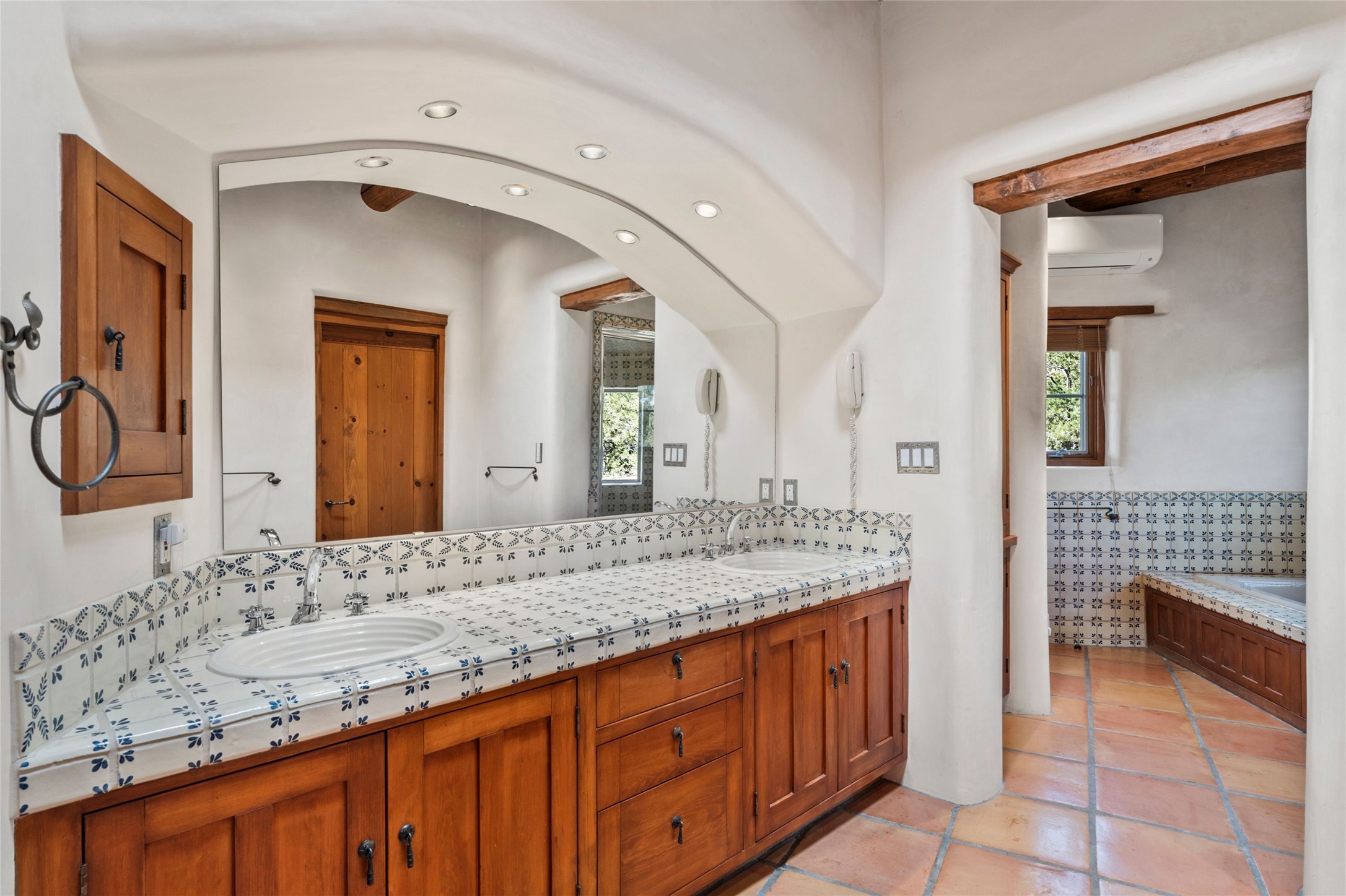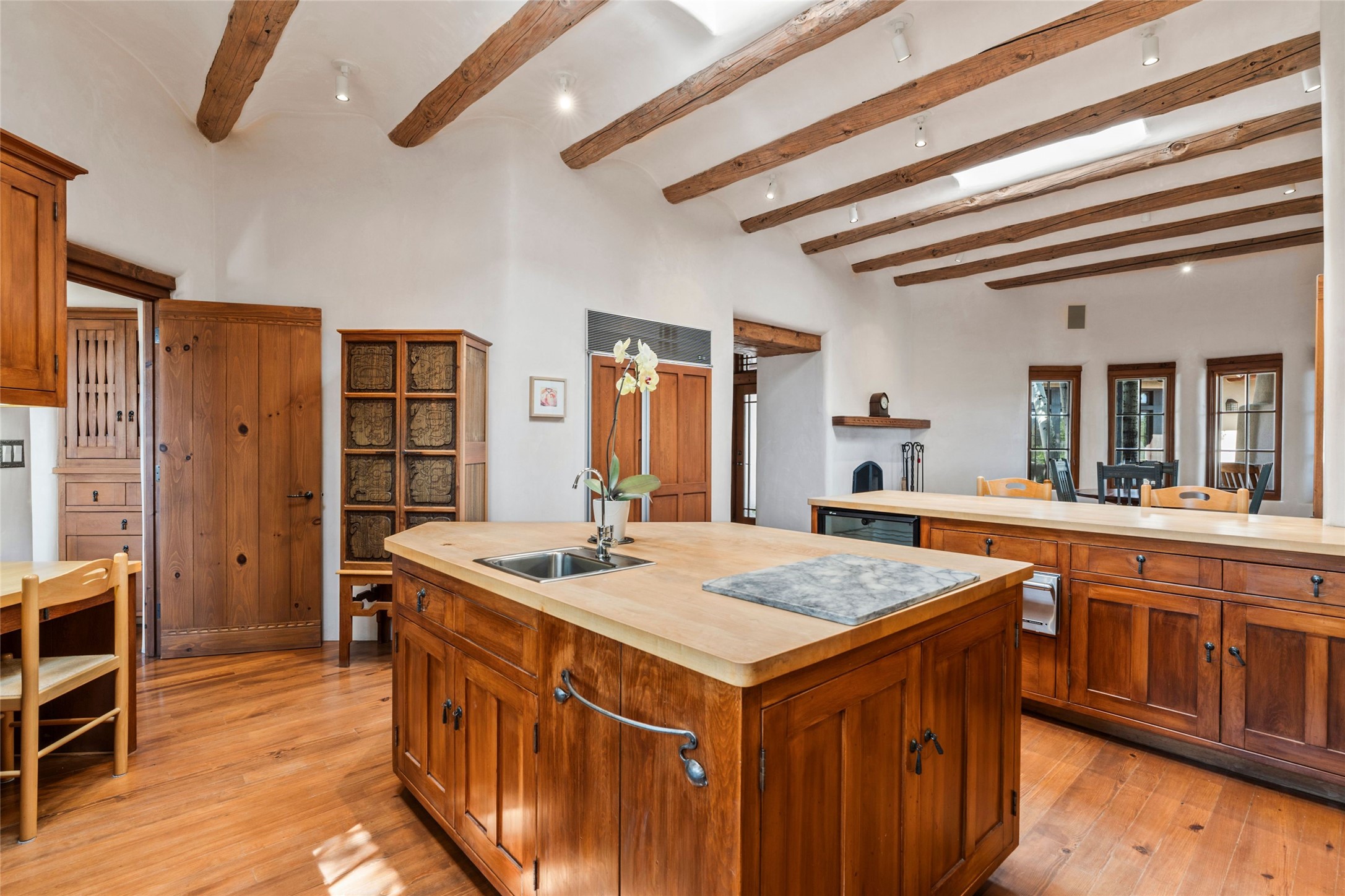 On the edge of the historic eastside, above St. John's College, within the gated and desirable Ponderosa Ridge community, 1863 Camino de Cruz Blanca is a rare and exceptional property. Carrying a Michael Bauer-designed and a Doug McDowell-built pedigree, this prize provides a substantial 3-bedroom main house, a 2-bedroom casita, a studio, and pool on over 4-acres bordering public lands. The main house sits high above town with views to the west towards Jemez Mountains and Los Alamos, and the backyard and pool look east up at Atalaya Mountain looming above. The 4,960 sq. ft. main house and 1,172 sq. ft. casita are rich in craftsmanship and integrity, built of double adobe with classic puebloan features - large vigas, carved wood doors, flagstone, antique pine and saltillo tile floors - while having the scale to accommodate modern living. In addition, the property has a separate 275 sq. ft. room that could serve as an exercise room or artist studio. The outdoor spaces are a secluded extension of the open space beyond and achieve the balance between maximizing views and privacy. The lot provides direct access to the Atalaya and St. John's hiking/biking trails. Still owned by the original owner, the property exudes pride of ownership. Recent improvements, completed in 2024 and 2025, include a new TPO roof, newly wrapped exterior stucco, and new heat pump minisplit heating and cooling. Two adjacent, separately deeded, buildable lots are also available for purchase separately, increasing the offering to 13 total acres. 1863 Camino de Cruz Blanca is an incredible property of great substance and character, set in a "goldilocks" location that perfectly strikes close proximity to downtown with direct connectivity to our unbounded natural setting.