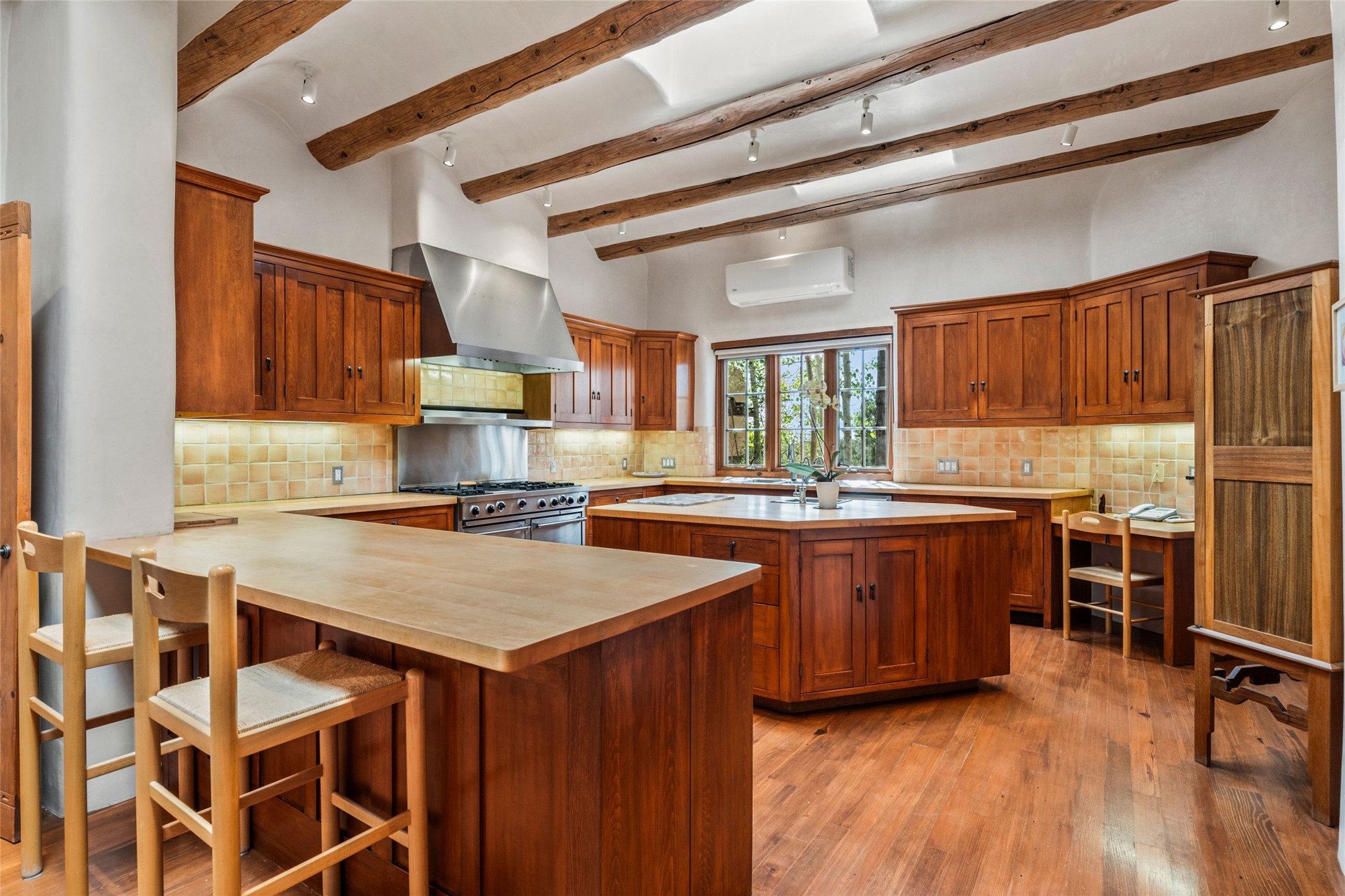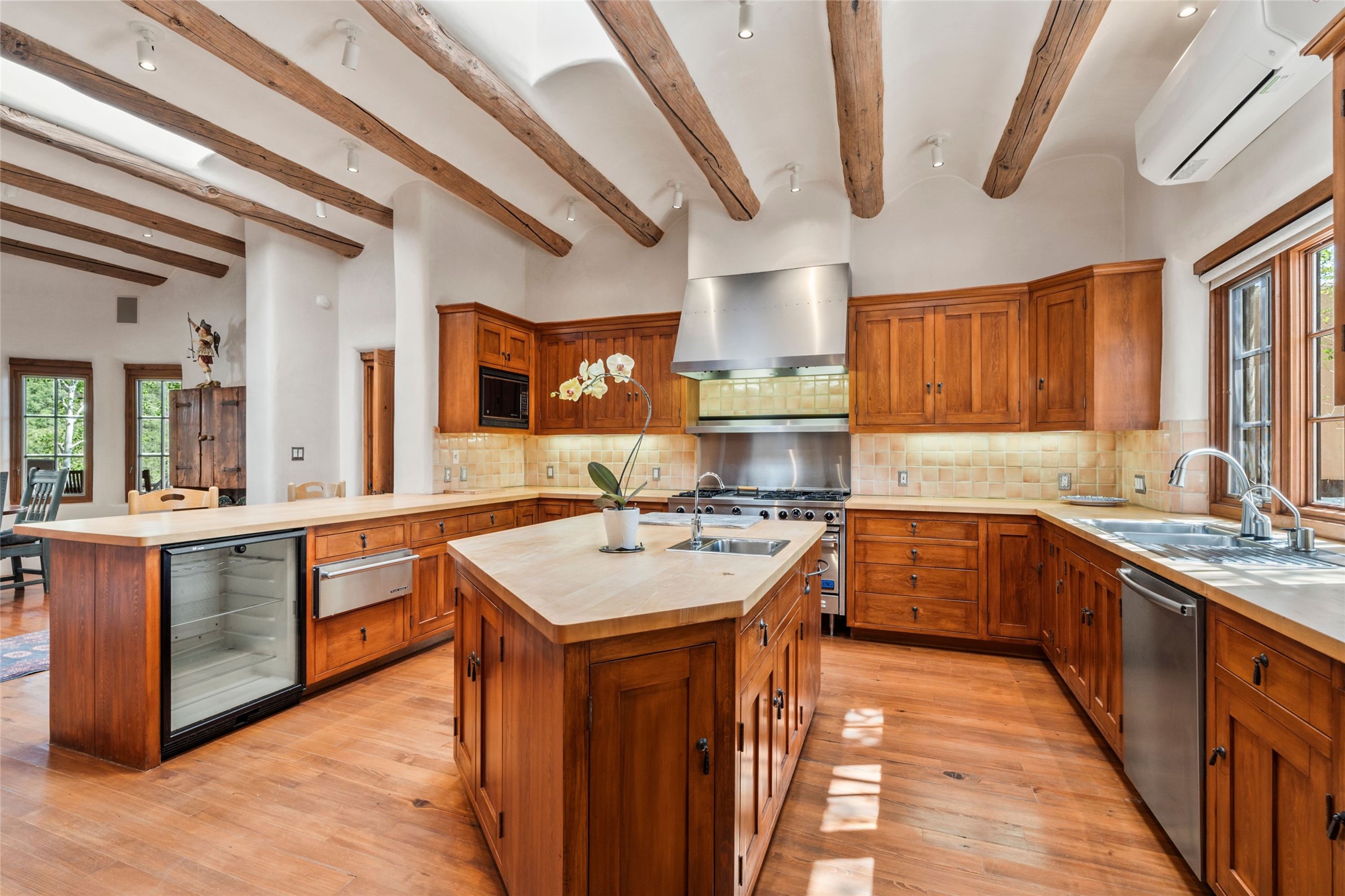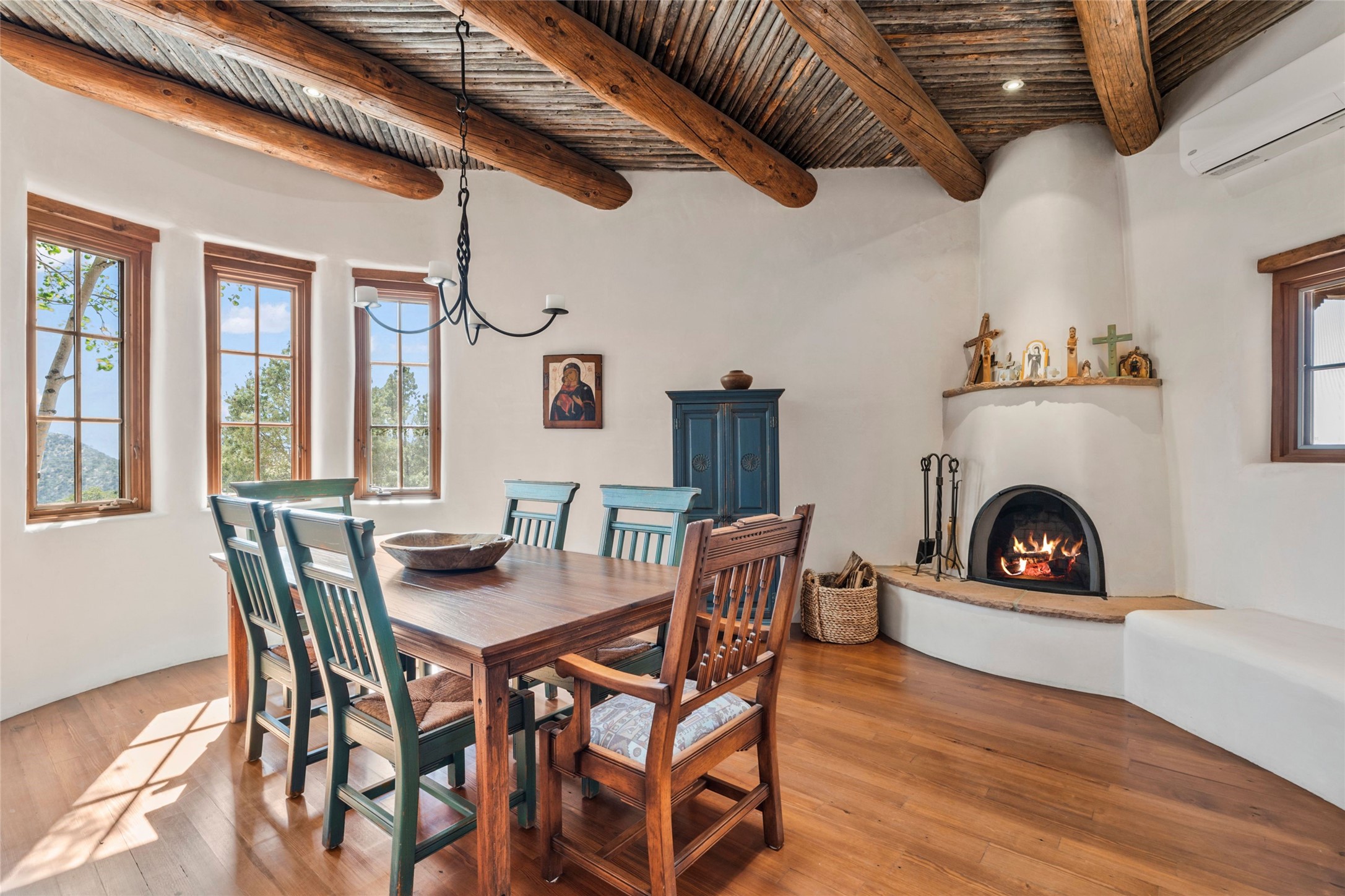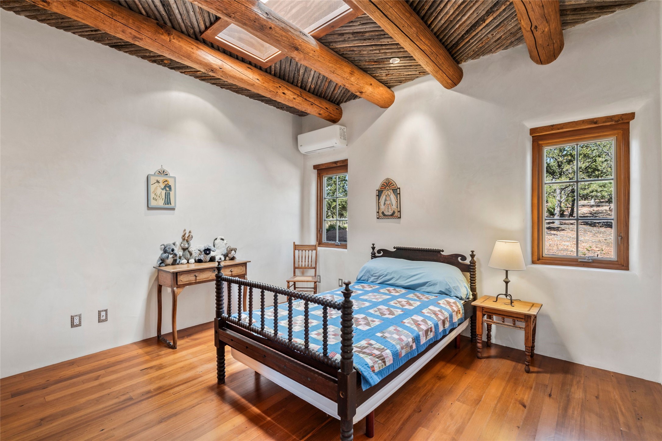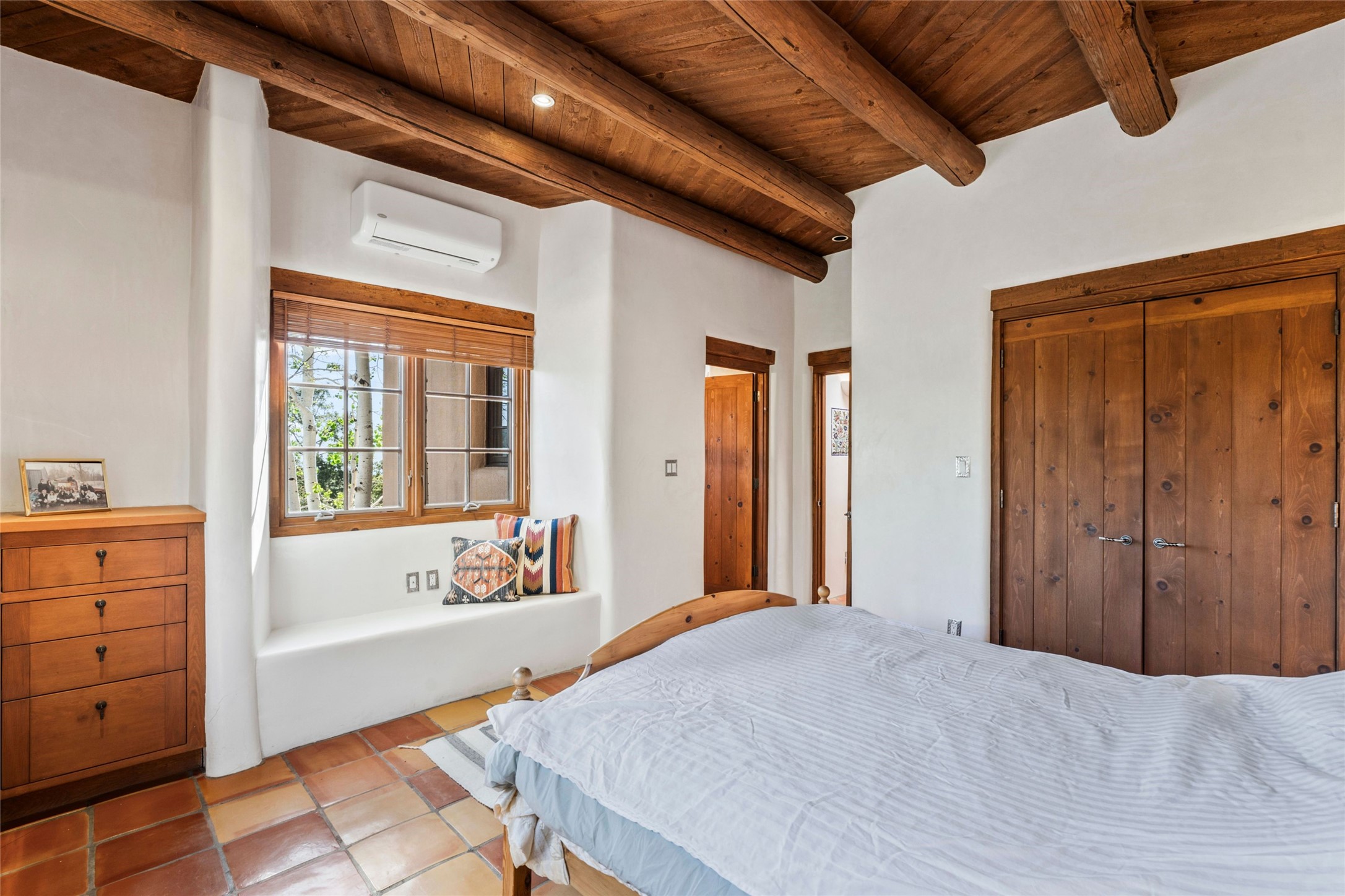 On the edge of the historic eastside, above St. John's College, within the gated and desirable Ponderosa Ridge community, 1863 Camino de Cruz Blanca is a rare and exceptional property. Carrying a Michael Bauer-designed and a Doug McDowell-built pedigree, this prize provides a substantial 3-bedroom main house, a 2-bedroom casita, a studio, and pool on over 4-acres bordering public lands. The main house sits high above town with views to the west towards Jemez Mountains and Los Alamos, and the backyard and pool look east up at Atalaya Mountain looming above. The 4,960 sq. ft. main house and 1,172 sq. ft. casita are rich in craftsmanship and integrity, built of double adobe with classic puebloan features - large vigas, carved wood doors, flagstone, antique pine and saltillo tile floors - while having the scale to accommodate modern living. In addition, the property has a separate 275 sq. ft. room that could serve as an exercise room or artist studio. The outdoor spaces are a secluded extension of the open space beyond and achieve the balance between maximizing views and privacy. The lot provides direct access to the Atalaya and St. John's hiking/biking trails. Still owned by the original owner, the property exudes pride of ownership. Recent improvements, completed in 2024 and 2025, include a new TPO roof, newly wrapped exterior stucco, and new heat pump minisplit heating and cooling. Two adjacent, separately deeded, buildable lots are also available for purchase separately, increasing the offering to 13 total acres. 1863 Camino de Cruz Blanca is an incredible property of great substance and character, set in a "goldilocks" location that perfectly strikes close proximity to downtown with direct connectivity to our unbounded natural setting.