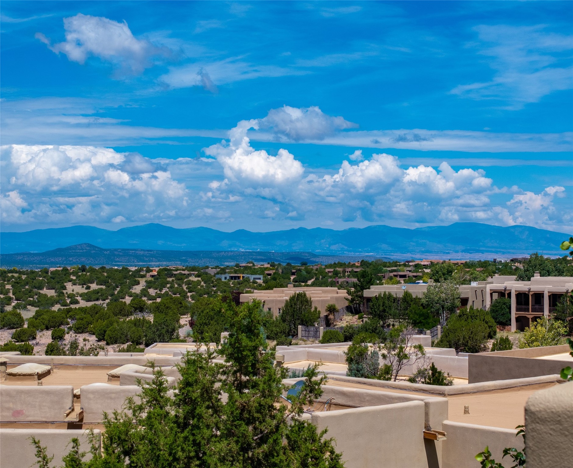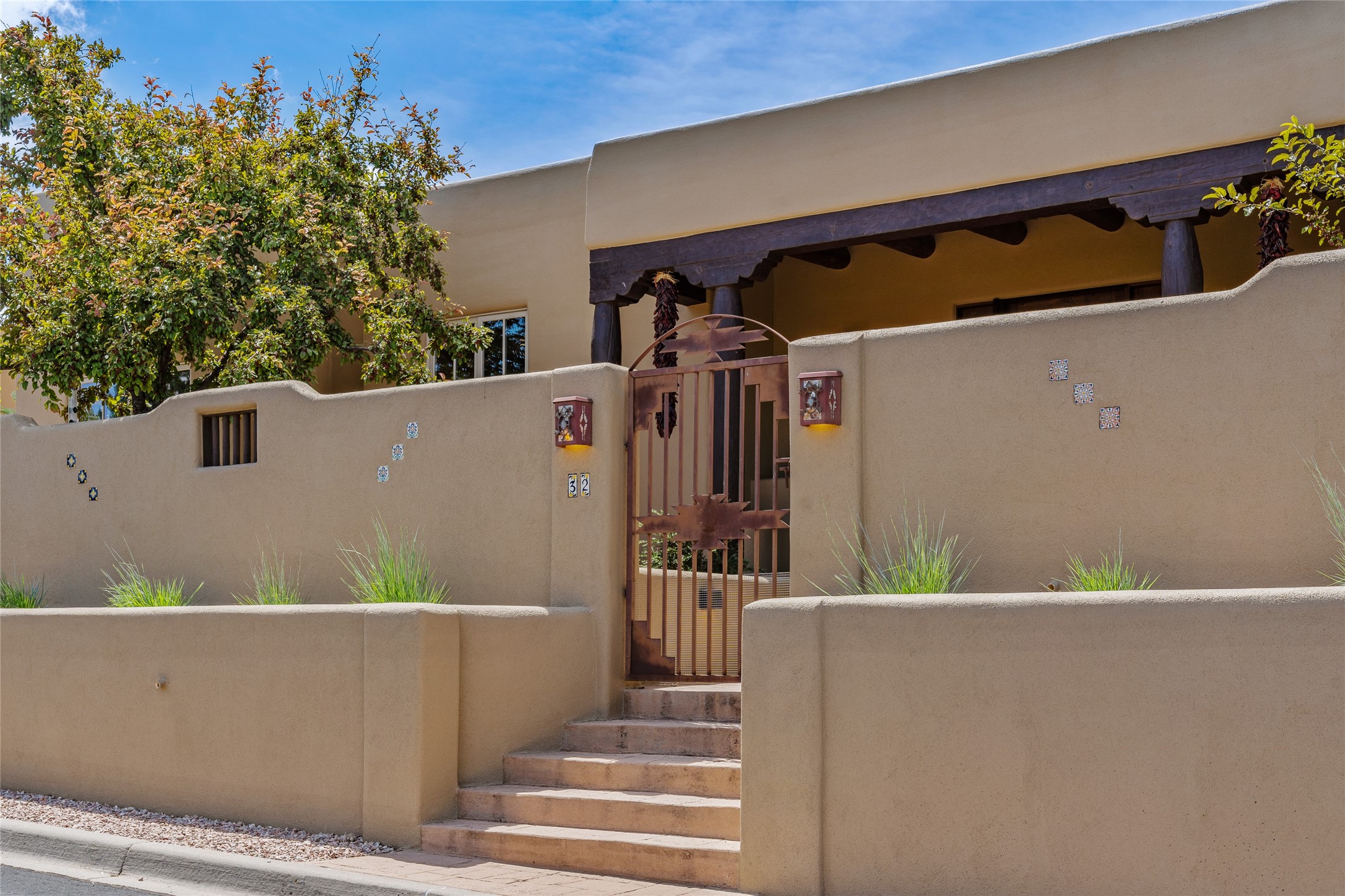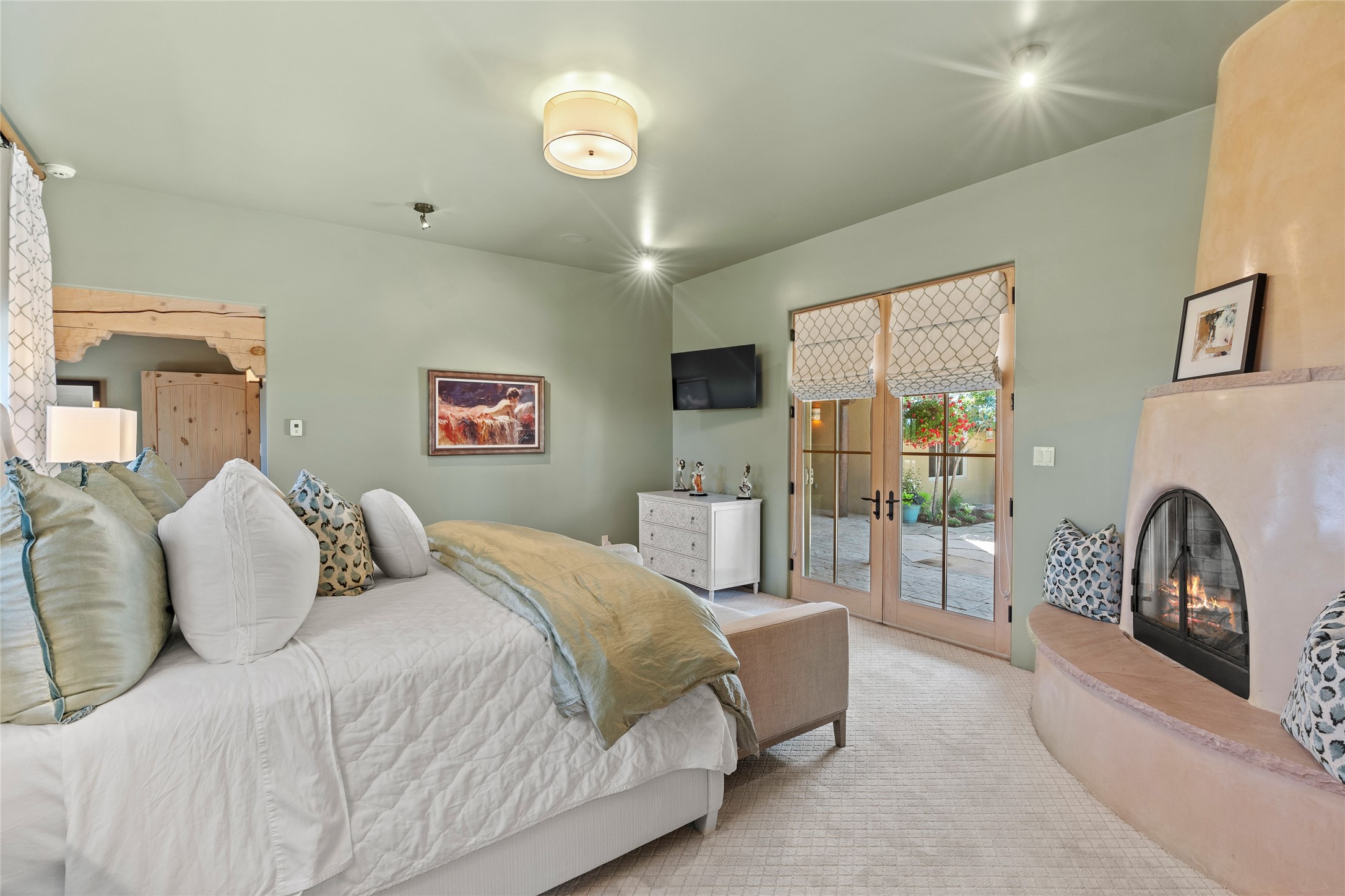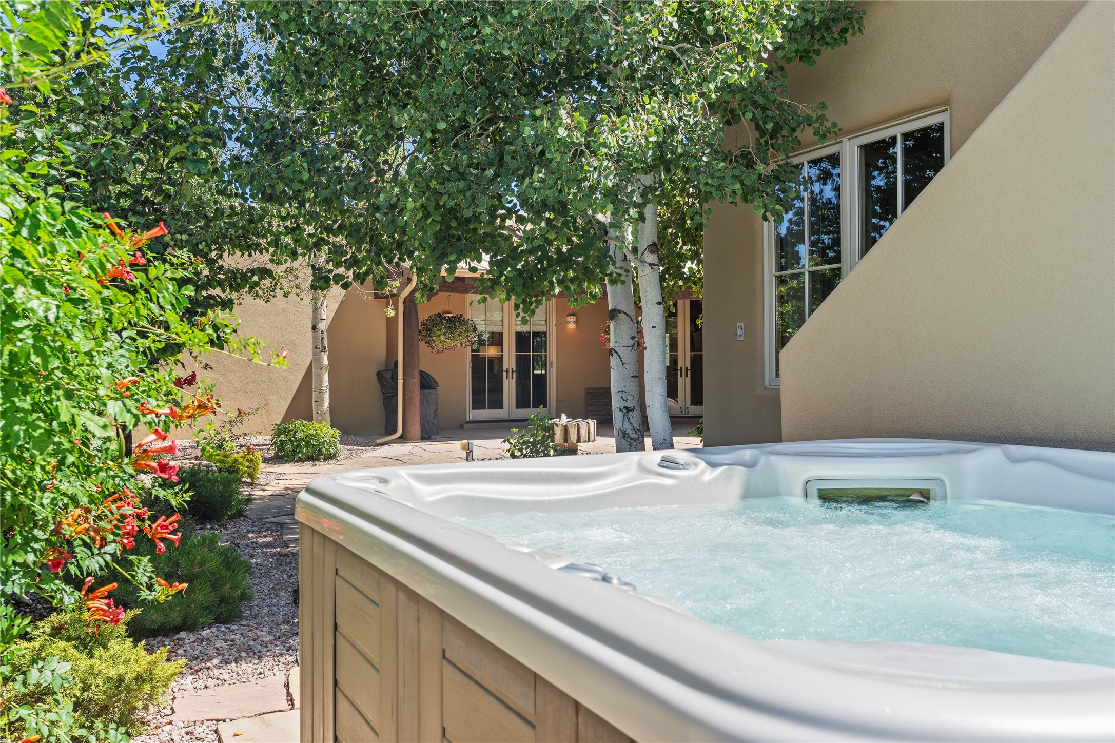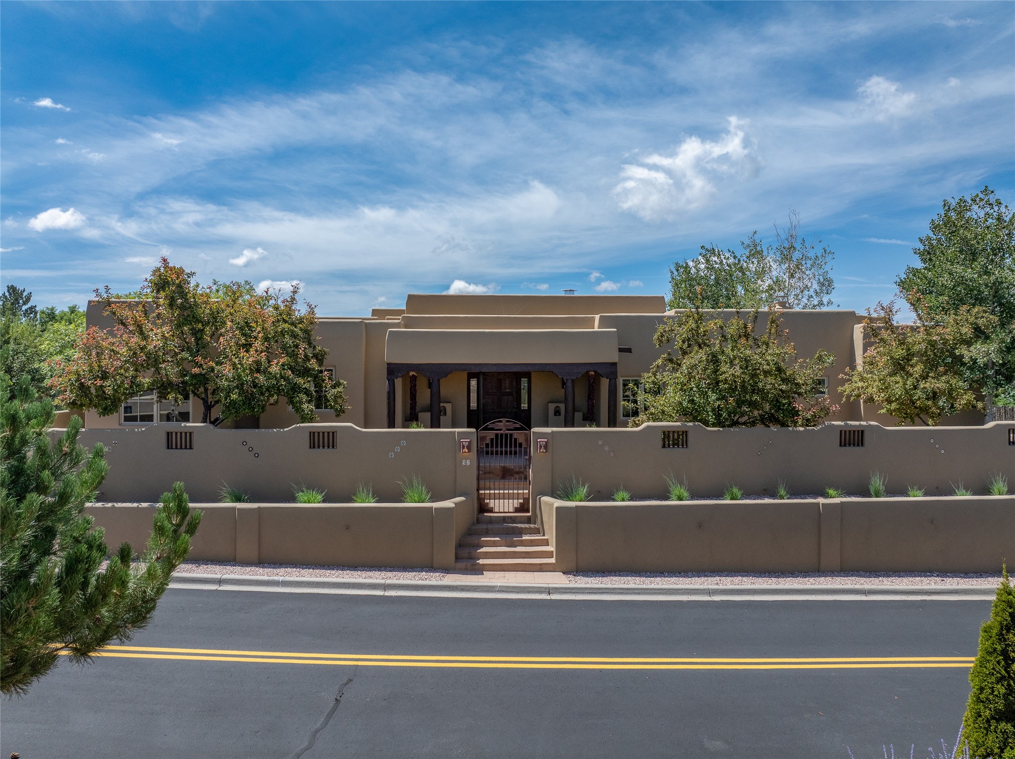 Elegance meets versatility in Santa Fe's much desired Aldea community. This refined, single-level home with a guest-ready casita truly delivers. Traditional Santa Fe-style architecture perfectly complements the artfully designed interior, offering a seamless fusion of style, comfort, and flexibility. The main house feature 3,284 +/- sqft of living space and includes three bedrooms plus a bonus media room or den, perfect for entertainment, lounging, studio or work from home needs. The chef's kitchen is polished and offers incredible functionality with recently installed Thermador appliances, a spacious informal dining nook and pantry storage. The primary suite is luxurious and only one of several tasteful retreats offered by this thoughtful floorplan. Two guest bedrooms, a large laundry/mudroom, and oversized two-car garage balance form with function. The one bedroom casita is accessed from the central courtyard and is equipped with a comfortable living space, gas burning fireplace and private kitchen area-the perfect space to host friends and family. Up an exterior flight of stairs is the rooftop deck which features 360-degree views of the Sangre de Cristo, Jemez, and Sandia mountain ranges. Outside living areas are well manicured, yet low-maintenance, and are watered by a 4-zone irrigation system. Aldea is a vibrant, active community with miles of walking trails, a community center, and other amenities-all just 15 minutes from downtown Santa Fe. ***A comprehensive list of recent improvements and complete furniture package is available upon request. ***