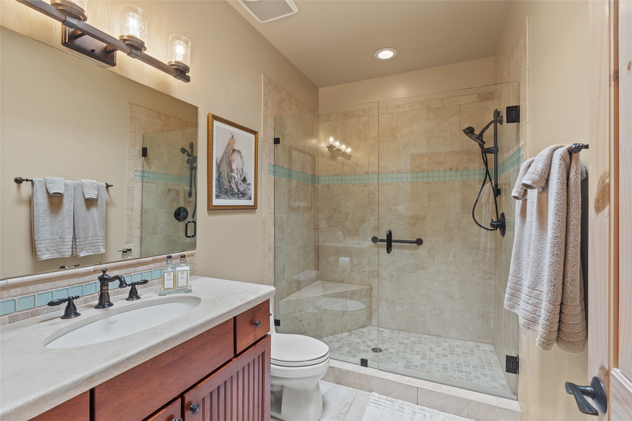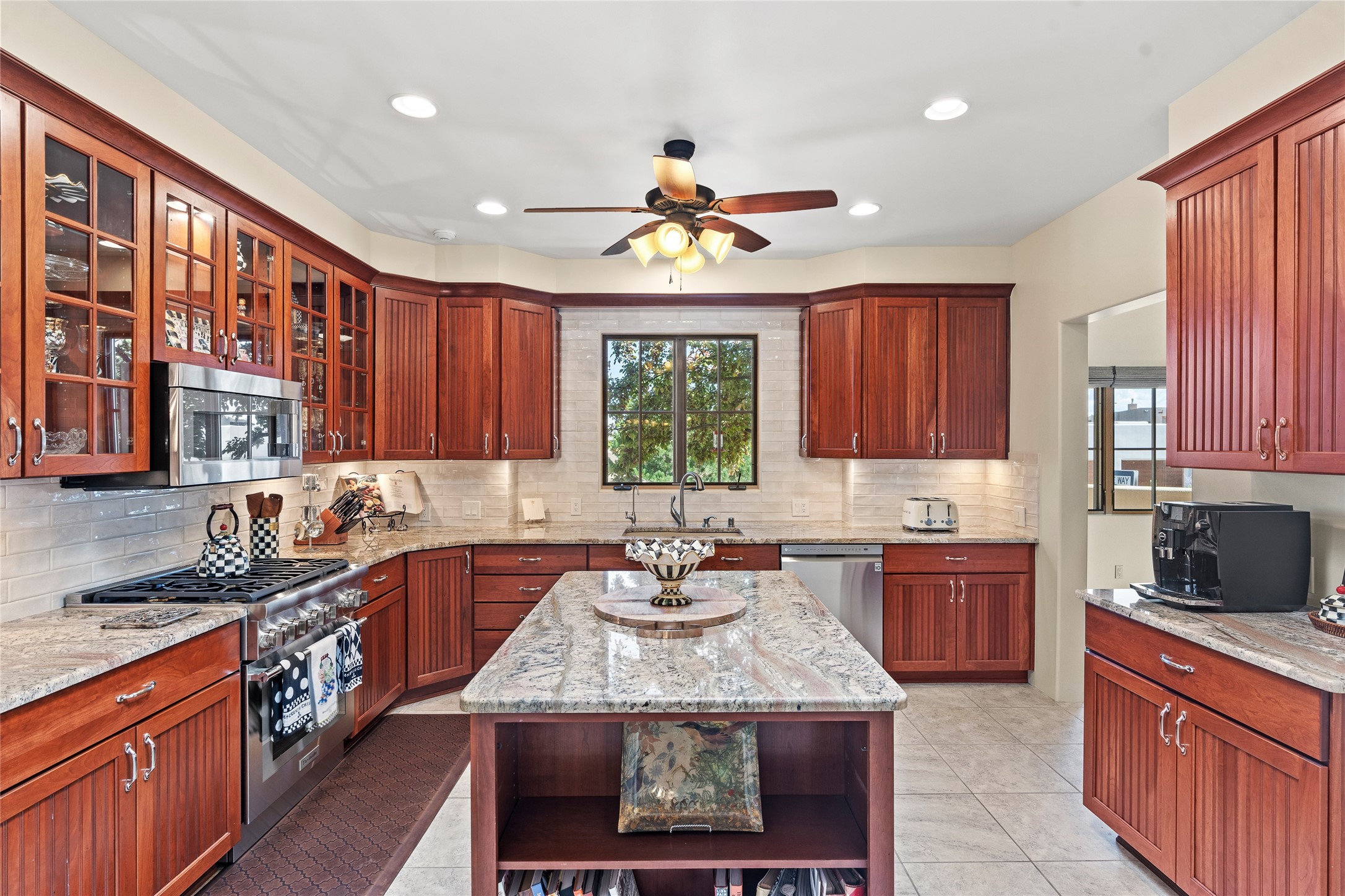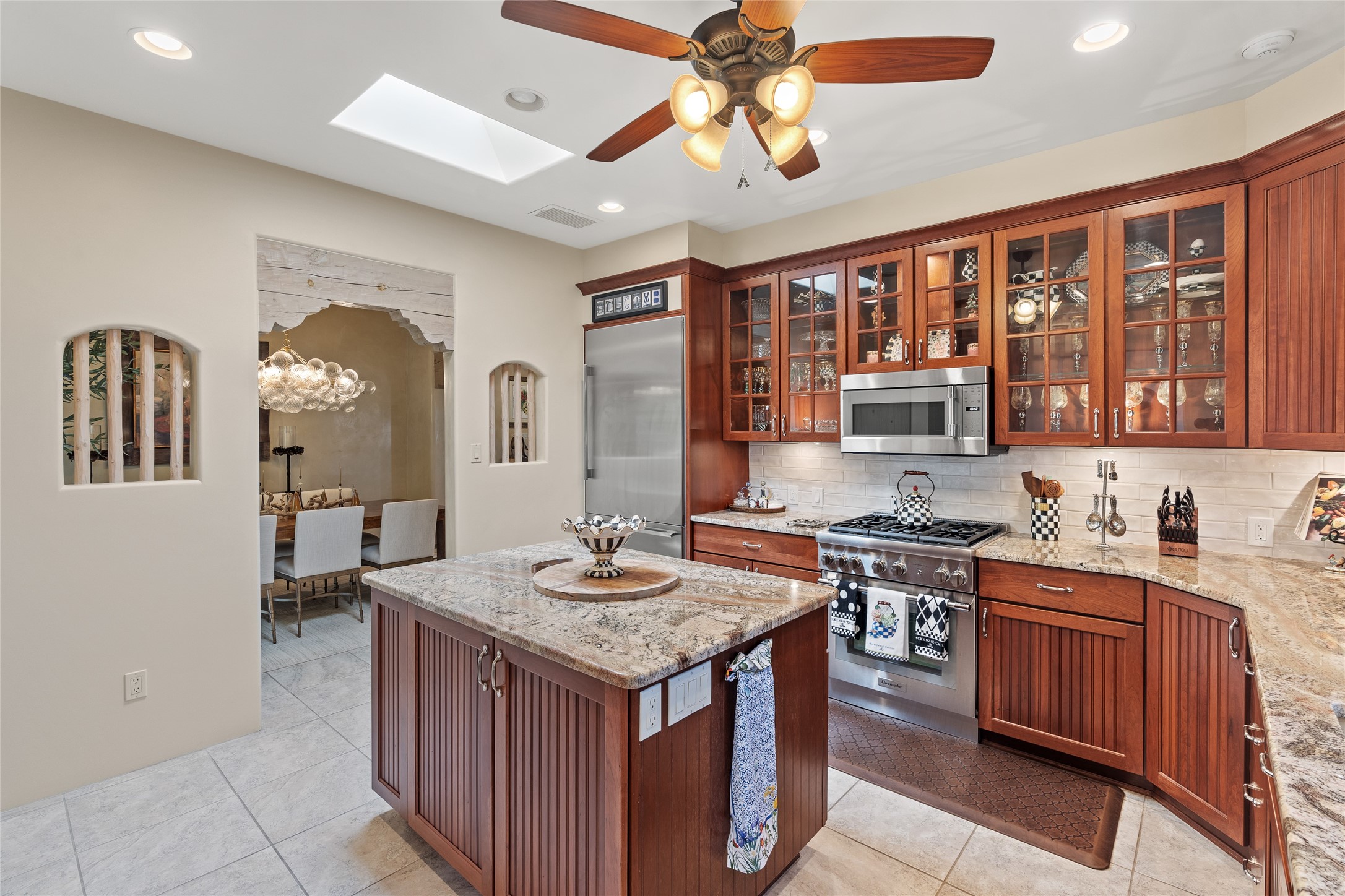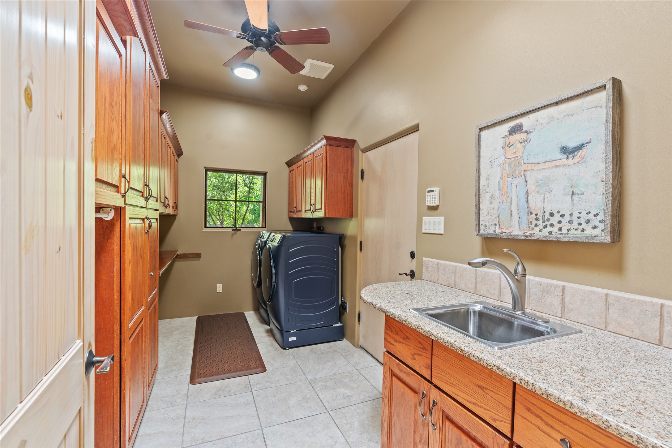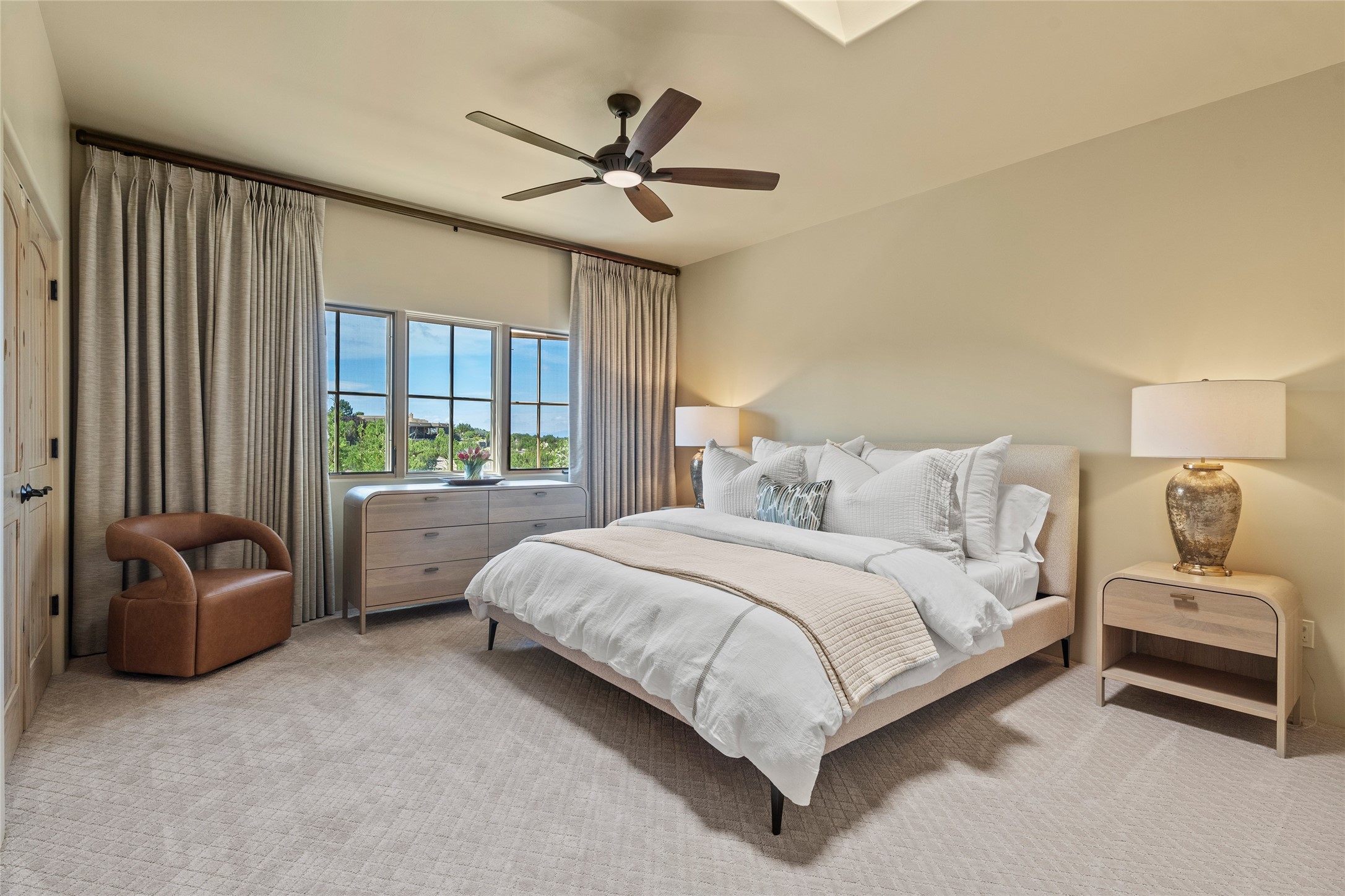 Elegance meets versatility in Santa Fe's much desired Aldea community. This refined, single-level home with a guest-ready casita truly delivers. Traditional Santa Fe-style architecture perfectly complements the artfully designed interior, offering a seamless fusion of style, comfort, and flexibility. The main house feature 3,284 +/- sqft of living space and includes three bedrooms plus a bonus media room or den, perfect for entertainment, lounging, studio or work from home needs. The chef's kitchen is polished and offers incredible functionality with recently installed Thermador appliances, a spacious informal dining nook and pantry storage. The primary suite is luxurious and only one of several tasteful retreats offered by this thoughtful floorplan. Two guest bedrooms, a large laundry/mudroom, and oversized two-car garage balance form with function. The one bedroom casita is accessed from the central courtyard and is equipped with a comfortable living space, gas burning fireplace and private kitchen area-the perfect space to host friends and family. Up an exterior flight of stairs is the rooftop deck which features 360-degree views of the Sangre de Cristo, Jemez, and Sandia mountain ranges. Outside living areas are well manicured, yet low-maintenance, and are watered by a 4-zone irrigation system. Aldea is a vibrant, active community with miles of walking trails, a community center, and other amenities-all just 15 minutes from downtown Santa Fe. ***A comprehensive list of recent improvements and complete furniture package is available upon request. ***