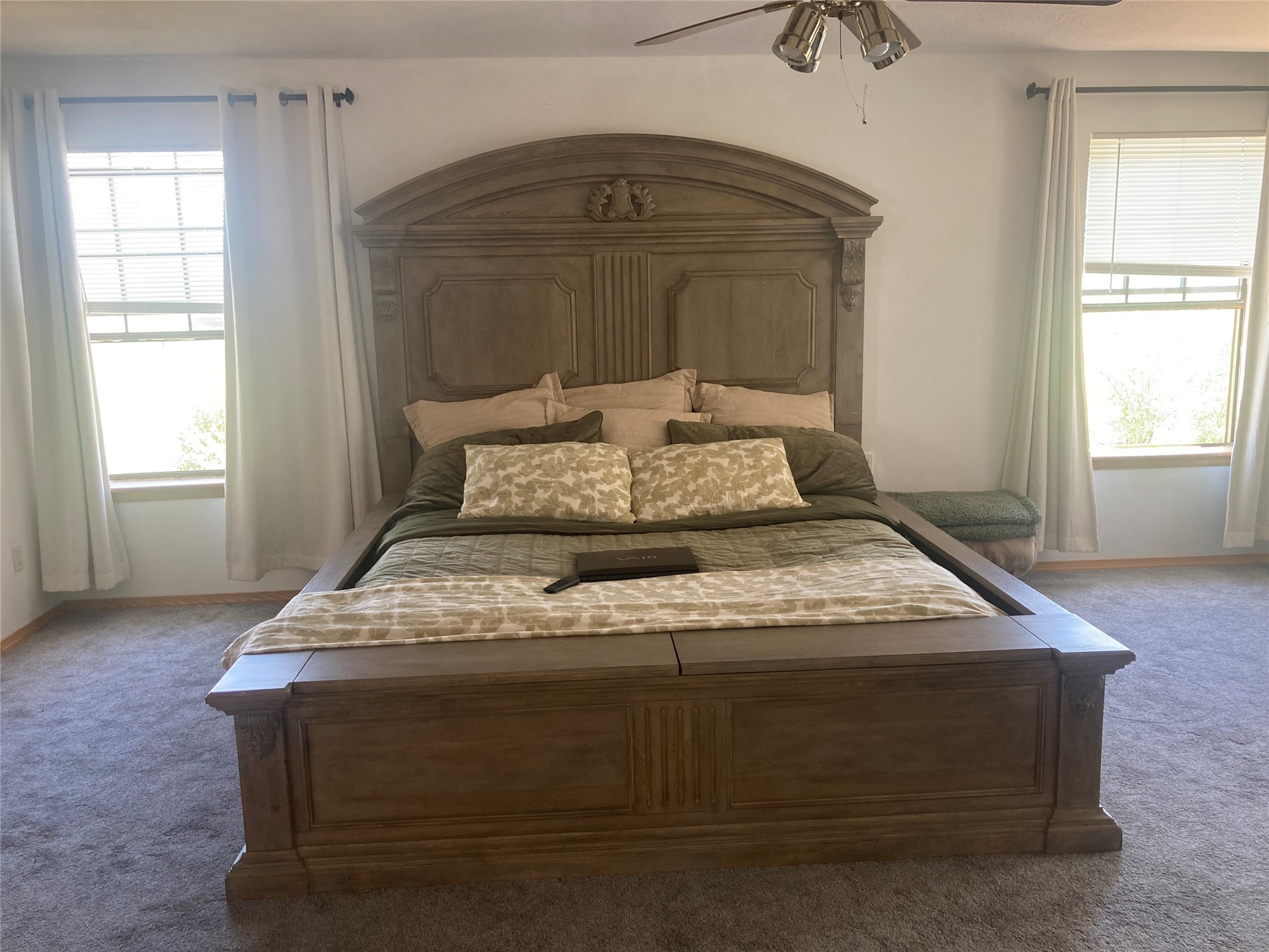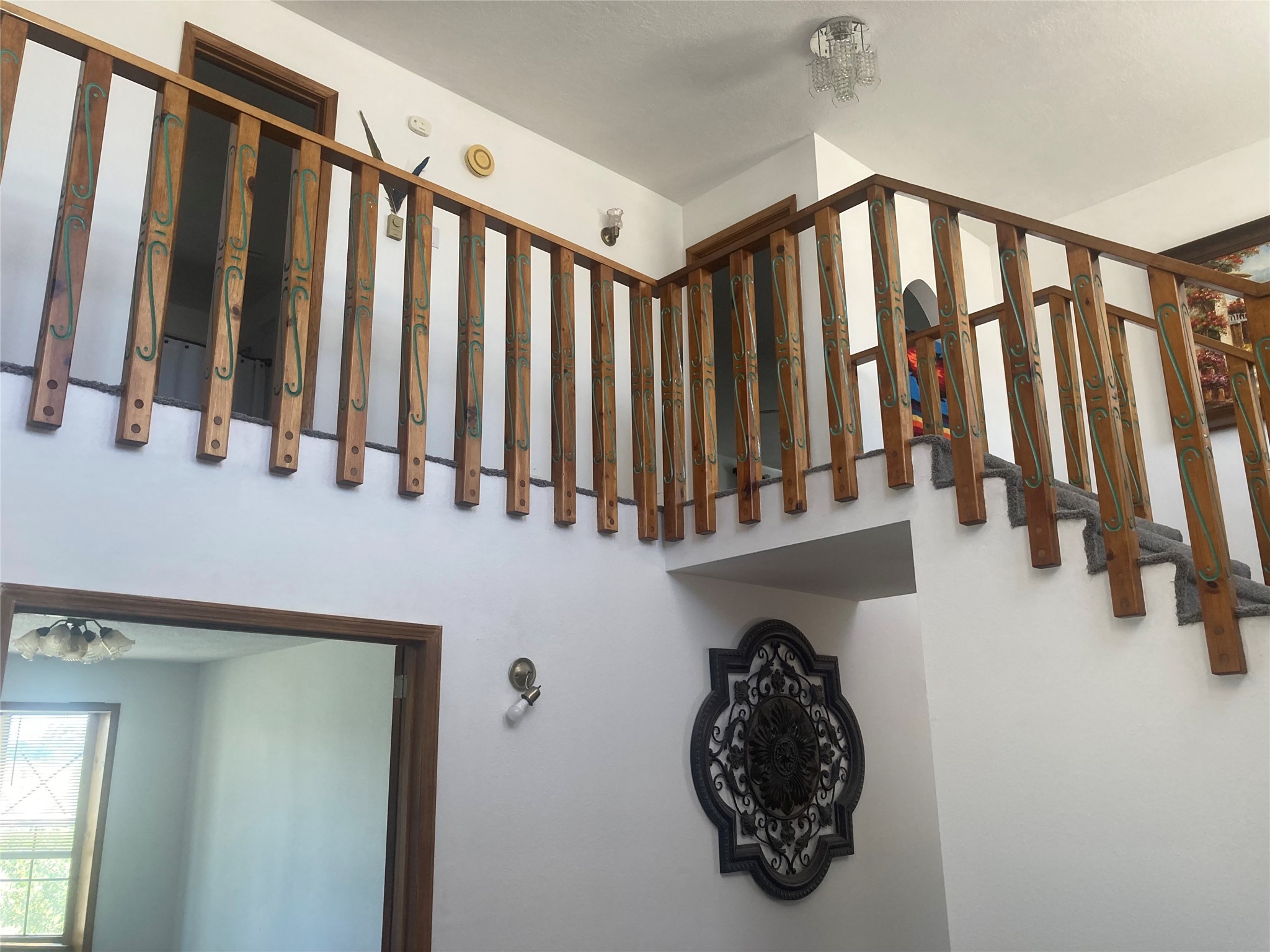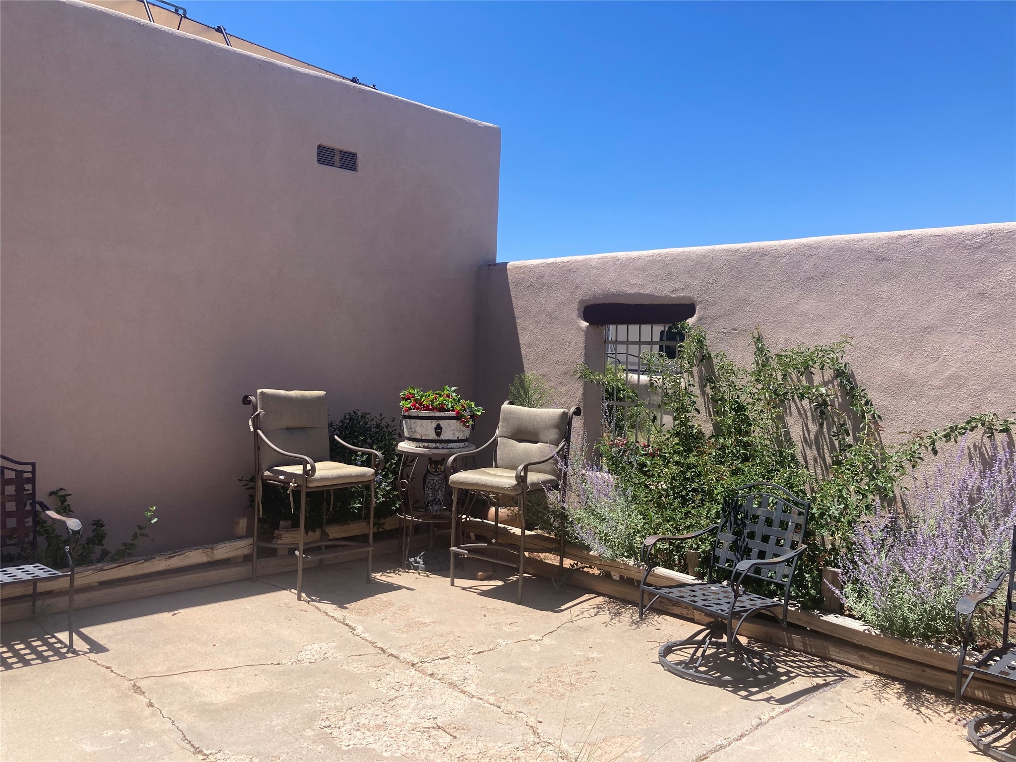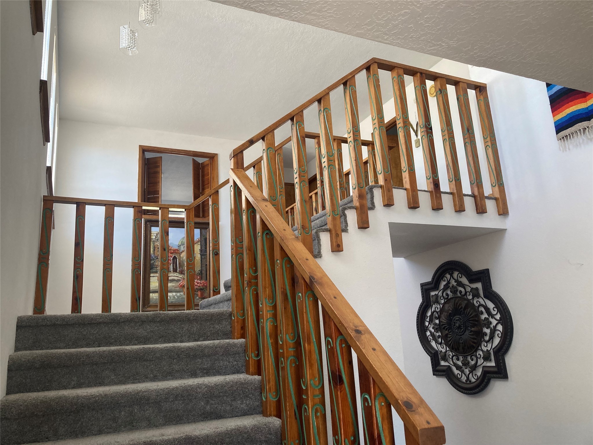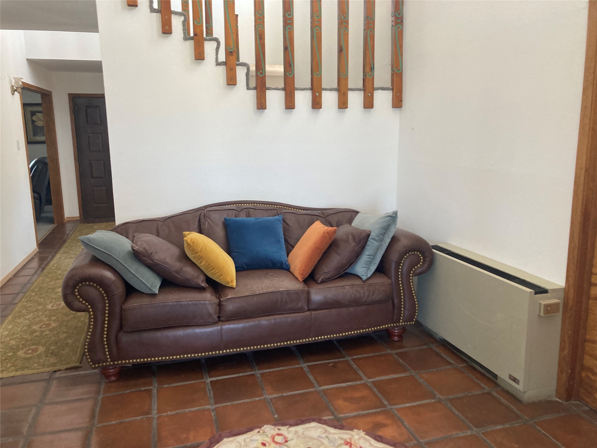 This spacious move-in ready home with 4 bedrooms, 3 bathrooms, a bonus room and horse amenities sits on little over 2 acres and is fully fenced. The home is located in the sprawling southside of Santa Fe close to shopping, schools, dining, hotels and has easy access to the major roads and highways. All of the rooms are generously sized and there is ample natural light throughout the house. Downstairs you will find the kitchen with an adjacent dining area, a large living room, a bathroom, a bedroom and a bonus room, which can be used as another bedroom or office. Upstairs is the master bedroom with two walk-in closets and the attached master bathroom. Also upstairs are two bedrooms and a large bathroom. The living room, dining room, downstairs hallways and downstairs lounge area have Saltillo tile floors. All bedrooms and the living room have newer carpet. There is a fireplace in the living room and a wood stove in the dining room. Off the dining room is a walled-in courtyard with a garden. In the front of the house is a covered porch. The garage is finished and has 3 closets with sliding doors, a shop area and a window. Fences separate the land surrounding the house from the horse area. The horse area has electricity and water available. This one-of-a kind property has a lot to offer!