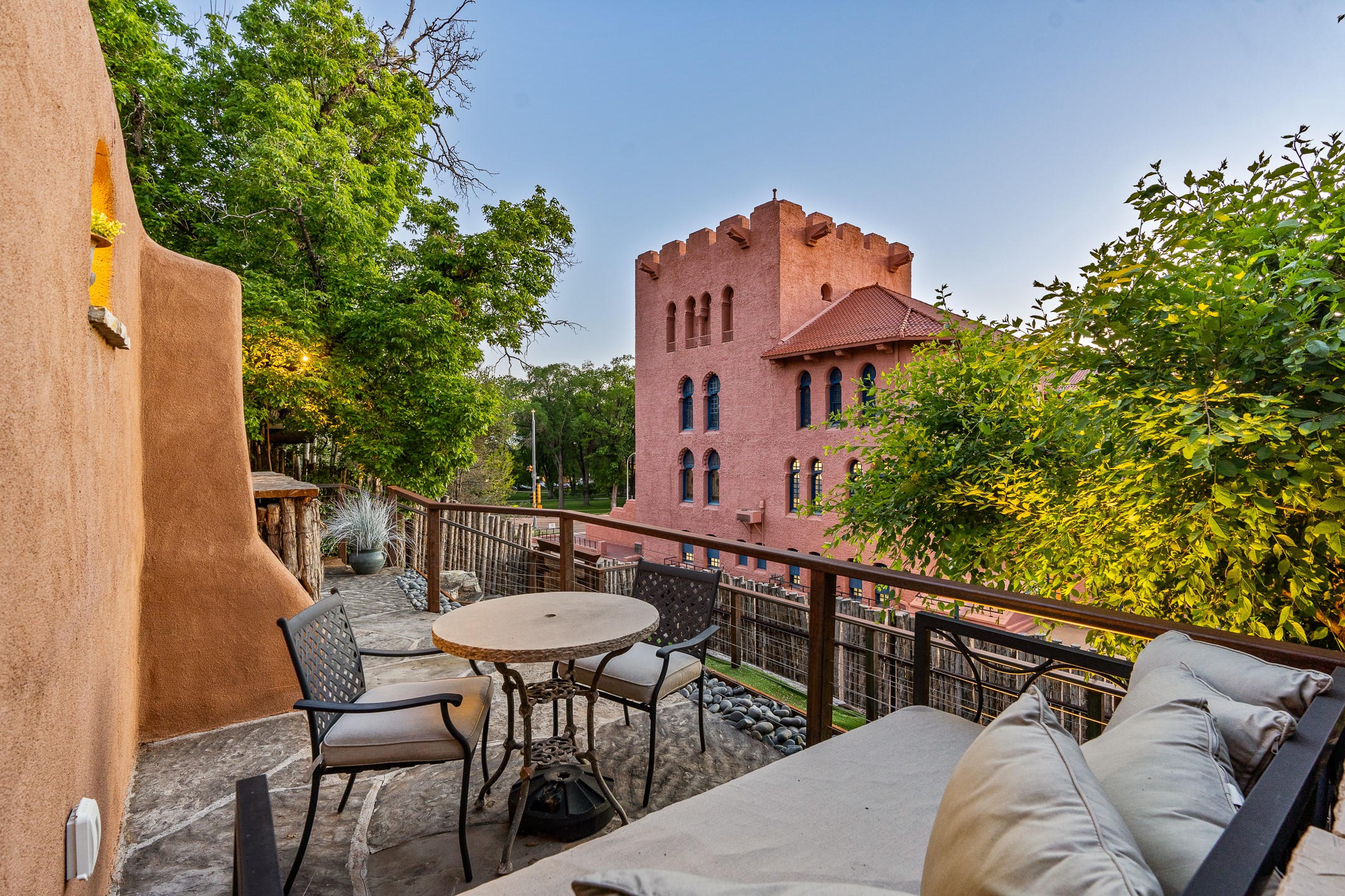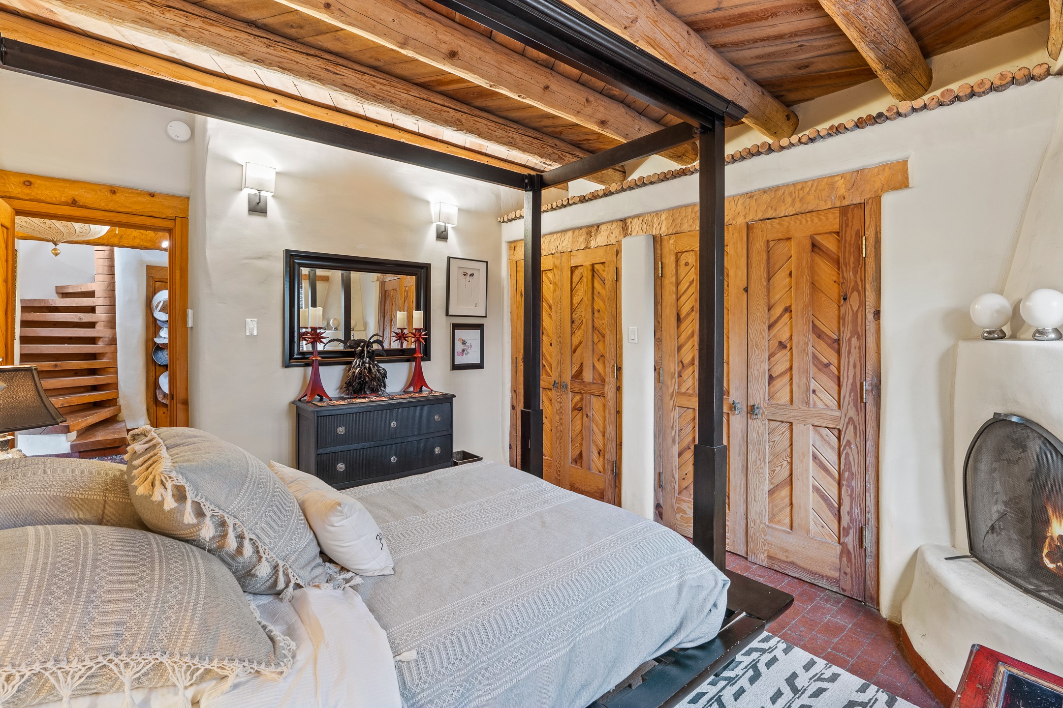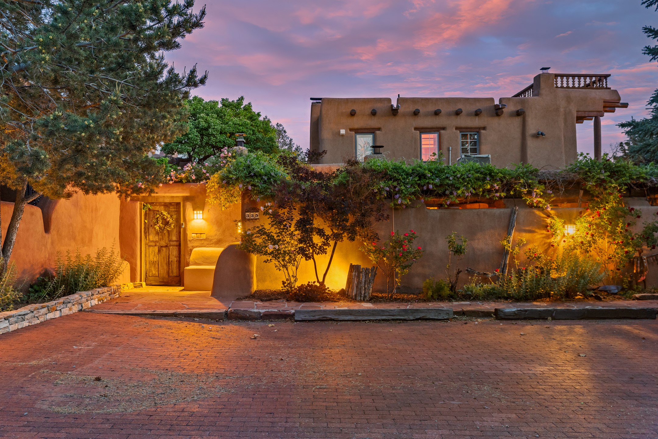Where the Charm of San Miguel de Allende Meets the Magic of Santa Fe. Perched just above Bishop's Lodge Rd in the Historic district--only one block from the beloved SantaCaf and Market Street Steakhouse--this extraordinary adobe sanctuary offers a magical blend of romance, drama, and sweeping views. From sunsets over the Jemez to the sparkling city lights below, every angle reveals another layer of enchantment. This is a home that speaks in texture, light, and soul--a true Santa Fe treasure infused with old-world elegance. The 2,600 sq. ft. 2 bedroom, 2 bath home has been reimagined with refined artistry and attention to detail. The primary bath is a serene retreat with floor-to-ceiling river rock walls and a 4" deep white onyx double vanity lit from below, allowing the onyx geode sinks to glow. The primary bedroom has French doors that open to a private patio sanctuary, where tiered terraces and lush landscaping offer expansive Jemez mountain views and beautiful Santa Fe sunsets. A curved stone stairway lined with 10 ft stone walls lead down to dramatic antique Indian elephant doors, offering a secret, storybook passage to The Plaza. The foyer opens up to a 22 ft atrium and a wooden carved staircase. The second floor retreat is an open-concept kitchen/living/dining design. The space is anchored by a double-sided wood-burning fireplace that connects the dining and living rooms, adding warmth and ambiance to this exceptional space. The chef's kitchen has been completely renovated with embedded shell limestone honed countertops, a $15,000 AGA Elise gas stove with a wok burner, a chiseled brick cream limestone backsplash, and custom cream cabinetry--offering both elegance and functionality. The dining area opens onto a covered portal with sweeping views of Santa Fe's mountains and downtown skyline. In the living room, romantic shuttered windows frame a bird's-eye view of the city with views of the Ortiz mountains, Sun and Moon mountains, the Jemez Mountains and the city lights. 333 Magdalena - An extraordinary residence where timeless design, natural beauty, and an unbeatable location converge.