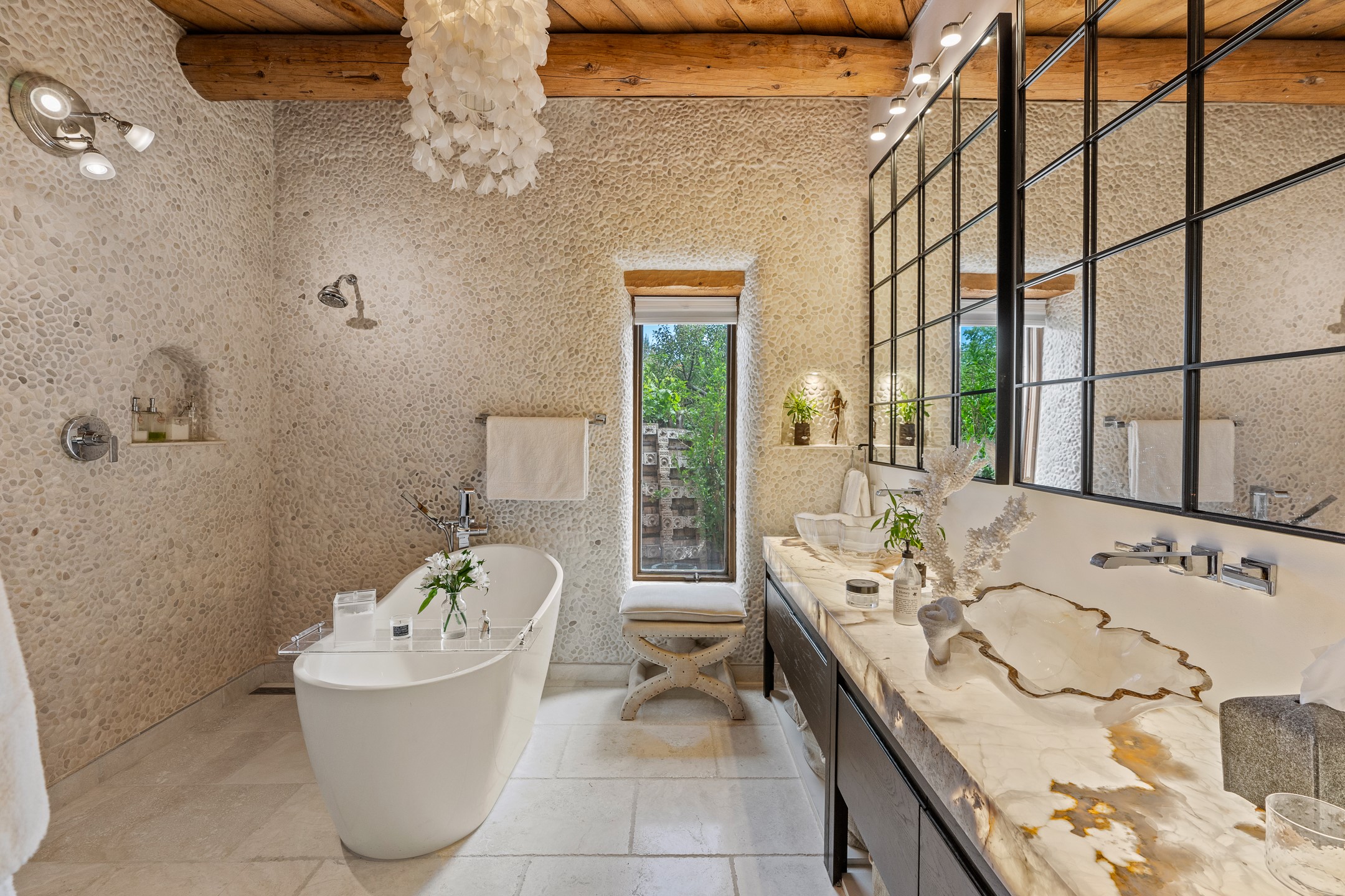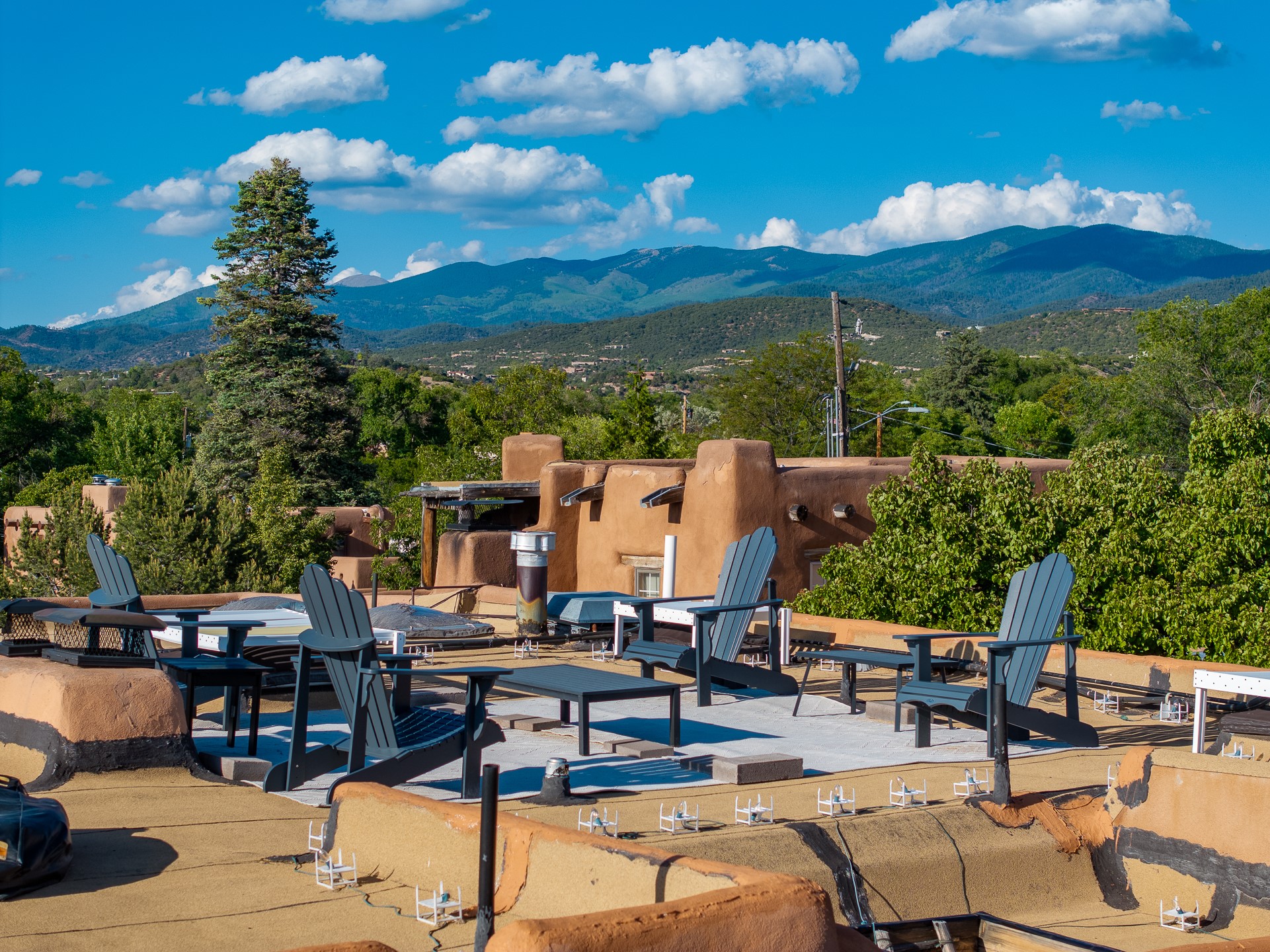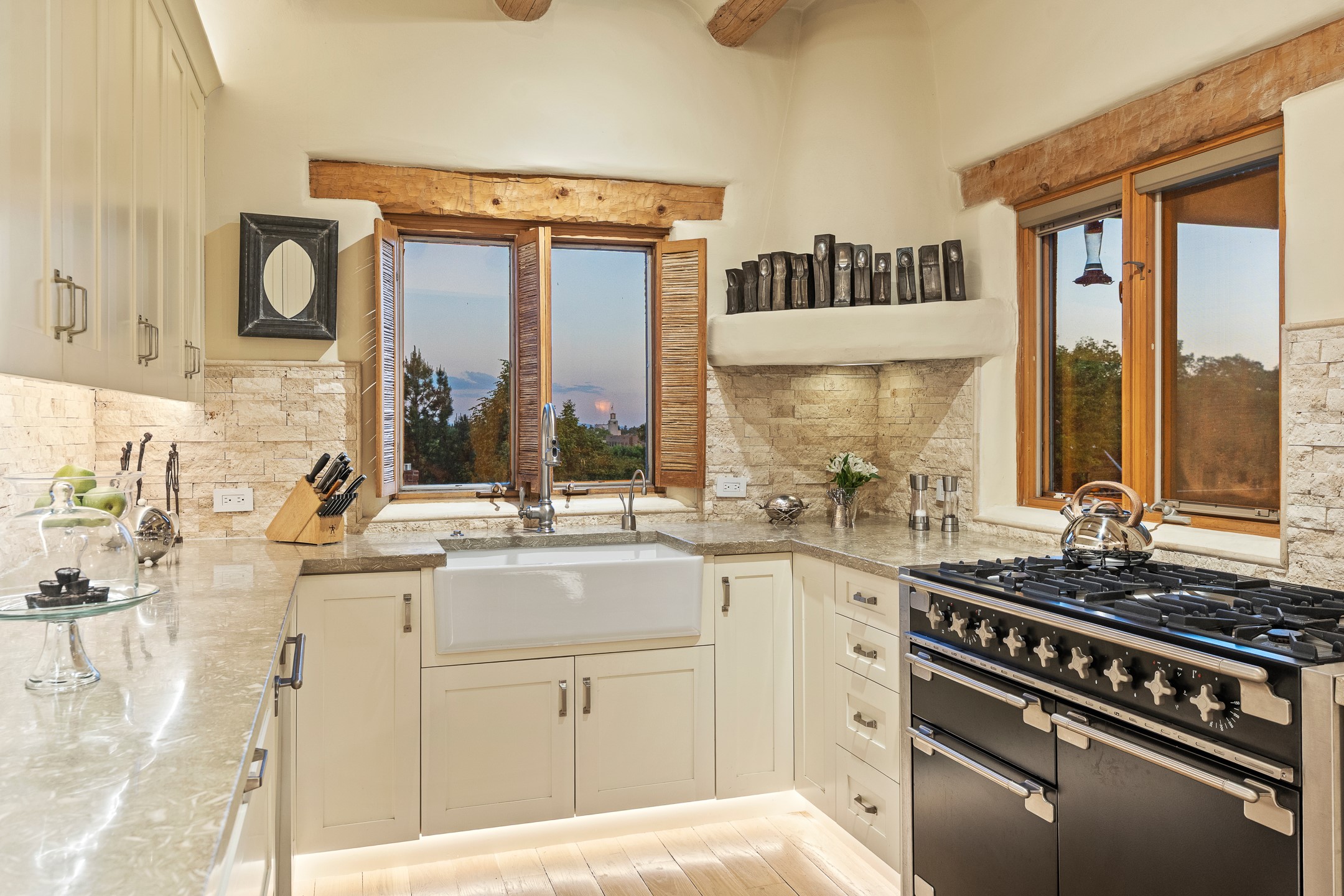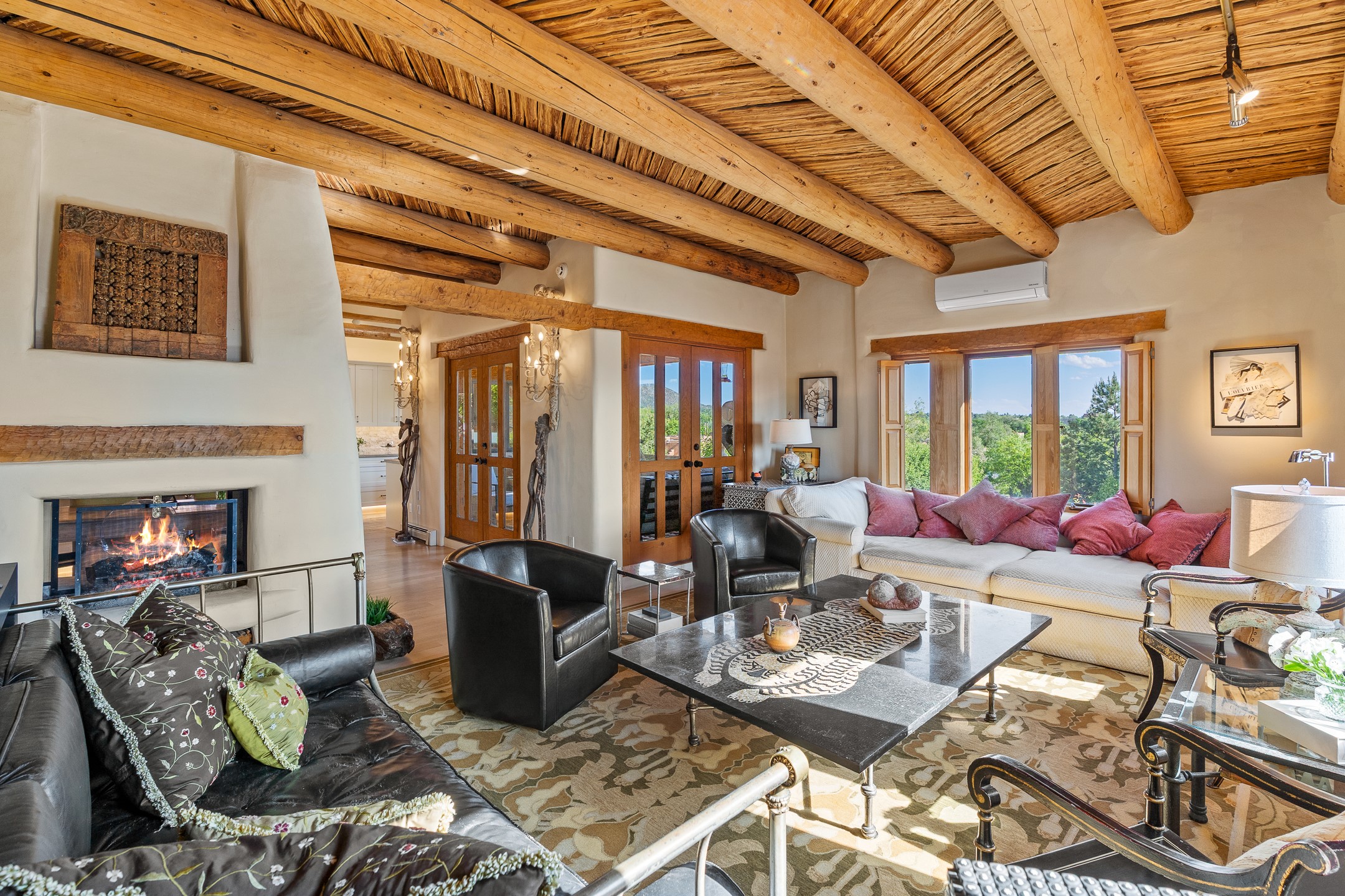 Where the Charm of San Miguel de Allende Meets the Magic of Santa Fe. Perched just above Bishop's Lodge Rd in the Historic district--only one block from the beloved SantaCaf and Market Street Steakhouse--this extraordinary adobe sanctuary offers a magical blend of romance, drama, and sweeping views. From sunsets over the Jemez to the sparkling city lights below, every angle reveals another layer of enchantment. This is a home that speaks in texture, light, and soul--a true Santa Fe treasure infused with old-world elegance. The 2,600 sq. ft. 2 bedroom, 2 bath home has been reimagined with refined artistry and attention to detail. The primary bath is a serene retreat with floor-to-ceiling river rock walls and a 4" deep white onyx double vanity lit from below, allowing the onyx geode sinks to glow. The primary bedroom has French doors that open to a private patio sanctuary, where tiered terraces and lush landscaping offer expansive Jemez mountain views and beautiful Santa Fe sunsets. A curved stone stairway lined with 10 ft stone walls lead down to dramatic antique Indian elephant doors, offering a secret, storybook passage to The Plaza. The foyer opens up to a 22 ft atrium and a wooden carved staircase. The second floor retreat is an open-concept kitchen/living/dining design. The space is anchored by a double-sided wood-burning fireplace that connects the dining and living rooms, adding warmth and ambiance to this exceptional space. The chef's kitchen has been completely renovated with embedded shell limestone honed countertops, a $15,000 AGA Elise gas stove with a wok burner, a chiseled brick cream limestone backsplash, and custom cream cabinetry--offering both elegance and functionality. The dining area opens onto a covered portal with sweeping views of Santa Fe's mountains and downtown skyline. In the living room, romantic shuttered windows frame a bird's-eye view of the city with views of the Ortiz mountains, Sun and Moon mountains, the Jemez Mountains and the city lights. 333 Magdalena - An extraordinary residence where timeless design, natural beauty, and an unbeatable location converge.