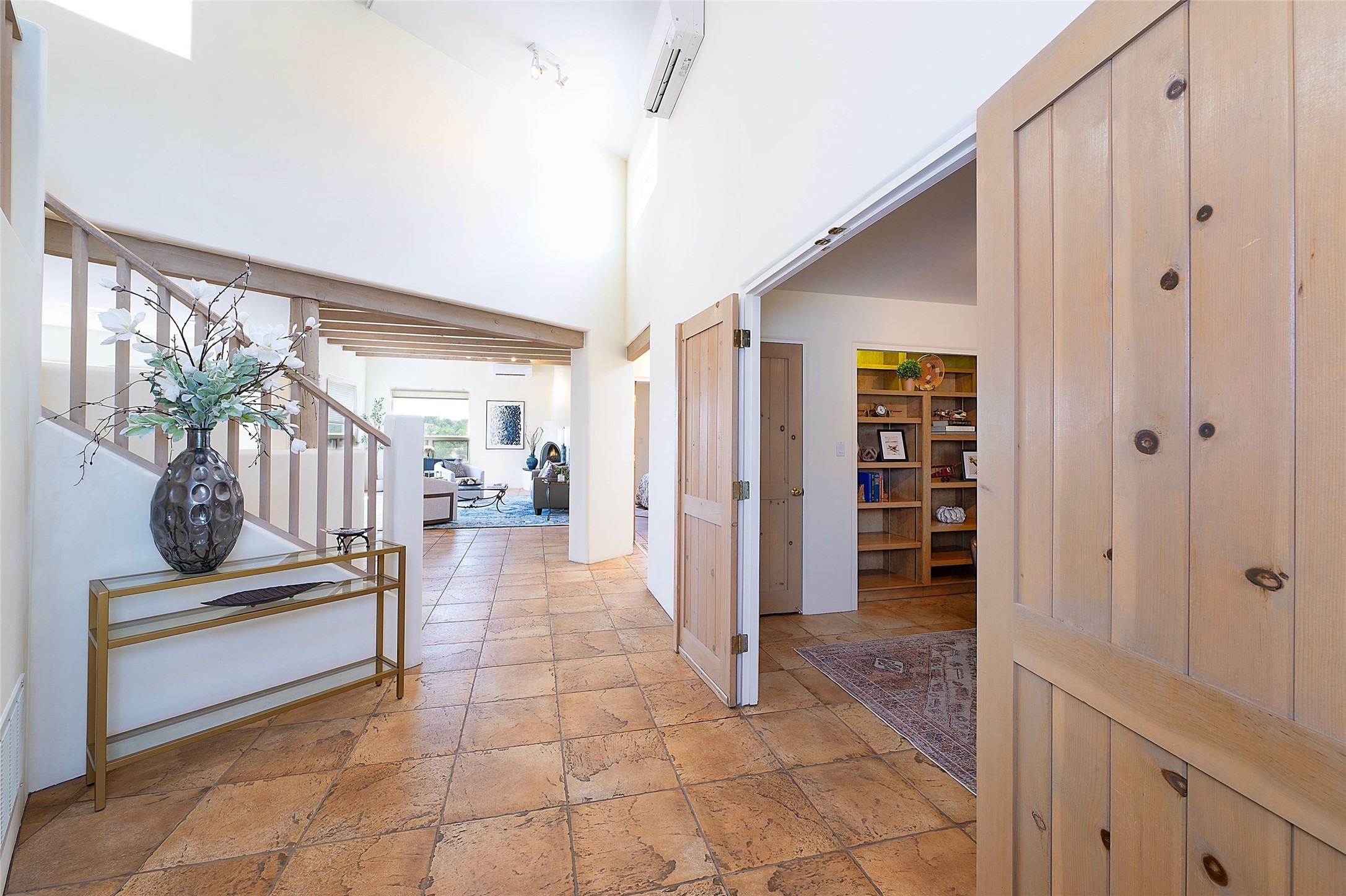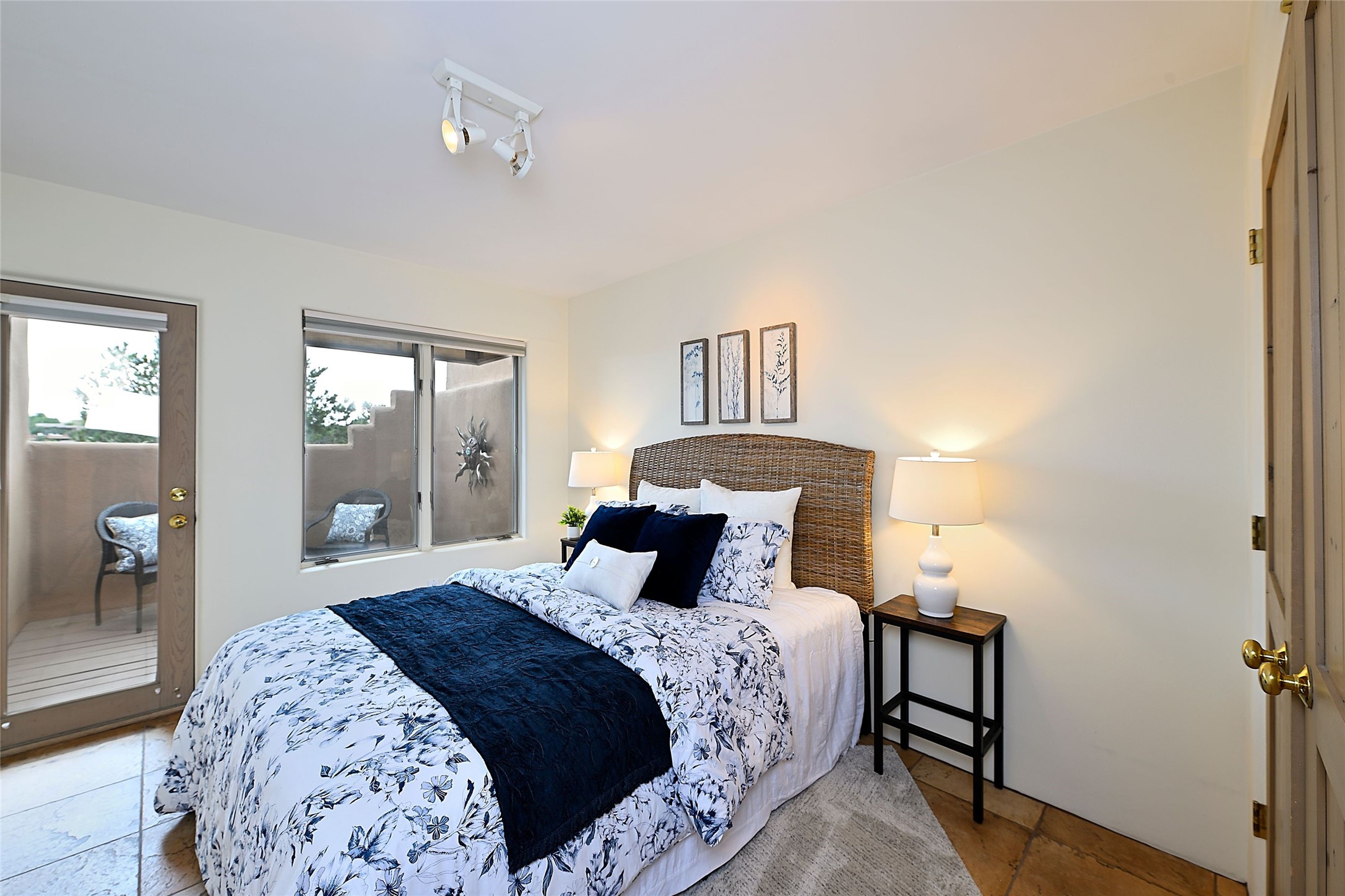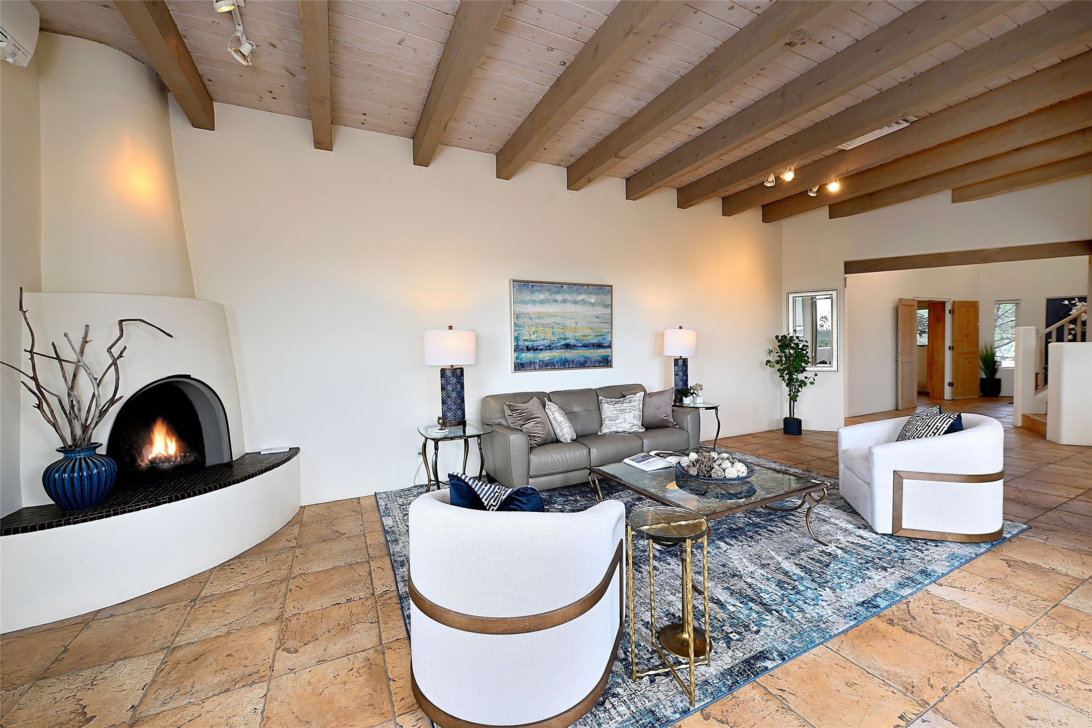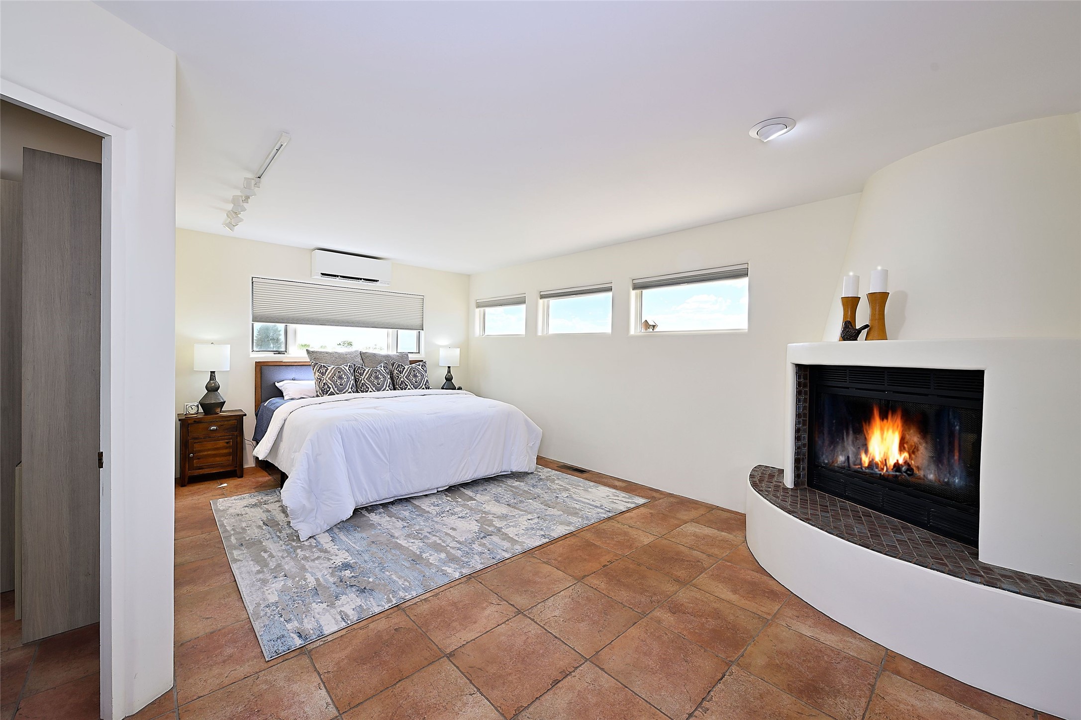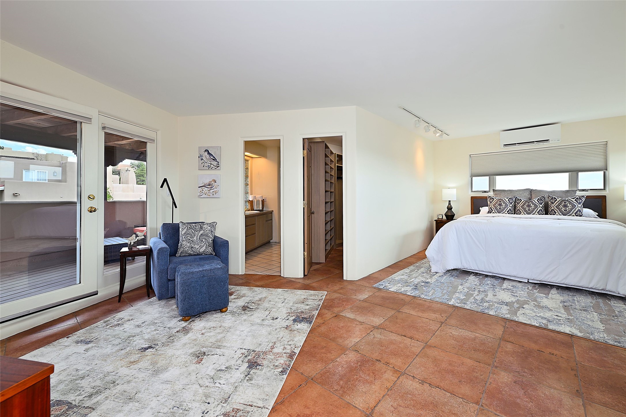Welcome to this modern Santa Fe style townhome, with elegant upgrades, and outstanding mountain views.Ideally situated only five minutes from Santa Fe Plaza and close to Ft. Marcy Park with its recreation center,dog park and pickle ball courts, this residence combines comfort, style and an unbeatable location in thedesirable Valle del Sol neighborhood. Step through a beautifully carved wood front door into a bright entrywith clerestory windows. The open floor plan features a spacious, light-filled great room, boasting largepicture windows that frame dramatic foothill views, ceiling beams, and a wood-burning kiva fireplace. Theliving room opens conveniently to a generous deck with views to the Sandia and Ortiz Mountains, andfeatures a spiral staircase down to the back gardens and fountain. These spaces are perfect for entertainingand enjoying stunning sunsets. On the main floor, are a second bedroom with a remodeled CaliforniaCloset, which opens to its own private deck, and a third bedroom, featuring built-in bookcases, which couldalso be used as an office, studio or guest space. The fully remodeled kitchen features a skylight, quartzitecountertops, Bosch appliances and custom cabinetry. There is a large adjacent breakfast nook with bancoseating and views. On its own private level, the primary suite is a true retreat with a wood-burning kivafireplace, custom California Closet, and comfortable sitting area, which opens to its own shaded and tranquildeck overlooking the Sangre de Cristo Mountains. This home has many upgrades including a new roof, waterheater, Fibron deck, exterior paint, garage doors, Hunter Douglas blackout blinds, and more. Enjoy ease ofliving with a separate laundry room, pantry, large storage closet and oversized 2-car garage. Home includesclimate control with mini-splits and forced air heat. This is an exceptional find for those seeking views,privacy, and proximity to downtown Santa Fe and all it has to offer!
