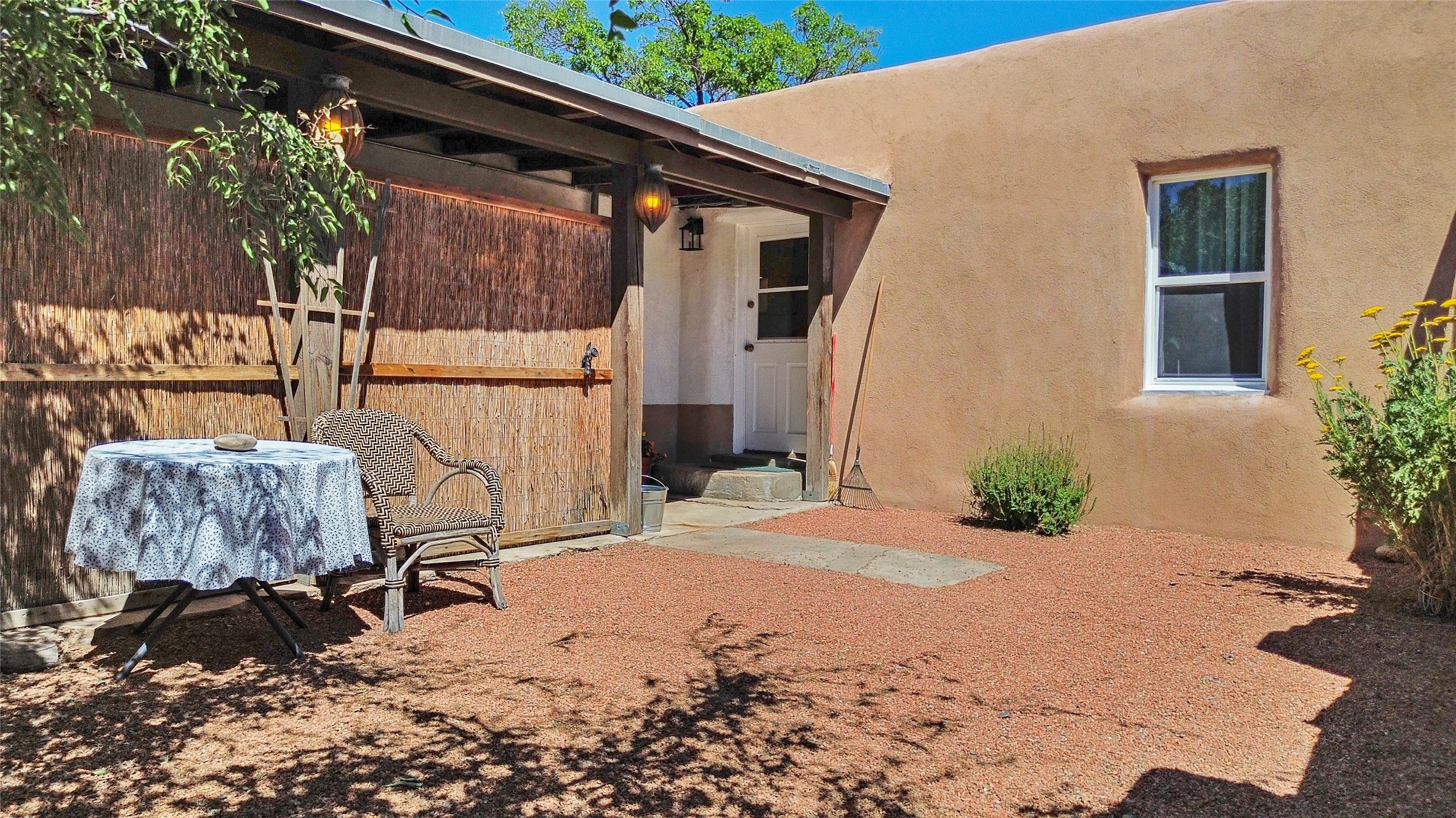 Don't miss this incredible opportunity to own a charming Santa Fe home with a private accessory unit casita. The casita is perfect for rental income, guests, or flexible living, with its own entrance, yard, and parking.Charming Santa Fe Home with a Private Accessory Unit Casita & Large Lot. Built in 1948, this Classic Santa Fe Style home blends timeless character with modern updates and income potential. The property features a 3-bedroom, 1-bath main home PLUS a 1-bedroom, 1-bath accessory unit casita. EACH UNIT enjoys its own private entrance, courtyard, backyard, and parking -- perfect for guests, multi-generational living, or generating rental income. Together, the property offers a total of 4 parking spaces. A large yard offers potential room for expansion, gardening, or outdoor entertaining, all framed by mature landscaping and beautiful stucco walls that enhance the home's authentic Santa Fe charm. Property updates include stucco, and LIFETIME WARRANTY windows.Inside the main home, you'll find sunlit living spaces with classic details, including an inviting fireplace for cozy evenings, Saltillo tile accents, and a thoughtfully updated kitchen with BRAND NEW stainless steel appliances. The bathroom has been beautifully renovated with spa-inspired finishes, offering a warm, retreat-style feel. The casita provides privacy and versatility. Recently installed wall heaters, Beautiful Wood Floors, Full Bathroom, New Stainless Steel Gas Stove, with respectable sized living room and primary bedroom.This home is the perfect blend of Santa Fe charm, modern convenience -- all in a prime Santa Fe location close to dining, shops, and cultural treasures. This is the perfect layout you've been waiting for! Make this your home before someone else takes this opportunity.