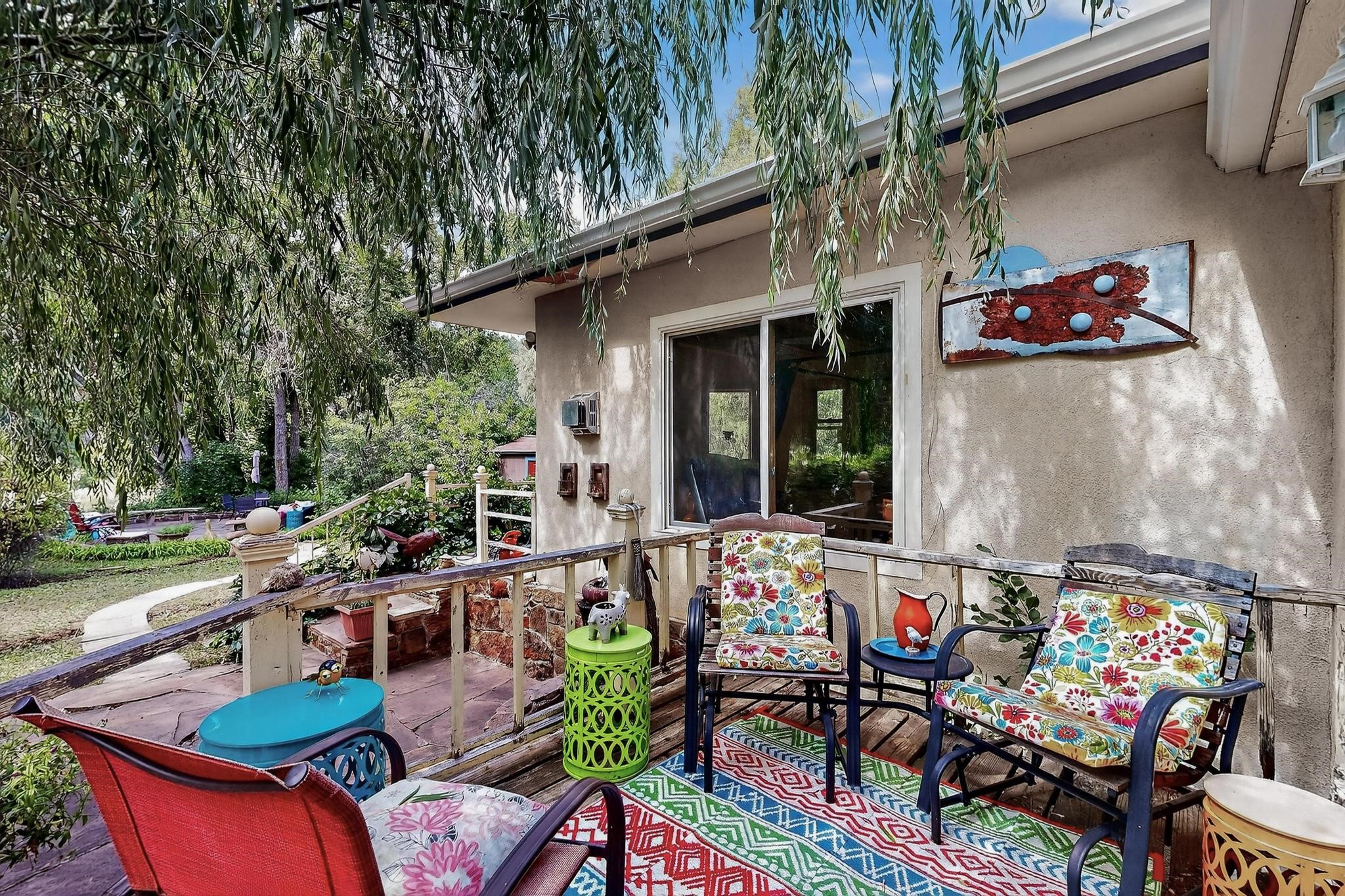Riverfront Acre in Pecos with Water Rights - A Rare RetreatNestled in the heart of Pecos, just 30 minutes from Santa Fe, this enchanting 1-acre riverfront property offers the perfect blend of privacy, beauty, and possibility. With direct access to the Pecos River and water rights, this is a true sanctuary for fishermen, nature lovers, and anyone seeking a peaceful retreat. The land features a lush meadow that gently rolls down to the water's edge, where you'll find an artist's studio tucked beneath the trees--an inspiring hideaway surrounded by nature's palette. Whether you're dreaming of morning fly fishing or afternoon painting sessions, this property delivers a unique, soul-nourishing setting. A charming 2-bedroom, 2-bath home sits at the front of the property, providing a comfortable base. A hand-laid stone patio shaded by mature trees offers a cool, quiet place to retreat, while an acequia runs gently through the property, nourishing the landscape and adding to its tranquil charm. While the true magic unfolds beyond--under the cottonwoods, beside the river, in the meadow where creativity flows as freely as the water.