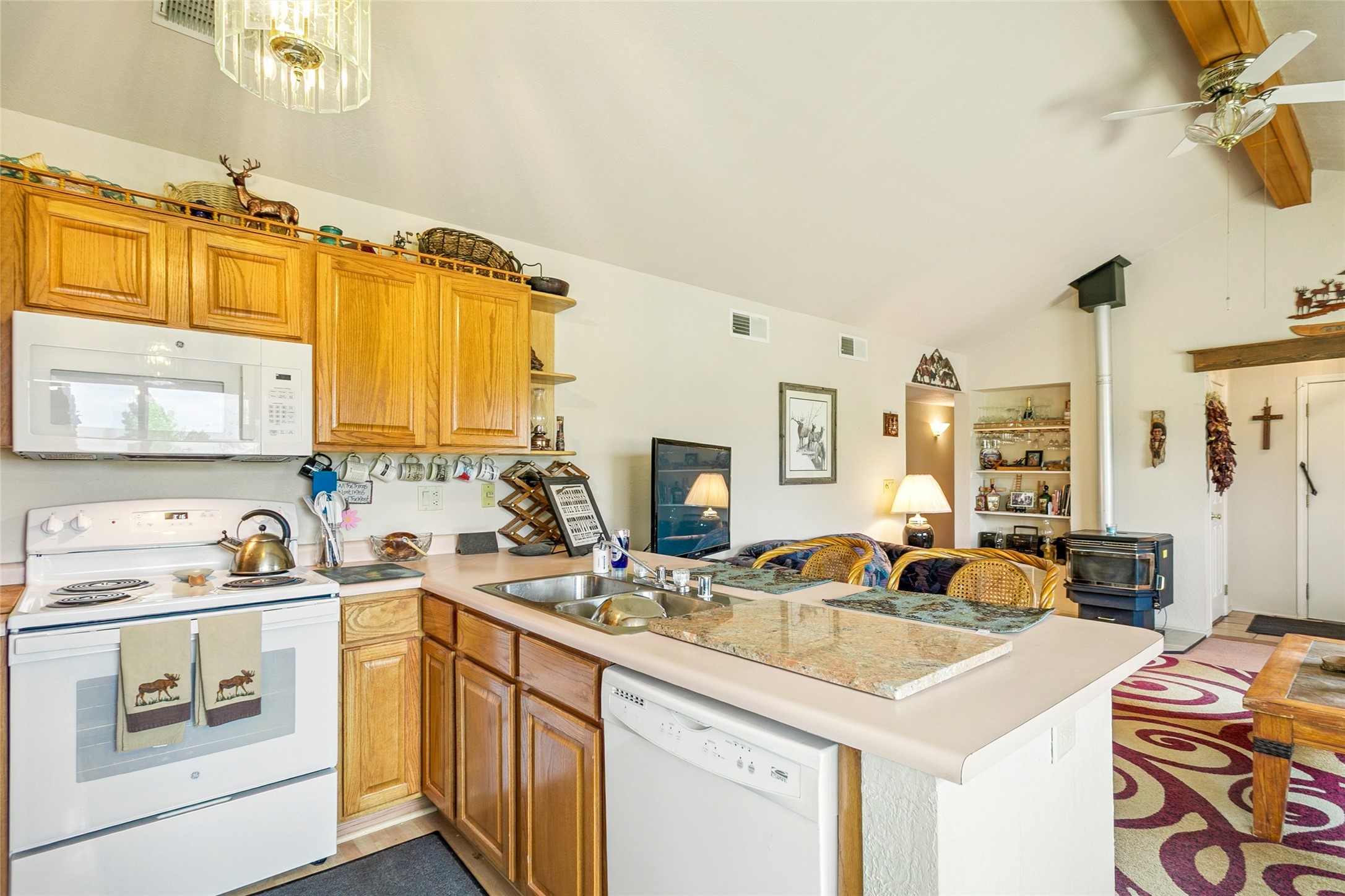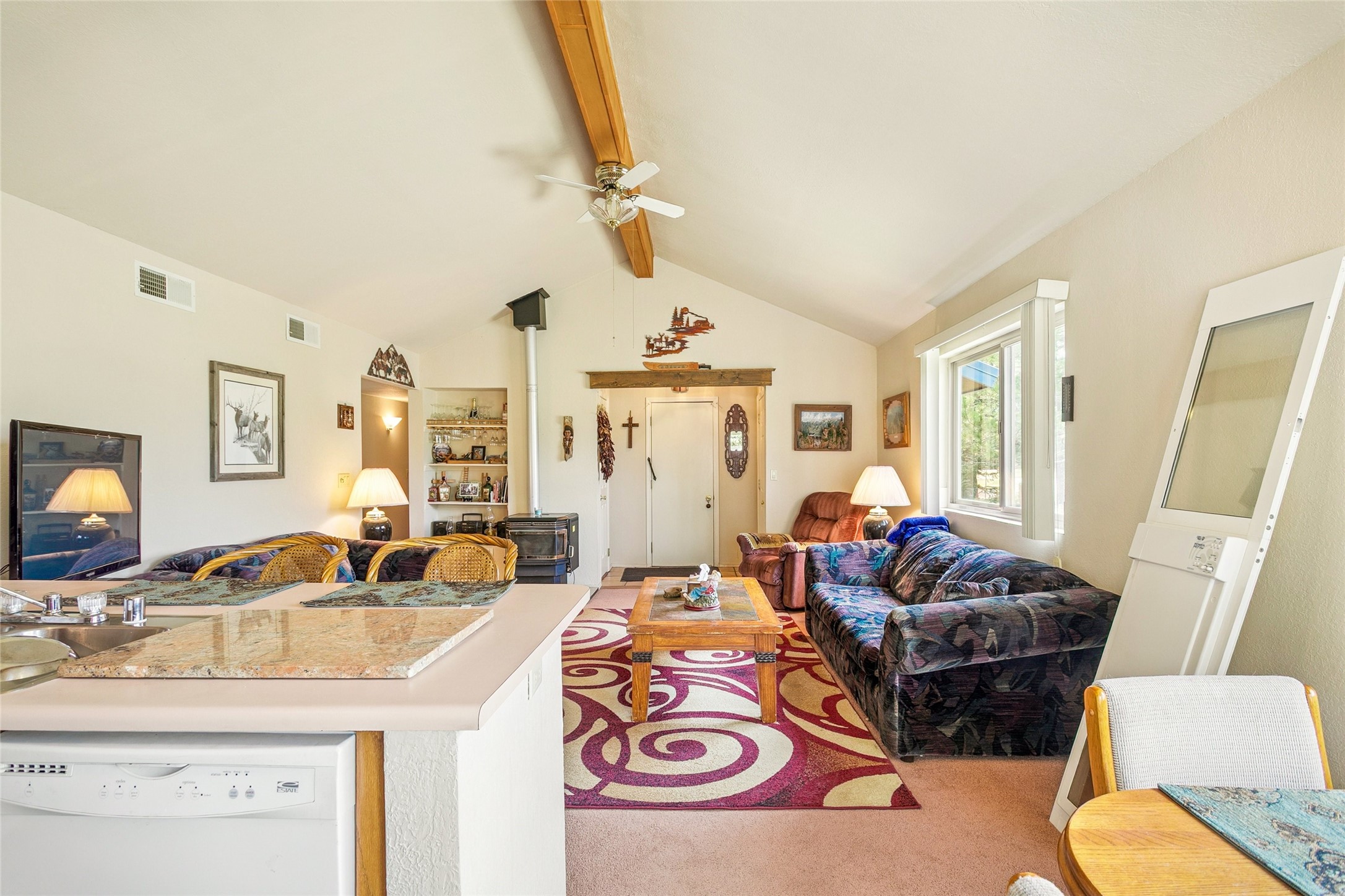 If you are looking for a cozy cabin to spend weekends, summers or permenately relocate to, this location is both convenient to Chama and the Chama River. Rio Chama Estates has year round access along county road 343 and the local public fishing access is less than a block away. With two bedrooms, 2 baths and an open kitchen and living concept, this layout is both private but also great for entertaining and guests. All the appliances will stay and include trash compactor, dishwasher, range, refrigerator and washer/dryer. There is an attached 1 car garage and a detached 2 car garage, which is great for all the mountain toys or expansive workshop space. Already set up for for your furry creatures, the dog pens stay and the electronic doggie door is optional. The owner has taken great care of the property and recently installed a brand new, state approved septic system and back up generator for when the public power goes out. Deer and elk freely roam the area, as well as turkey and the occassional bear passing through. Birding is also spectacular in Northern NM. Enjoy the recreational opportunities available in the area from this well maintained home base.