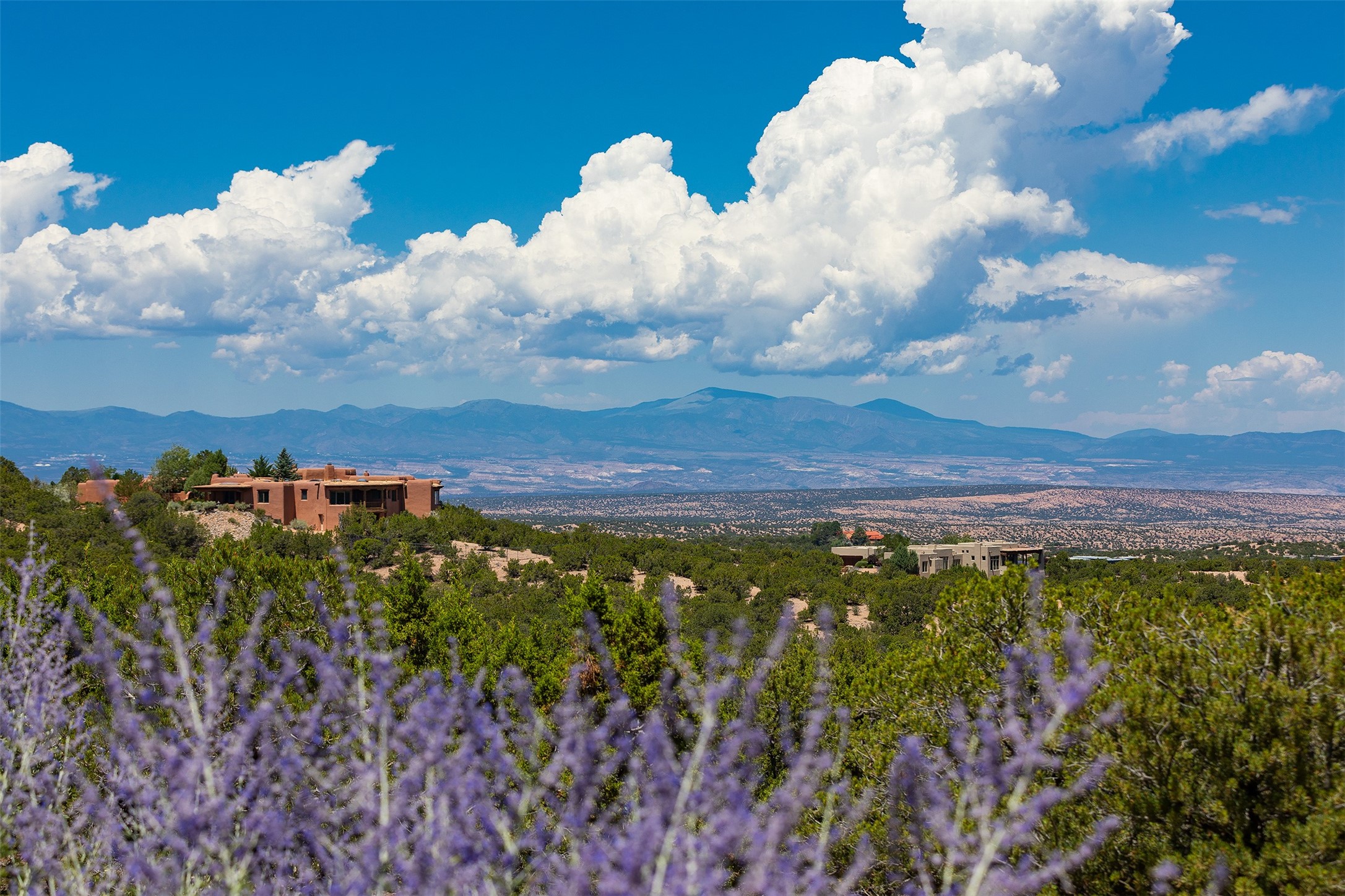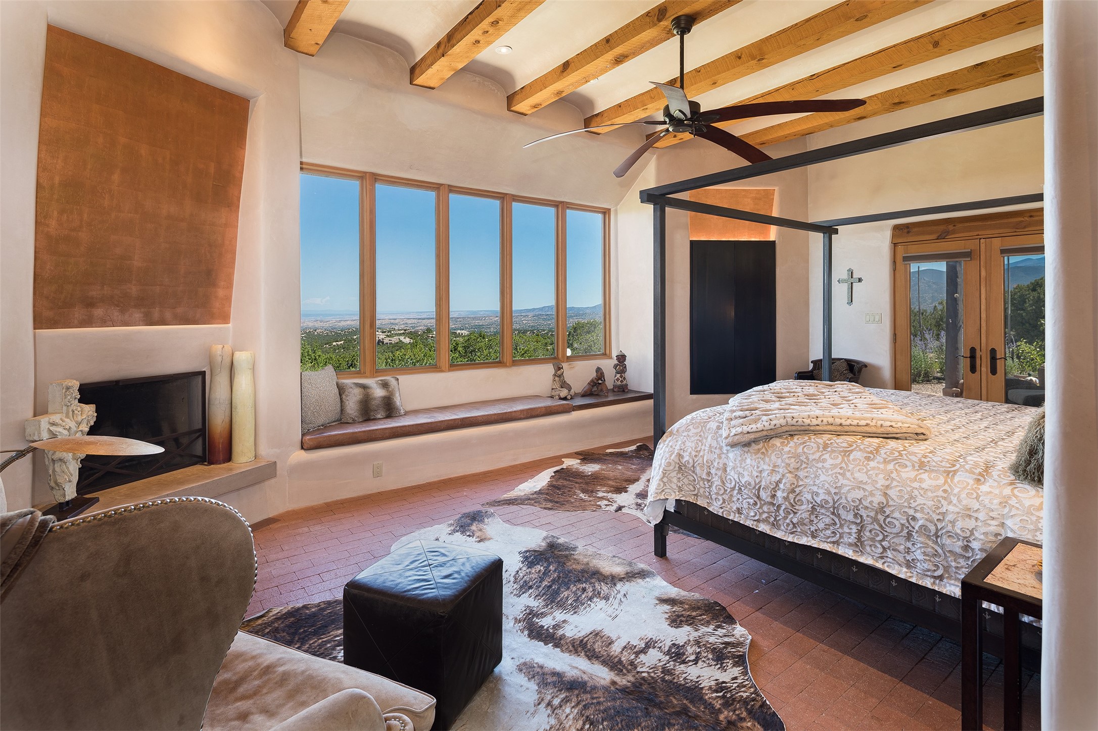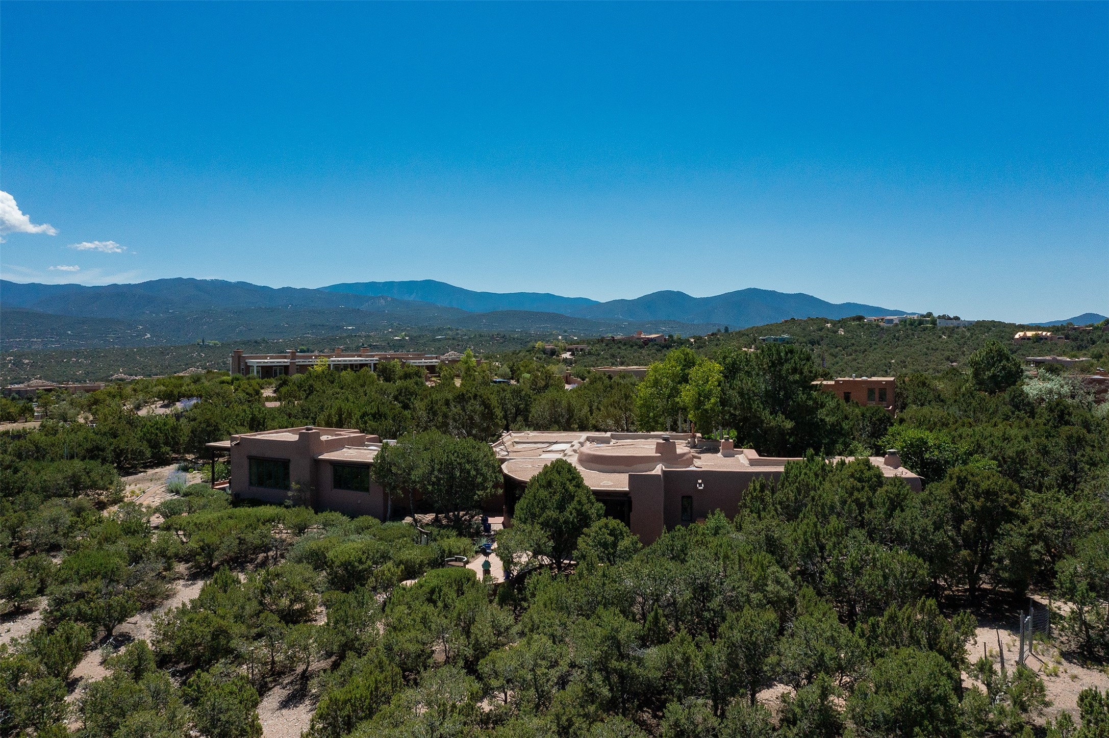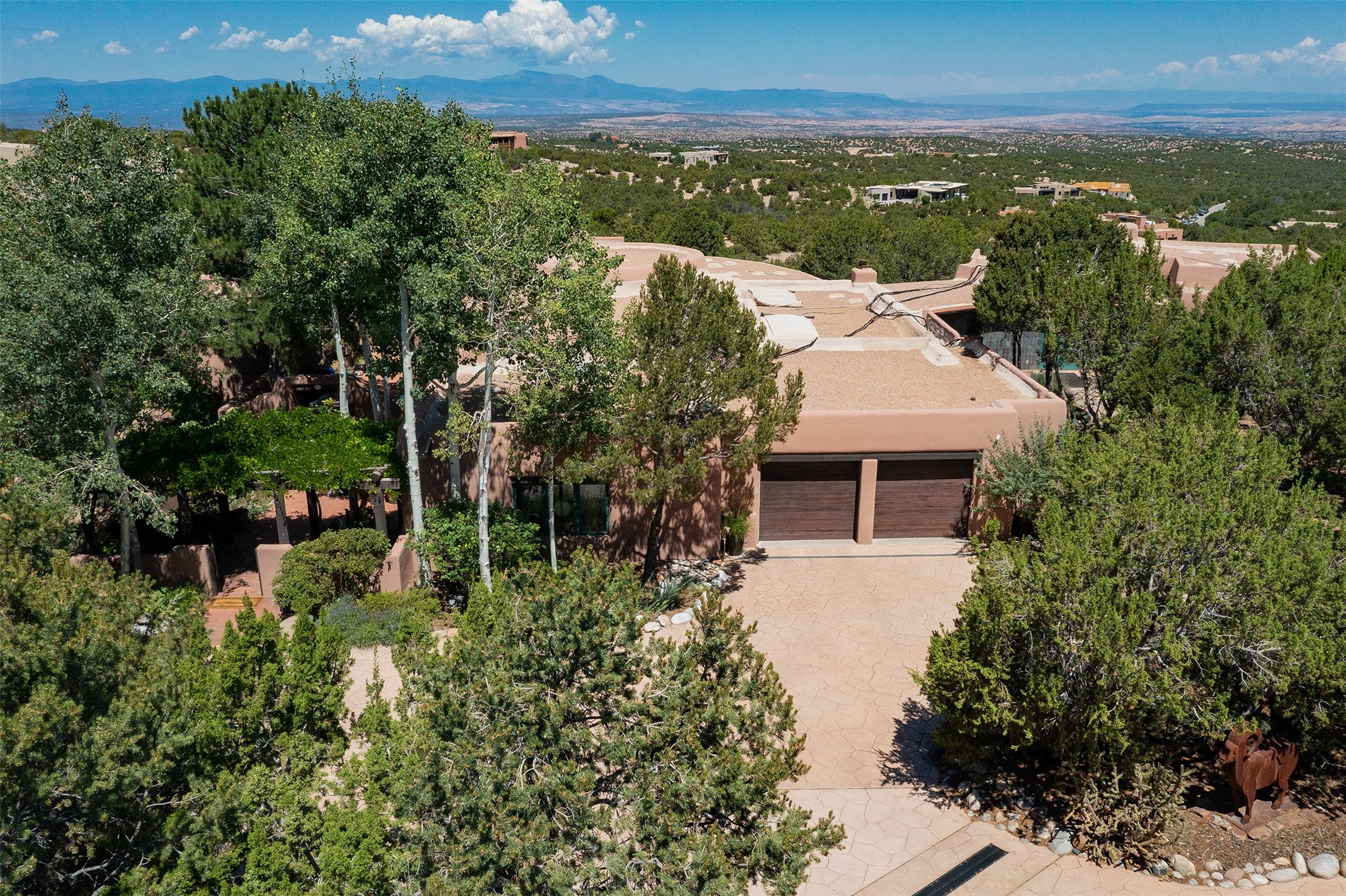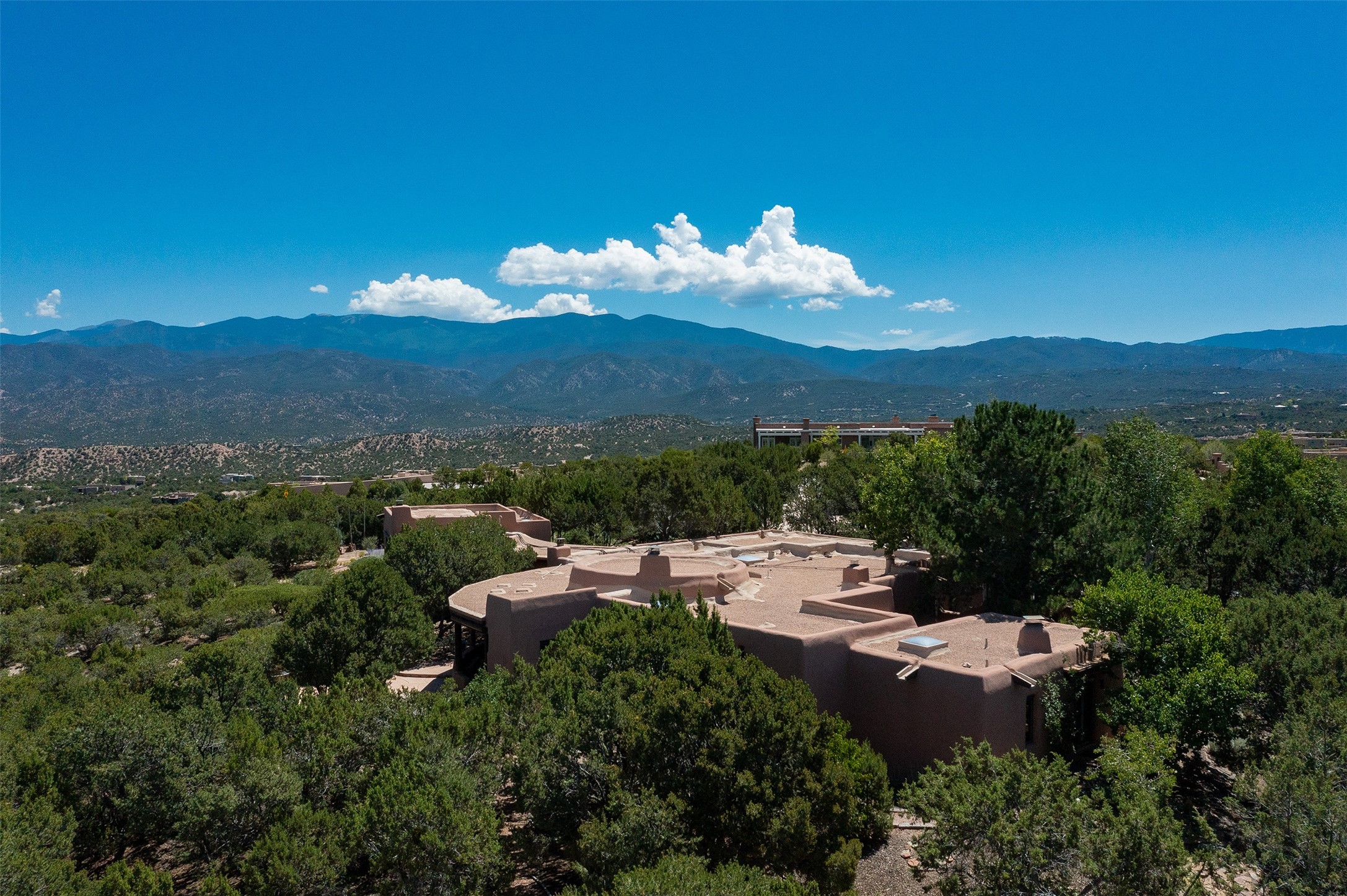 Your spirit will soar as you take in the view and mountains from this beautiful and inviting Santa Fe hacienda! Tucked in on 3.194 acres, so private with forever views, yet only 5 minutes to Market Street and Jinga Restaurant. Well- constructed with plastered walls, 5 wood-burning fireplaces, brick floors, traditional ceiling treatments, spacious main outdoor portal with Jemez views plus a private portal off the primary suite with Sangre & Jemez views. The original part of the house is adobe, built in the mid-1980's & the house was enlarged in 1999 with famed architect Richard Martinez at the helm, designing a stunning primary suite with a small library, separate office with built-ins (& the mesmerizing views), an ample gathering room for TV & music, and a casual dining room. Richard returned in Nov 2012 to design a small guest house, which was not built, but the site is shown on the plat for information only. The wonderful flow of this home includes approx. 5317 square feet: 4 bedrooms, 4 baths (2 Full, two ), formal dining & casual dining, two living areas, office. Radiant heat (the good kind) in the floor, 3 mini-splits for AC. NO HOA. This home offers grace, warmth & sophistication in a location that gives an elevated Santa Fe experience with views sunrise to sunset. Enjoy the video!