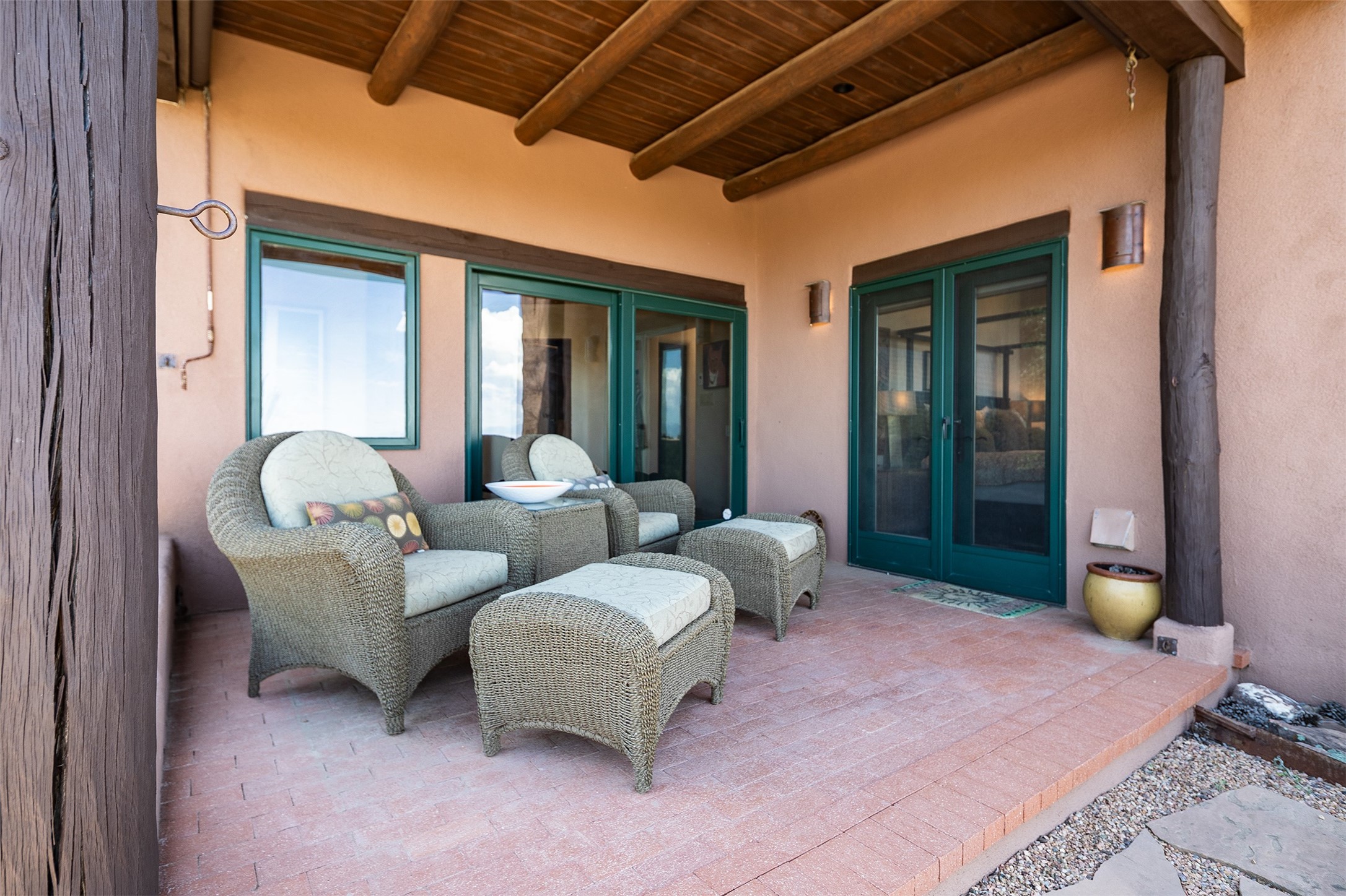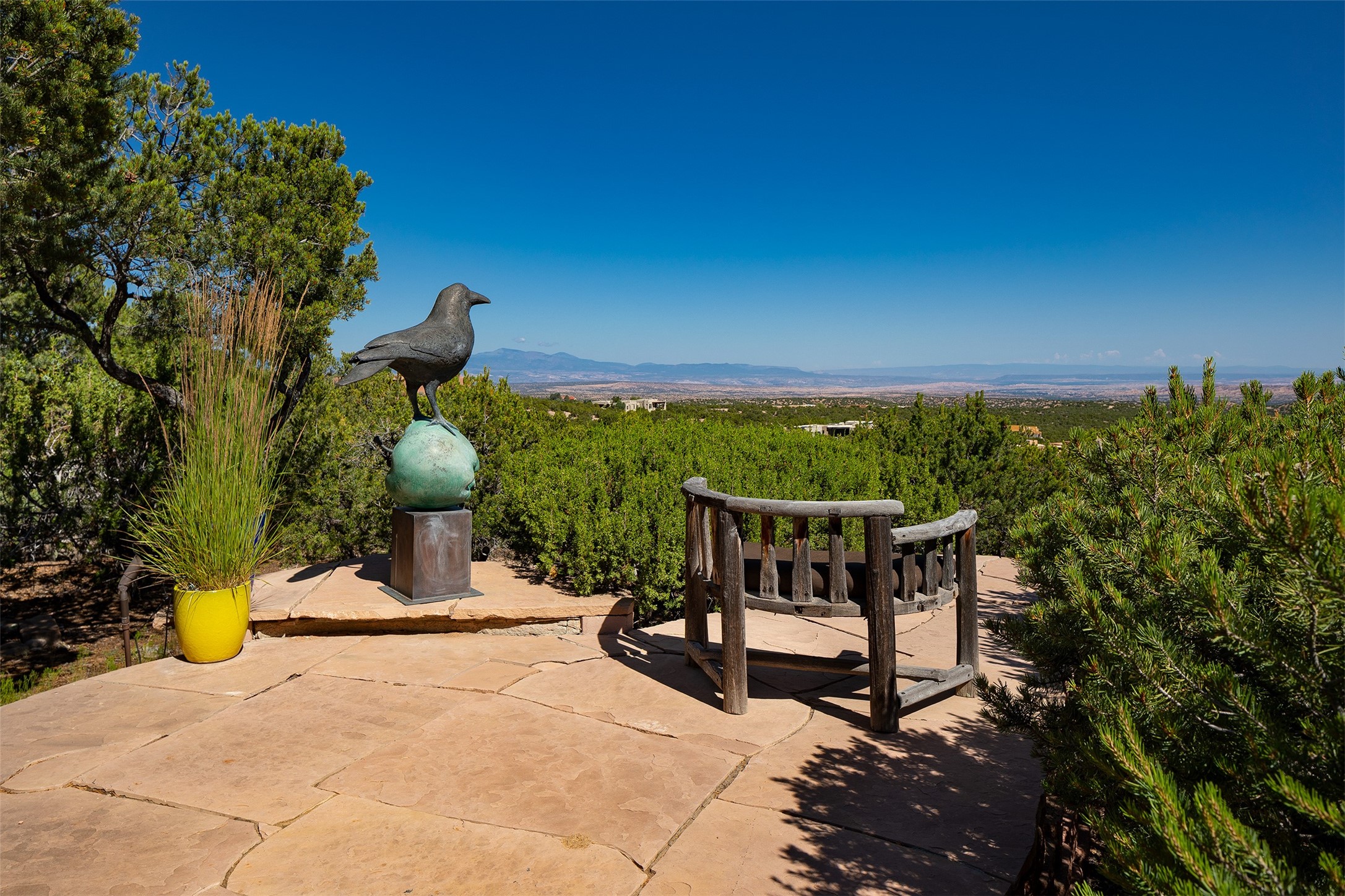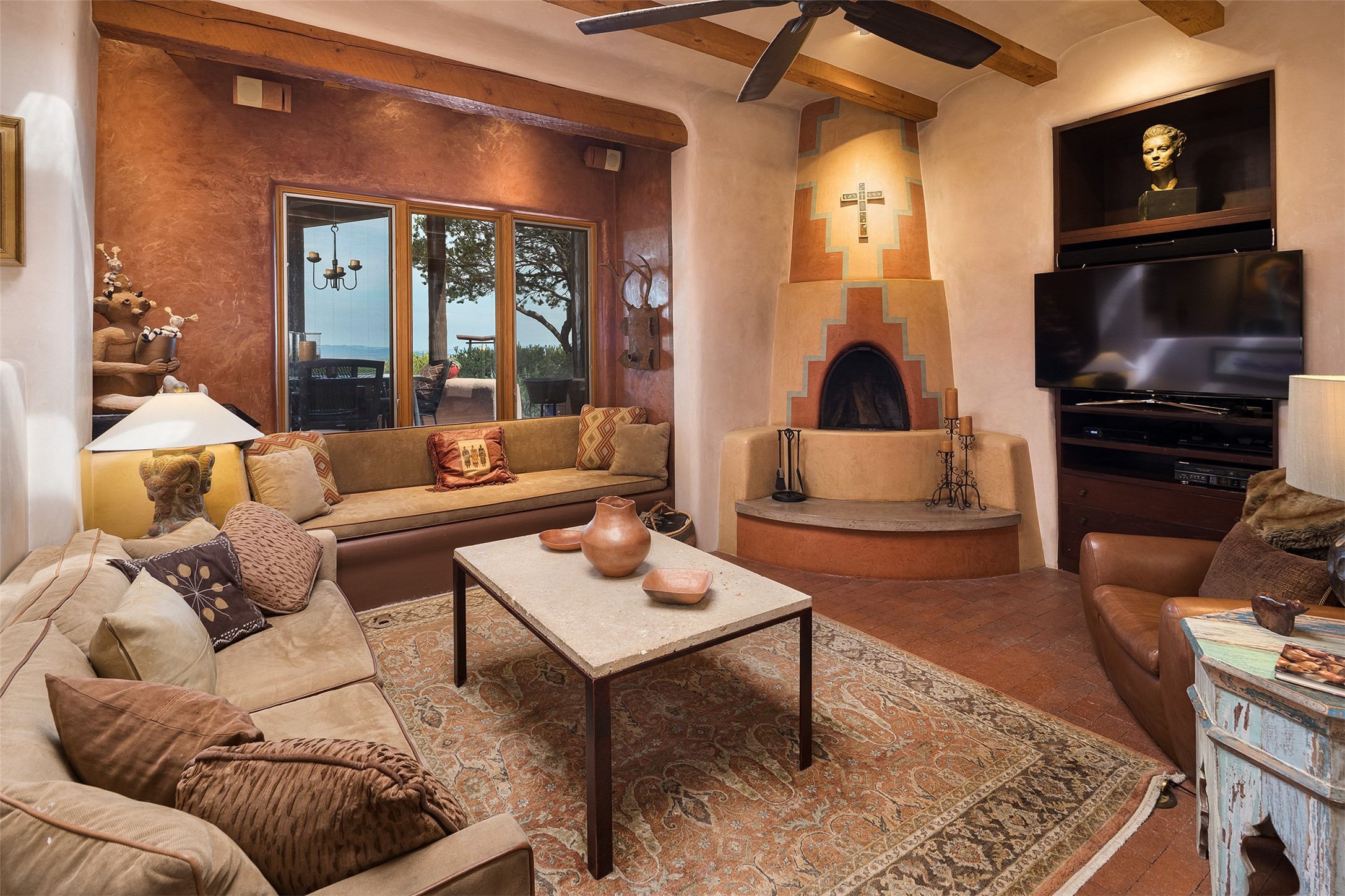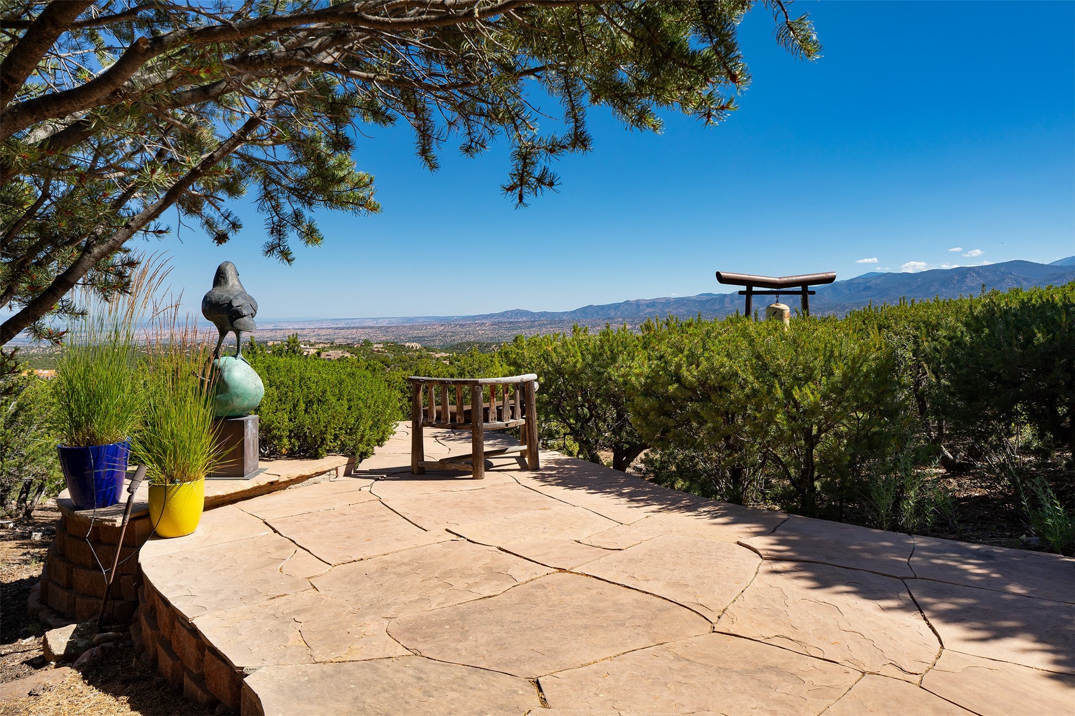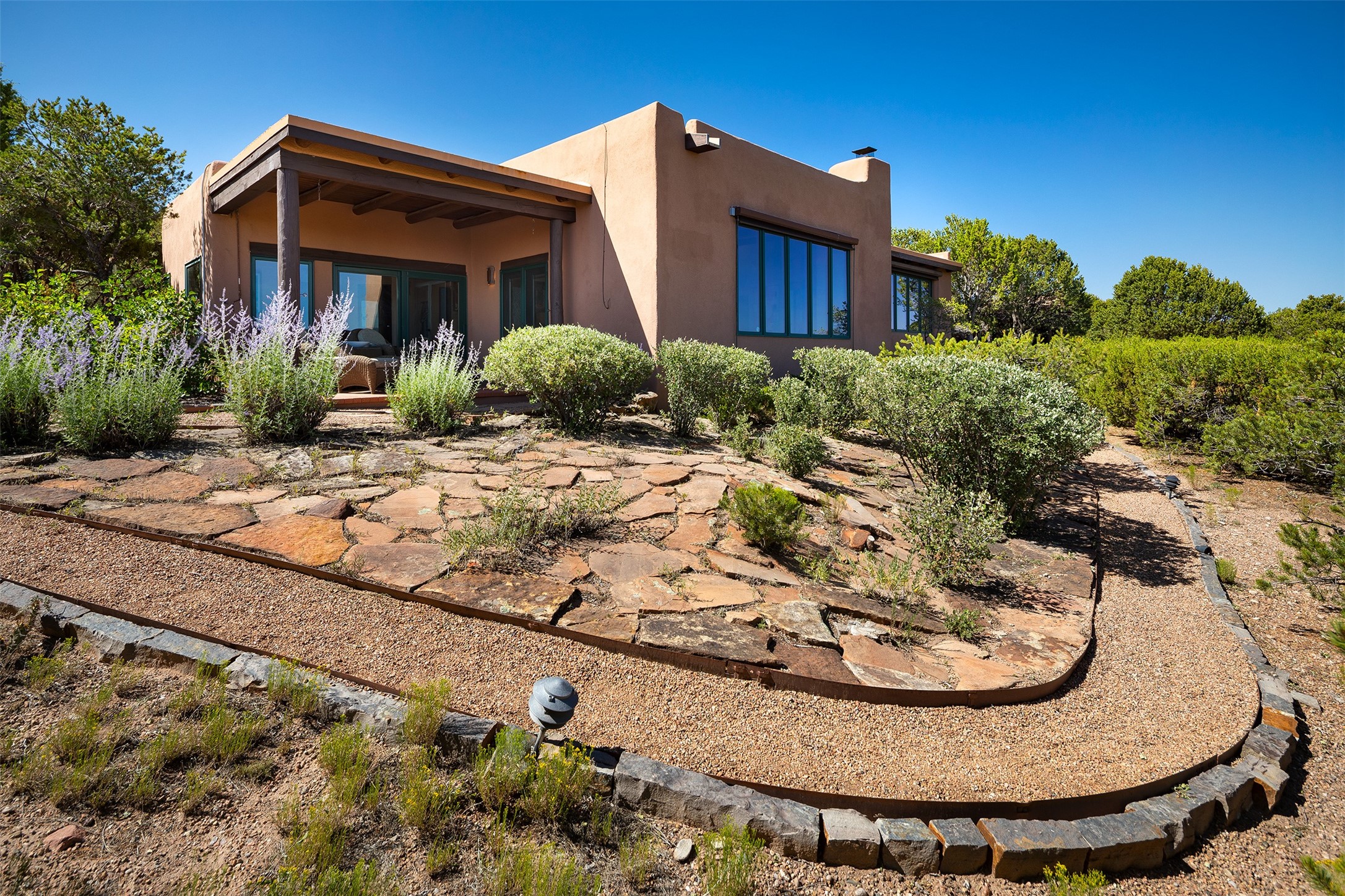 Your spirit will soar as you take in the view and mountains from this beautiful and inviting Santa Fe hacienda! Tucked in on 3.194 acres, so private with forever views, yet only 5 minutes to Market Street and Jinga Restaurant. Well- constructed with plastered walls, 5 wood-burning fireplaces, brick floors, traditional ceiling treatments, spacious main outdoor portal with Jemez views plus a private portal off the primary suite with Sangre & Jemez views. The original part of the house is adobe, built in the mid-1980's & the house was enlarged in 1999 with famed architect Richard Martinez at the helm, designing a stunning primary suite with a small library, separate office with built-ins (& the mesmerizing views), an ample gathering room for TV & music, and a casual dining room. Richard returned in Nov 2012 to design a small guest house, which was not built, but the site is shown on the plat for information only. The wonderful flow of this home includes approx. 5317 square feet: 4 bedrooms, 4 baths (2 Full, two ), formal dining & casual dining, two living areas, office. Radiant heat (the good kind) in the floor, 3 mini-splits for AC. NO HOA. This home offers grace, warmth & sophistication in a location that gives an elevated Santa Fe experience with views sunrise to sunset. Enjoy the video!