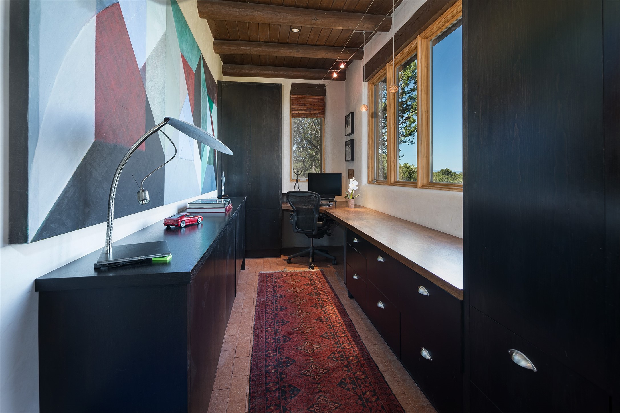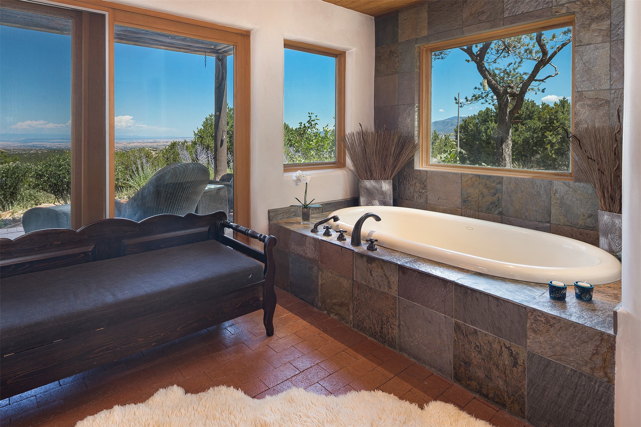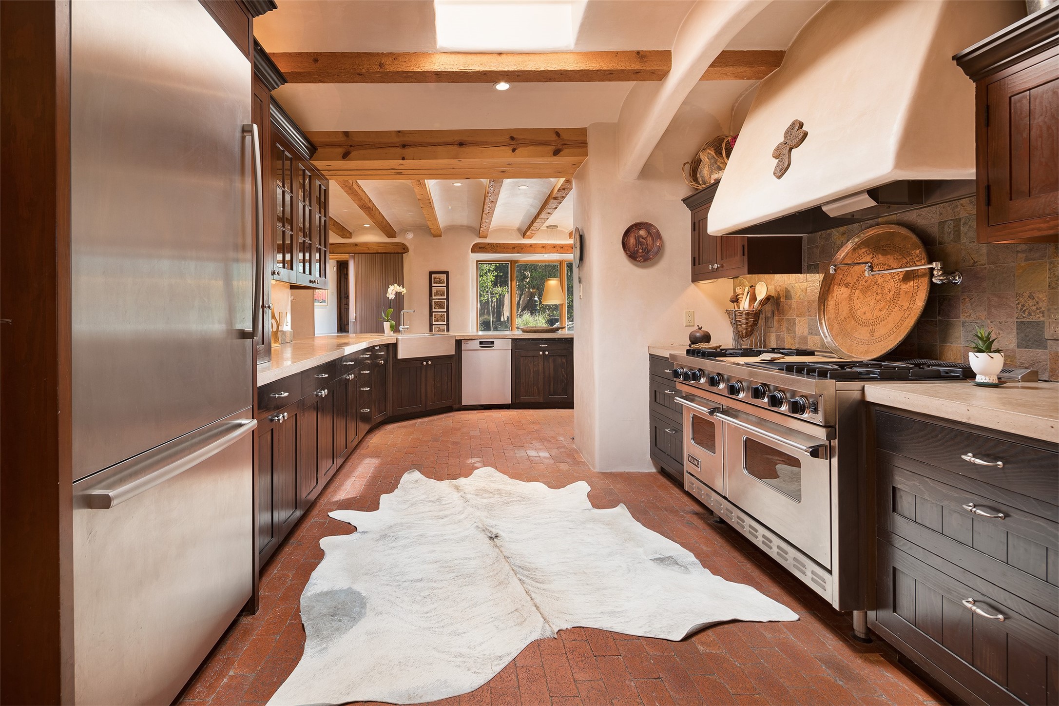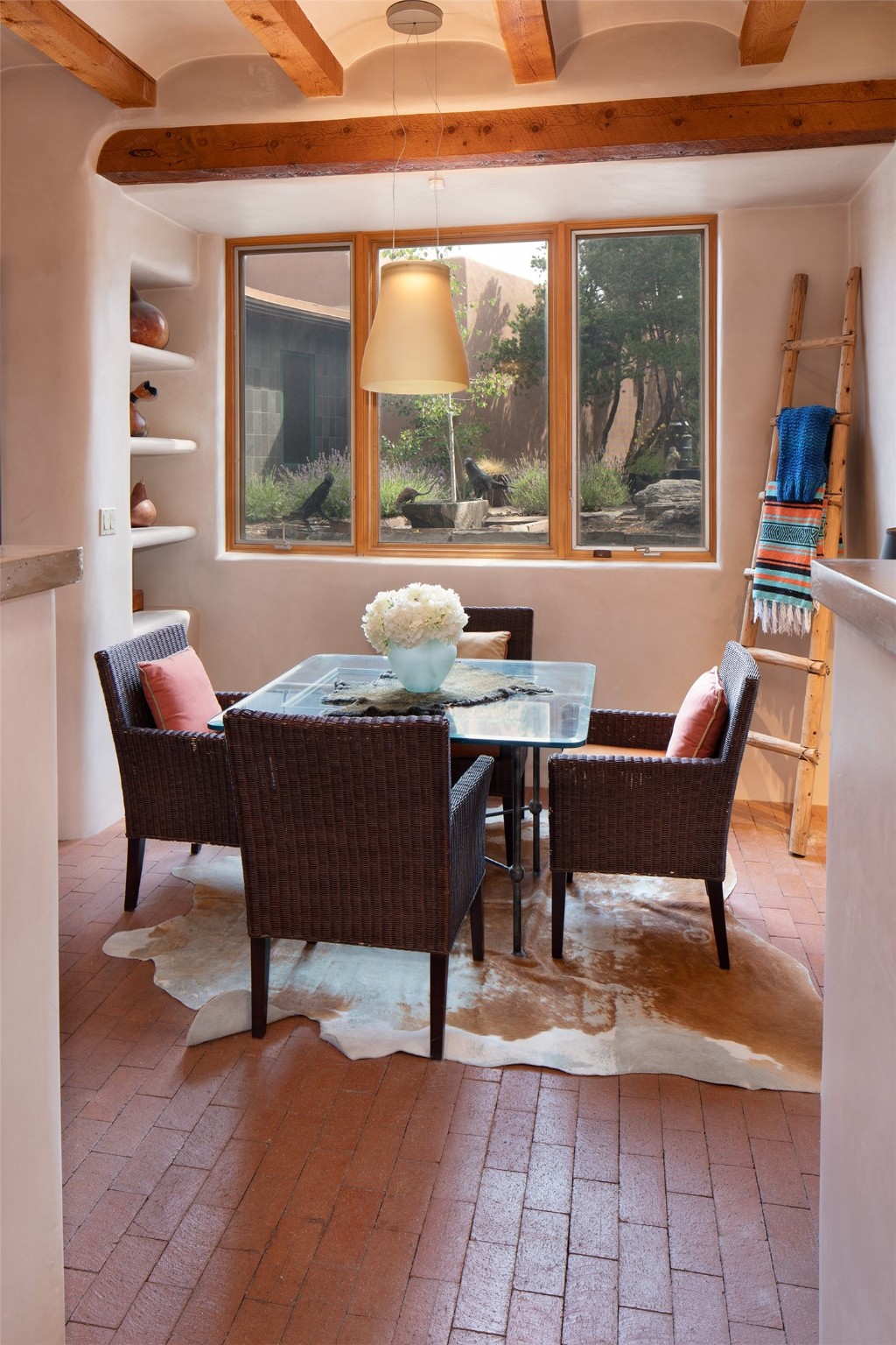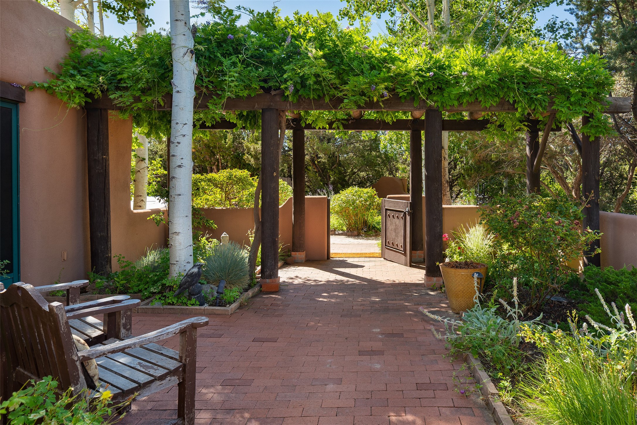 Your spirit will soar as you take in the view and mountains from this beautiful and inviting Santa Fe hacienda! Tucked in on 3.194 acres, so private with forever views, yet only 5 minutes to Market Street and Jinga Restaurant. Well- constructed with plastered walls, 5 wood-burning fireplaces, brick floors, traditional ceiling treatments, spacious main outdoor portal with Jemez views plus a private portal off the primary suite with Sangre & Jemez views. The original part of the house is adobe, built in the mid-1980's & the house was enlarged in 1999 with famed architect Richard Martinez at the helm, designing a stunning primary suite with a small library, separate office with built-ins (& the mesmerizing views), an ample gathering room for TV & music, and a casual dining room. Richard returned in Nov 2012 to design a small guest house, which was not built, but the site is shown on the plat for information only. The wonderful flow of this home includes approx. 5317 square feet: 4 bedrooms, 4 baths (2 Full, two ), formal dining & casual dining, two living areas, office. Radiant heat (the good kind) in the floor, 3 mini-splits for AC. NO HOA. This home offers grace, warmth & sophistication in a location that gives an elevated Santa Fe experience with views sunrise to sunset. Enjoy the video!