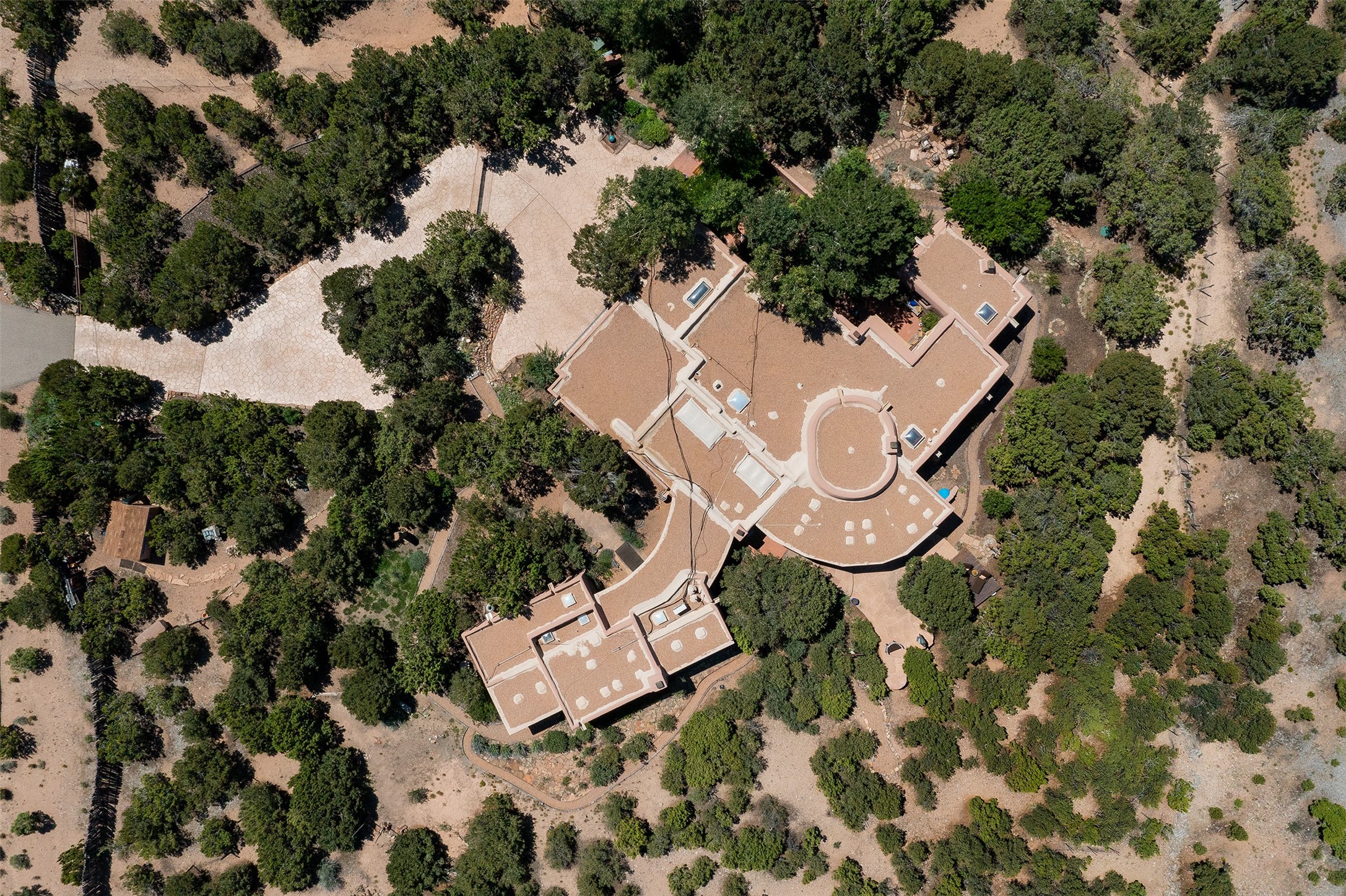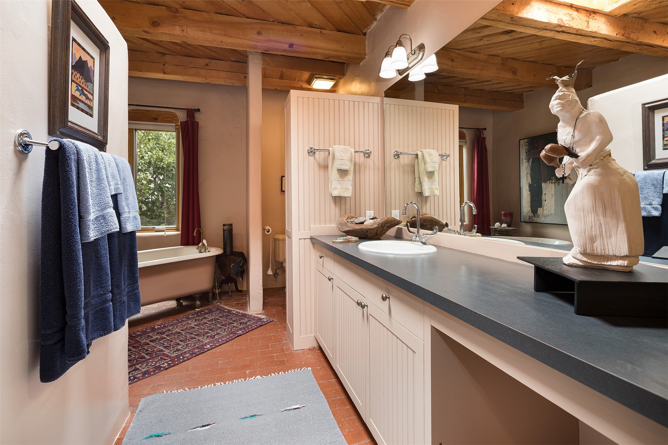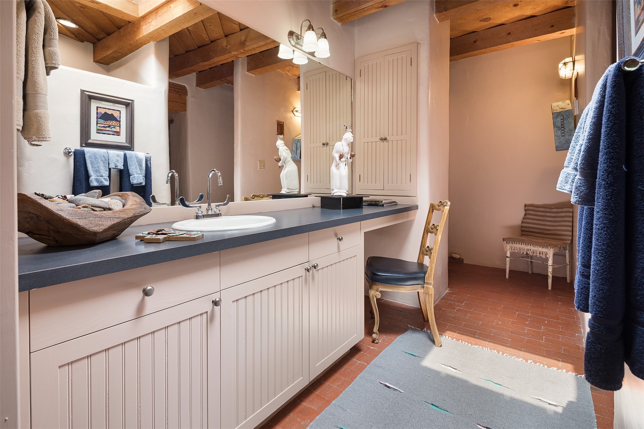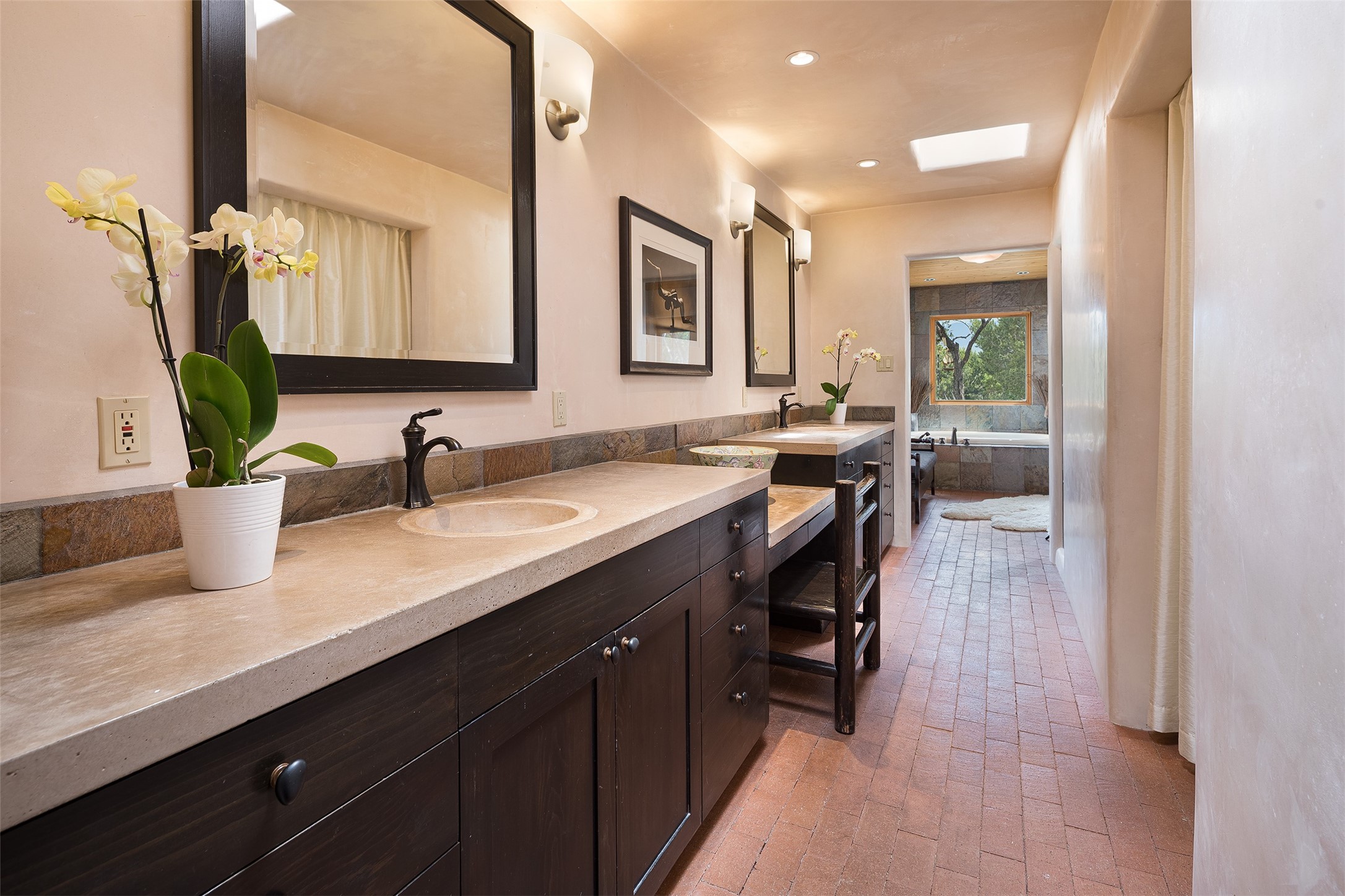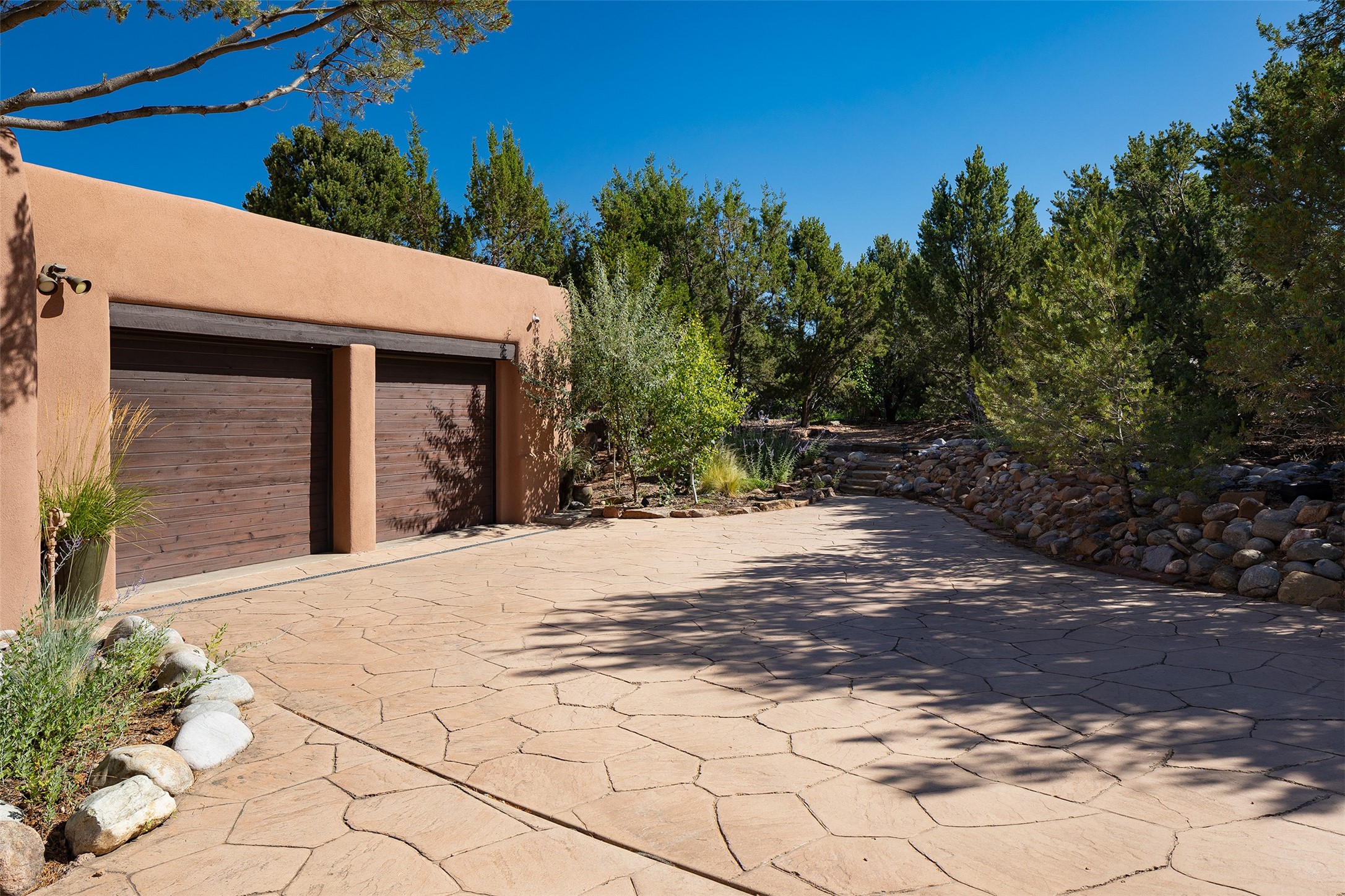 Your spirit will soar as you take in the view and mountains from this beautiful and inviting Santa Fe hacienda! Tucked in on 3.194 acres, so private with forever views, yet only 5 minutes to Market Street and Jinga Restaurant. Well- constructed with plastered walls, 5 wood-burning fireplaces, brick floors, traditional ceiling treatments, spacious main outdoor portal with Jemez views plus a private portal off the primary suite with Sangre & Jemez views. The original part of the house is adobe, built in the mid-1980's & the house was enlarged in 1999 with famed architect Richard Martinez at the helm, designing a stunning primary suite with a small library, separate office with built-ins (& the mesmerizing views), an ample gathering room for TV & music, and a casual dining room. Richard returned in Nov 2012 to design a small guest house, which was not built, but the site is shown on the plat for information only. The wonderful flow of this home includes approx. 5317 square feet: 4 bedrooms, 4 baths (2 Full, two ), formal dining & casual dining, two living areas, office. Radiant heat (the good kind) in the floor, 3 mini-splits for AC. NO HOA. This home offers grace, warmth & sophistication in a location that gives an elevated Santa Fe experience with views sunrise to sunset. Enjoy the video!