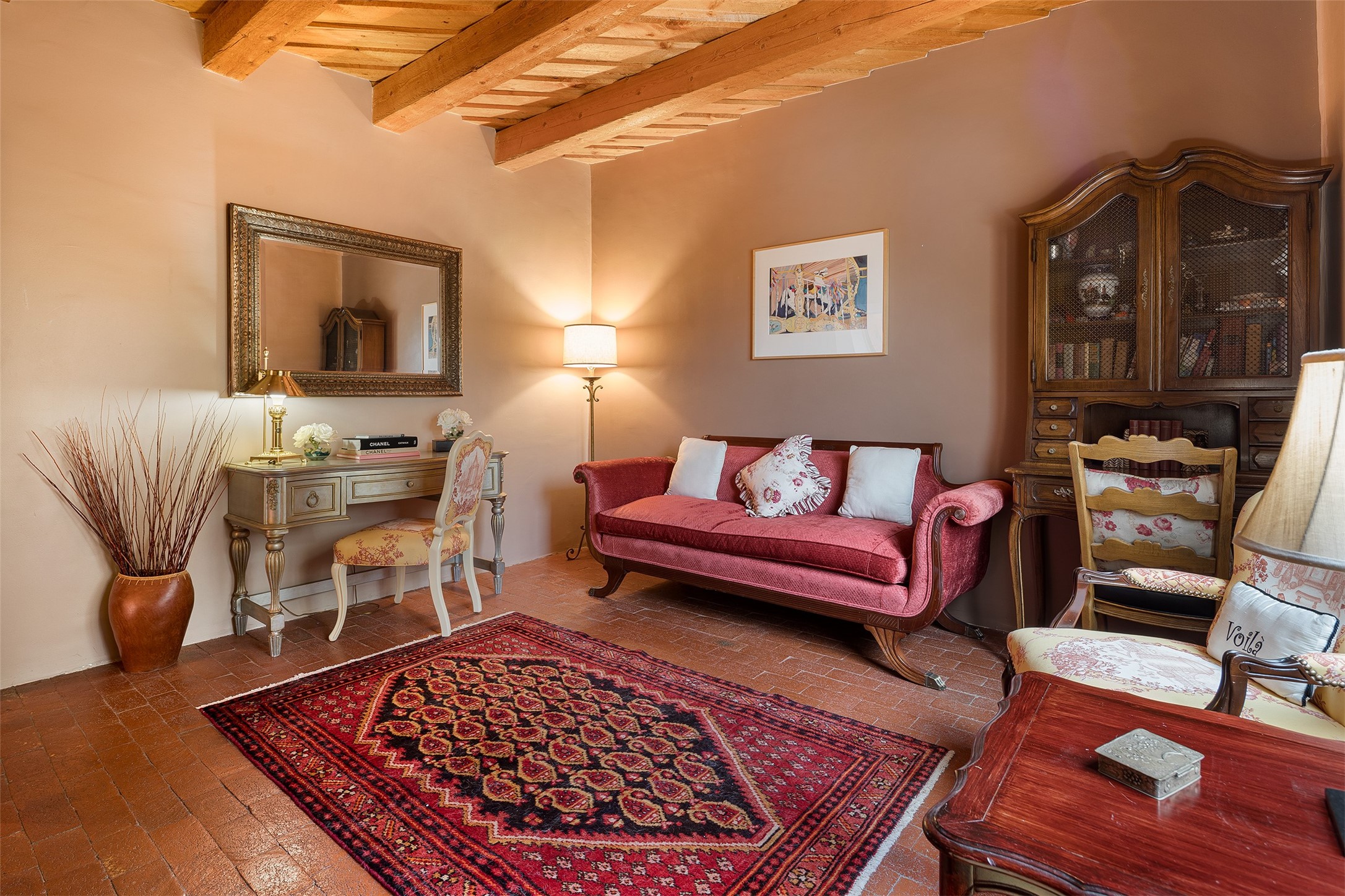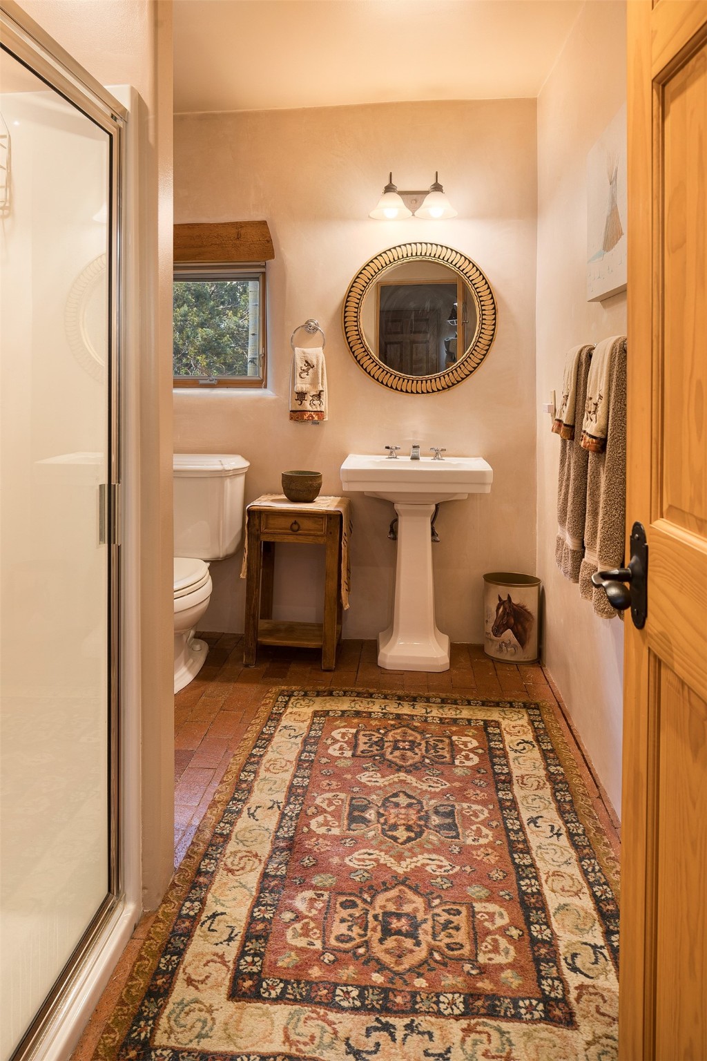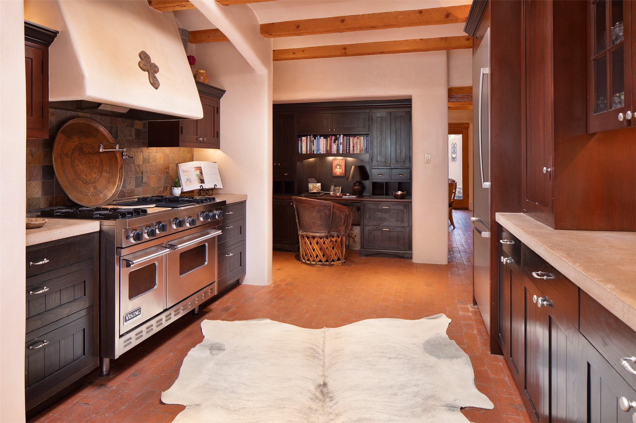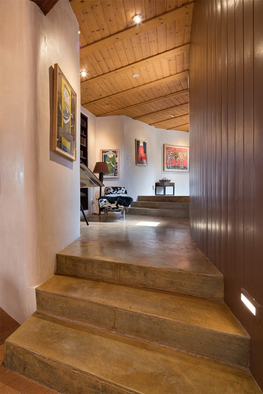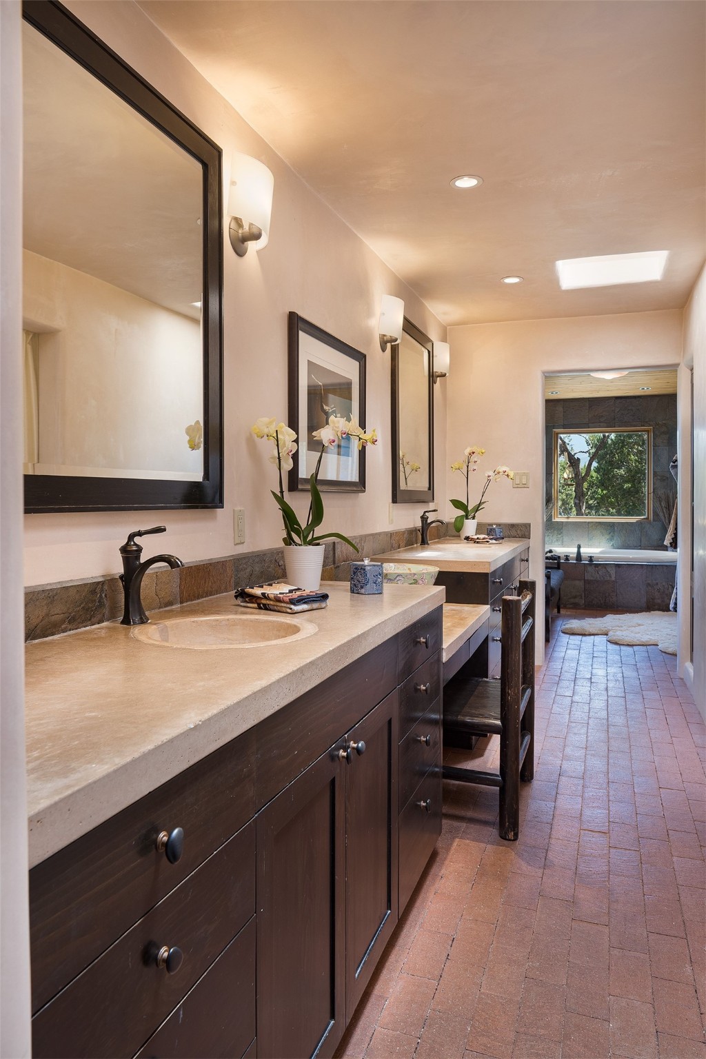 Your spirit will soar as you take in the view and mountains from this beautiful and inviting Santa Fe hacienda! Tucked in on 3.194 acres, so private with forever views, yet only 5 minutes to Market Street and Jinga Restaurant. Well- constructed with plastered walls, 5 wood-burning fireplaces, brick floors, traditional ceiling treatments, spacious main outdoor portal with Jemez views plus a private portal off the primary suite with Sangre & Jemez views. The original part of the house is adobe, built in the mid-1980's & the house was enlarged in 1999 with famed architect Richard Martinez at the helm, designing a stunning primary suite with a small library, separate office with built-ins (& the mesmerizing views), an ample gathering room for TV & music, and a casual dining room. Richard returned in Nov 2012 to design a small guest house, which was not built, but the site is shown on the plat for information only. The wonderful flow of this home includes approx. 5317 square feet: 4 bedrooms, 4 baths (2 Full, two ), formal dining & casual dining, two living areas, office. Radiant heat (the good kind) in the floor, 3 mini-splits for AC. NO HOA. This home offers grace, warmth & sophistication in a location that gives an elevated Santa Fe experience with views sunrise to sunset. Enjoy the video!