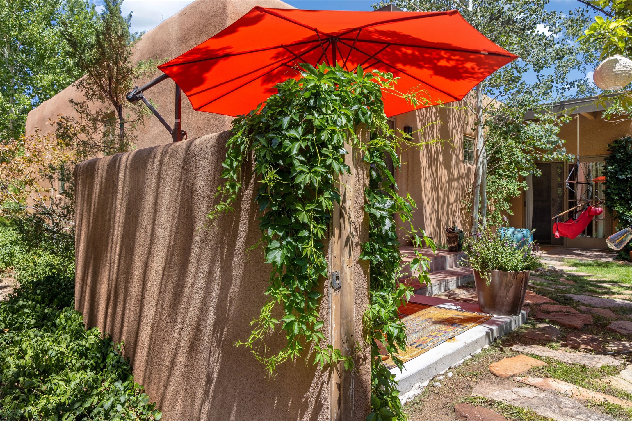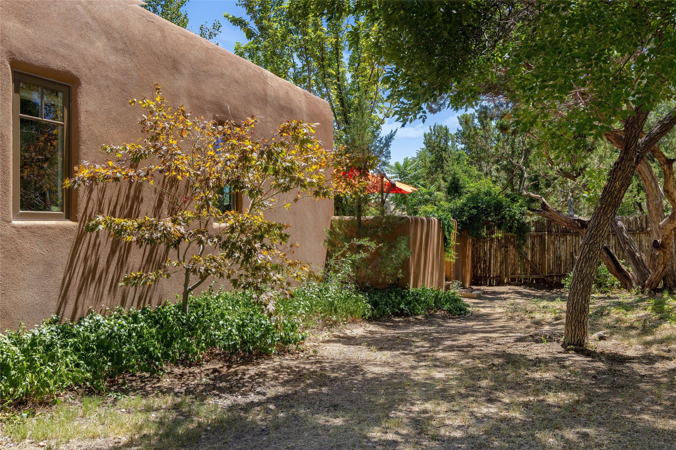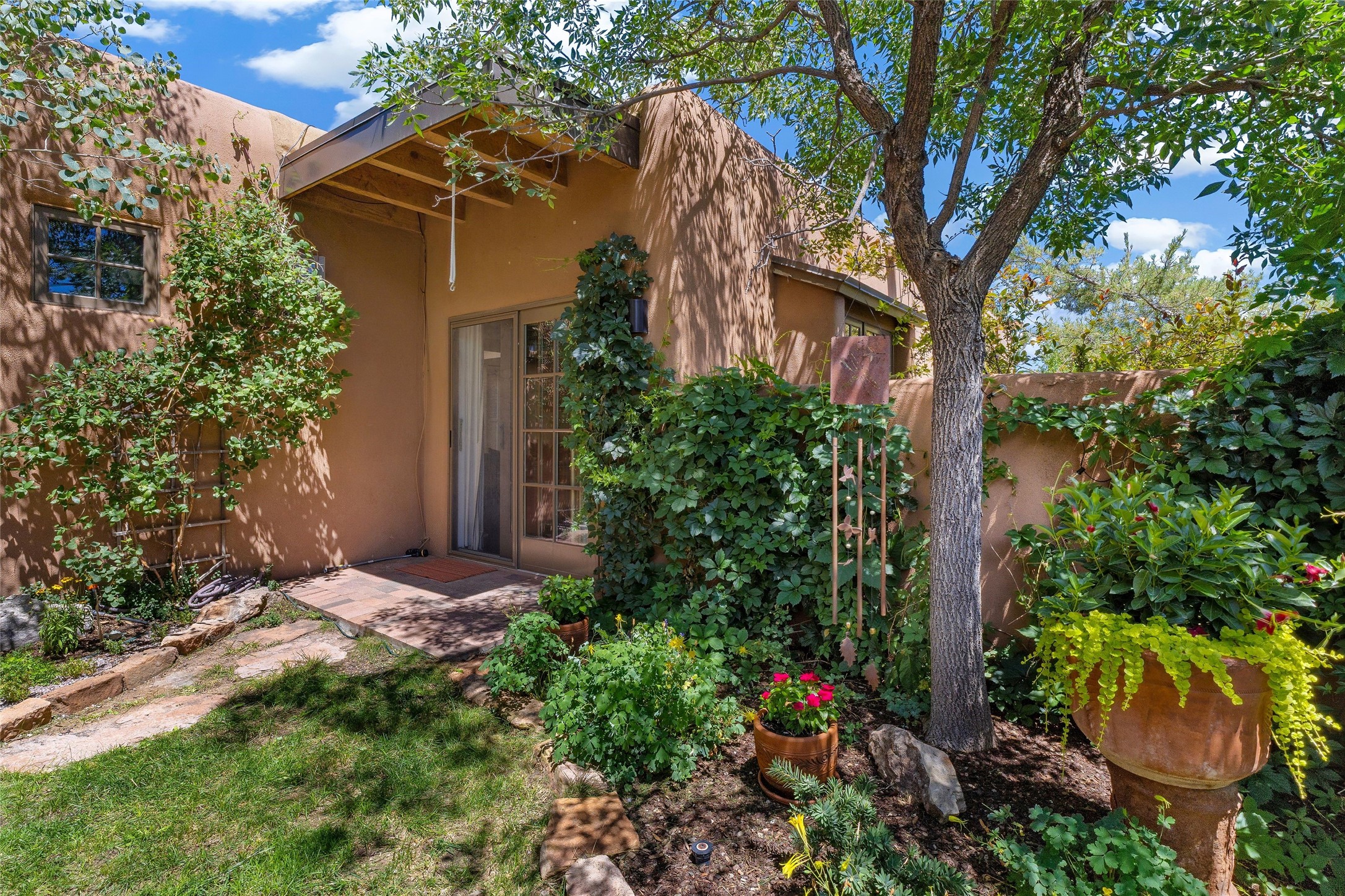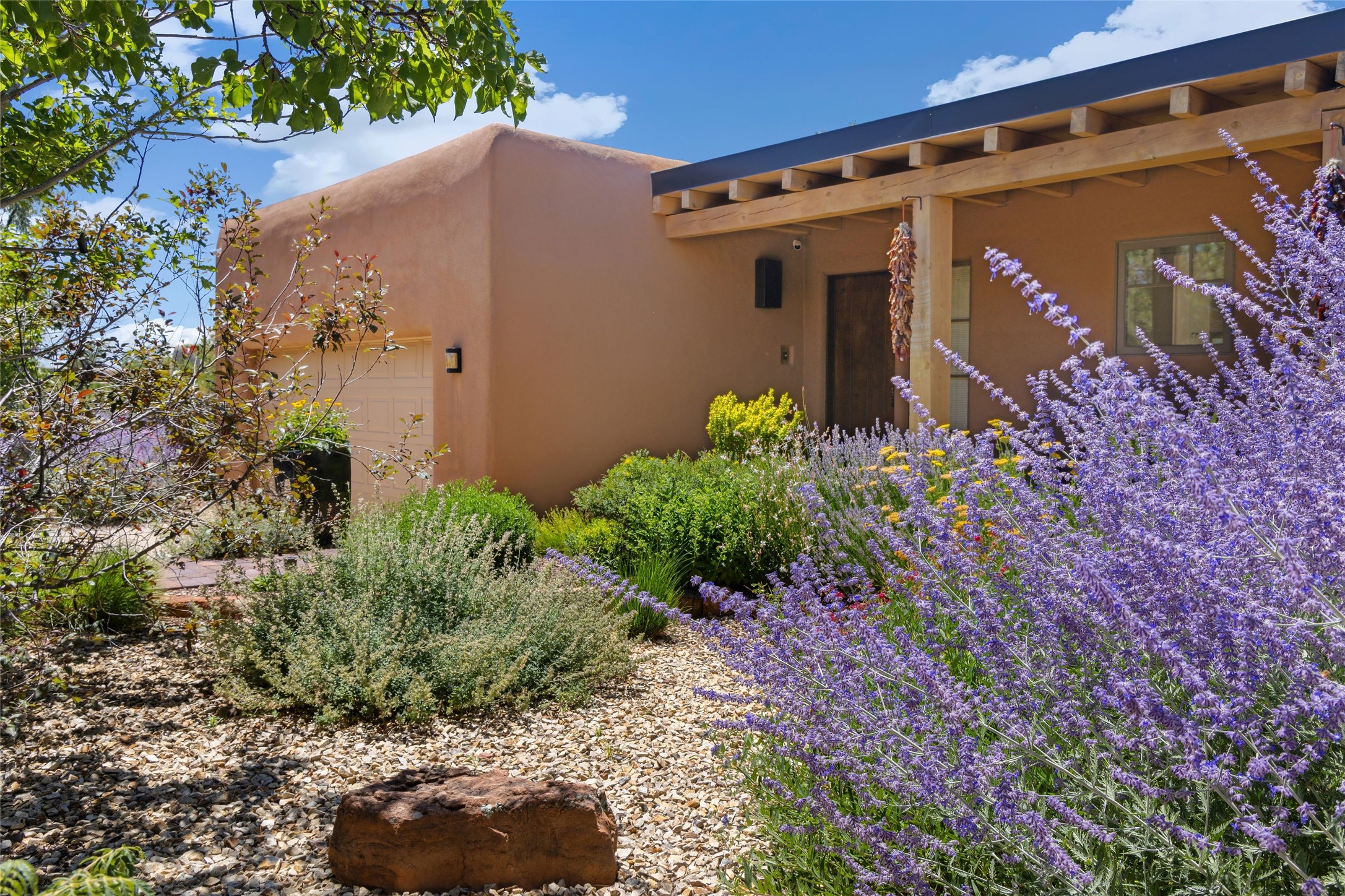 Nestled behind a private stucco-walled garden bursting with seasonal flowers, this single-level Santa Fe-style home reflects almost two decades of thoughtful design by its creative owners. Every detail tells a story--authentic, warm, and perfectly tailored for modern living. The convenient in town location is only blocks from the storied South Capital neighborhood. Step inside to discover sunlit interiors with rich hardwood floors, wood beamed ceilings, skylights, and an open flow that connects the heart of the home. The island kitchen, crowned with raised ceilings and Kitchen Aid appliances offers generous counter space and seamlessly opens to a cozy den anchored by a traditional kiva fireplace. The center hall floor plan offers a dining room with coved ceilings and views of an outdoor grilling patio with arbor. The sunken living room with corner kiva fireplace has access to the side courtyard with Aspen trees and fountain. The spacious bedrooms share an updated dual vanity bathroom with shower. The primary opens to the connecting side fountain courtyard. A luxurious laundry room, abundant storage, oversized attached two car garage and secondary gated driveway completes this home. Many updates over the years since ownership include adding landscaping, adding a front portal, replacing the windows/doors, updating the roof and stucco. Multiple outdoor living spaces invite you to savor Santa Fe's magical light--from mountain views from the front garden, morning coffee in the courtyard to evening gatherings under the stars. The landscaped grounds are a private sanctuary, with vibrant flowers and native plantings creating year-round beauty. This is more than a home--it's a carefully curated work of art, blending classic Southwestern architecture with the comfort and style of a designer's vision.