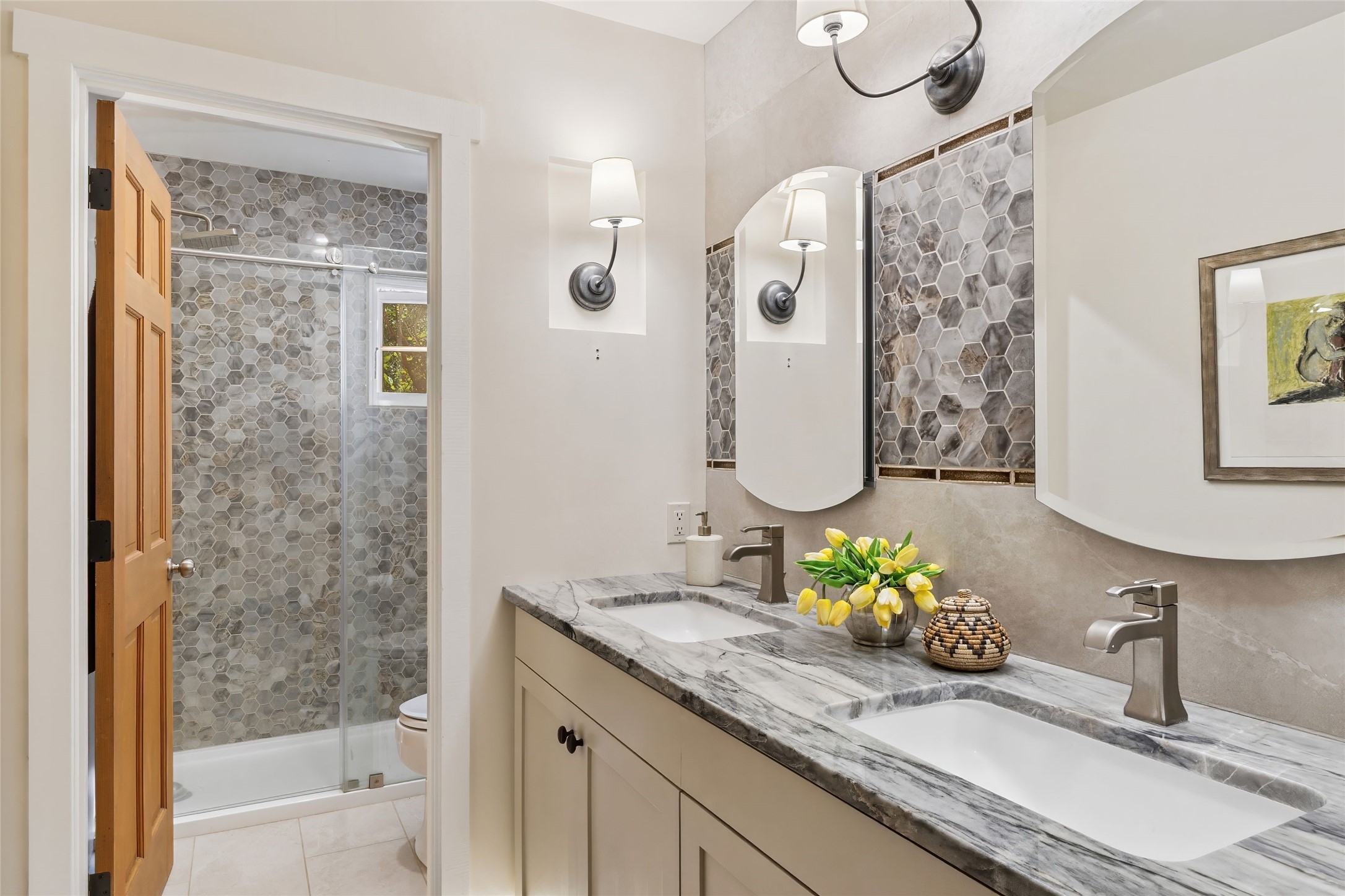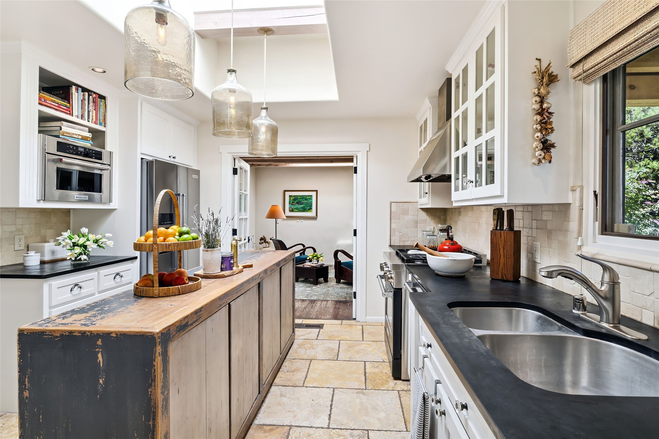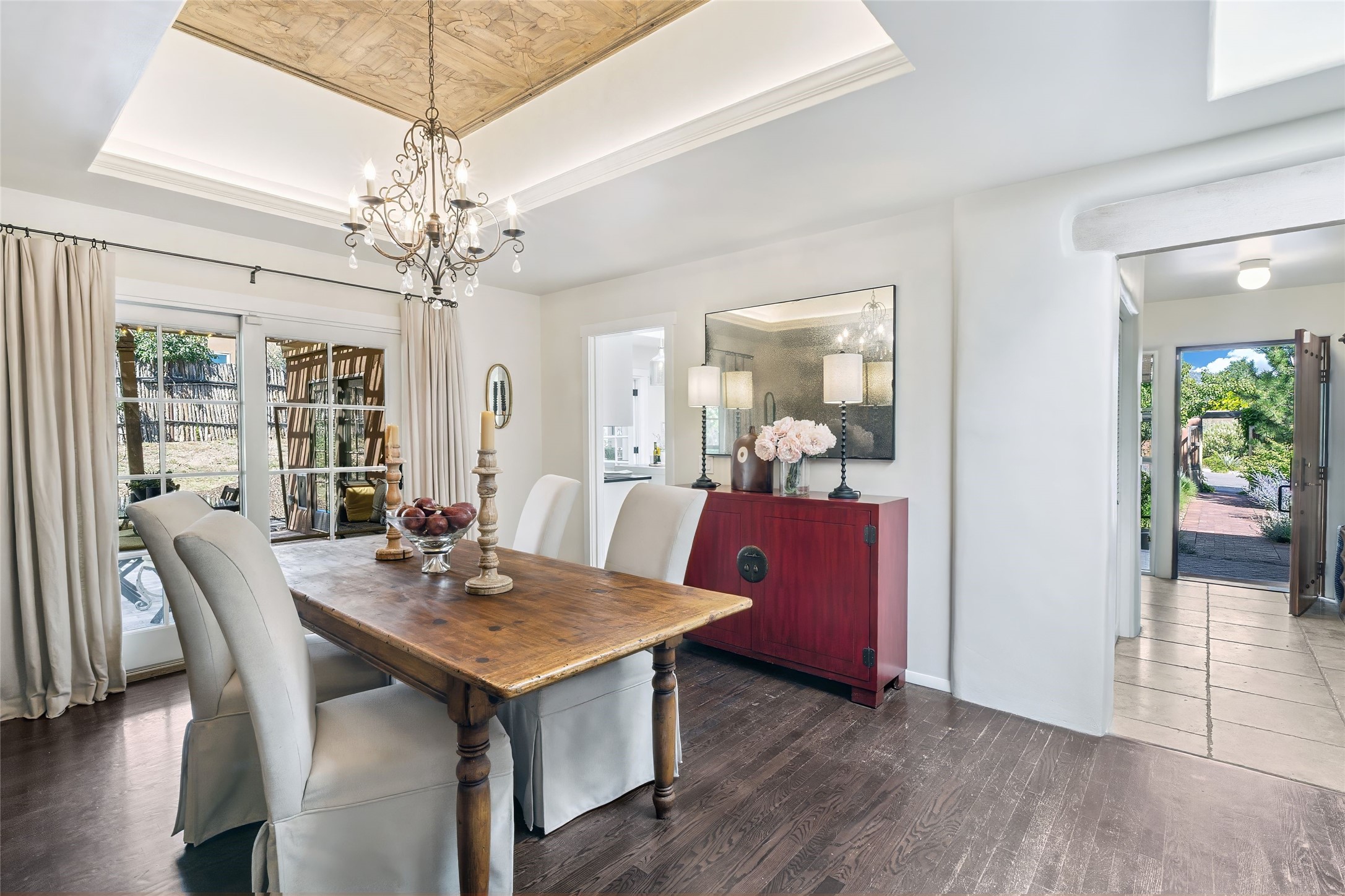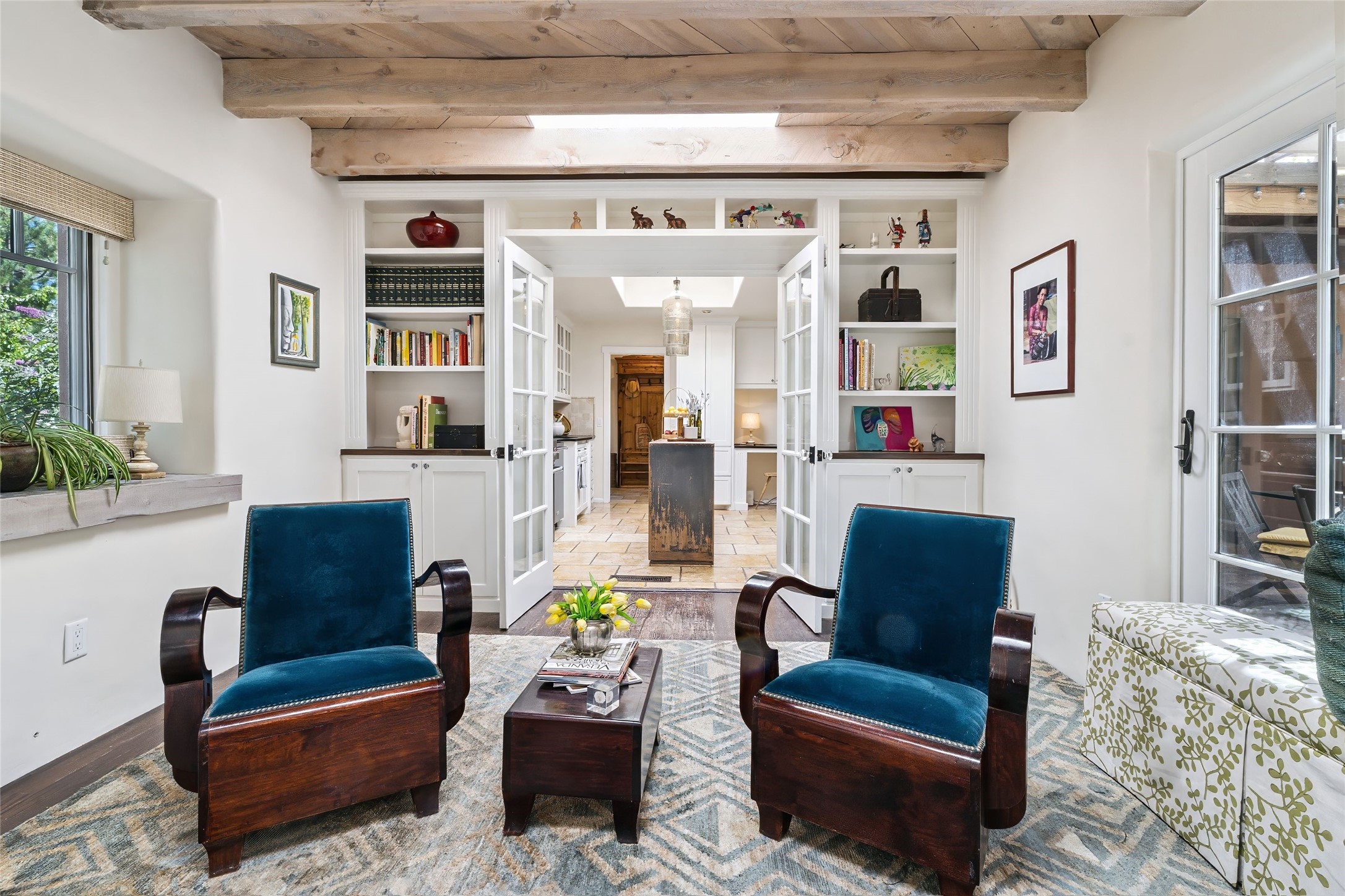 Nestled behind a private stucco-walled garden bursting with seasonal flowers, this single-level Santa Fe-style home reflects almost two decades of thoughtful design by its creative owners. Every detail tells a story--authentic, warm, and perfectly tailored for modern living. The convenient in town location is only blocks from the storied South Capital neighborhood. Step inside to discover sunlit interiors with rich hardwood floors, wood beamed ceilings, skylights, and an open flow that connects the heart of the home. The island kitchen, crowned with raised ceilings and Kitchen Aid appliances offers generous counter space and seamlessly opens to a cozy den anchored by a traditional kiva fireplace. The center hall floor plan offers a dining room with coved ceilings and views of an outdoor grilling patio with arbor. The sunken living room with corner kiva fireplace has access to the side courtyard with Aspen trees and fountain. The spacious bedrooms share an updated dual vanity bathroom with shower. The primary opens to the connecting side fountain courtyard. A luxurious laundry room, abundant storage, oversized attached two car garage and secondary gated driveway completes this home. Many updates over the years since ownership include adding landscaping, adding a front portal, replacing the windows/doors, updating the roof and stucco. Multiple outdoor living spaces invite you to savor Santa Fe's magical light--from mountain views from the front garden, morning coffee in the courtyard to evening gatherings under the stars. The landscaped grounds are a private sanctuary, with vibrant flowers and native plantings creating year-round beauty. This is more than a home--it's a carefully curated work of art, blending classic Southwestern architecture with the comfort and style of a designer's vision.