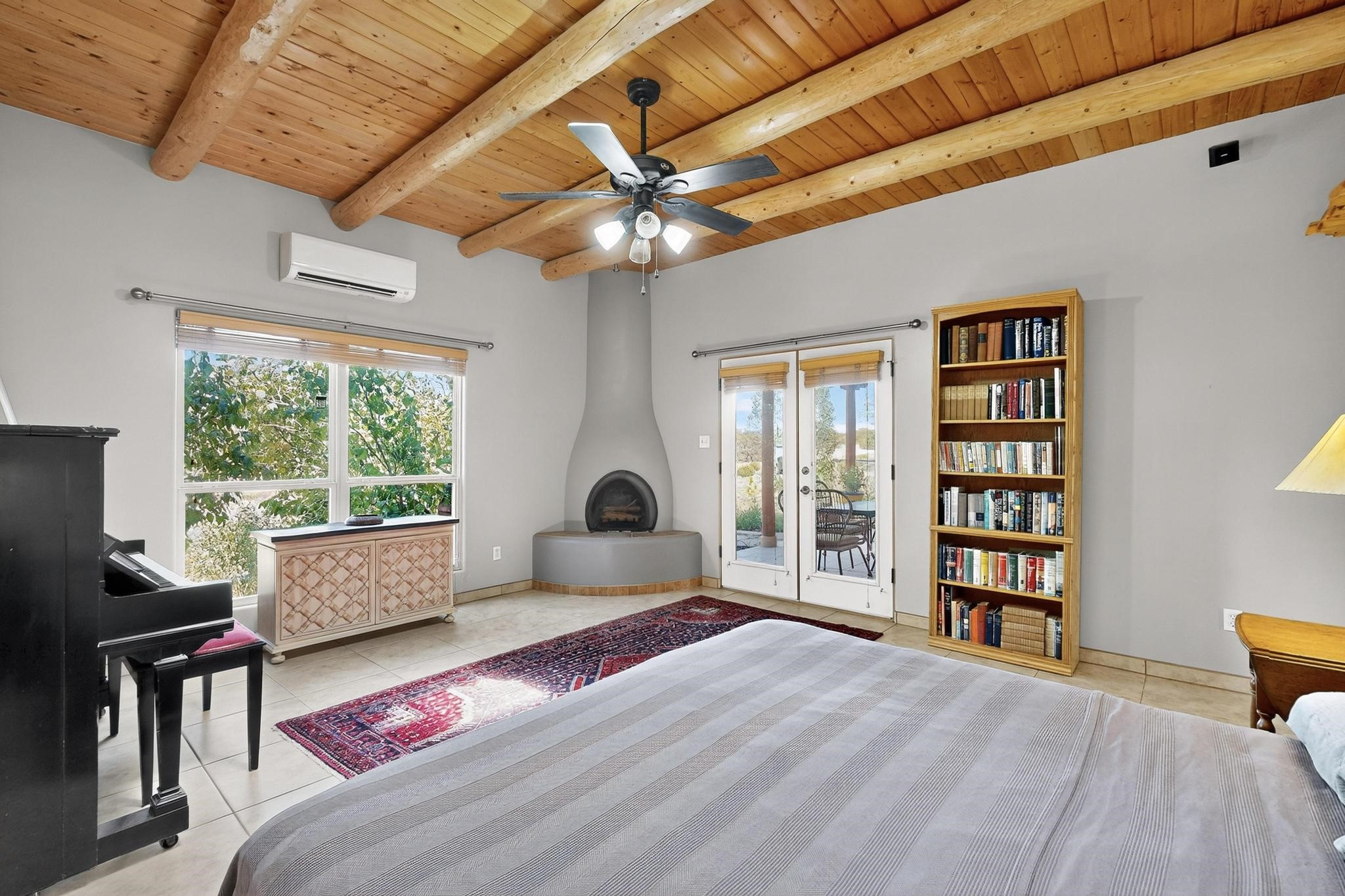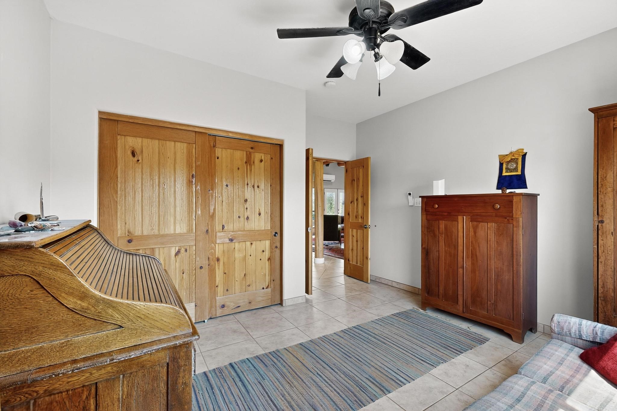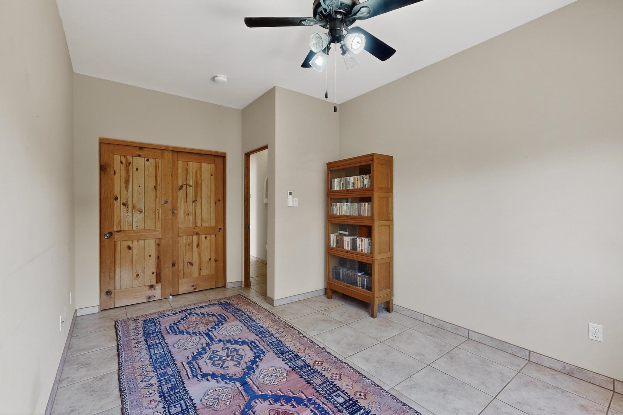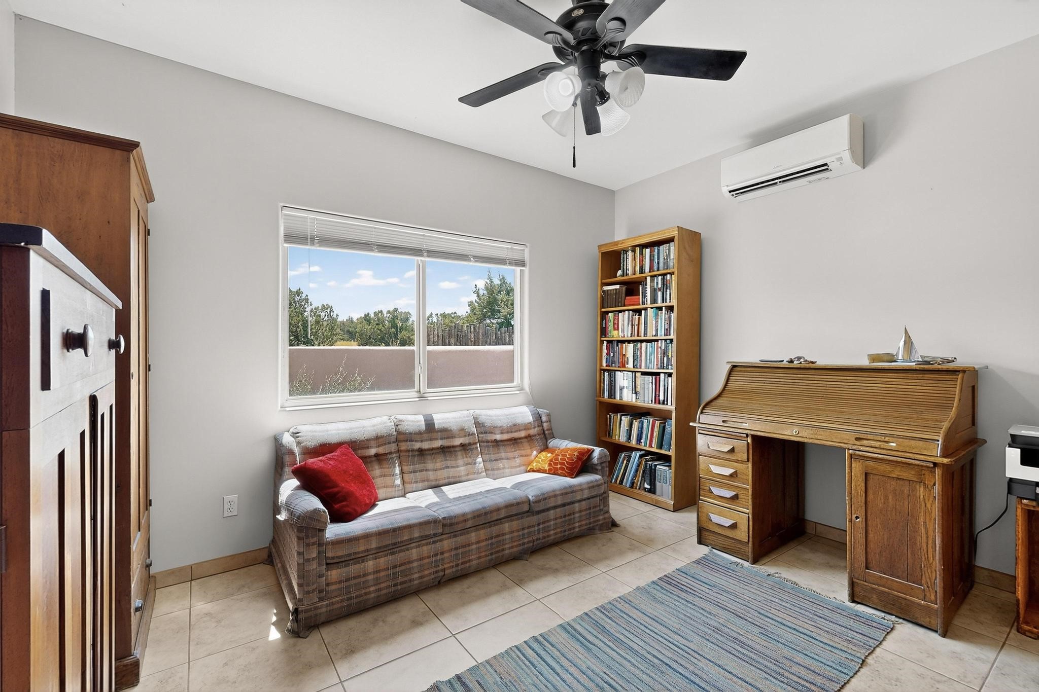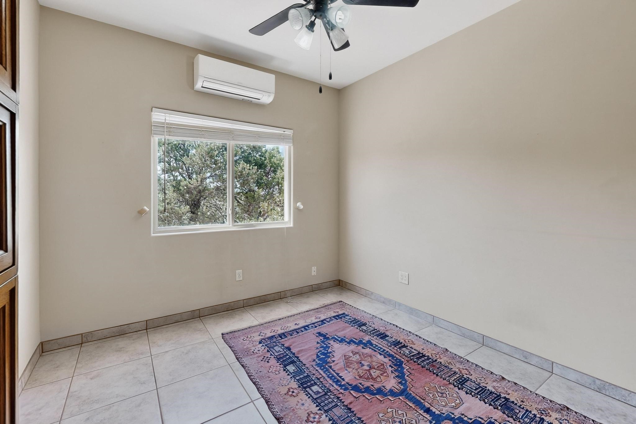 Calling all astronomers or night sky enthusiasts, this nicely maintained home located on a greenbelt includes a detached observatory. The natural gas radiant heating kitek heating is supplemented by Mitsubishi mini splits providing both heating and cooling. The plumbing has been serviced working currently. The new Gaco roof was installed in 2020 with additional foam insulation, and a 26 panel rooftop solar added. The home and wall was also stuccoed in 2020. The electrical service was upgraded to 220amps and an EV charger installed in the garage. The driveway and drainage has been improved. Landscaping has been extended to include decorative walls and fruit trees. The observatory was approved and installed in 2019-no telescope is included. All this is accessible to Eldorado amenities, easy to local shopping and services and only minutes into Santa Fe.