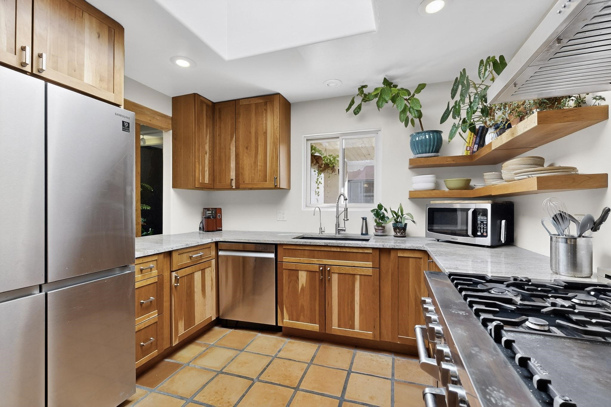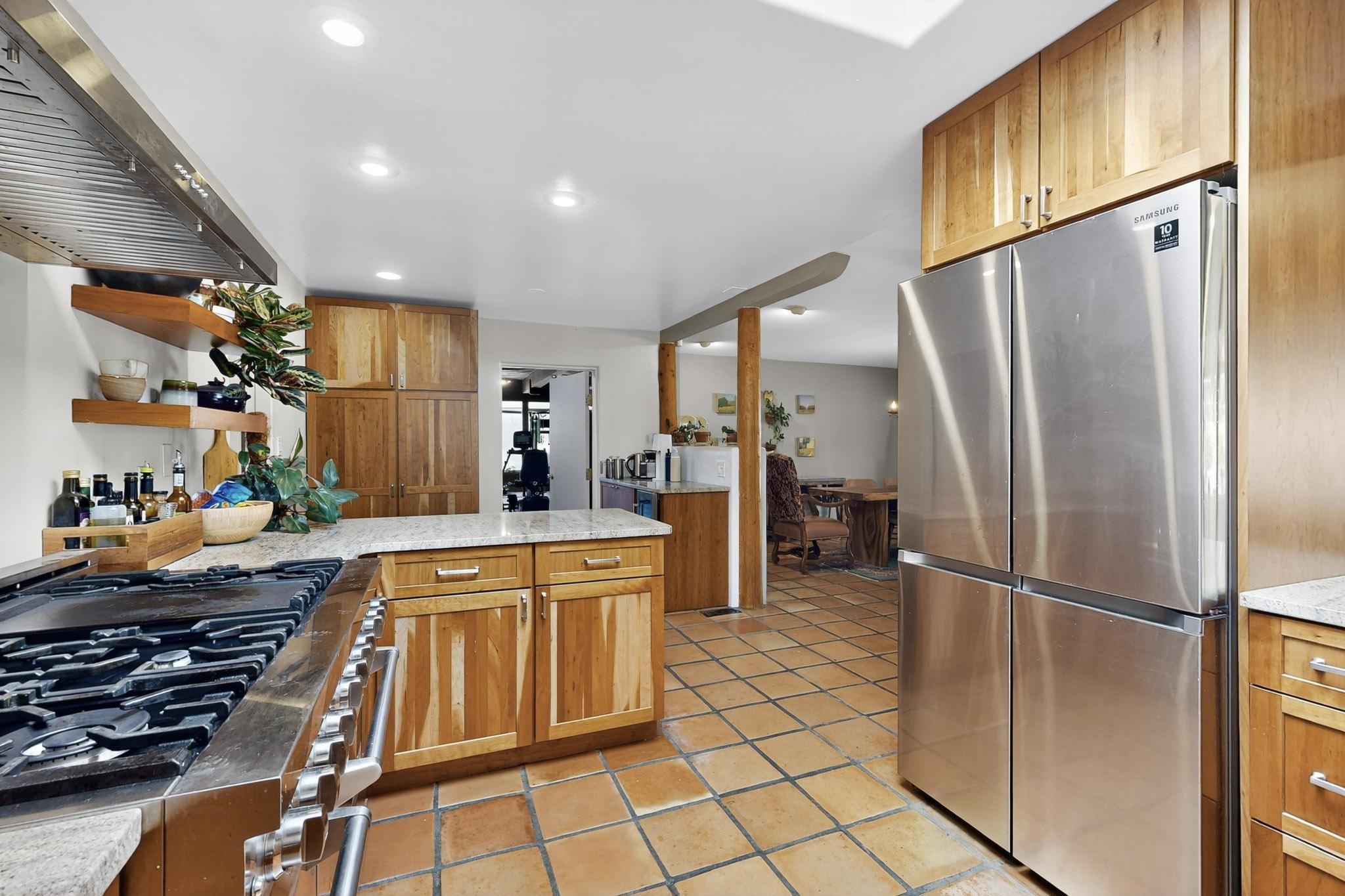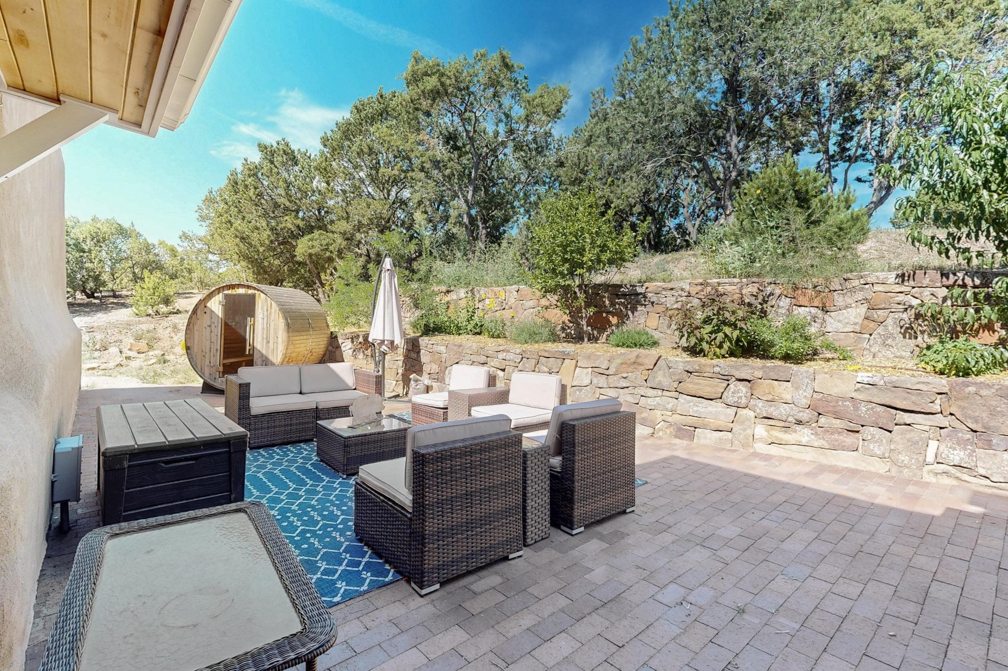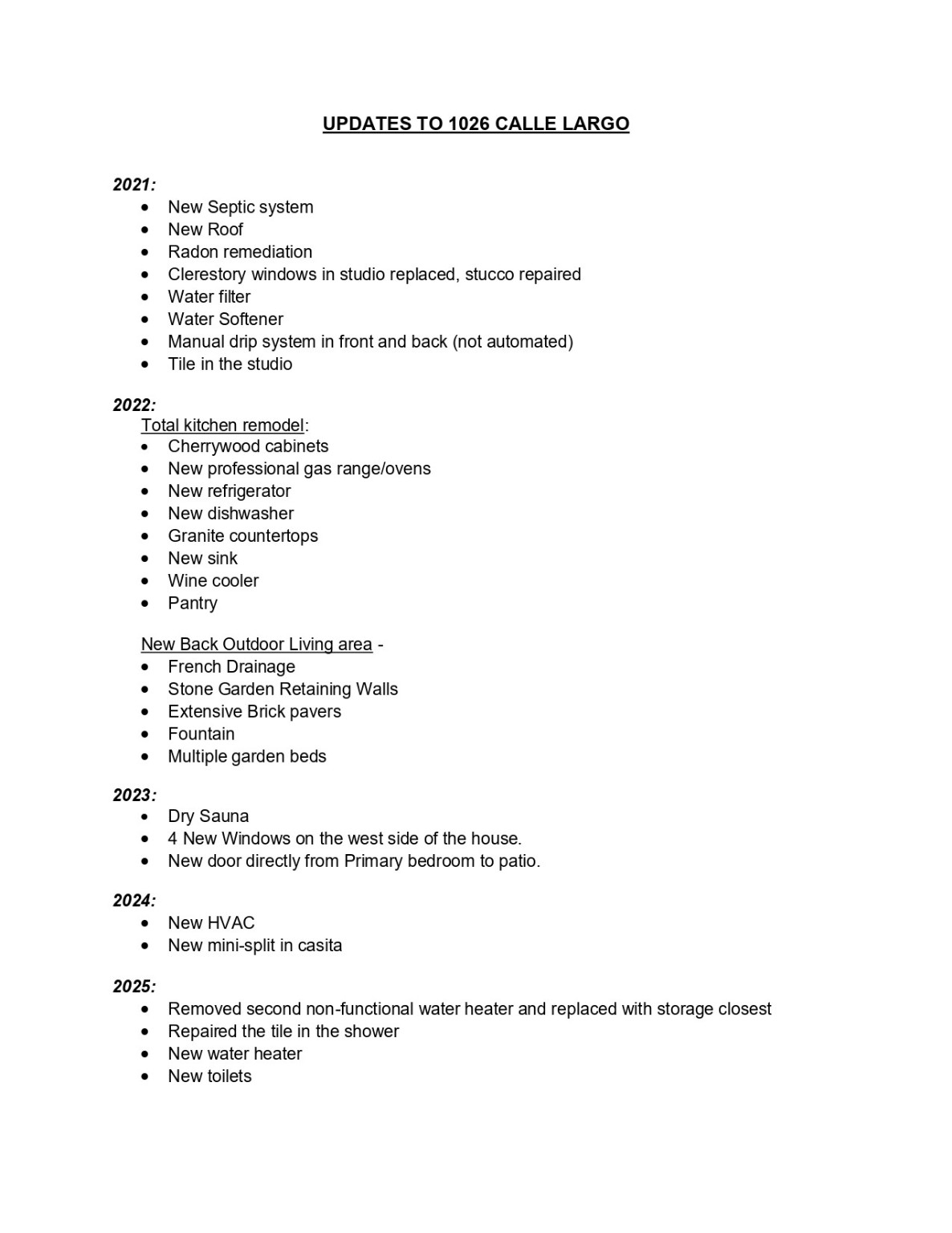 The possibilities are endless with this amazing property in the sought-after Vista Encantada. The main home, with over 2,600 sq. ft., features three bedrooms, an additional guest suite located off the kitchen with a separate entrance, a kitchenette, and an en-suite bathroom. This 4th bedroom would make a perfect guest suite, in-law suite or rental. The owners have undertaken some amazing updates over the last few years, including a complete kitchen remodel and a stunning backyard living space featuring extensive brick pavers, stone retaining walls, and beautiful landscaping. There is even a dry sauna to relax in after a hard day's work. Stunning mountain views from the upper backyard. Do not miss seeing this incredible 1670 sf studio. This space was once an indoor pool room. The pool has been covered and used for storage. The owners use this area for extra living and workout space. With a little imagination, you can transform this space into a remarkable art studio, attached casita, gym, or fantastic kids' playroom. Home is priced to allow new owners to do their updating of the bathrooms, installing some new windows, and miscellaneous other updates that may be needed. Please see the list of all the updates.
