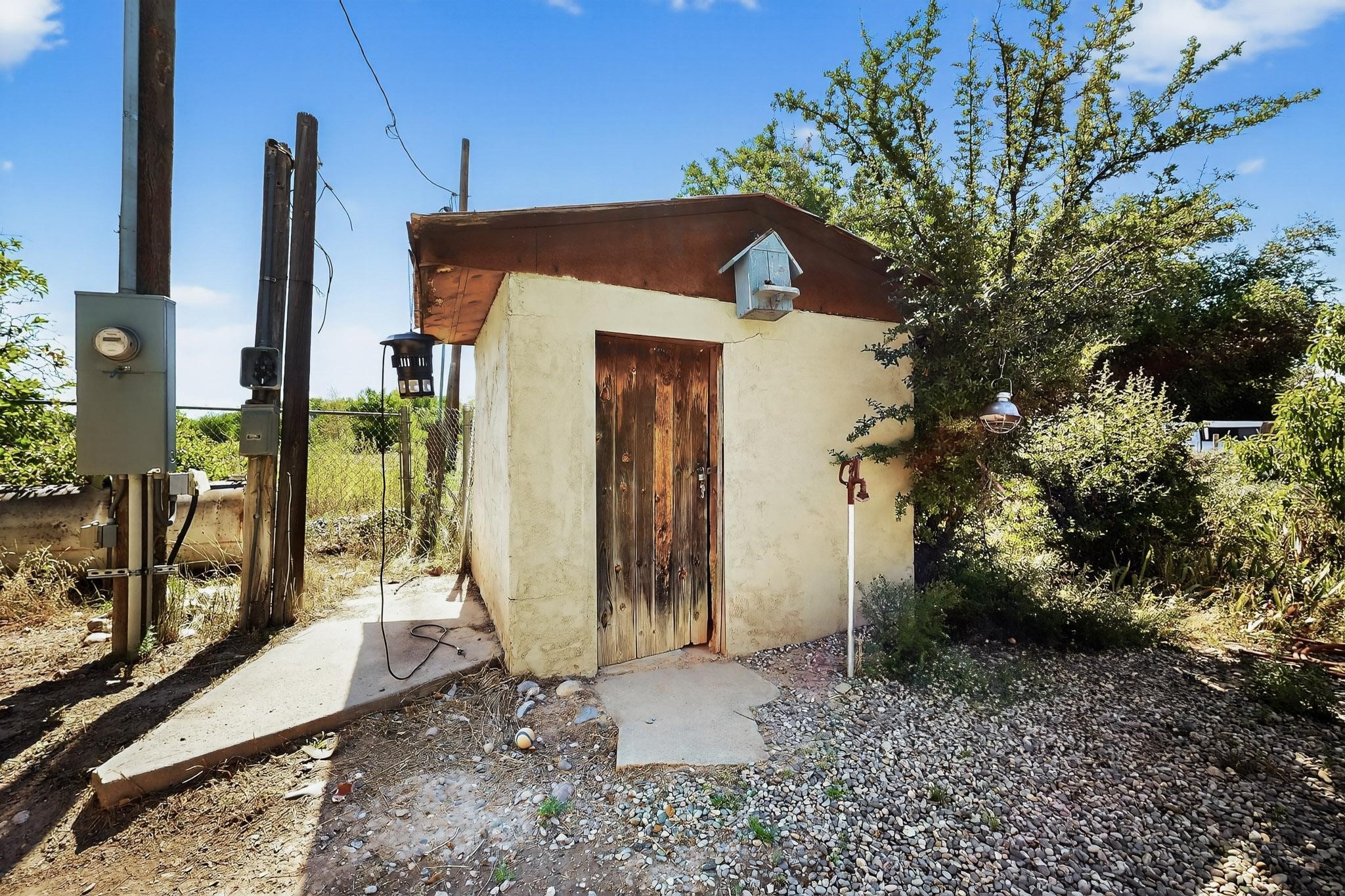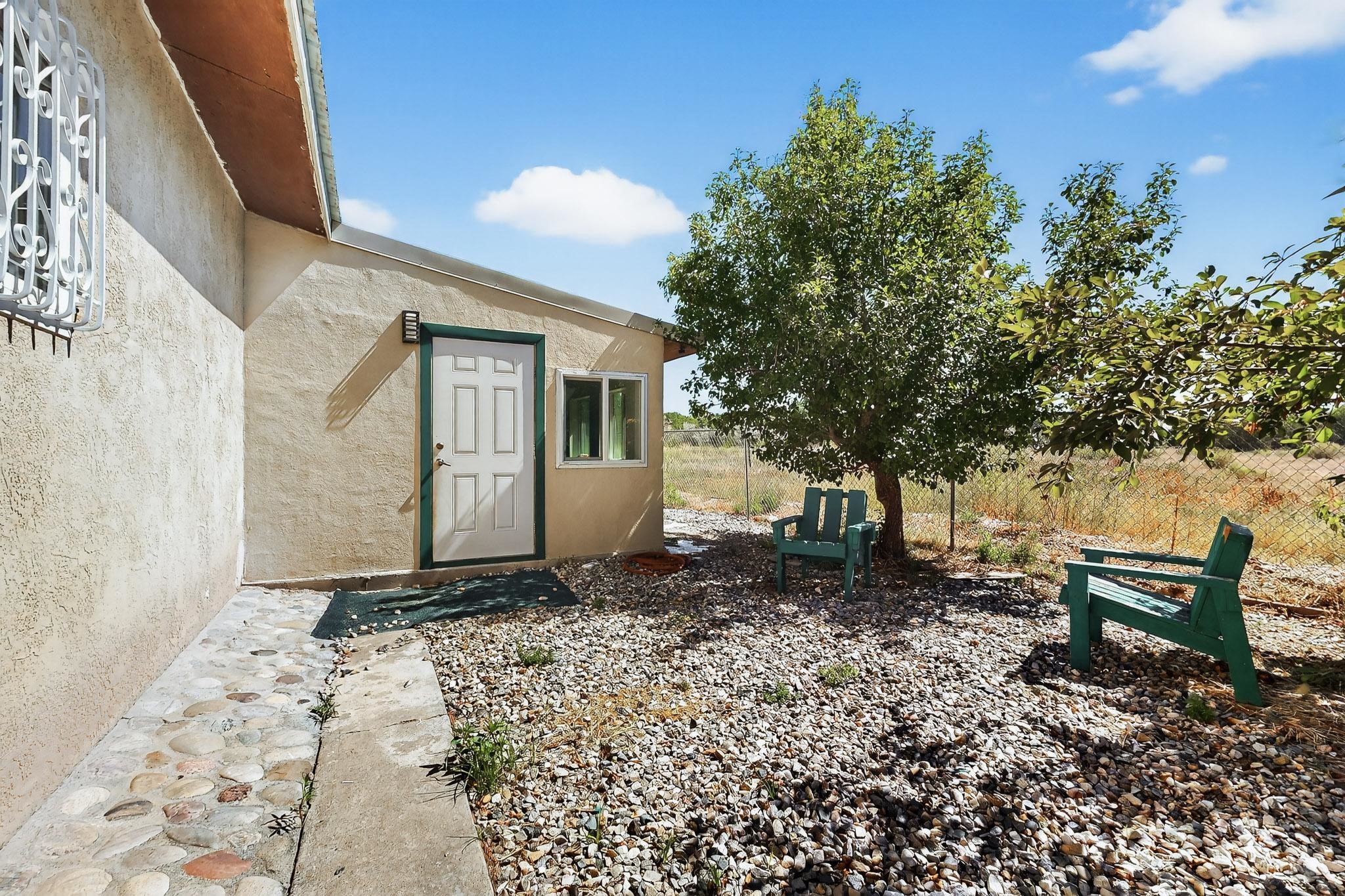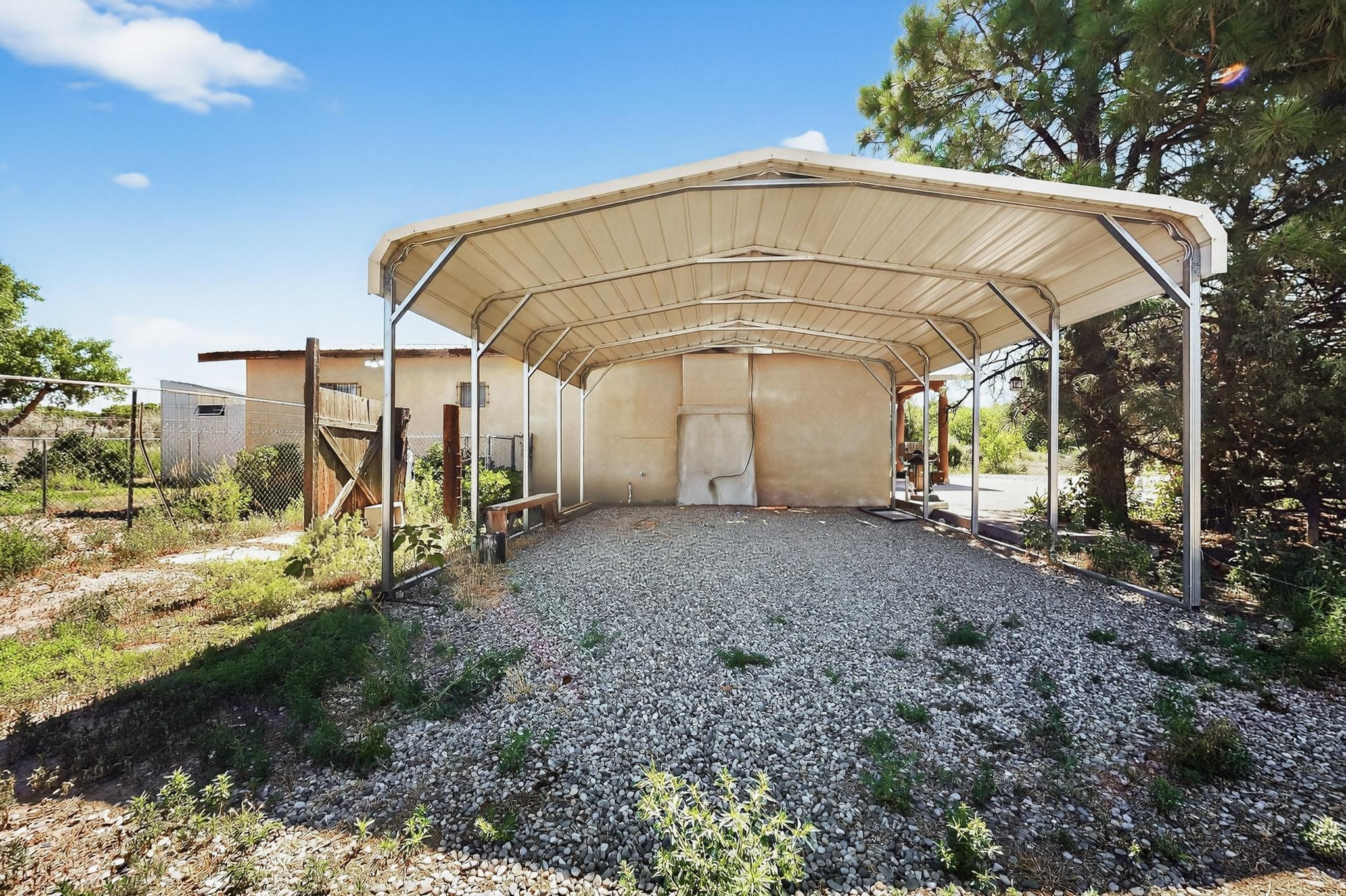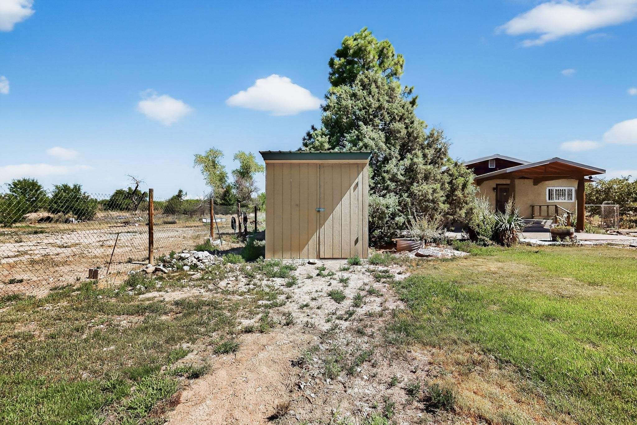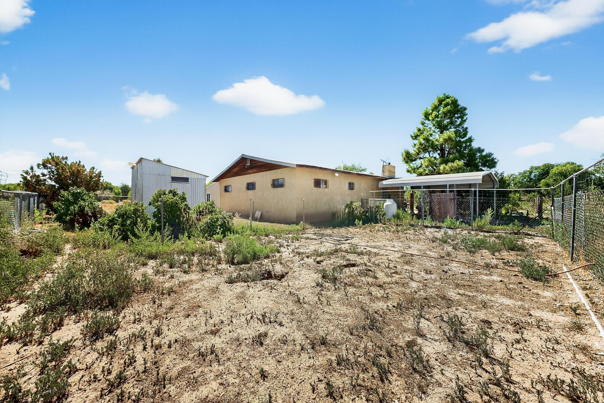 Tucked away in a serene, private haven far from the hustle and bustle, but only 23 miles from Santa Fe, and 21 miles from Los Alamos, this 5.04-acre horse property weaves together rural charm and modern comfort. Enveloped by lush, irrigated land and shaded by towering cottonwood trees, the estate offers a tranquil retreat perfect for those craving peaceful solitude. The property consist of four separate but adjoining parcels, with a well-maintained large barn that stands ready for equestrian pursuits or hobbies, while secure water rights ensure the vibrant pastures and greenery thrive year-round. Scattered across the property, fruit trees yield seasonal delights, adding a touch of homesteading allure. At the heart of this oasis lies a converted and expanded 3-bedroom, 2-bathroom manufactured home. Whether you're an equestrian enthusiast, a nature lover, or simply seeking a secluded sanctuary, this remarkable property invites you to embrace a life of tranquility and endless possibilities. Schedule a showing today to discover this rare gem! Neither seller nor broker warrant any listing information. Areas that are of matrial interest should be independently verified by the buyer.