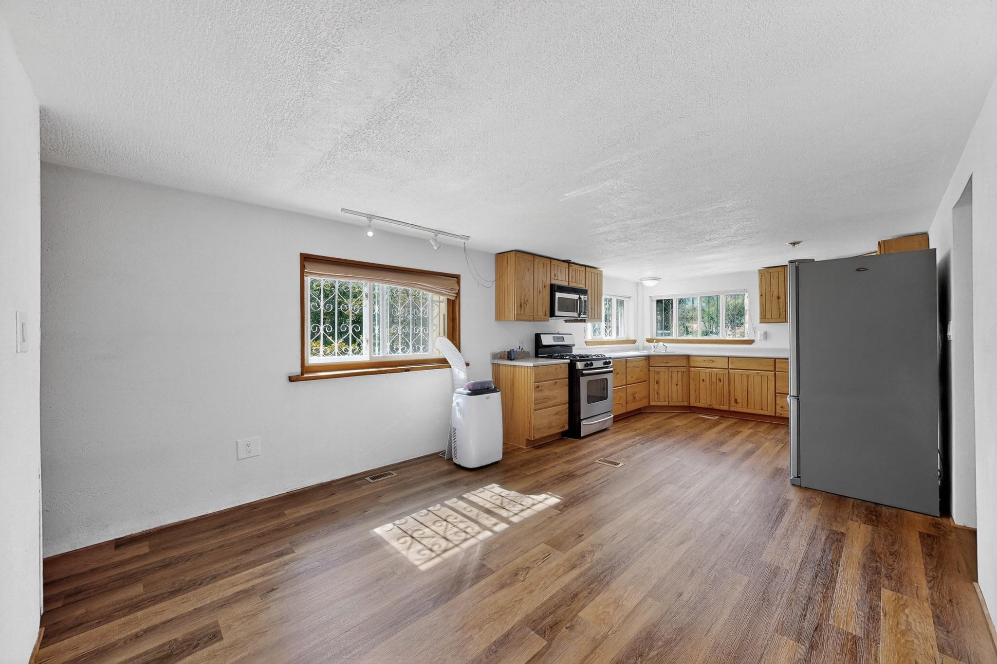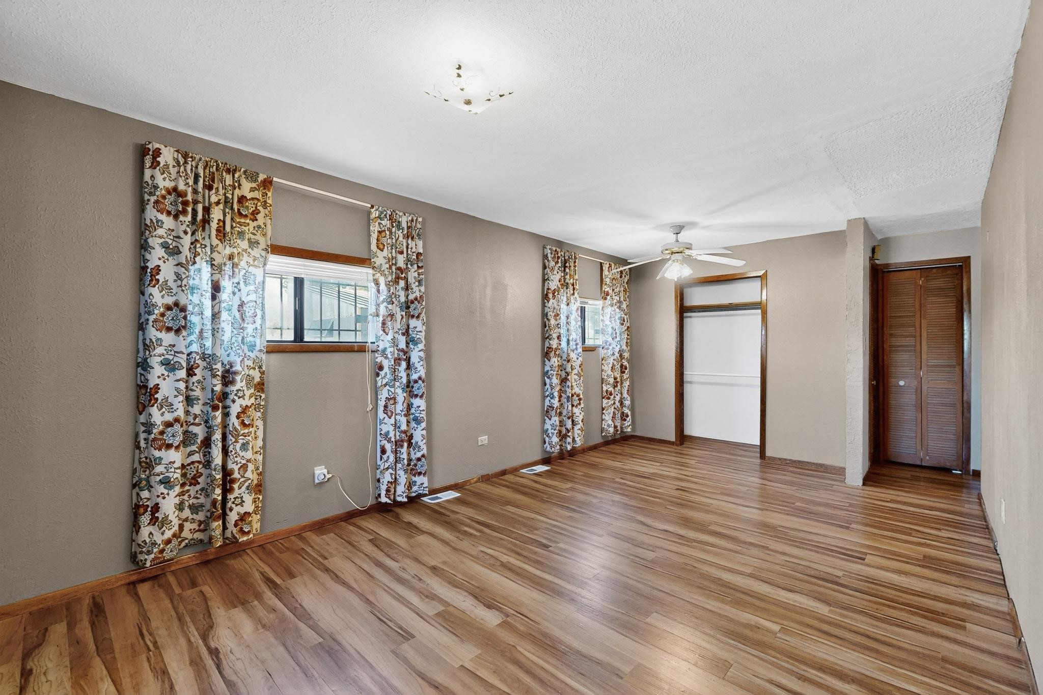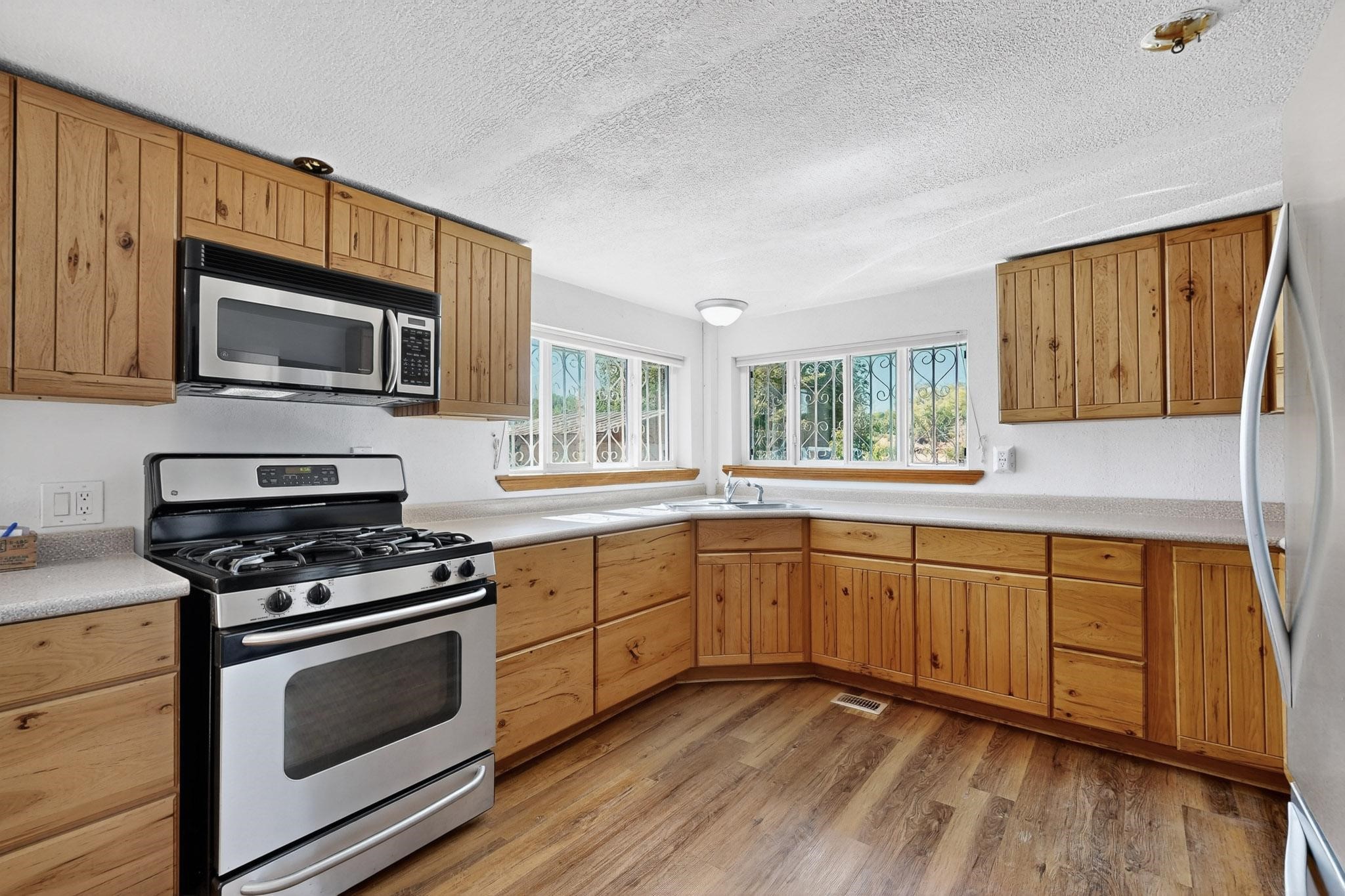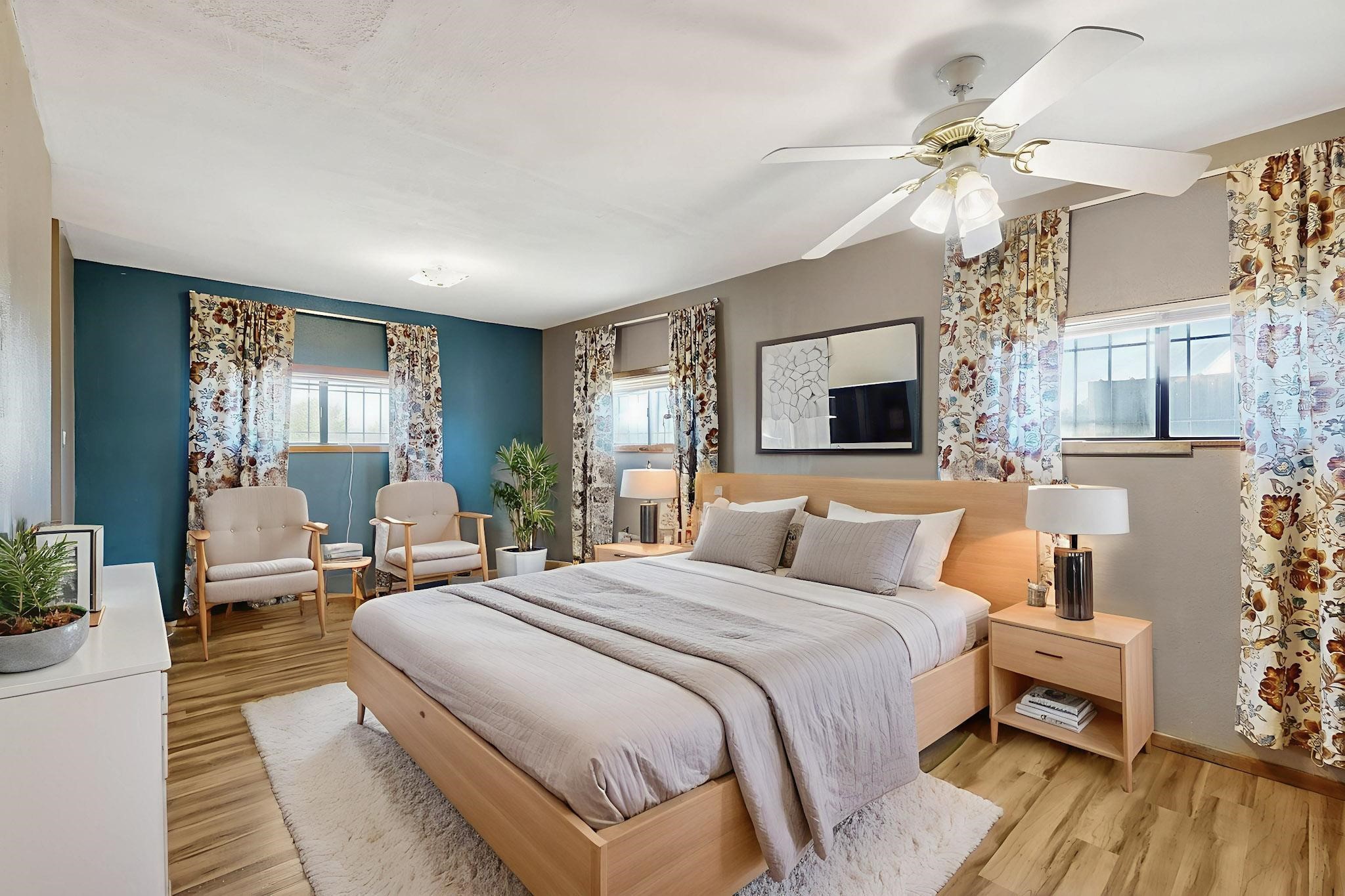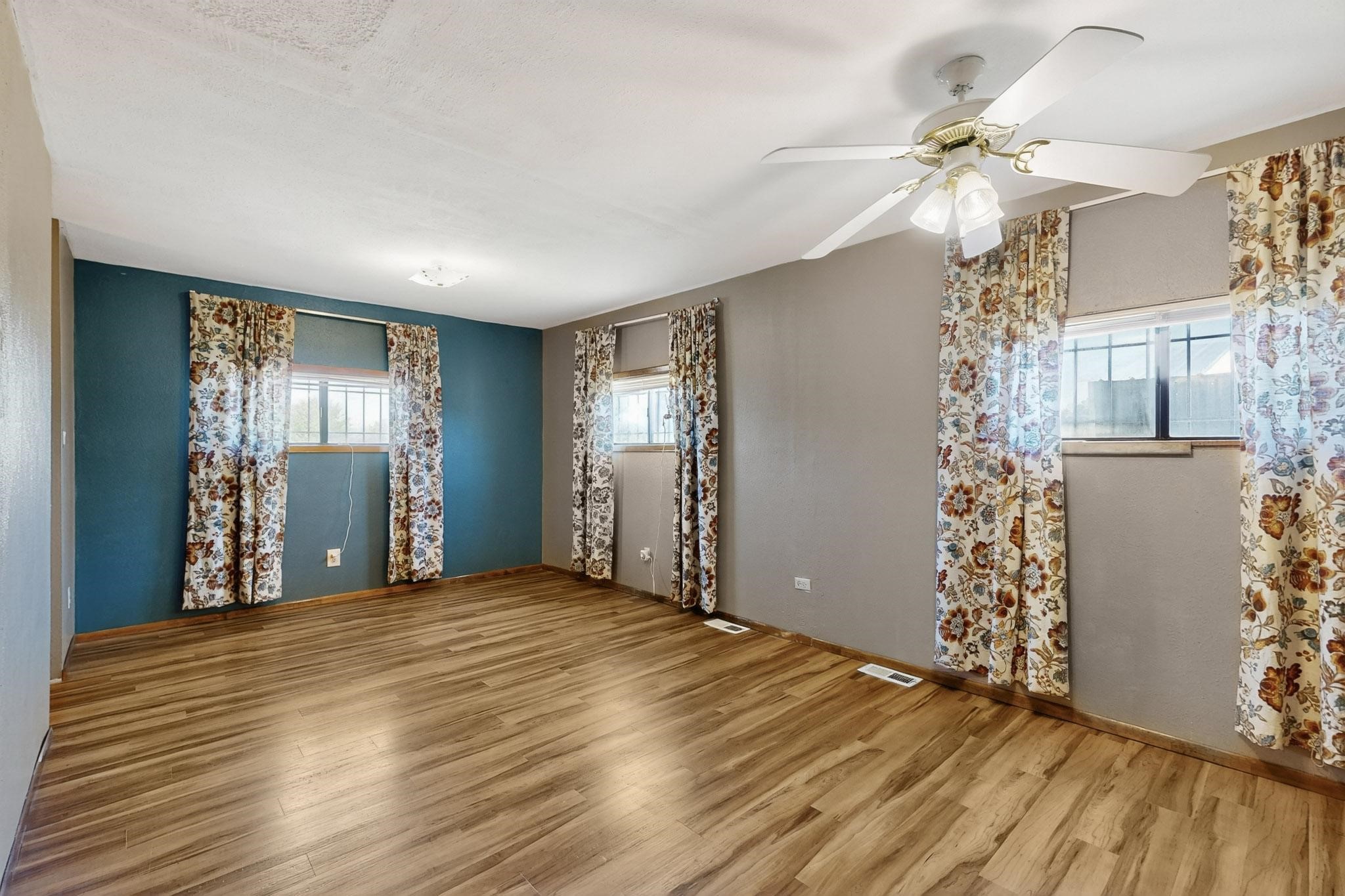 Tucked away in a serene, private haven far from the hustle and bustle, but only 23 miles from Santa Fe, and 21 miles from Los Alamos, this 5.04-acre horse property weaves together rural charm and modern comfort. Enveloped by lush, irrigated land and shaded by towering cottonwood trees, the estate offers a tranquil retreat perfect for those craving peaceful solitude. The property consist of four separate but adjoining parcels, with a well-maintained large barn that stands ready for equestrian pursuits or hobbies, while secure water rights ensure the vibrant pastures and greenery thrive year-round. Scattered across the property, fruit trees yield seasonal delights, adding a touch of homesteading allure. At the heart of this oasis lies a converted and expanded 3-bedroom, 2-bathroom manufactured home. Whether you're an equestrian enthusiast, a nature lover, or simply seeking a secluded sanctuary, this remarkable property invites you to embrace a life of tranquility and endless possibilities. Schedule a showing today to discover this rare gem! Neither seller nor broker warrant any listing information. Areas that are of matrial interest should be independently verified by the buyer.